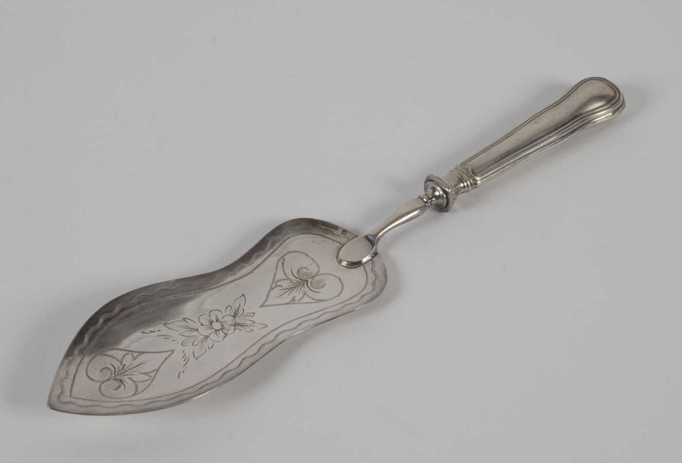 Silver-plated metal fish shovel, the handle with fillets, th…