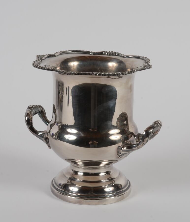 A Medici-shaped silver-plated champagne bucket. It stands on…