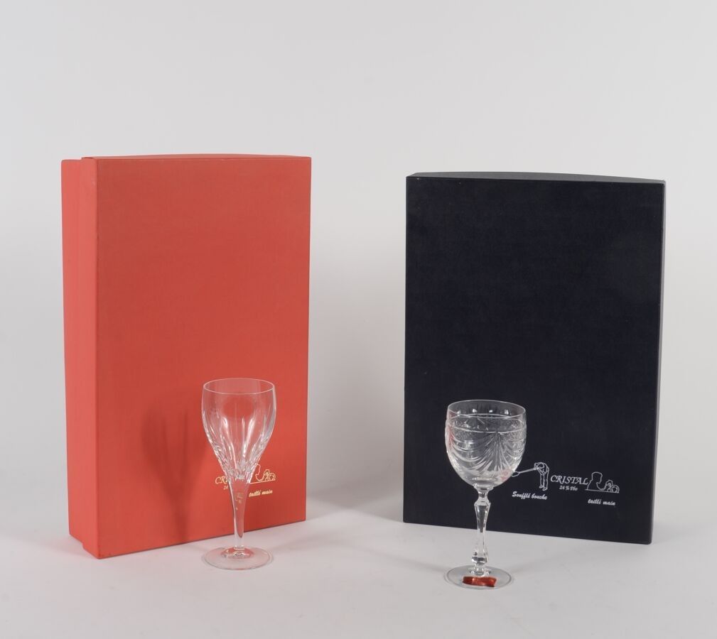 Two sets of colourless cut crystal stemmed glasses (six wate…