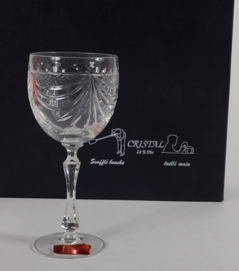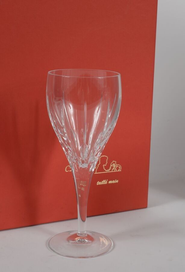 Two sets of colourless cut crystal stemmed glasses (six water glasses, six wine glasses).