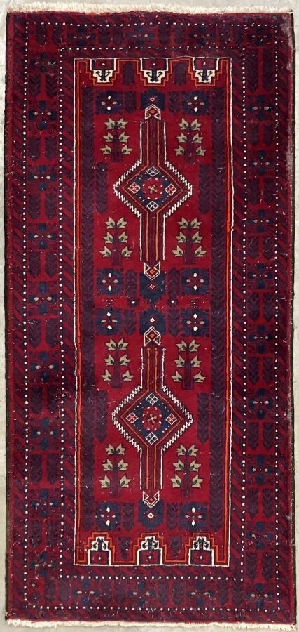 IRAN - BALUCH Polychrome wool carpet with geometric decorati…