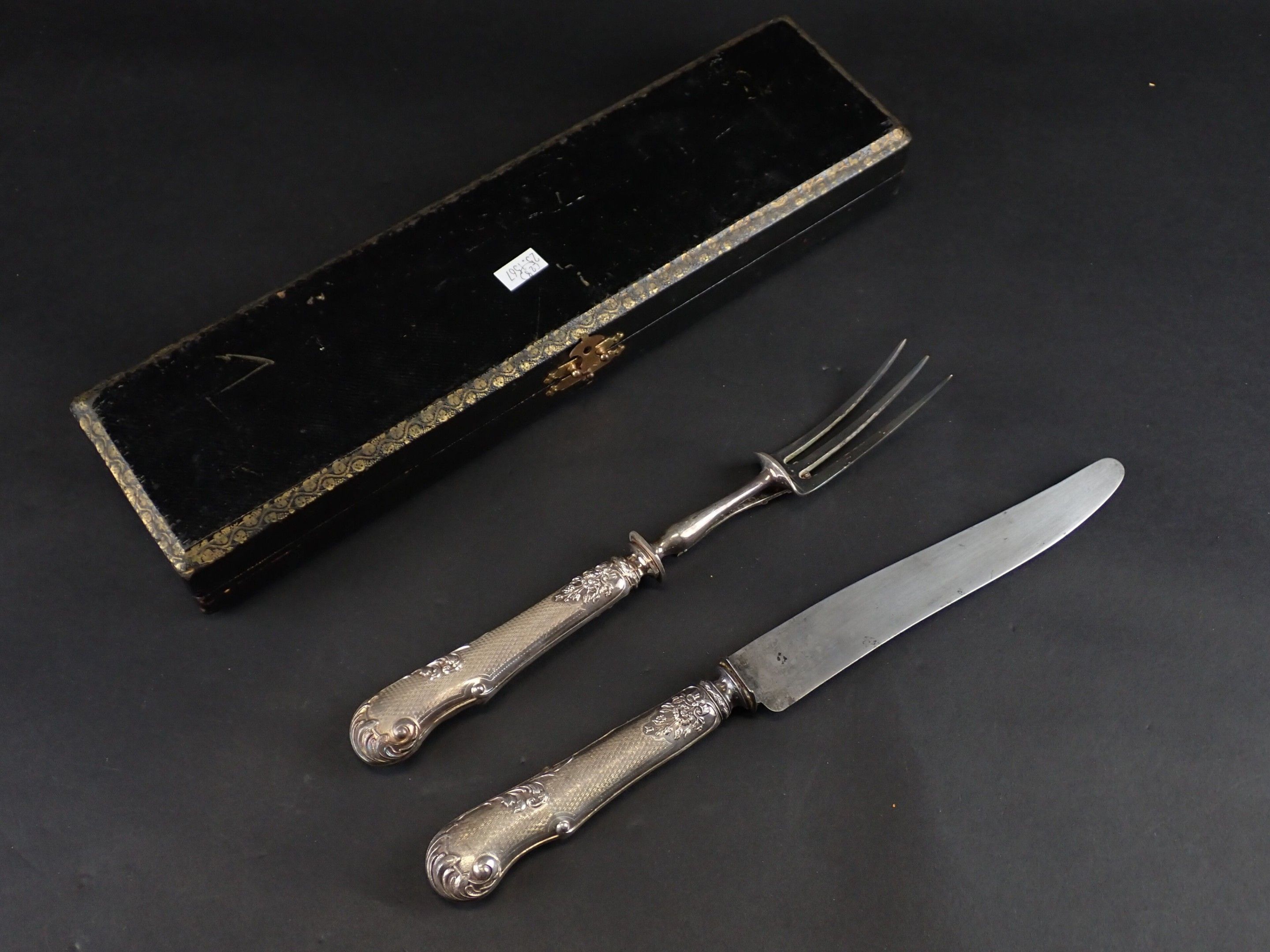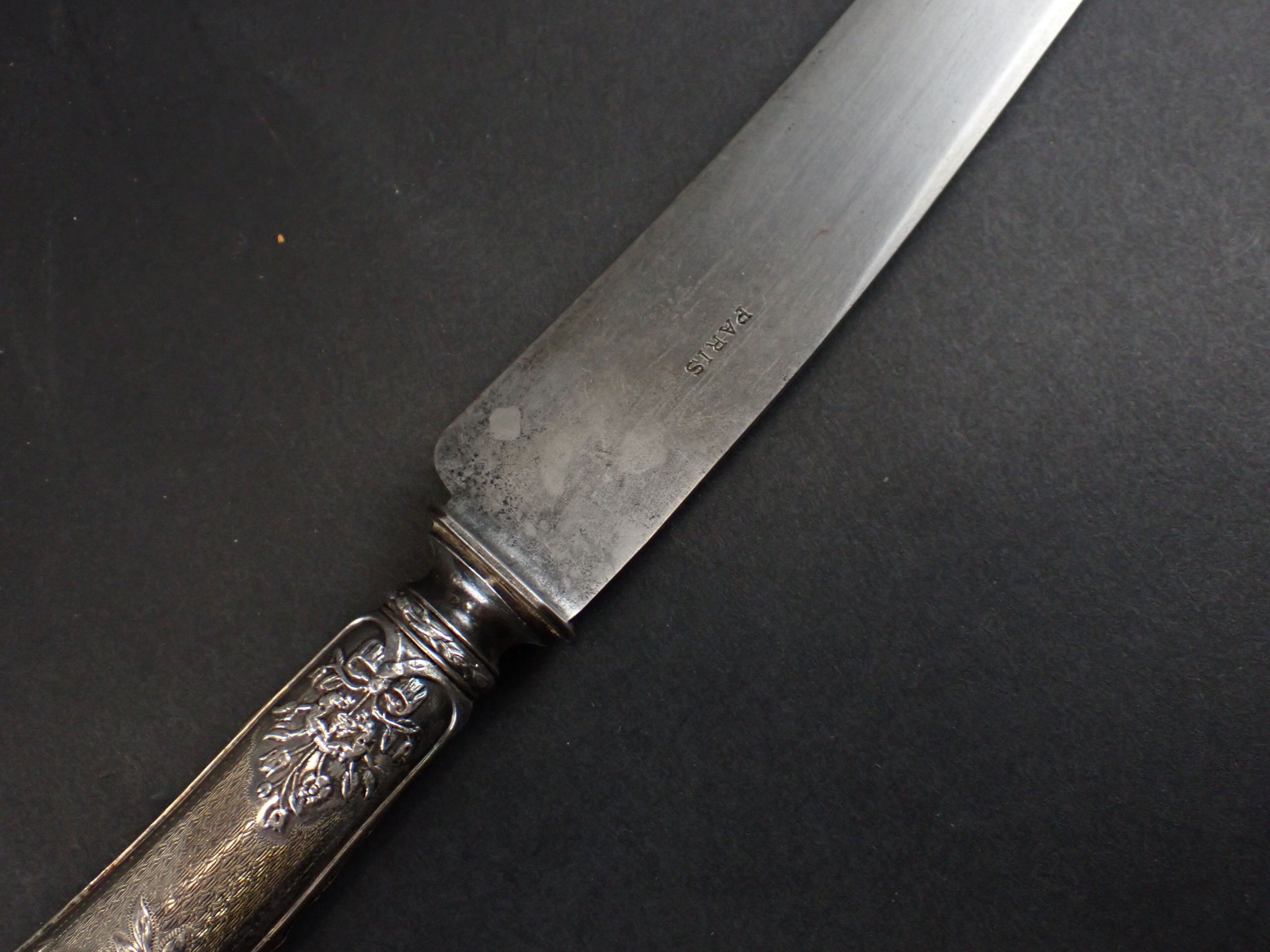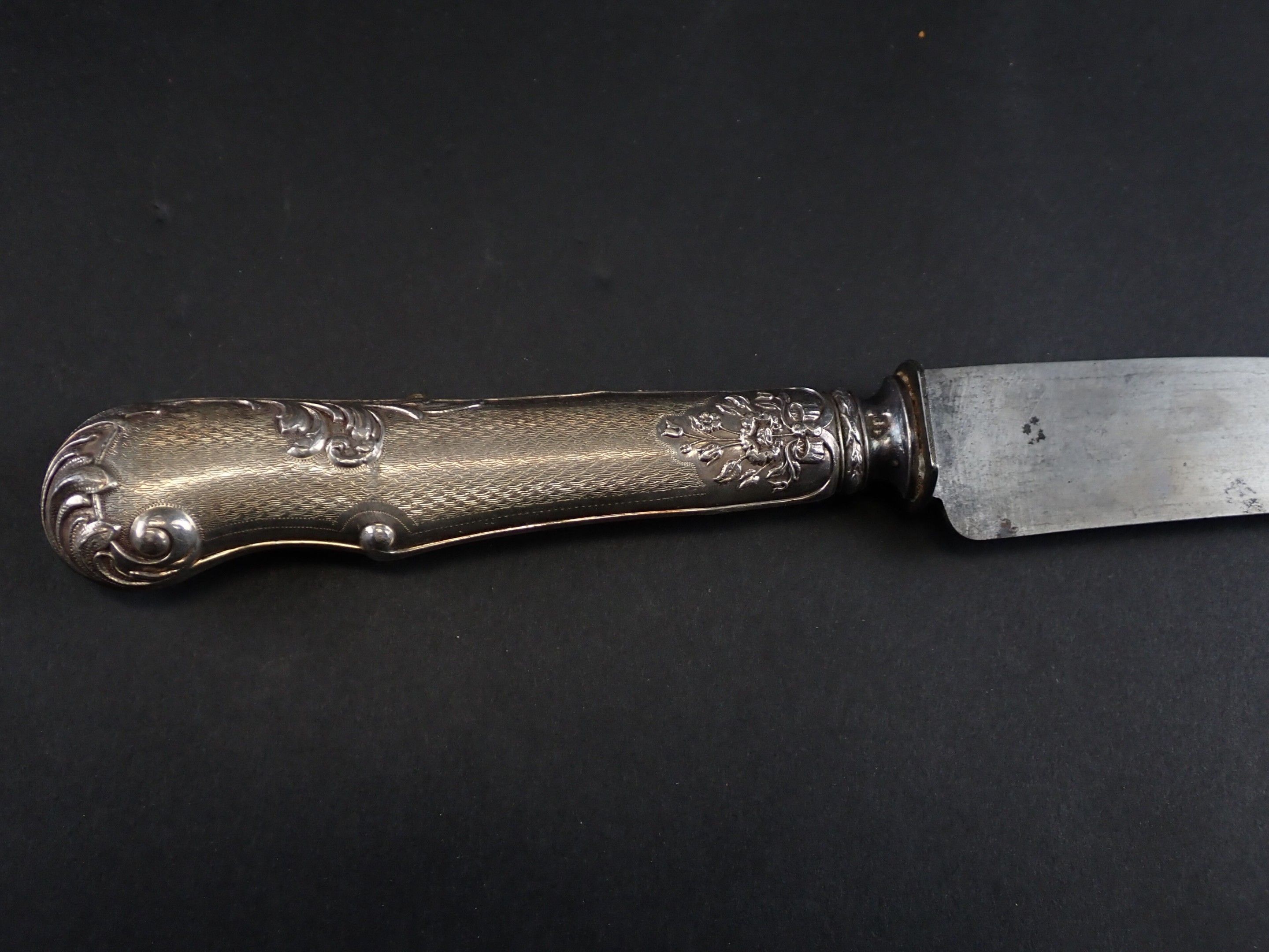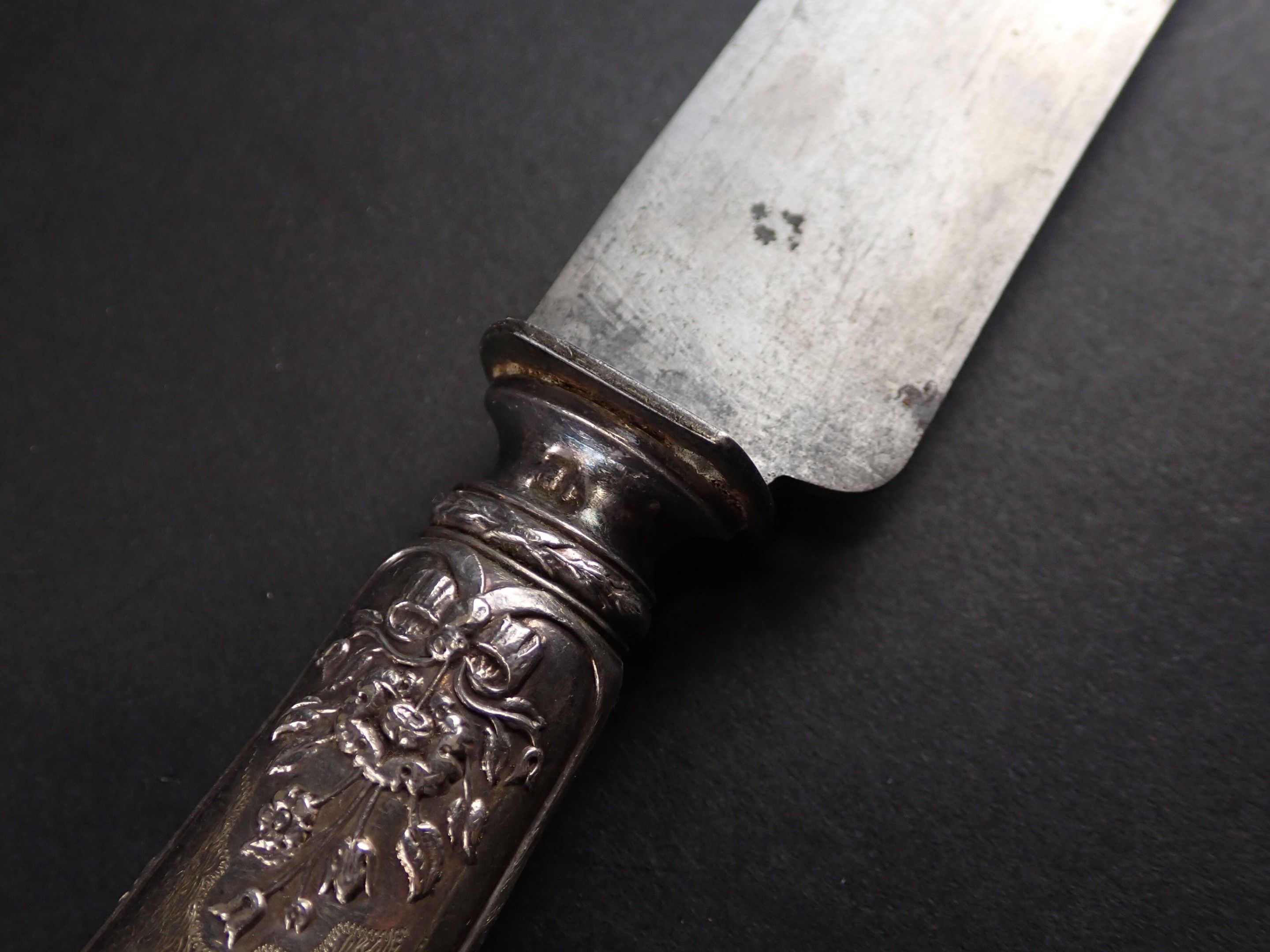 Two-piece chopping set, handles in filled silver. Rocaille style.