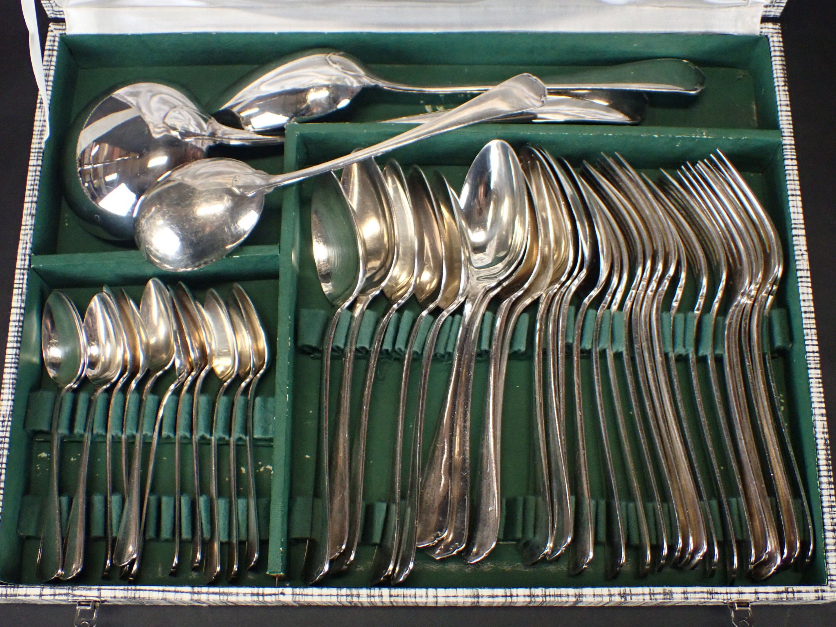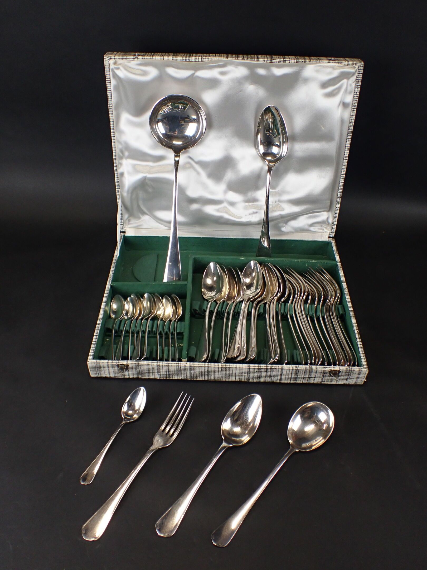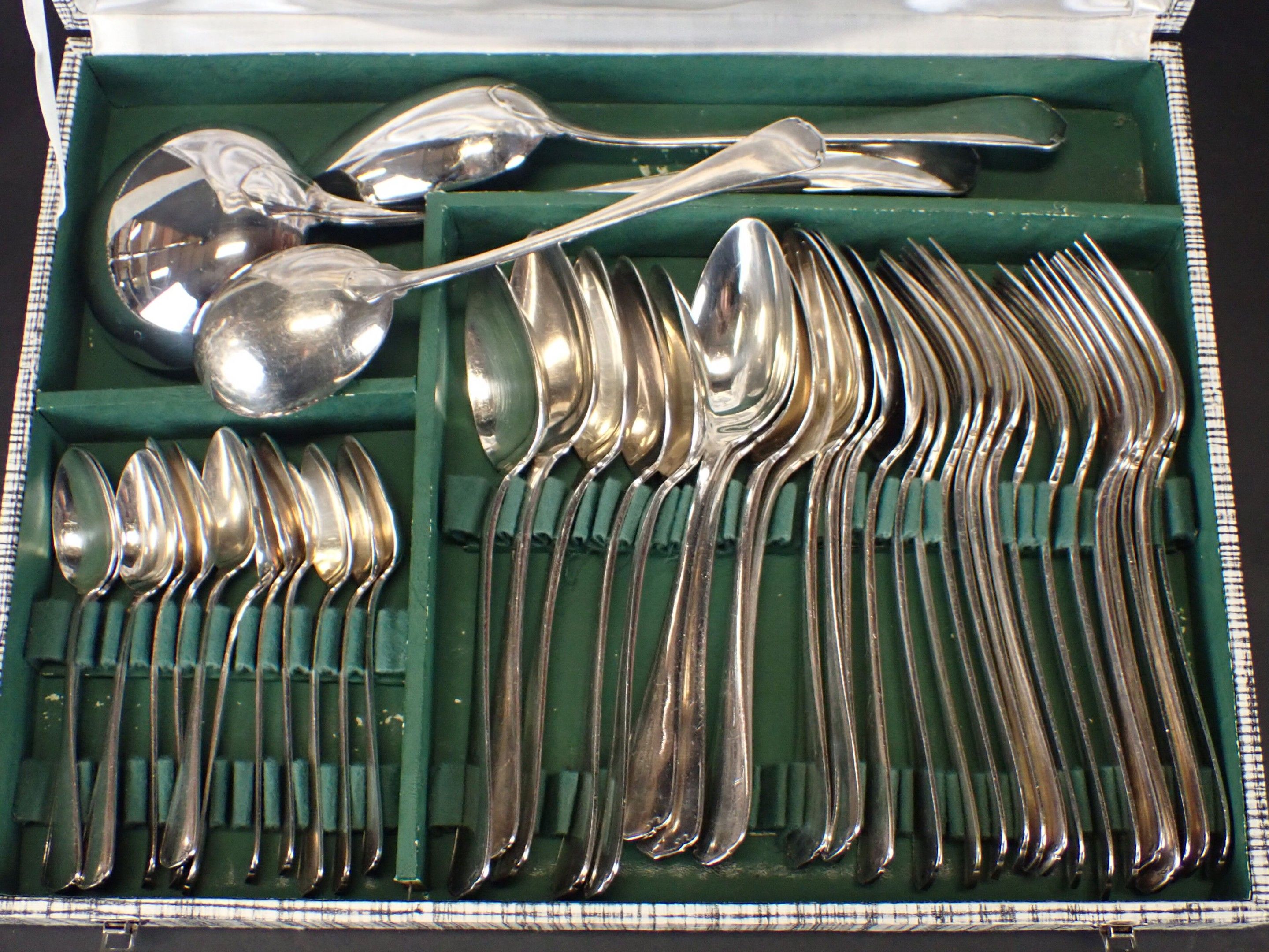 CHRISTOFLE. Silver-plated Japanese-style single-flat spatula cutlery set with 40 pieces, in a case.