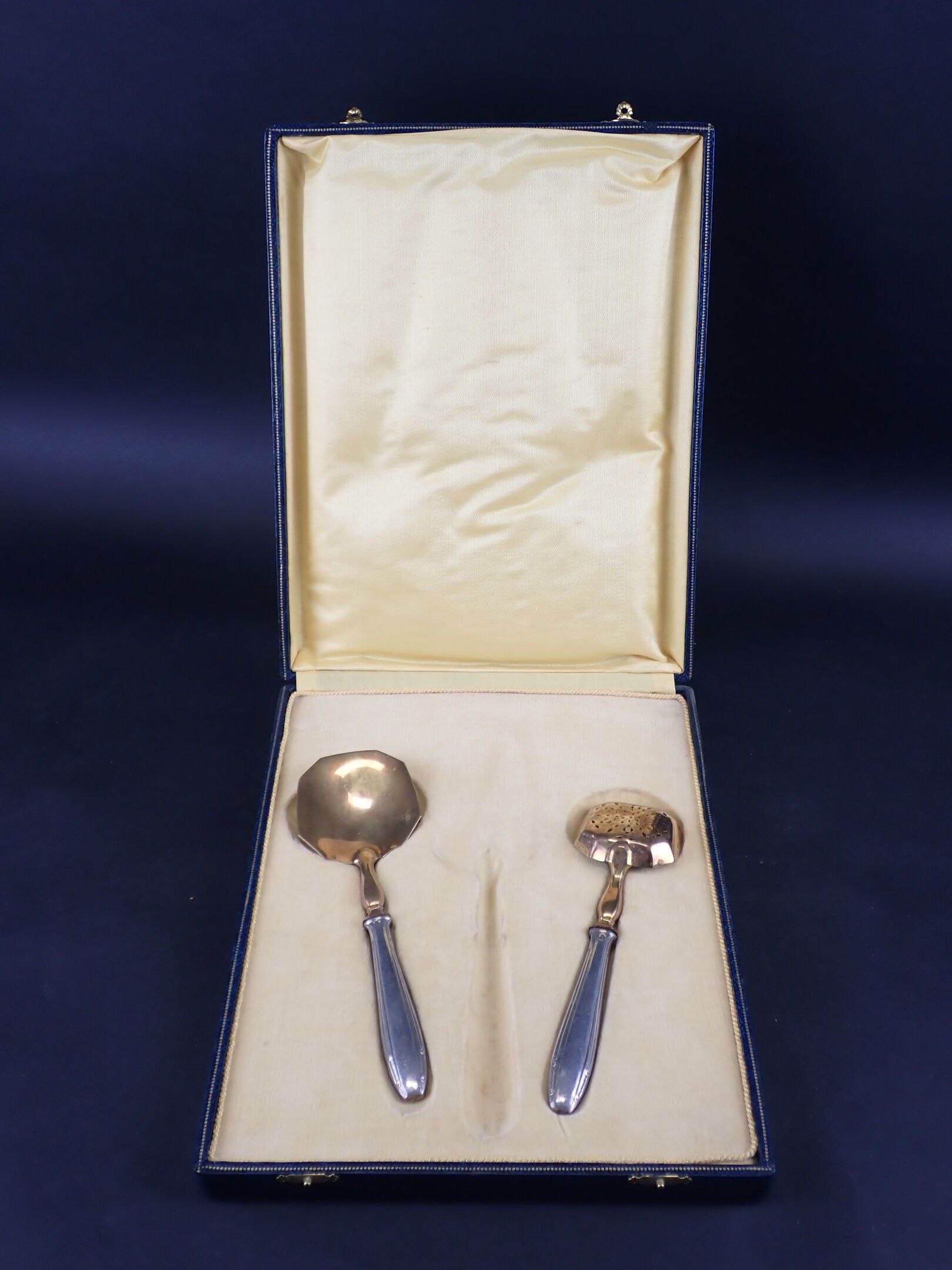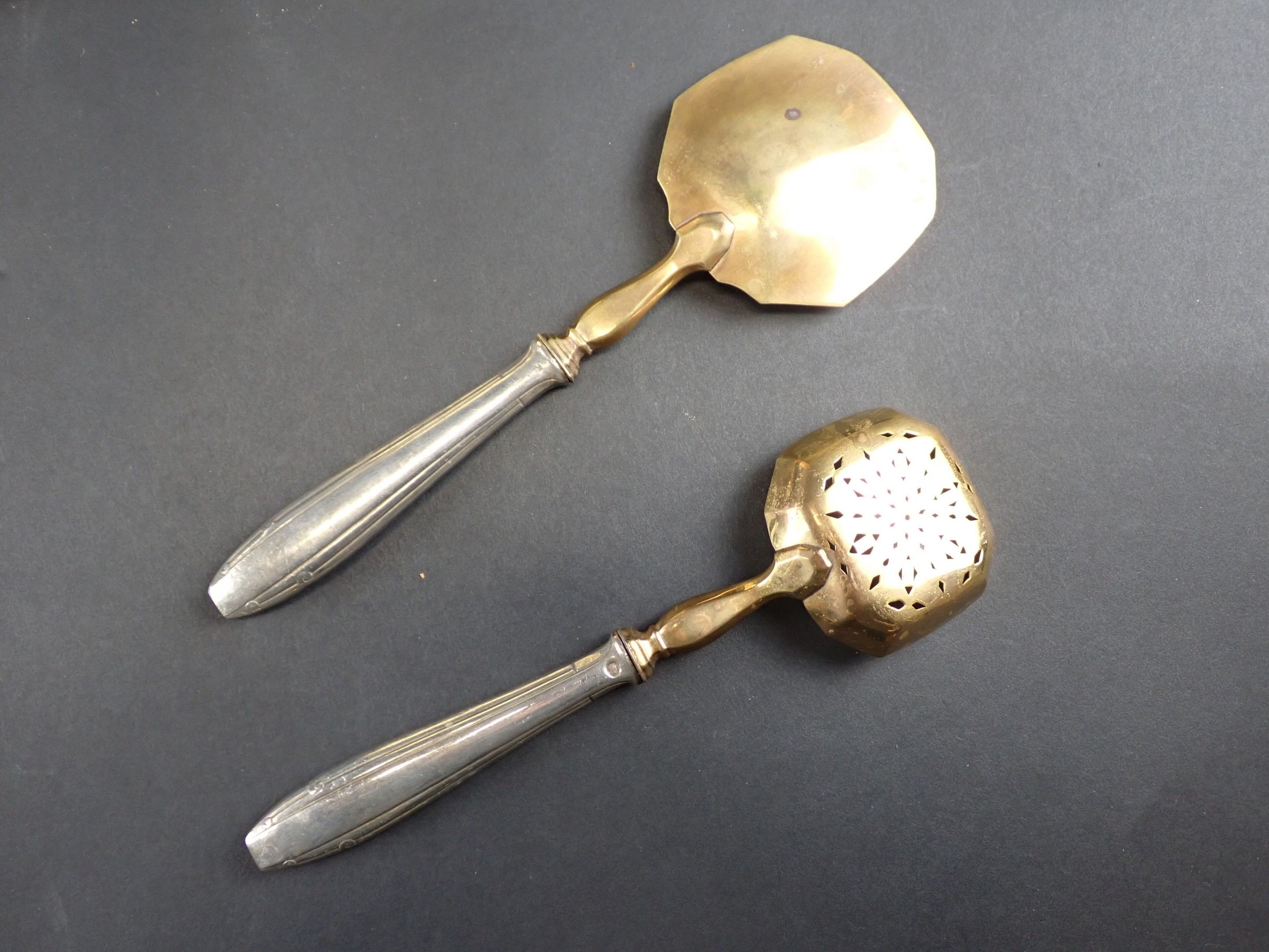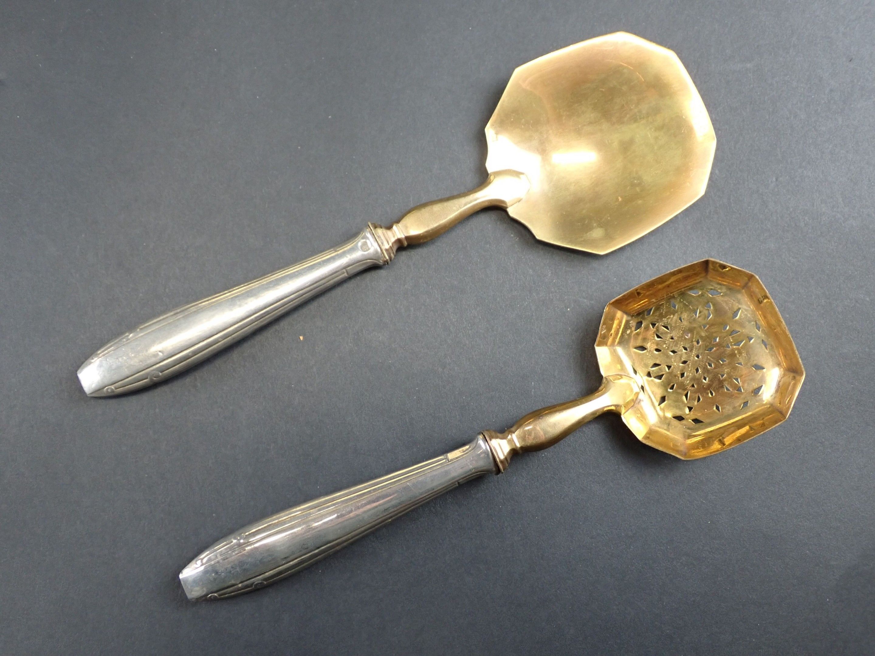 Strawberry set, the handles in filled silver, the spoons in gilded metal.