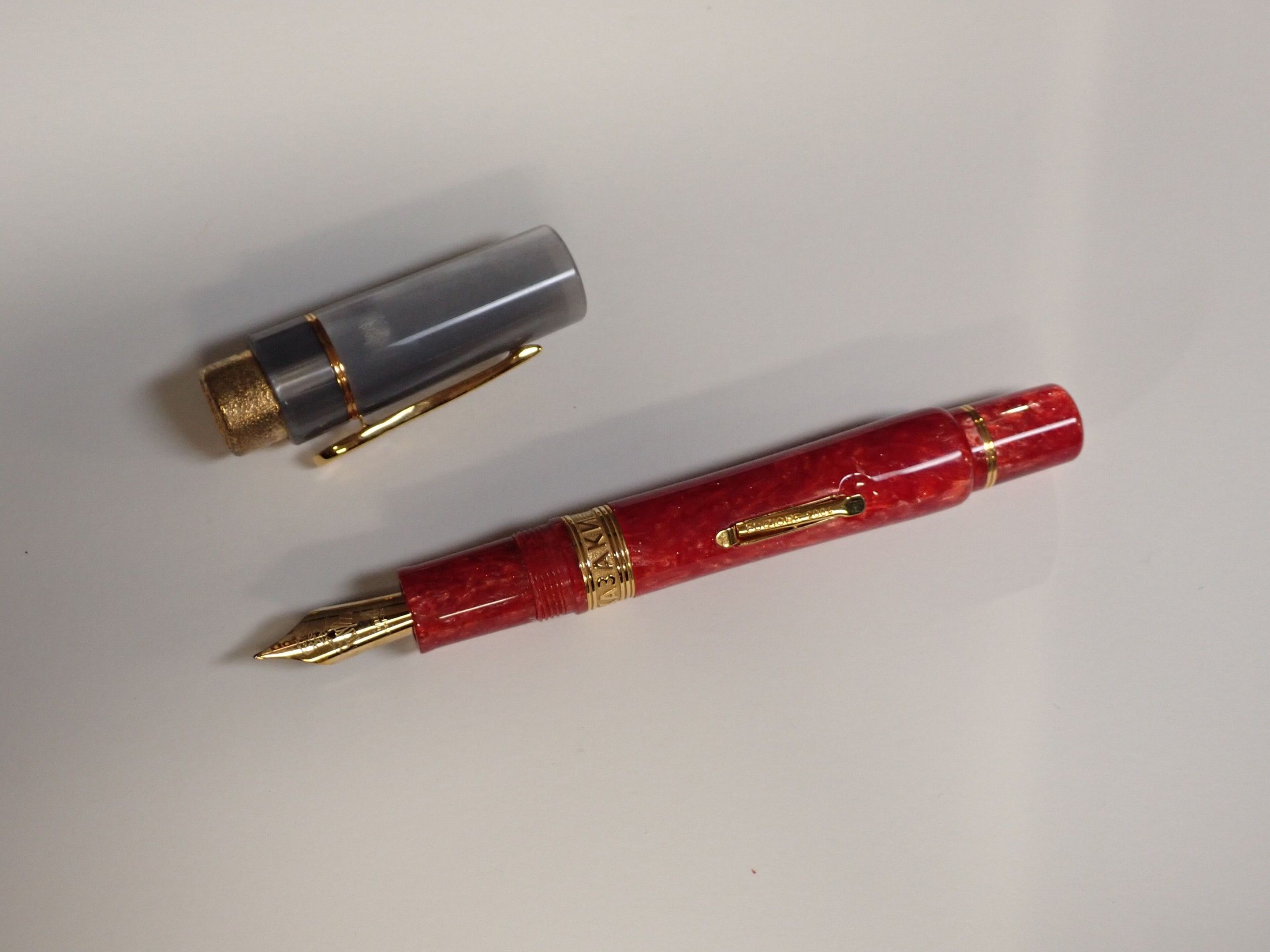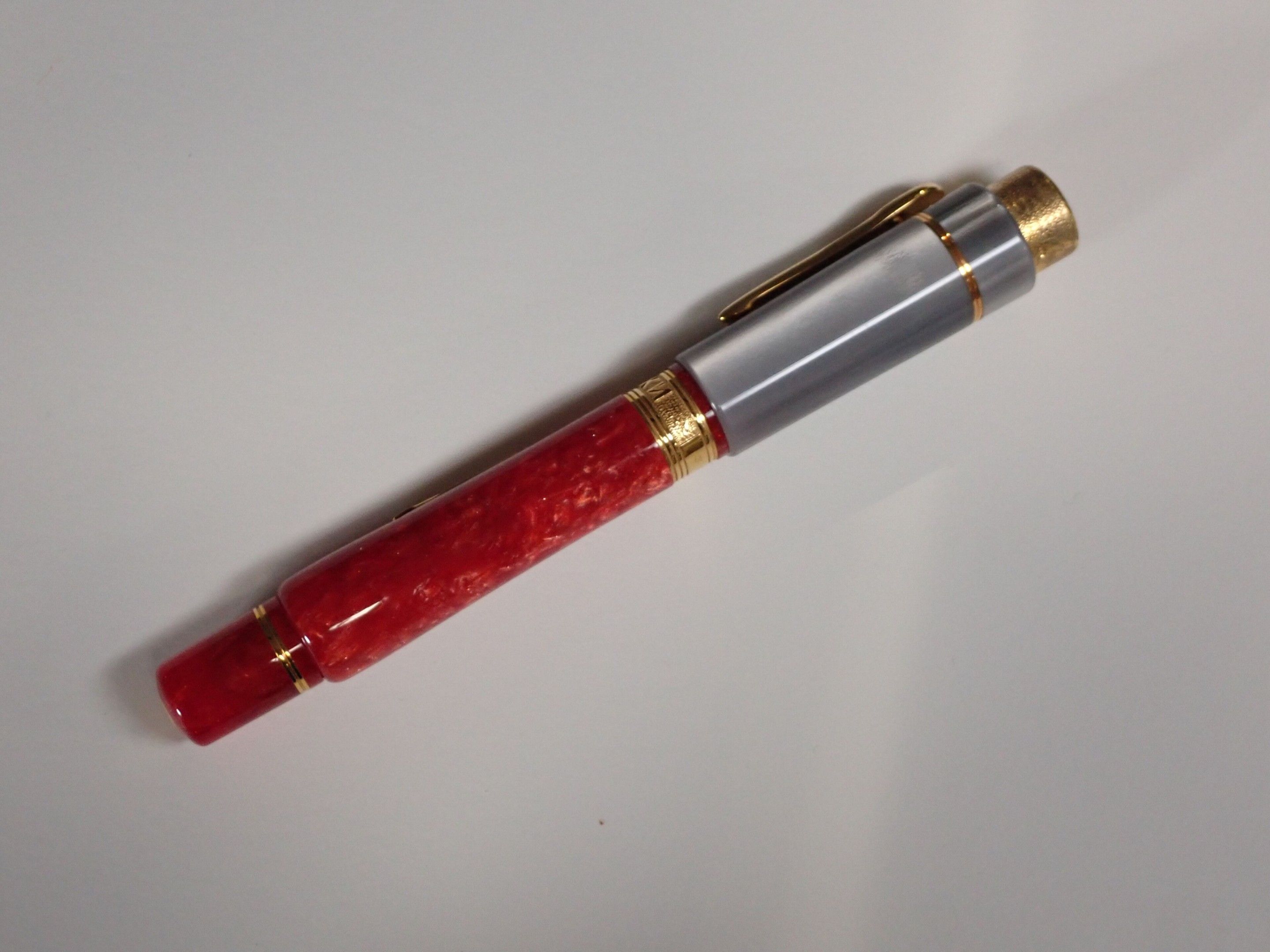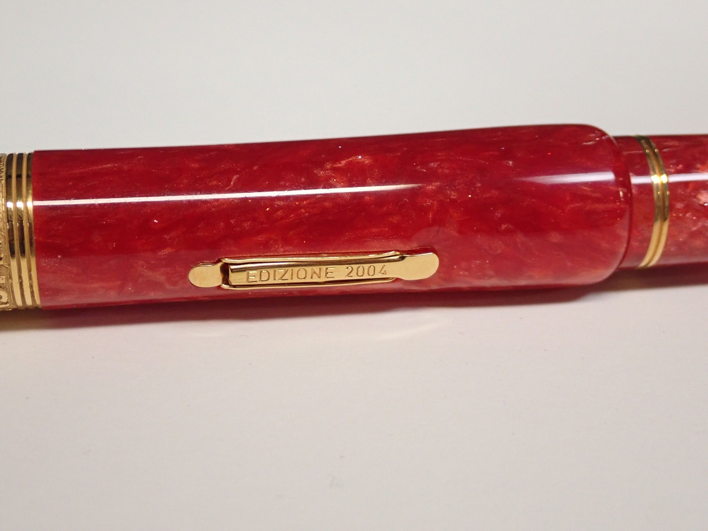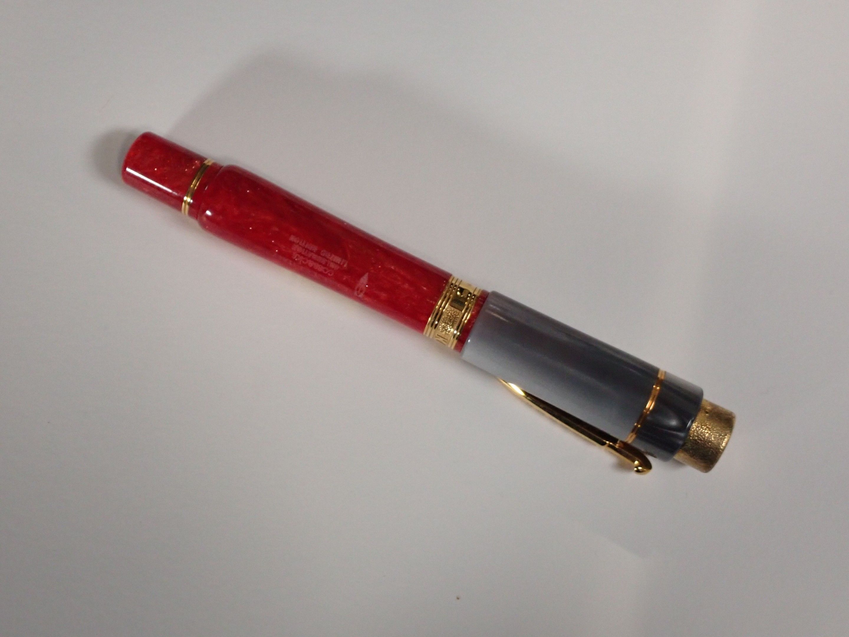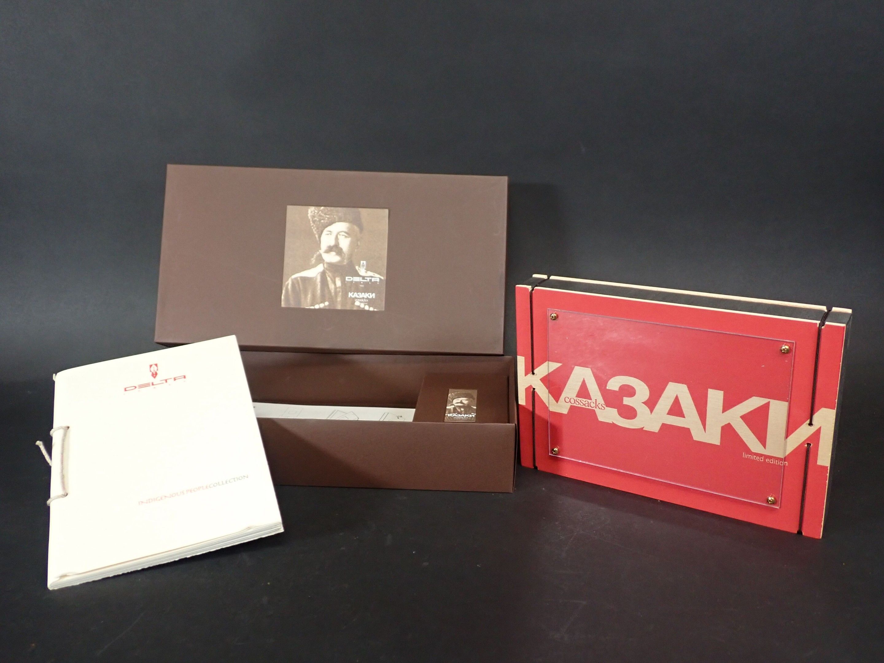 DELTA Italy - Indigenious people collection biros, Cossacks model, 750 yellow gold nib, limited edition of 69 in red and grey resin and 750 gold ring setting. Gross weight: 47 g, in box with booklet, numbered 46/69. Good condition