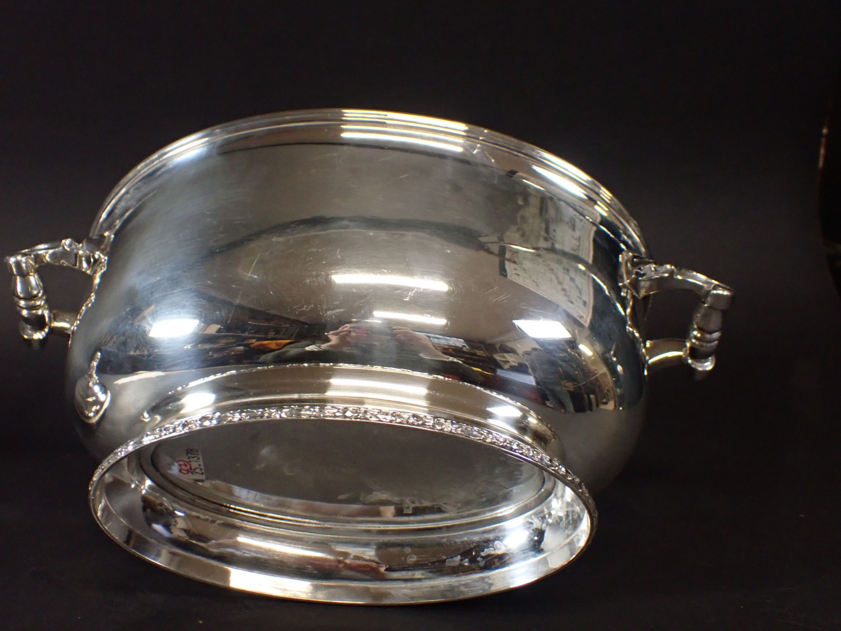 PLASAIT Goldsmith. Oval soup tureen in silver-plated metal, …