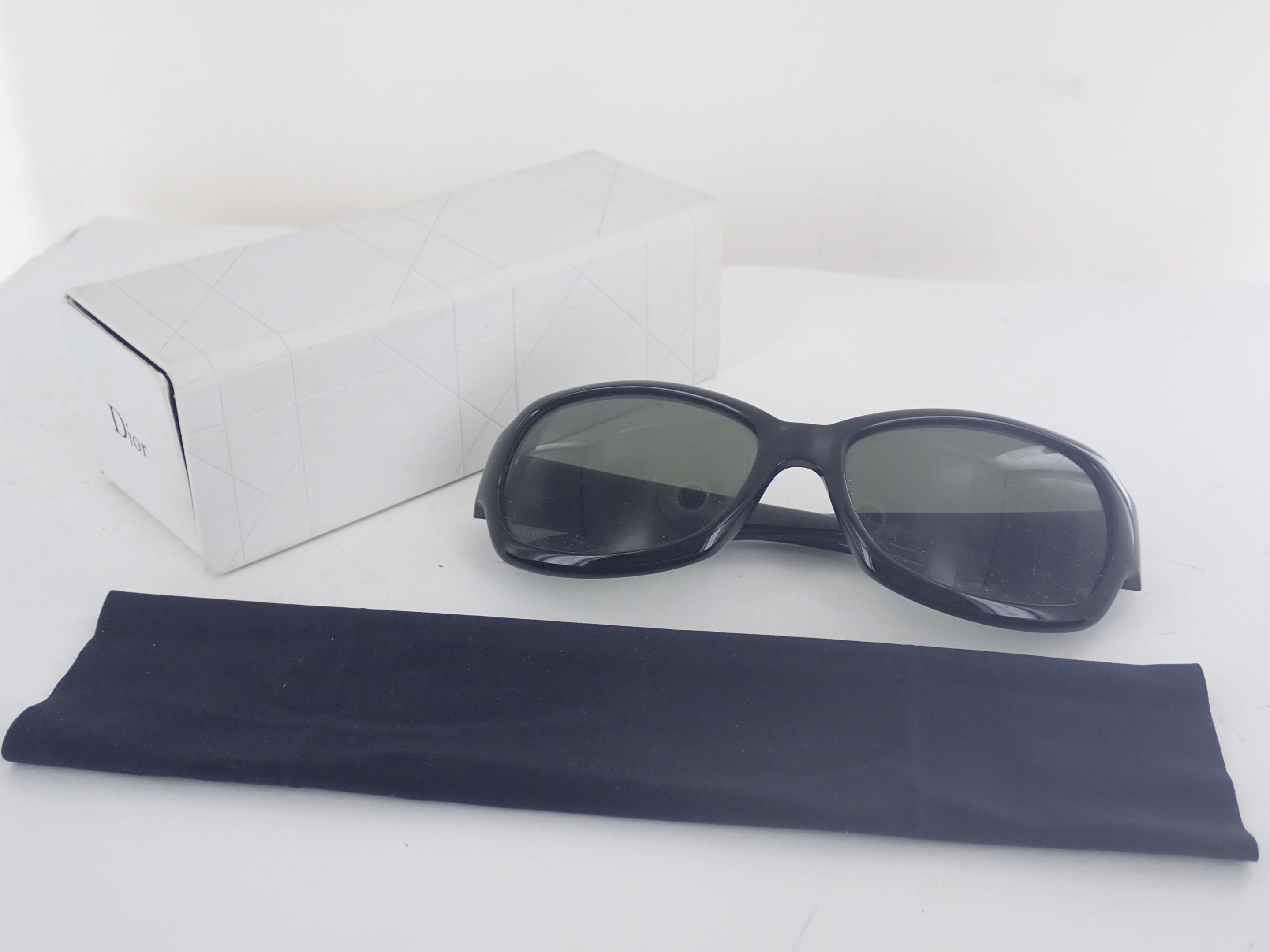 DIOR: pair of black and smoked resin sunglasses, temples sig…