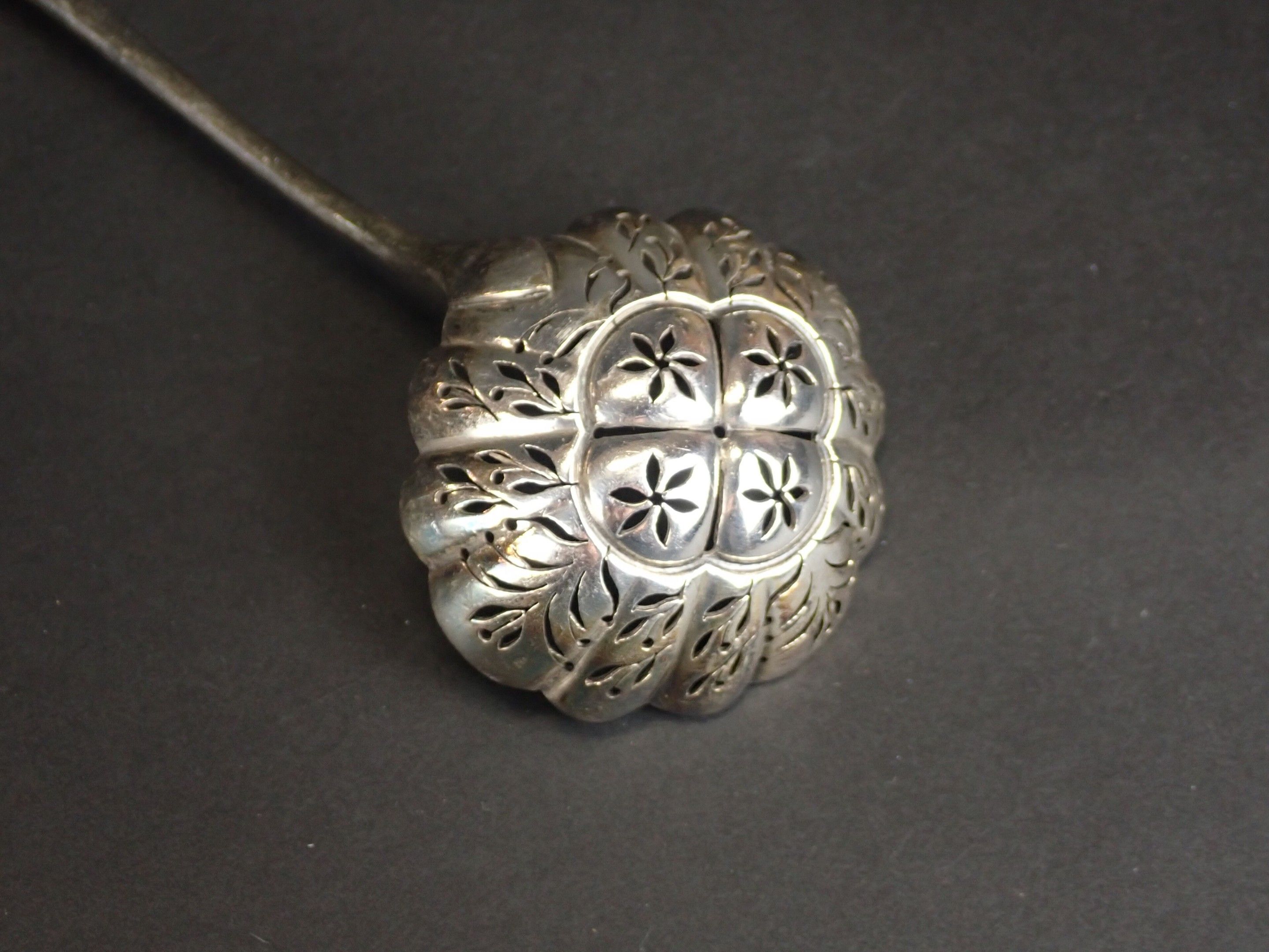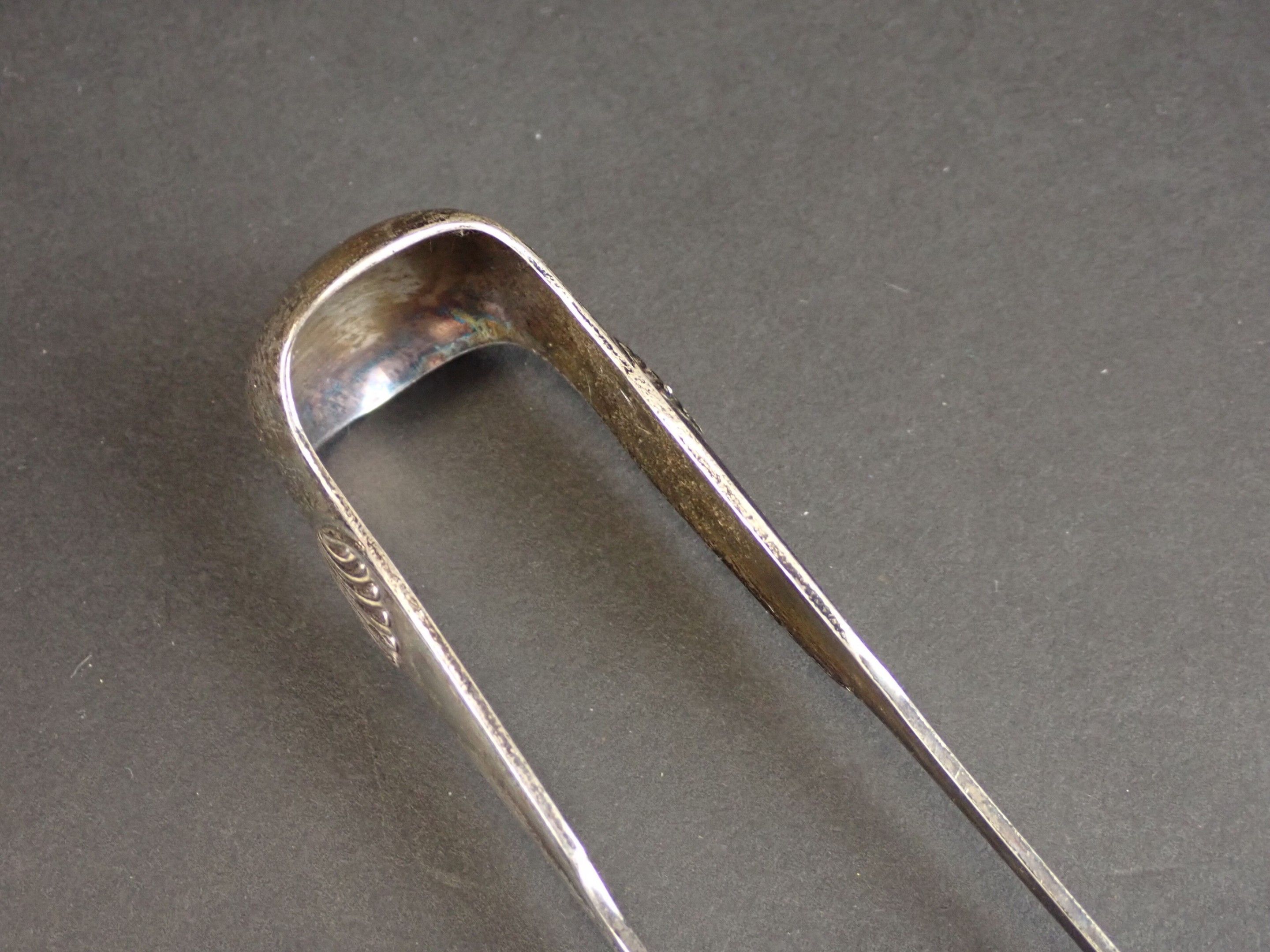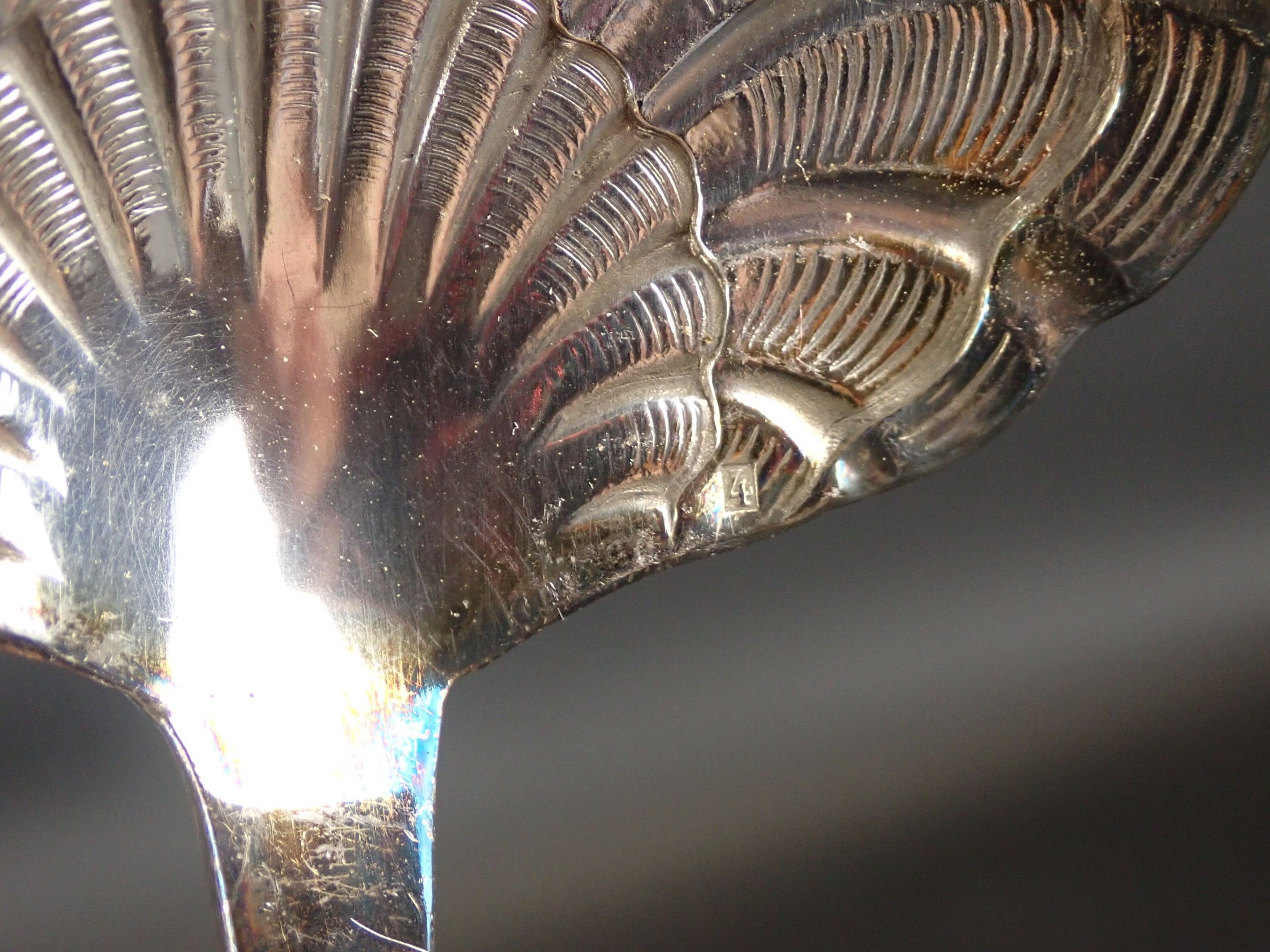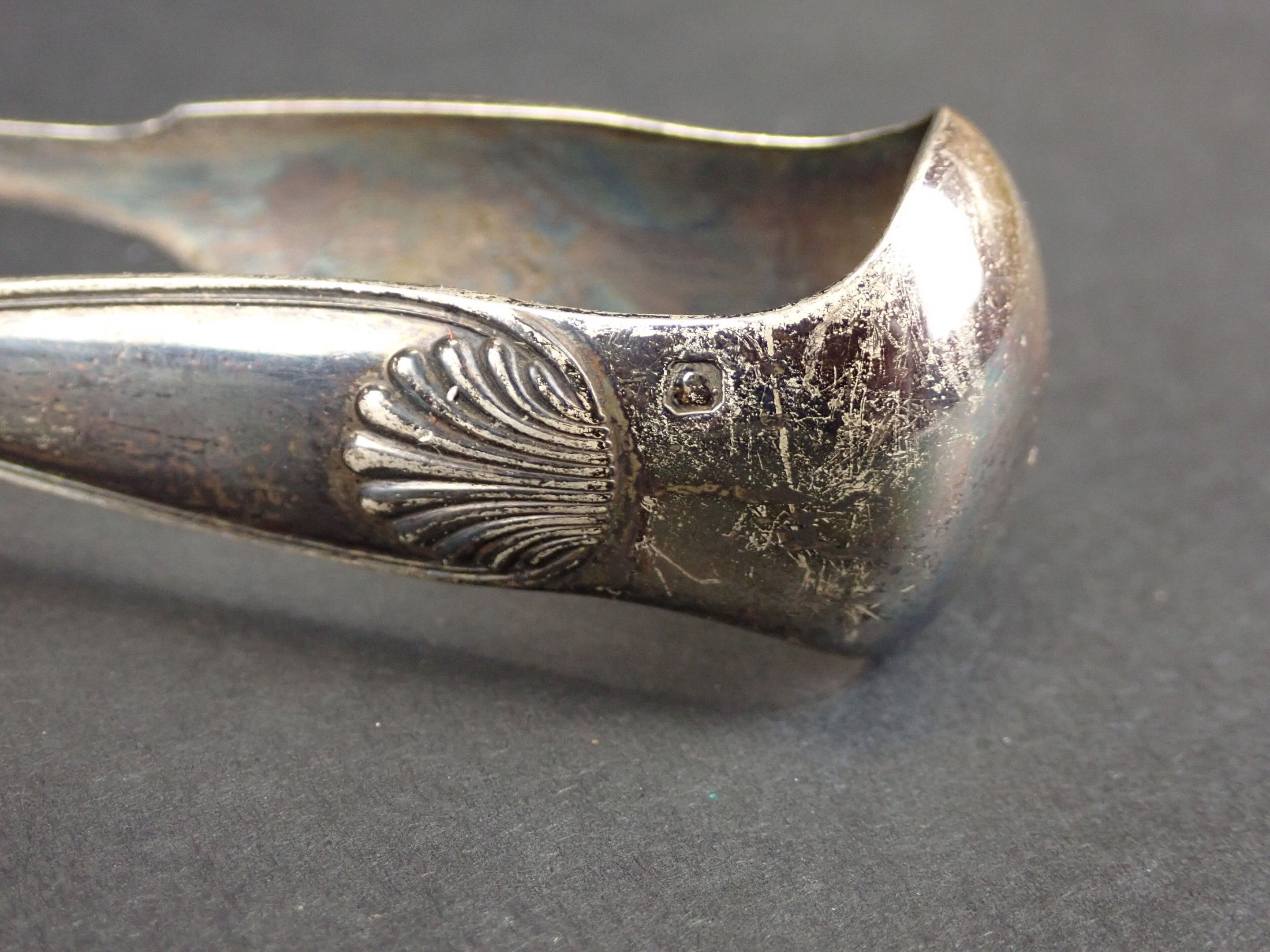 including various ladles and sauce spoons, one of which is marked Ercuis. A pair of sugar tongs in silver 800, Minerve hallmark, net weight: 40 g.