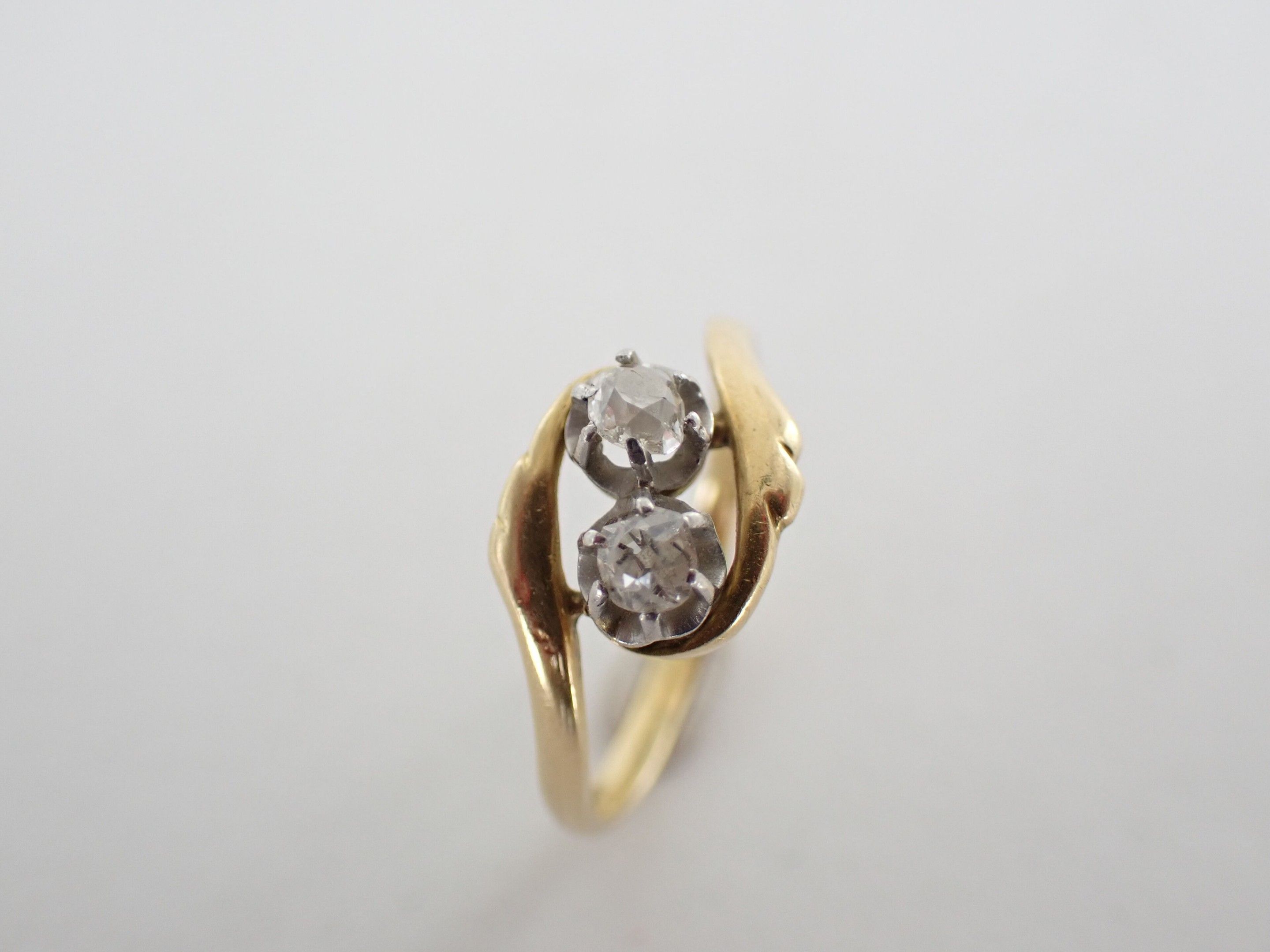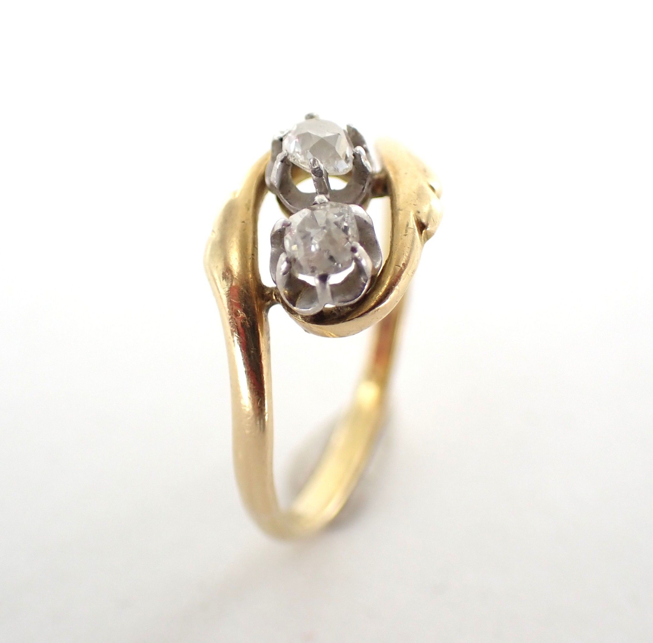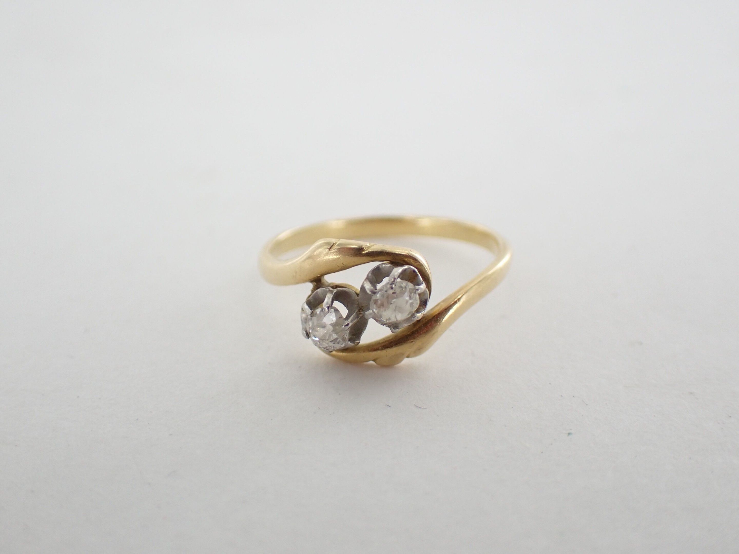 Toi et Moi ring in gold set with two old-cut diamonds weighi…