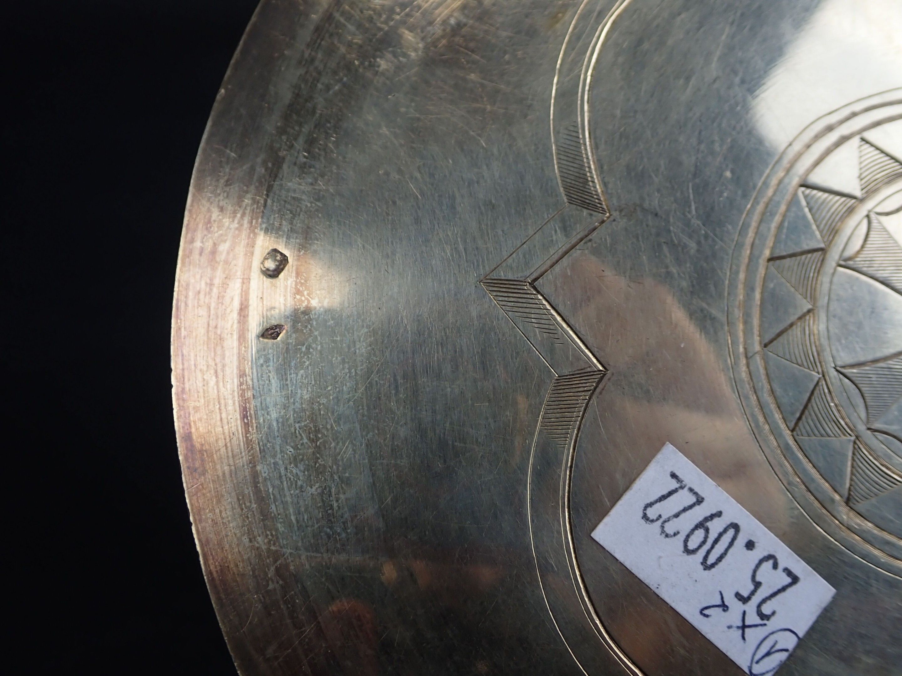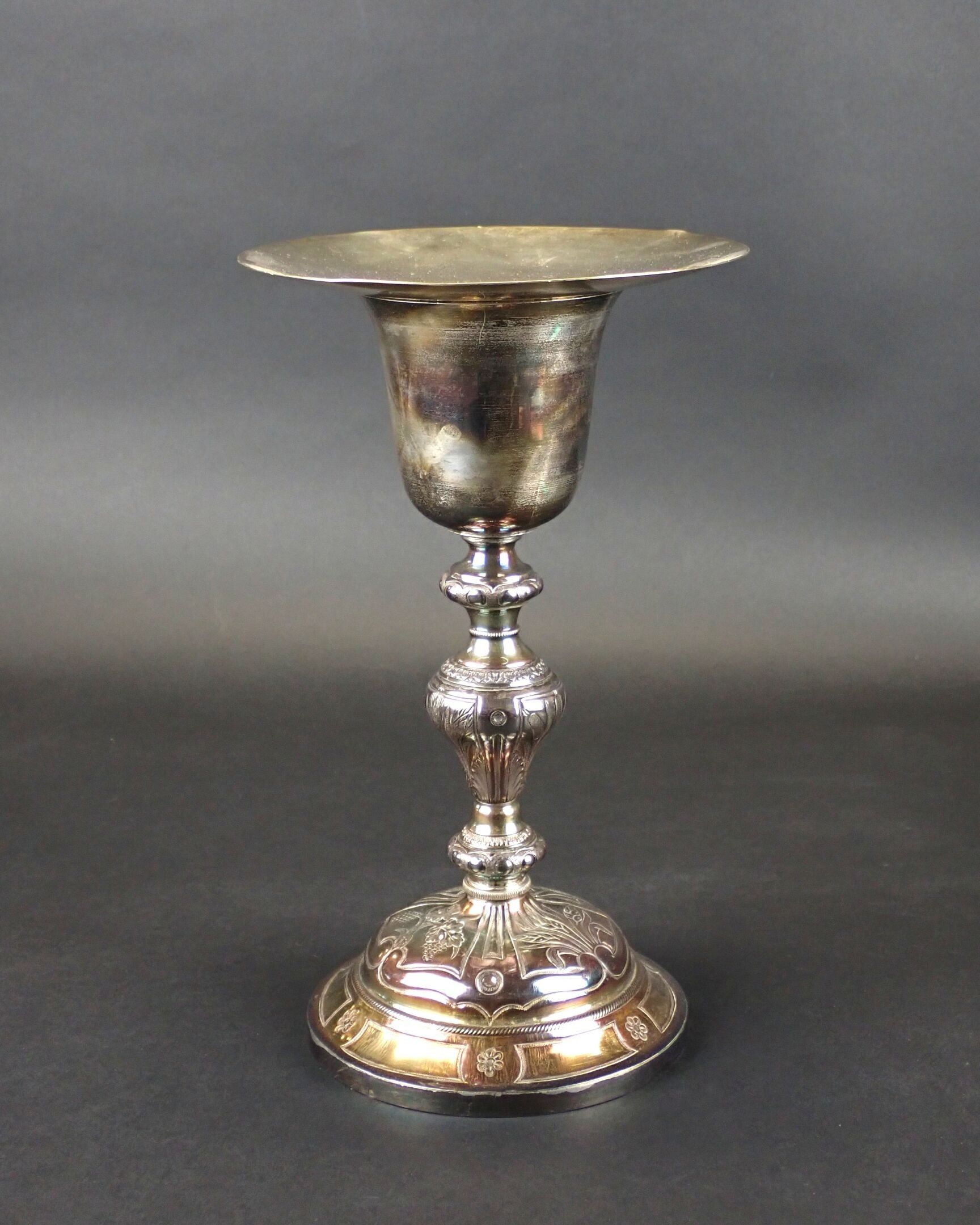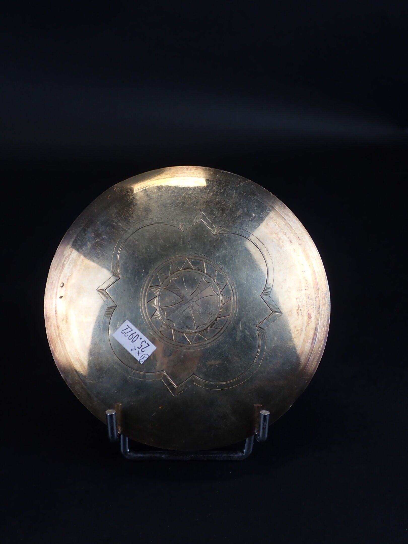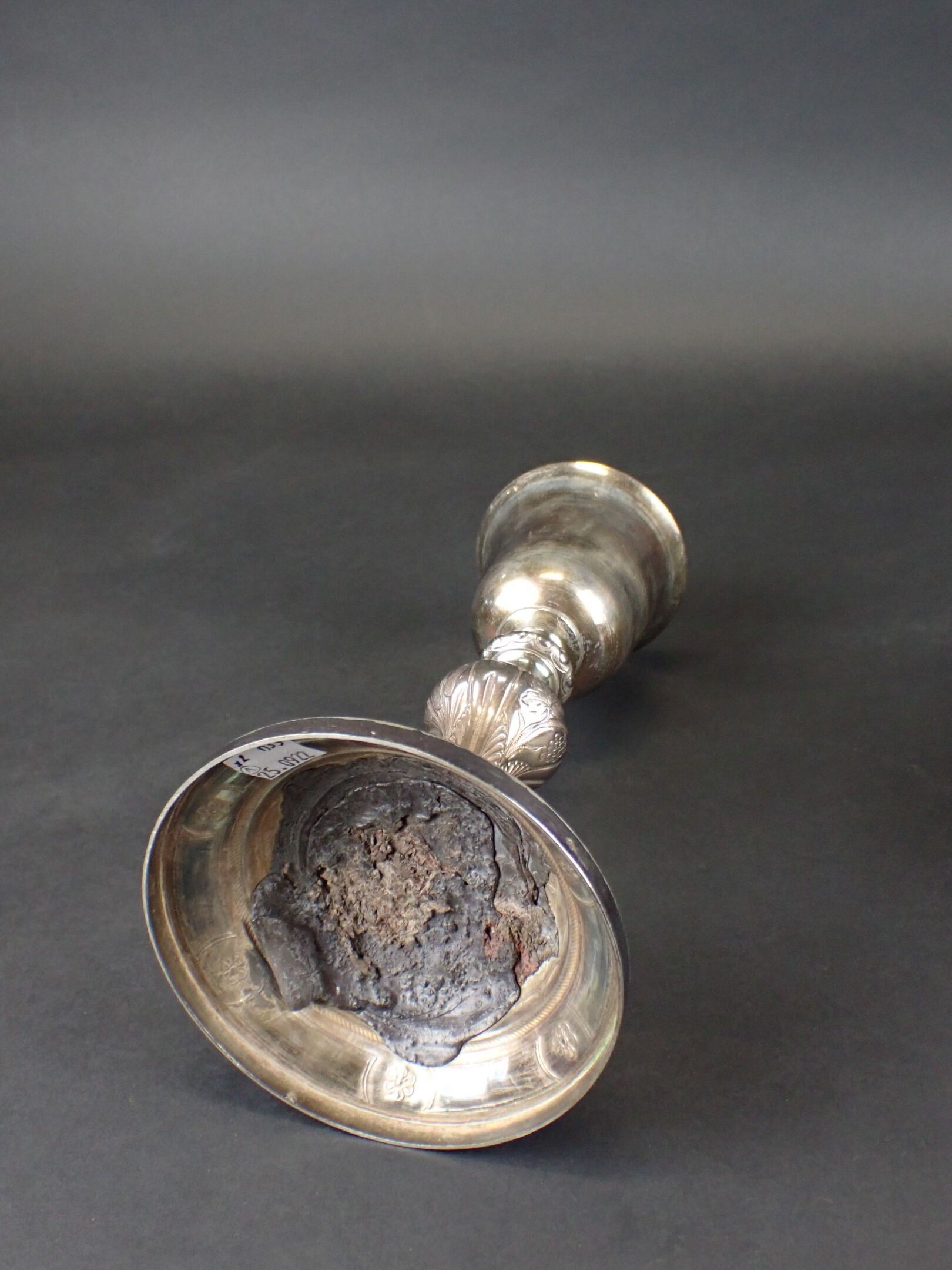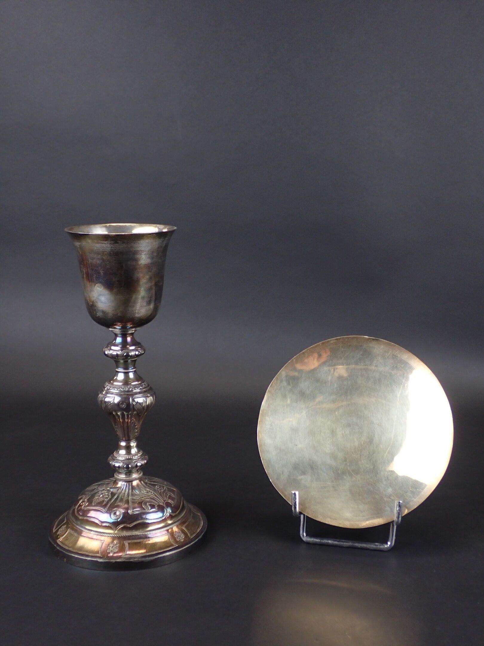 Chalice and paten from the 19th century in silver 800 thousandth Minerve hallmarks from the house of FAVIER comprising: - Chalice height: 25 cm and Weight: 690 g approximately - Paten diameter: 15 cm and Weight: 111g approximately. Total gross weight: 801 g