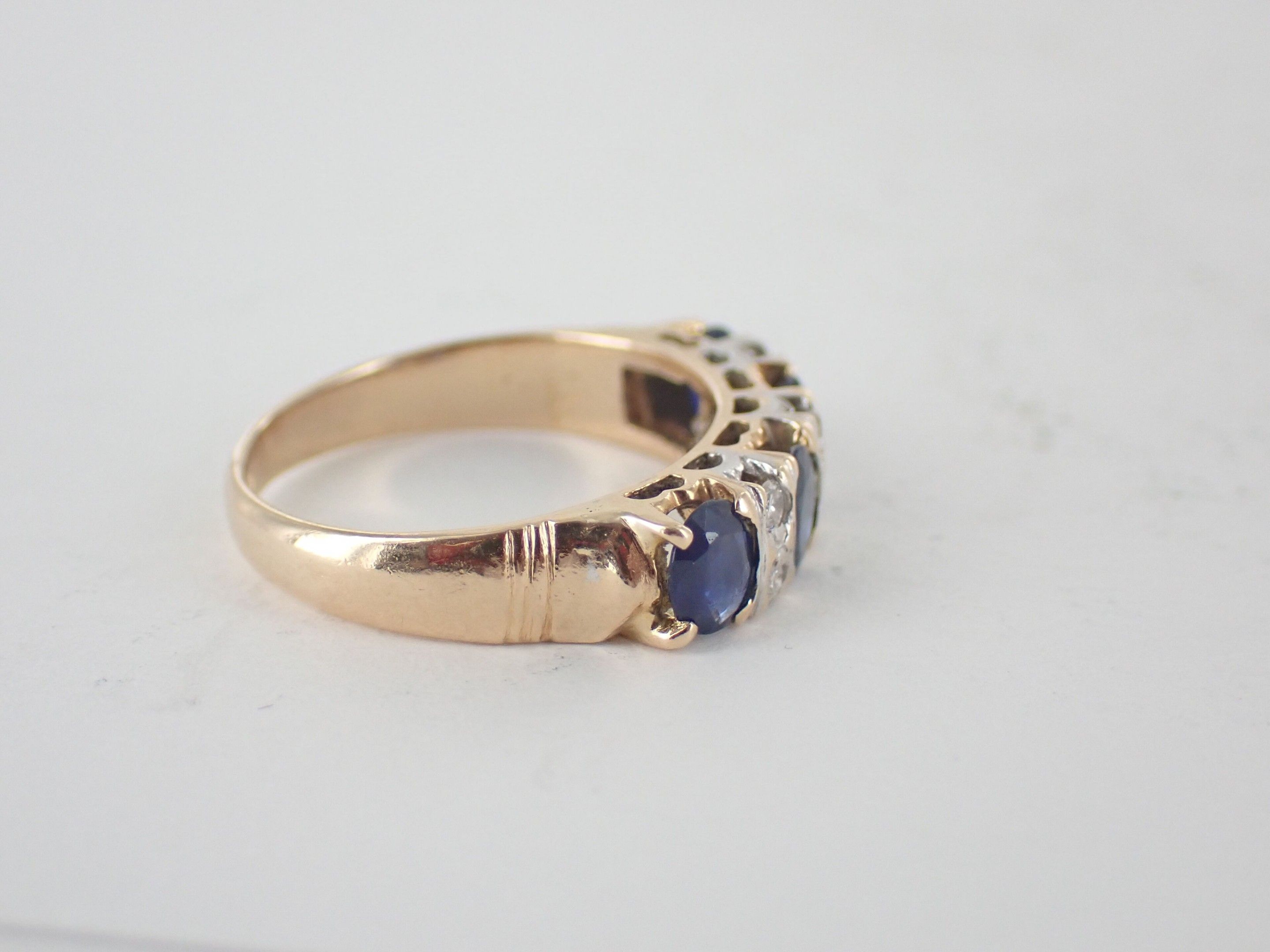 Garter ring in 585 thousandths gold set with four sapphires cut with diamonds and white stones. Gross weight: approx. 3.9 g. TDD : 53