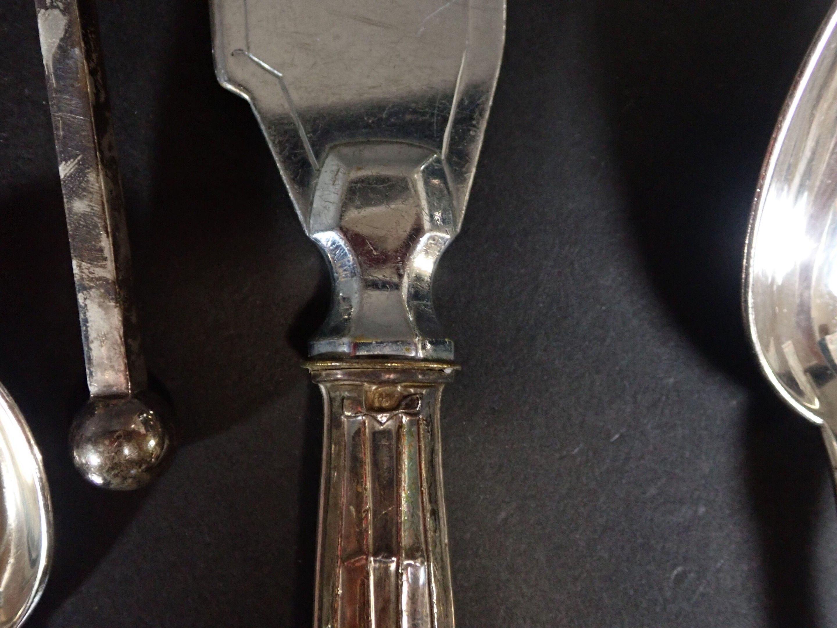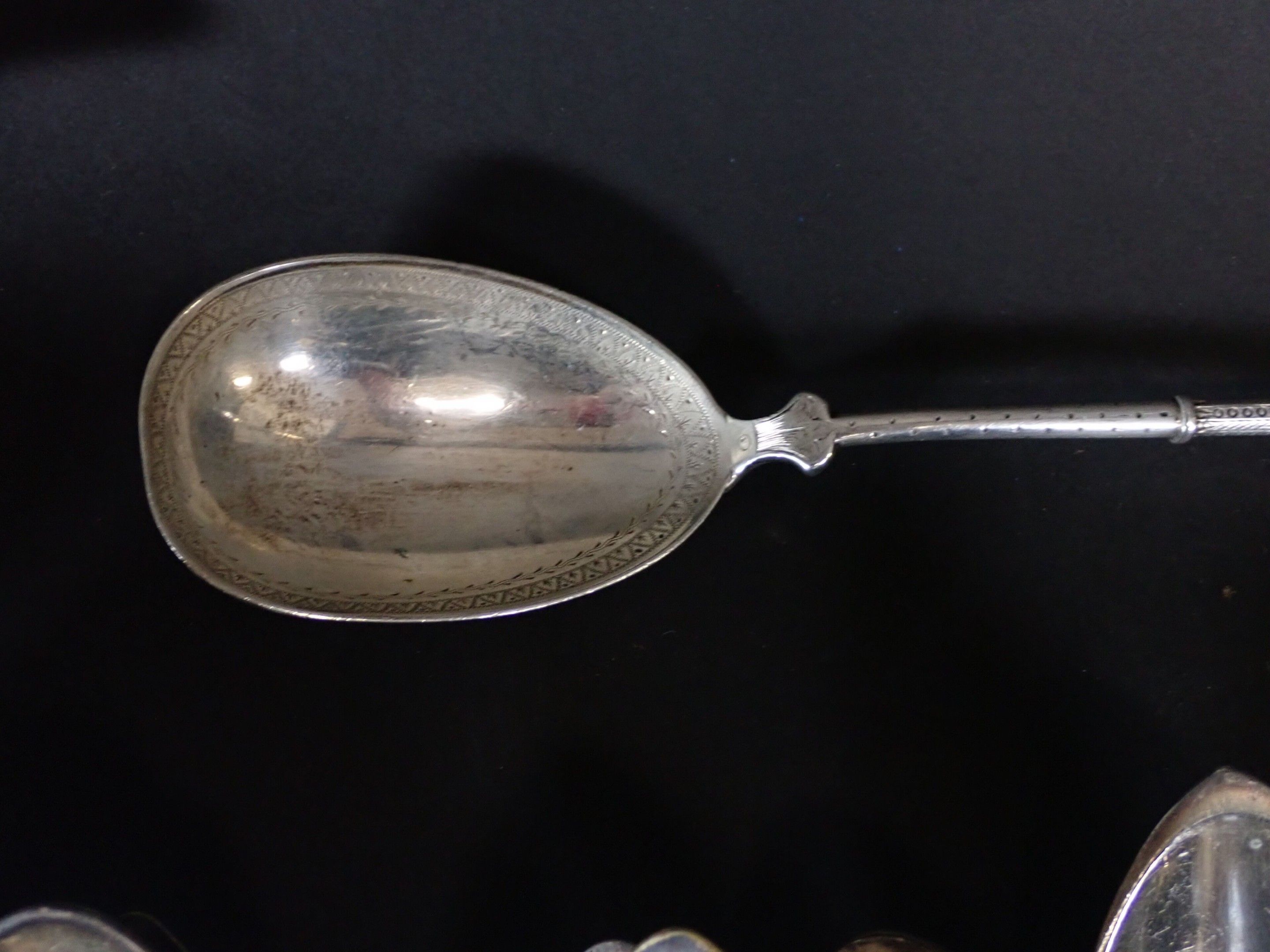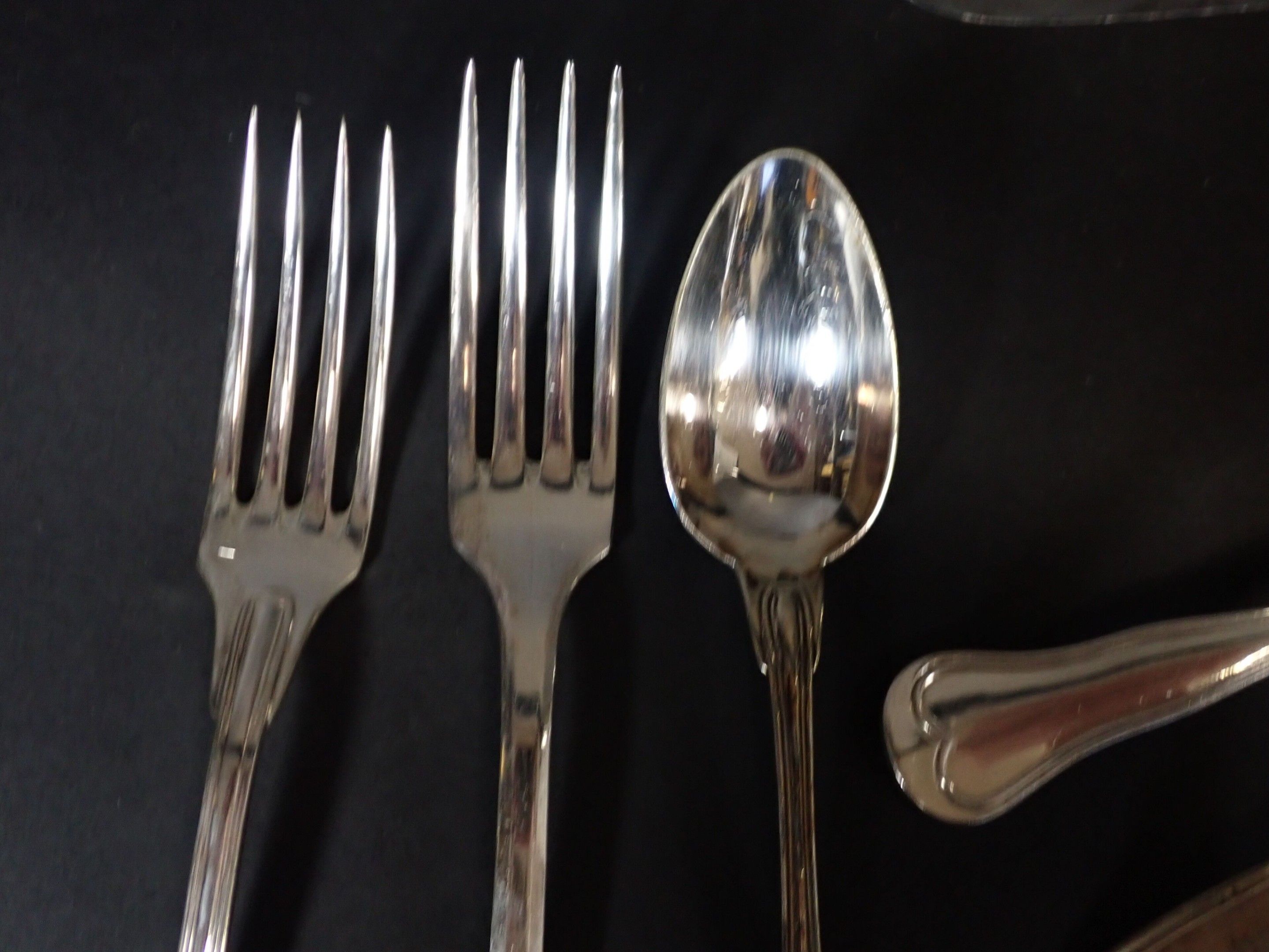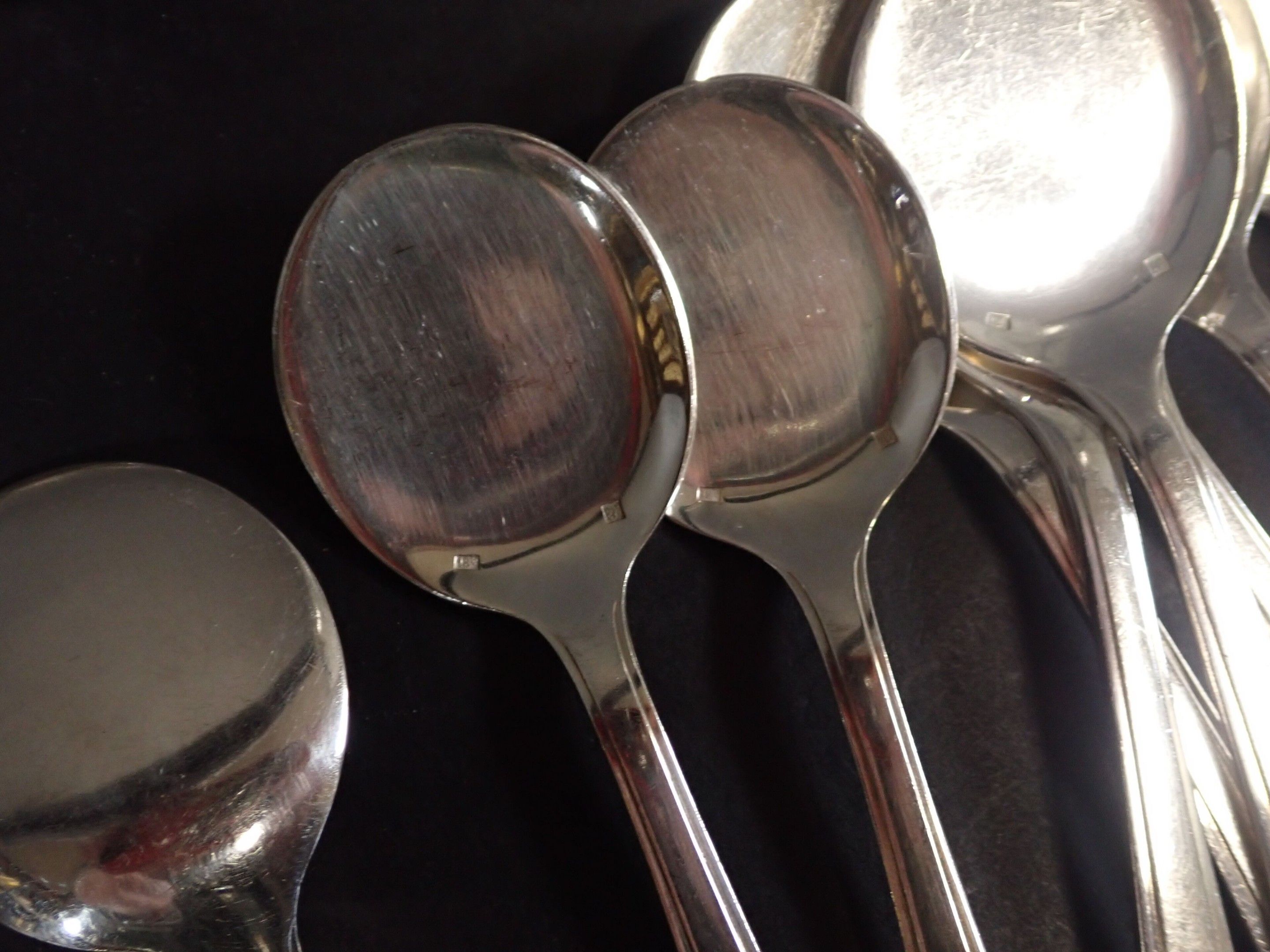 Various models with contour purfling, including numerous soup spoons, ice-cream spoons, forks, fish knives, etc. Total weight: 3580 g of metal