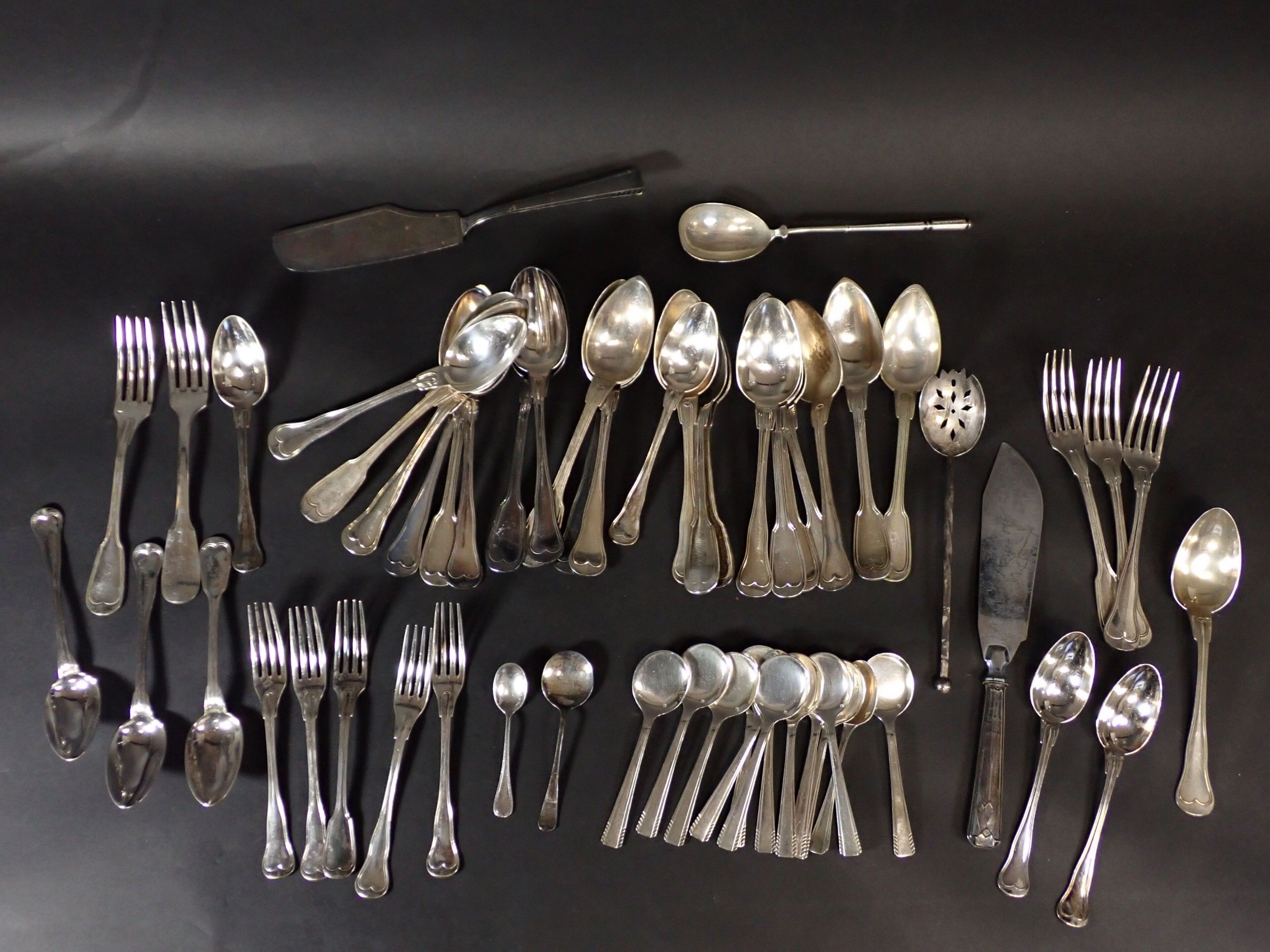Very important set of silver-plated flatware, including many examples by Christofle, some by Ercuis and others.
