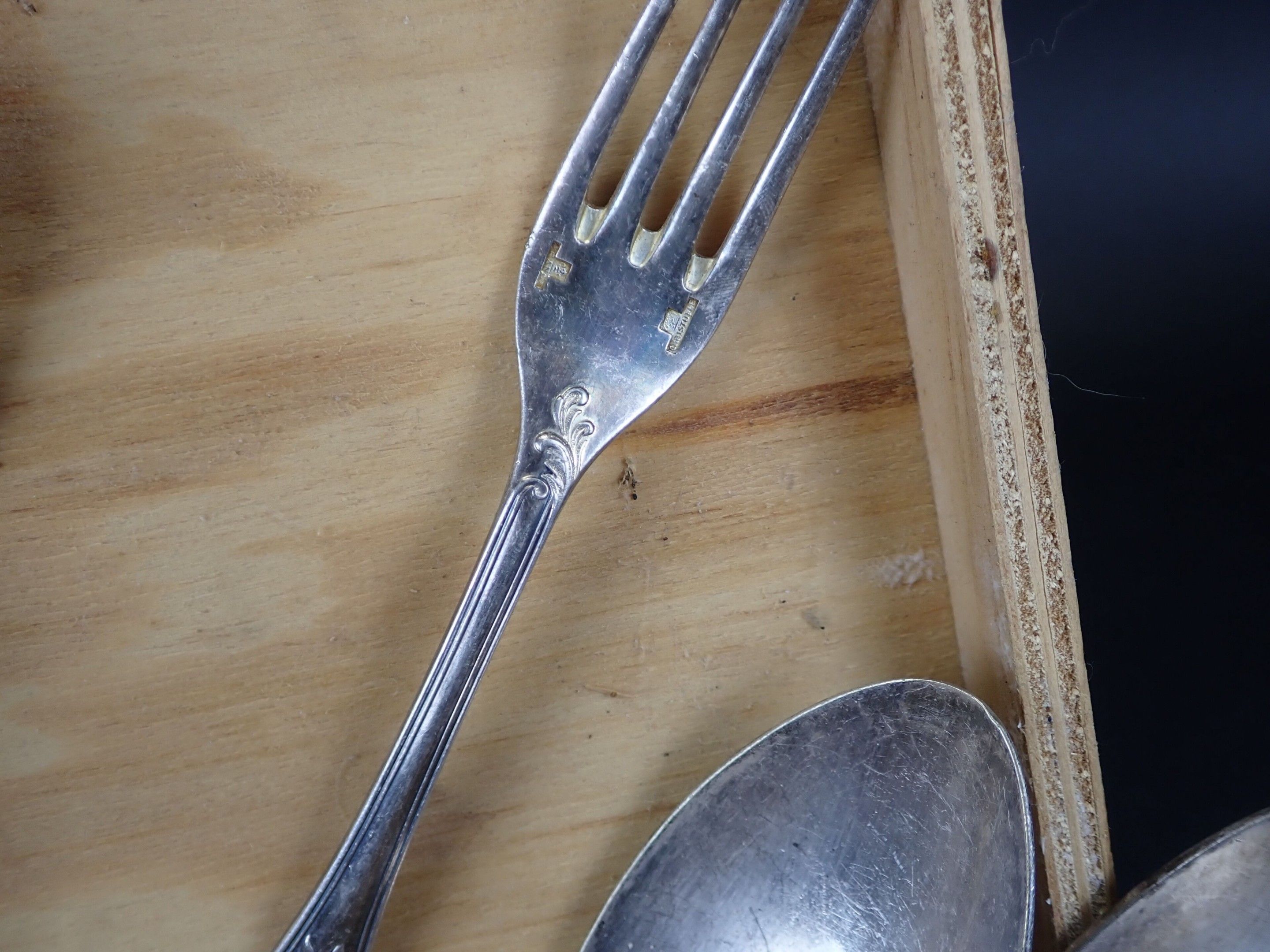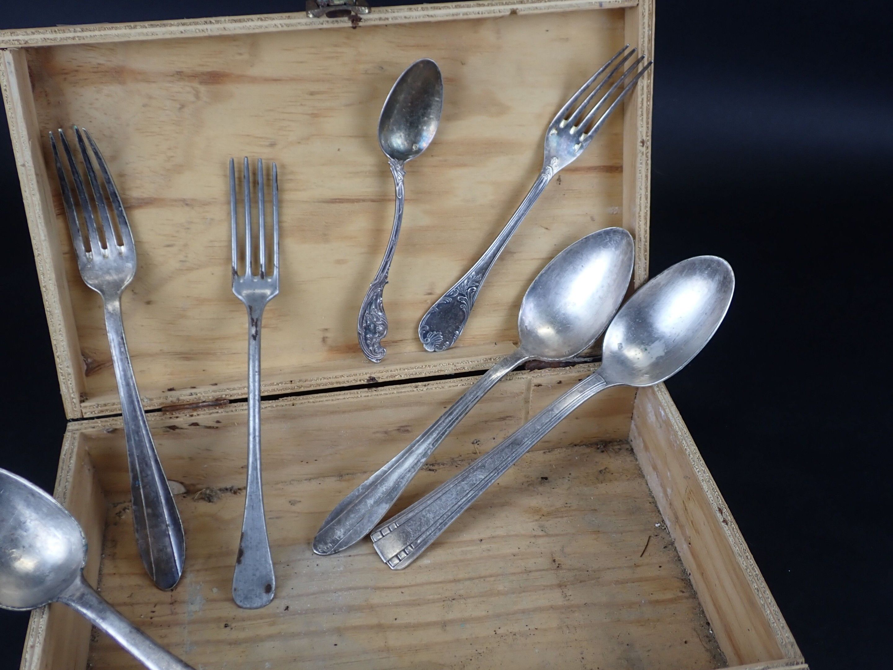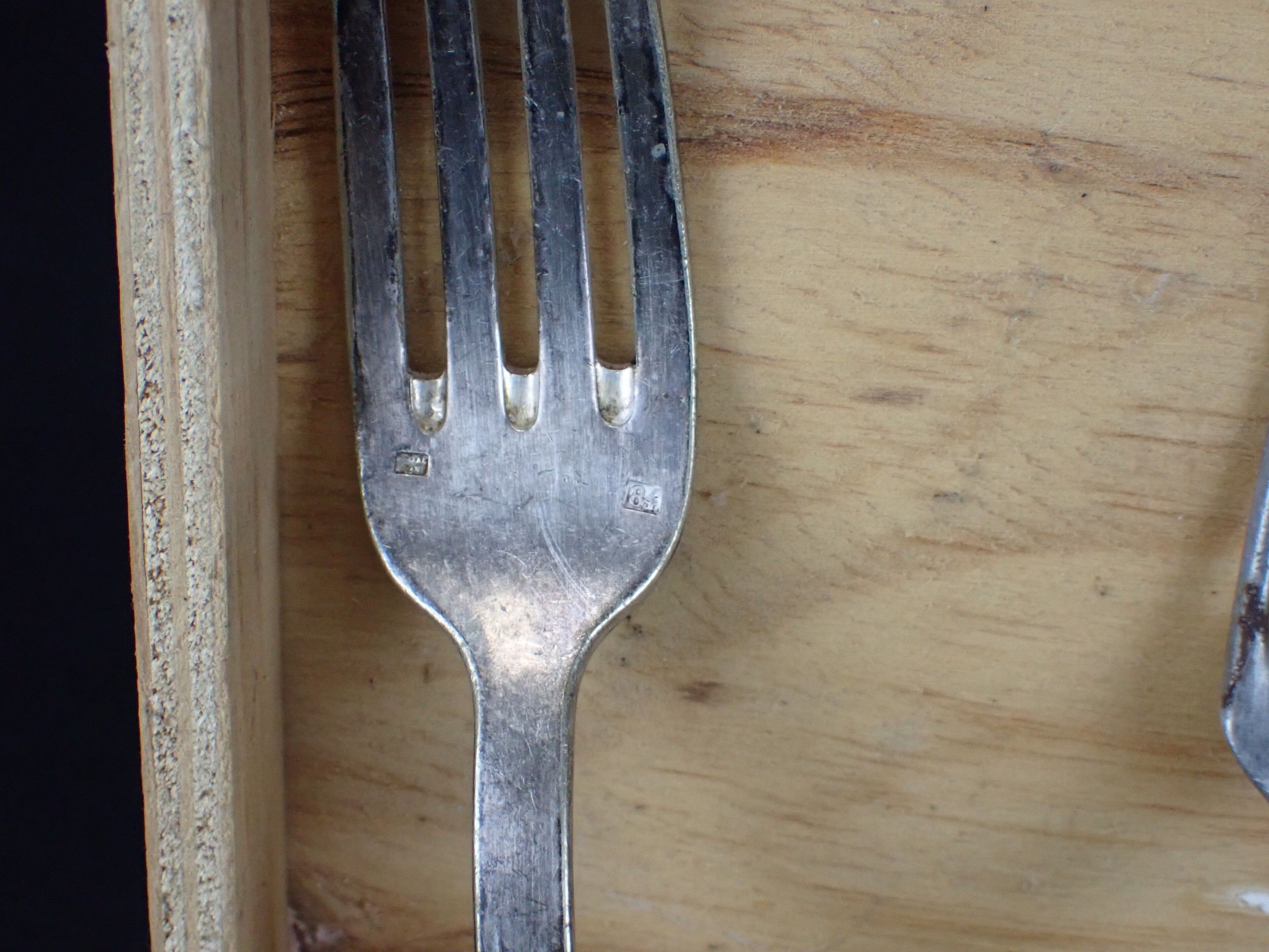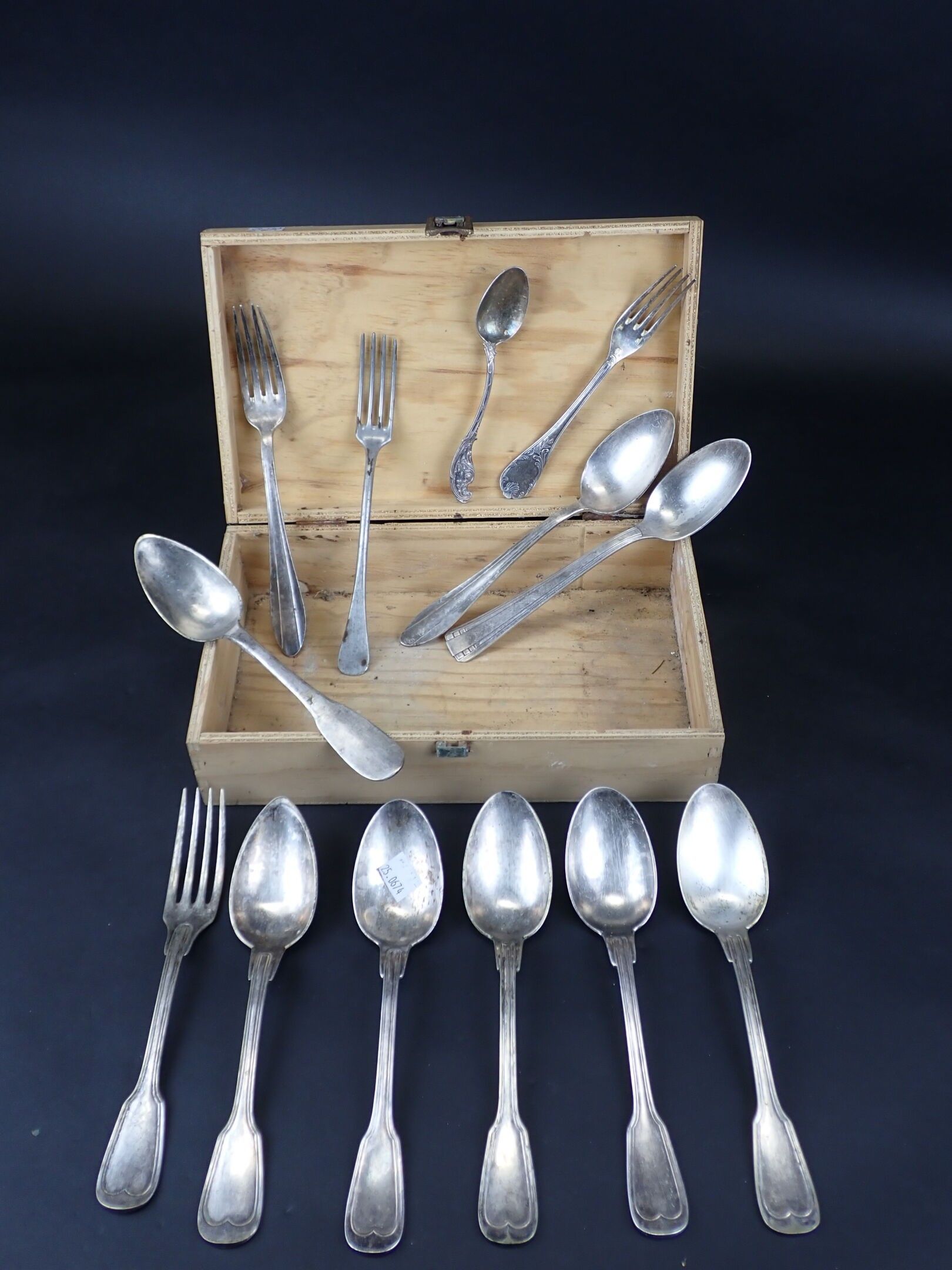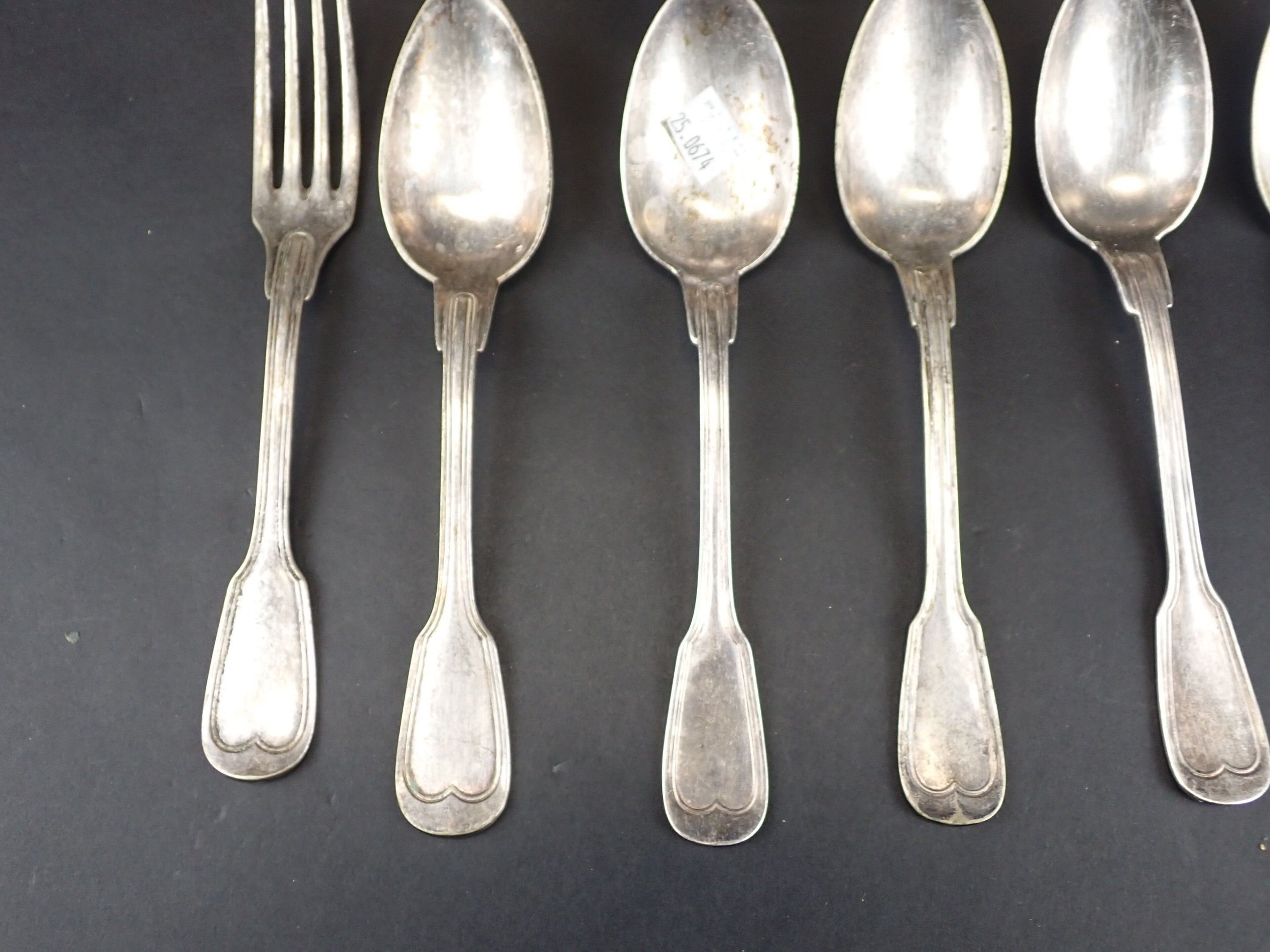 Lot of silver metal flatware including two silver spoons 800 net weight of silver: 96.4 g. Used condition