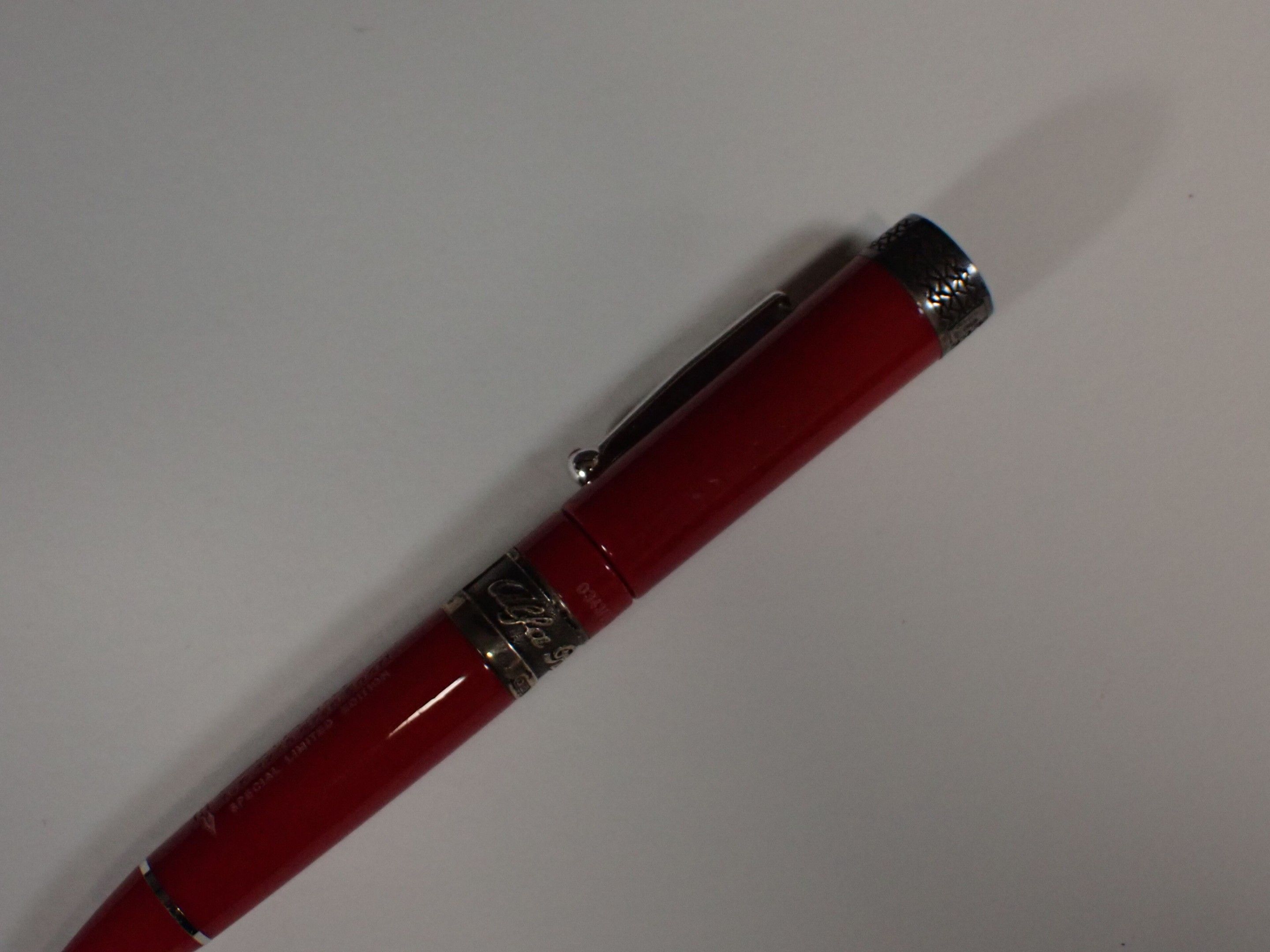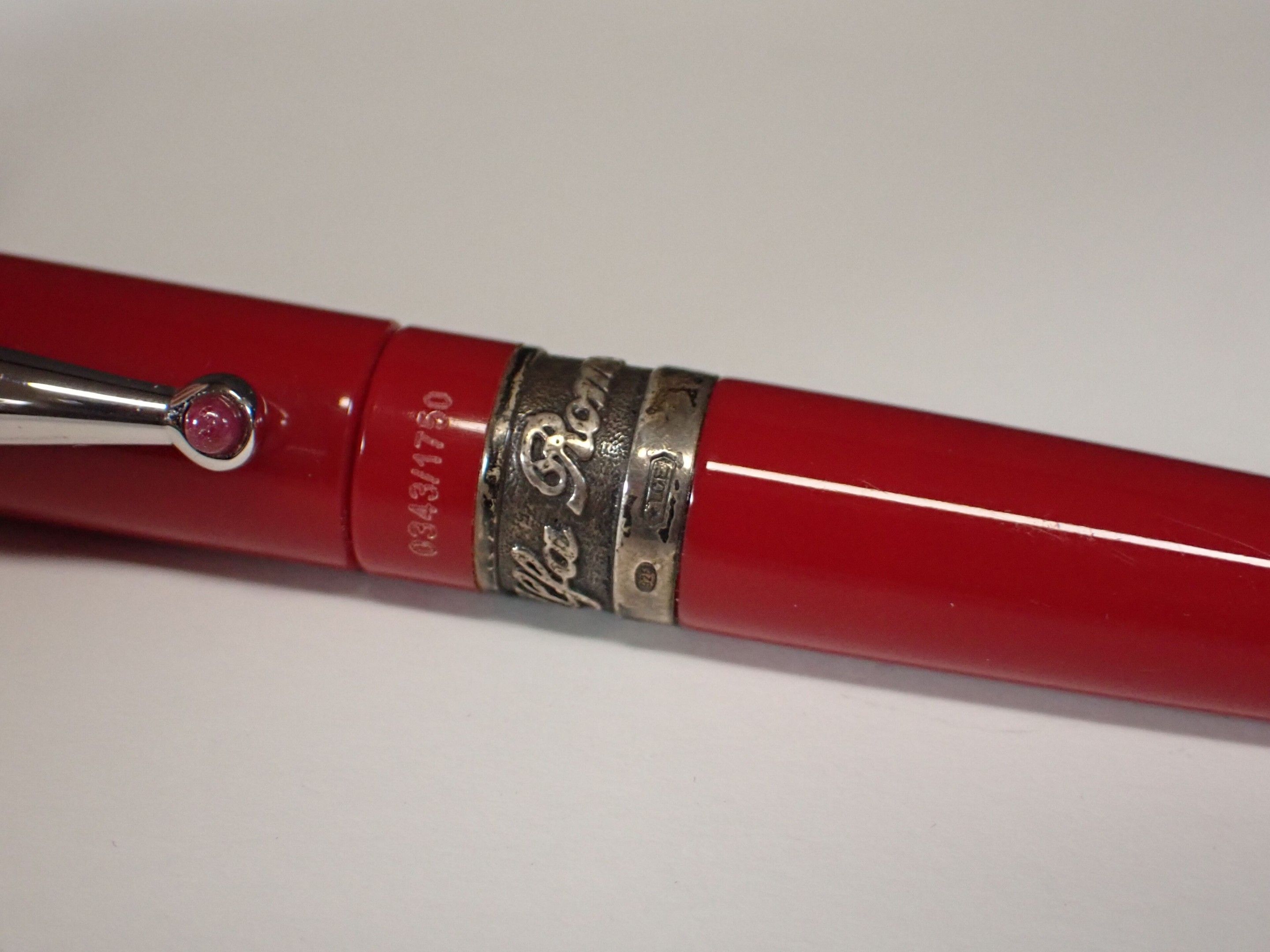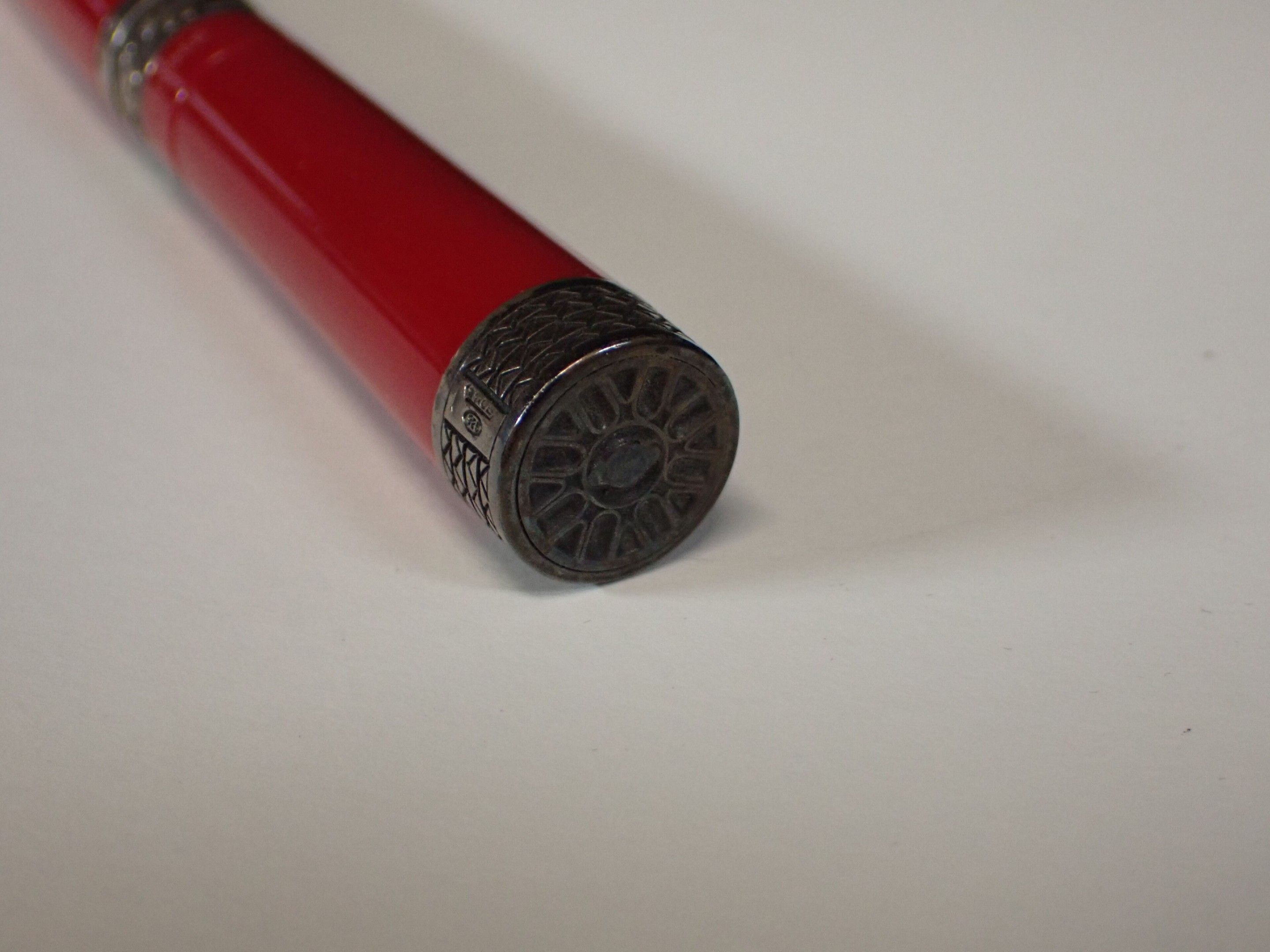 DELTA Italy - "Alfa Romeo 1750 Gran Sport" biros with silver rings, limited edition of 1750 in red resin and 925 thousandths sterling silver rings decorated with a car radiator grille. Gross weight: 37 g, in box, with booklet, numbered 343/1750. Good condition
