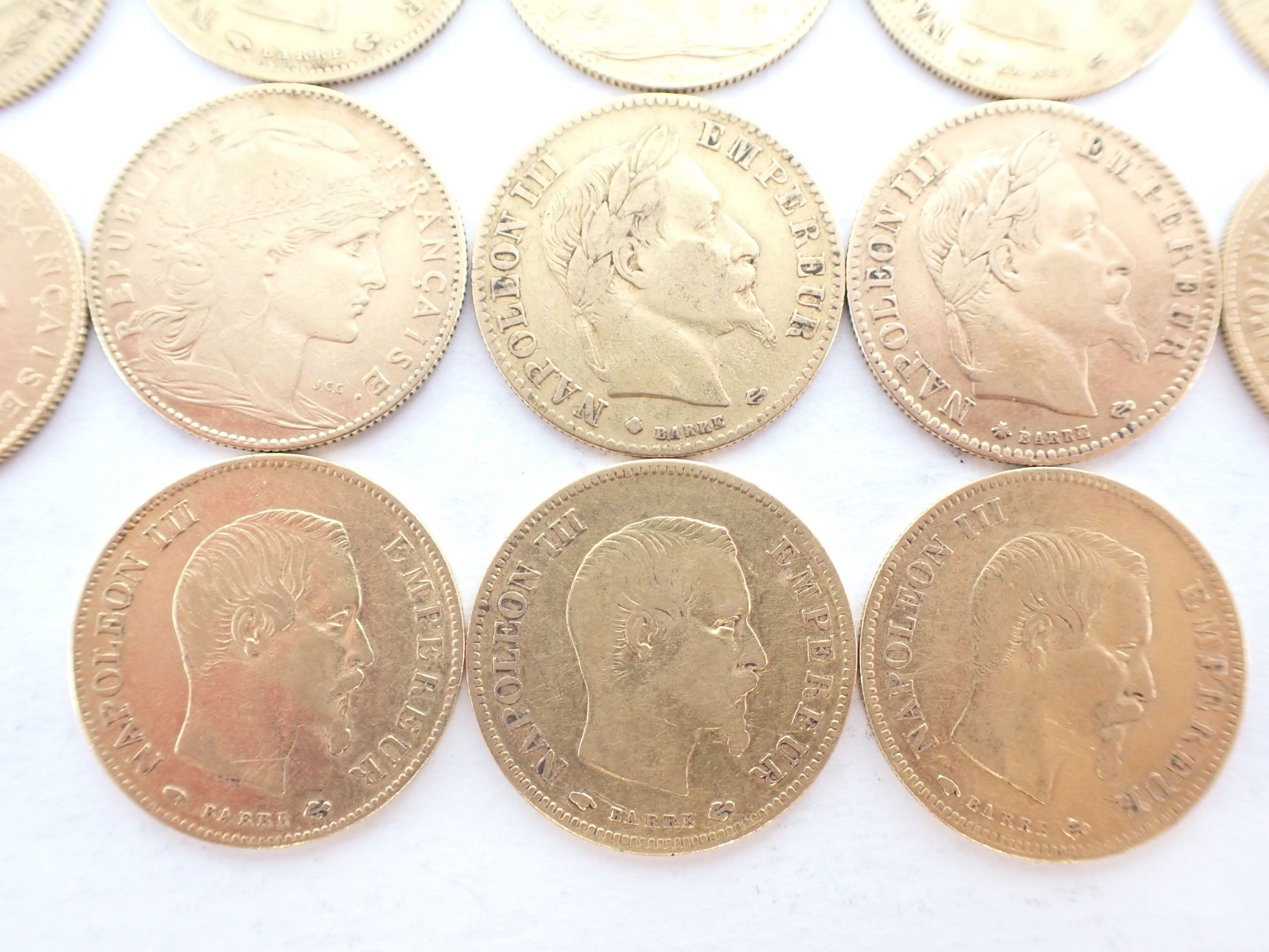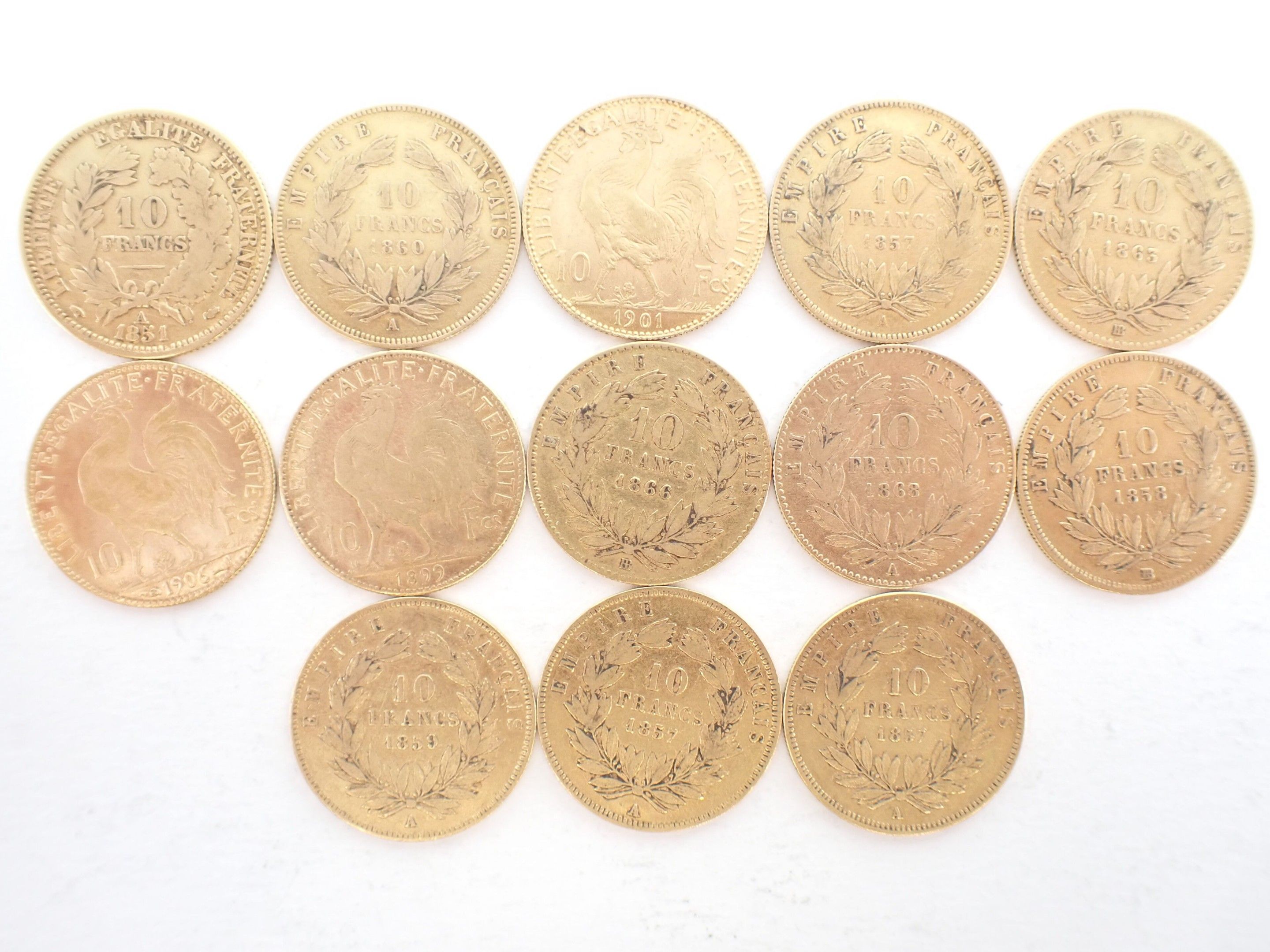 FRANCE: Set of 13 10 Franc gold coins including :