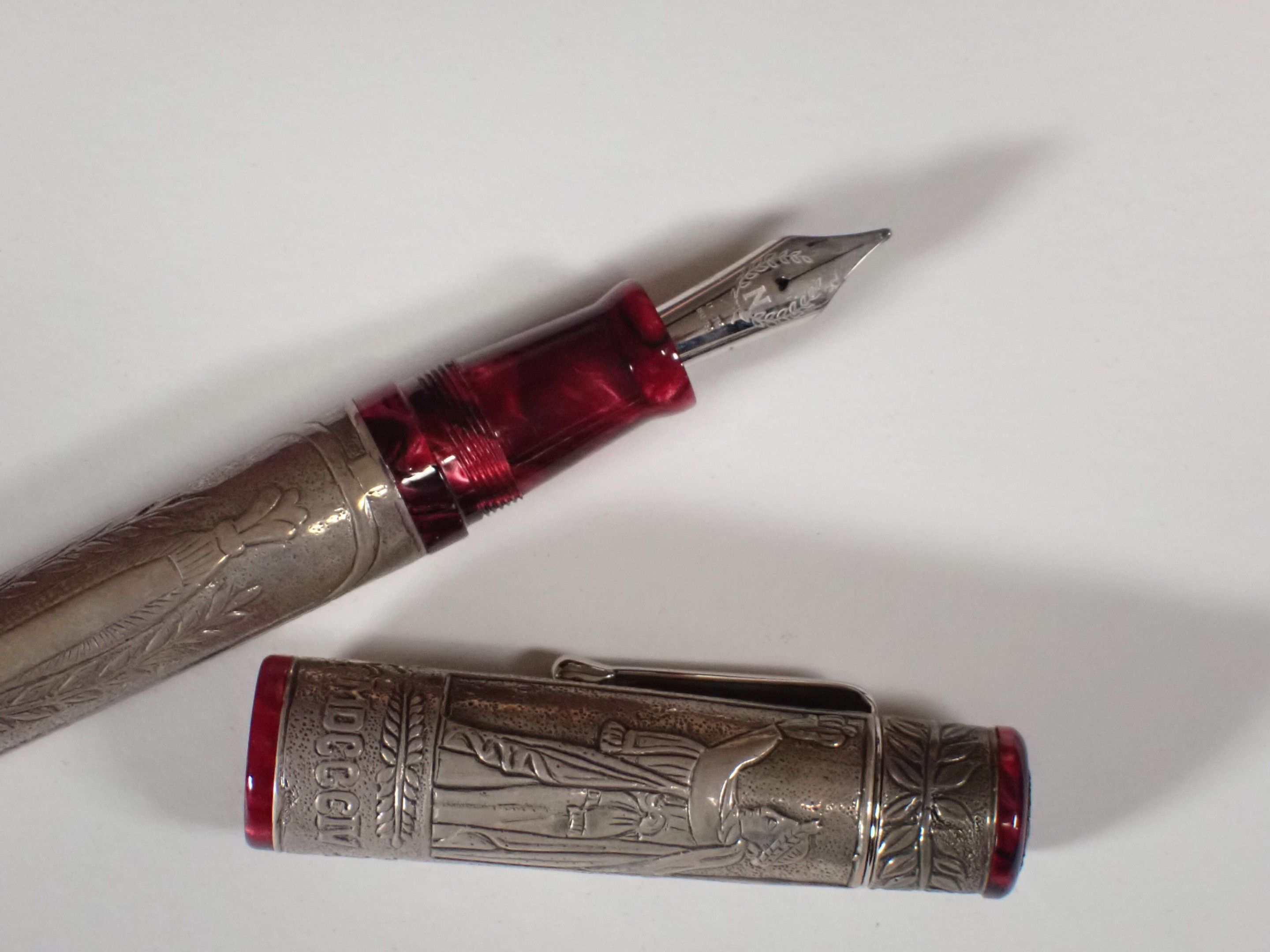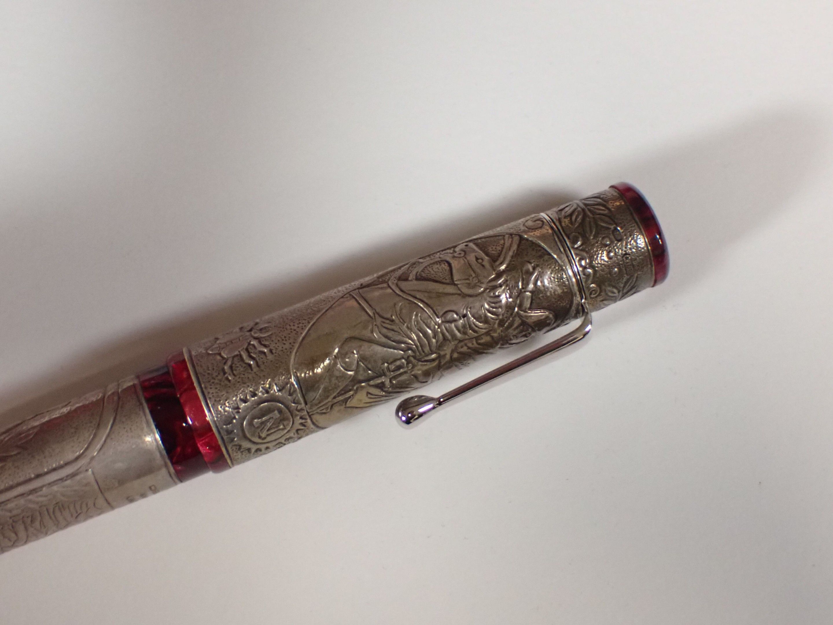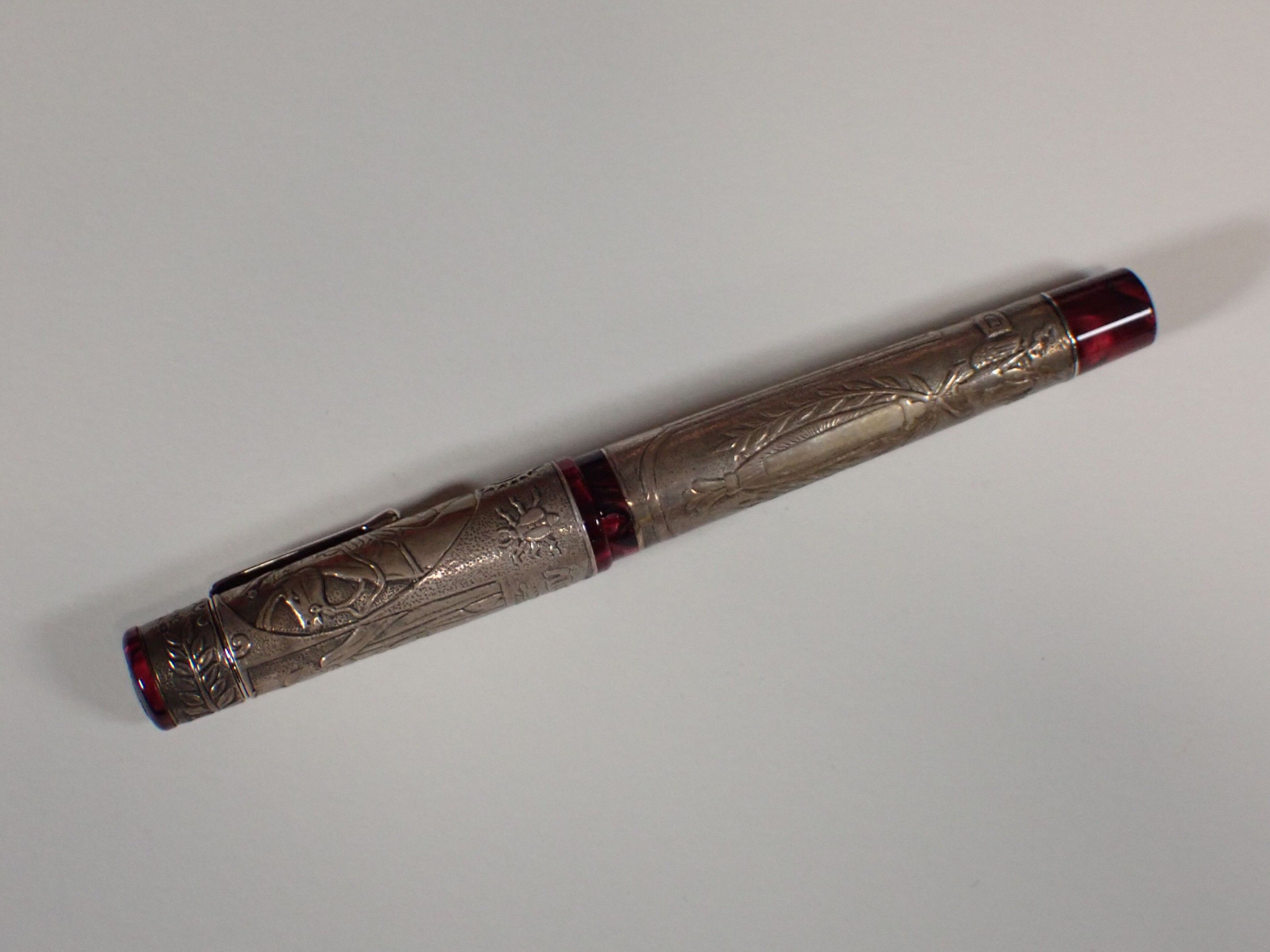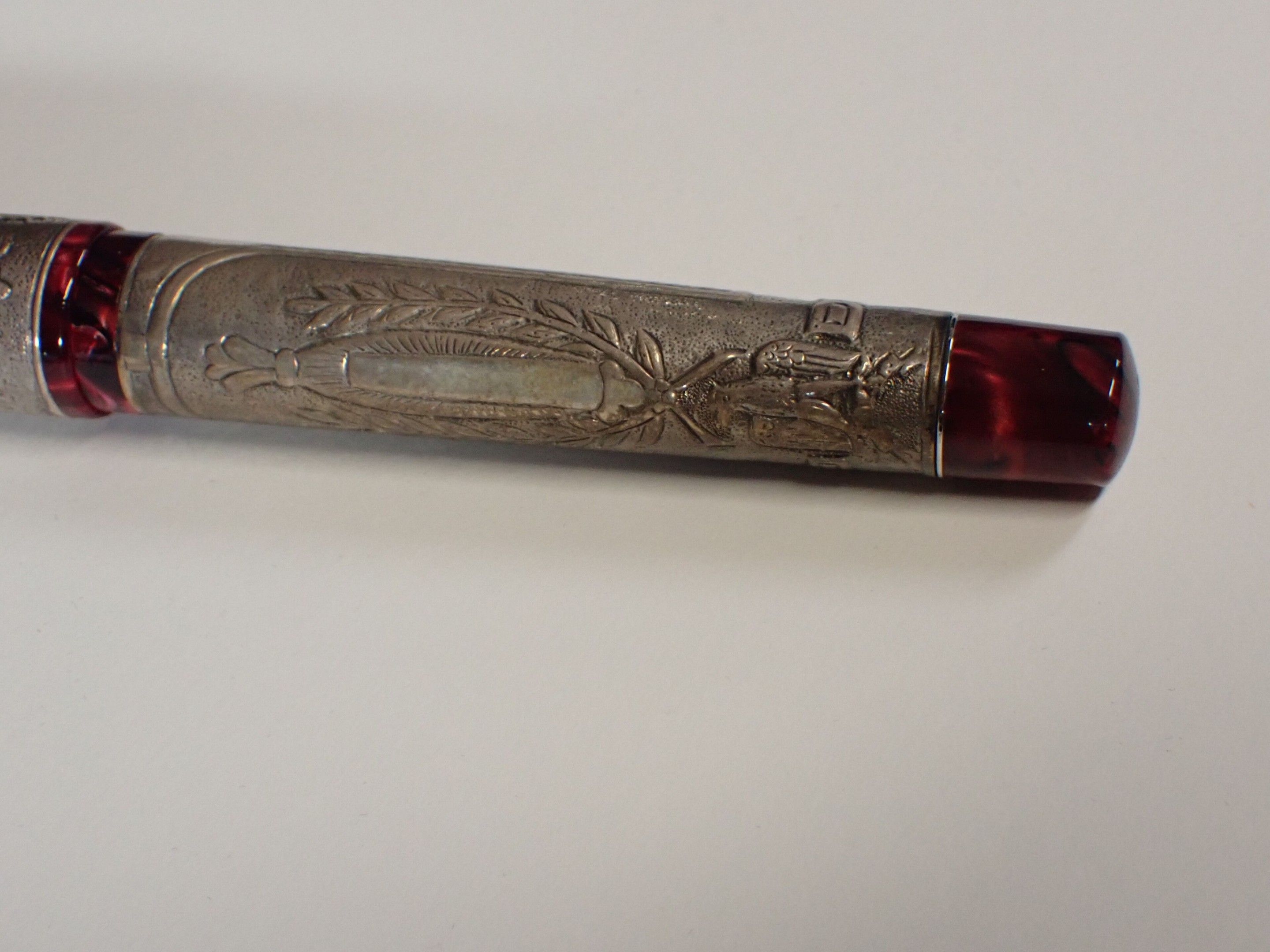 DELTA Italy - "Napoleone Bonaparte" biros in 750 gold, limited edition of 808 in red resin and 925 thousandths sterling silver setting decorated with the coronation of Napoleon and a battle scene. Gross weight: 68g, in box, with inkwell, bronze medal, booklet, numbered 225/808. Good condition