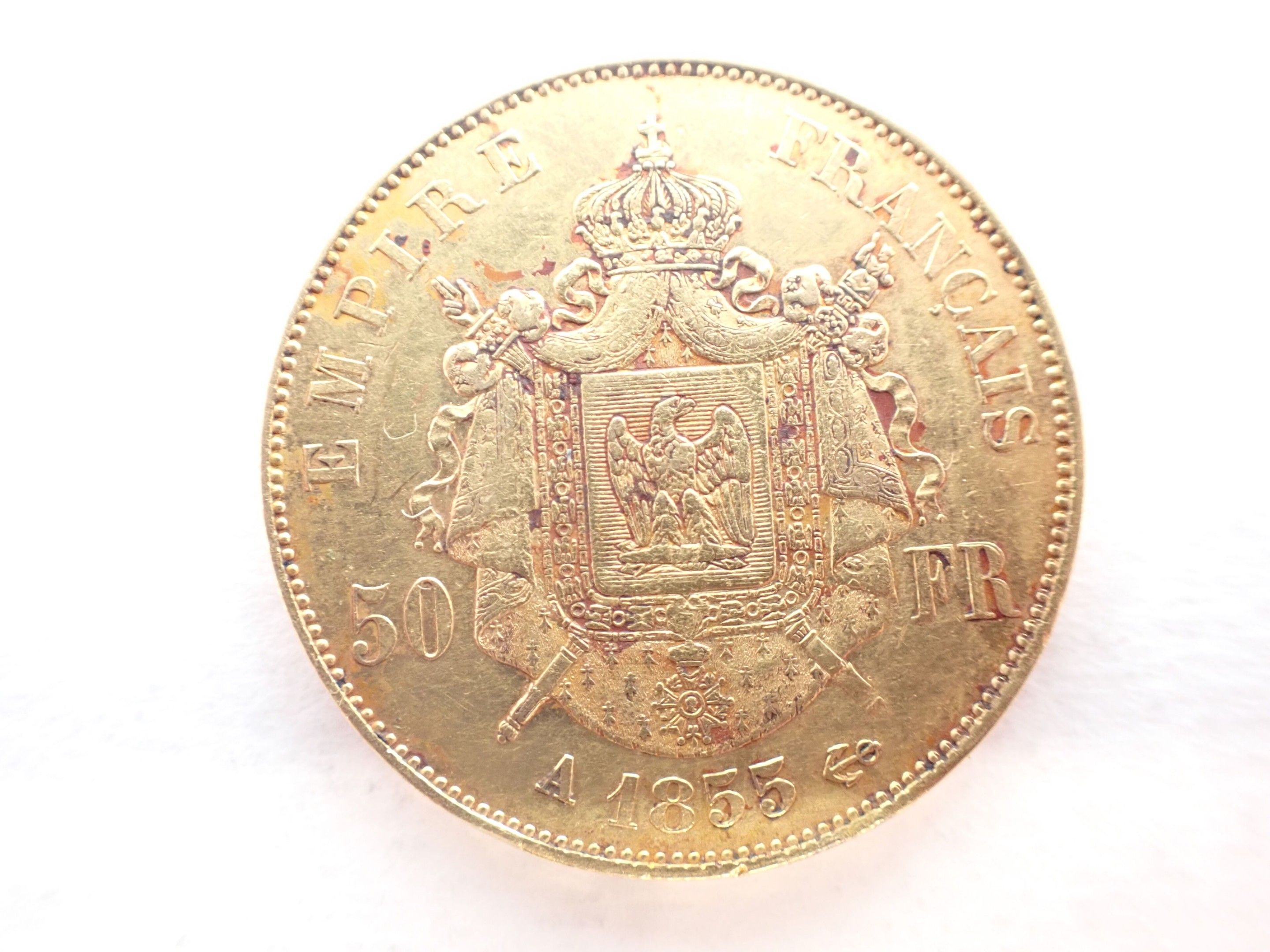 FRANCE : One 50 Franc gold Napoleon III coin, Paris, 1855.