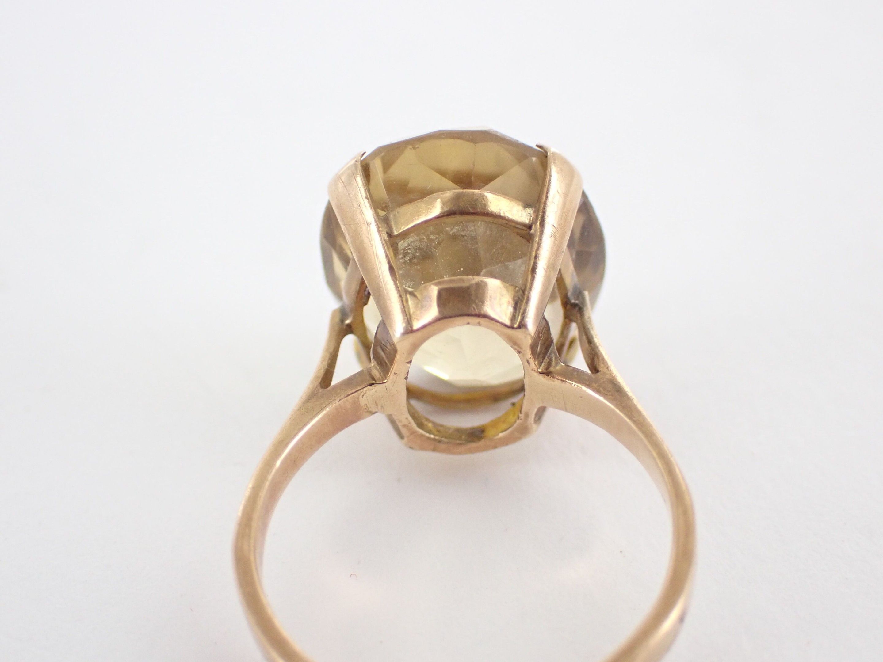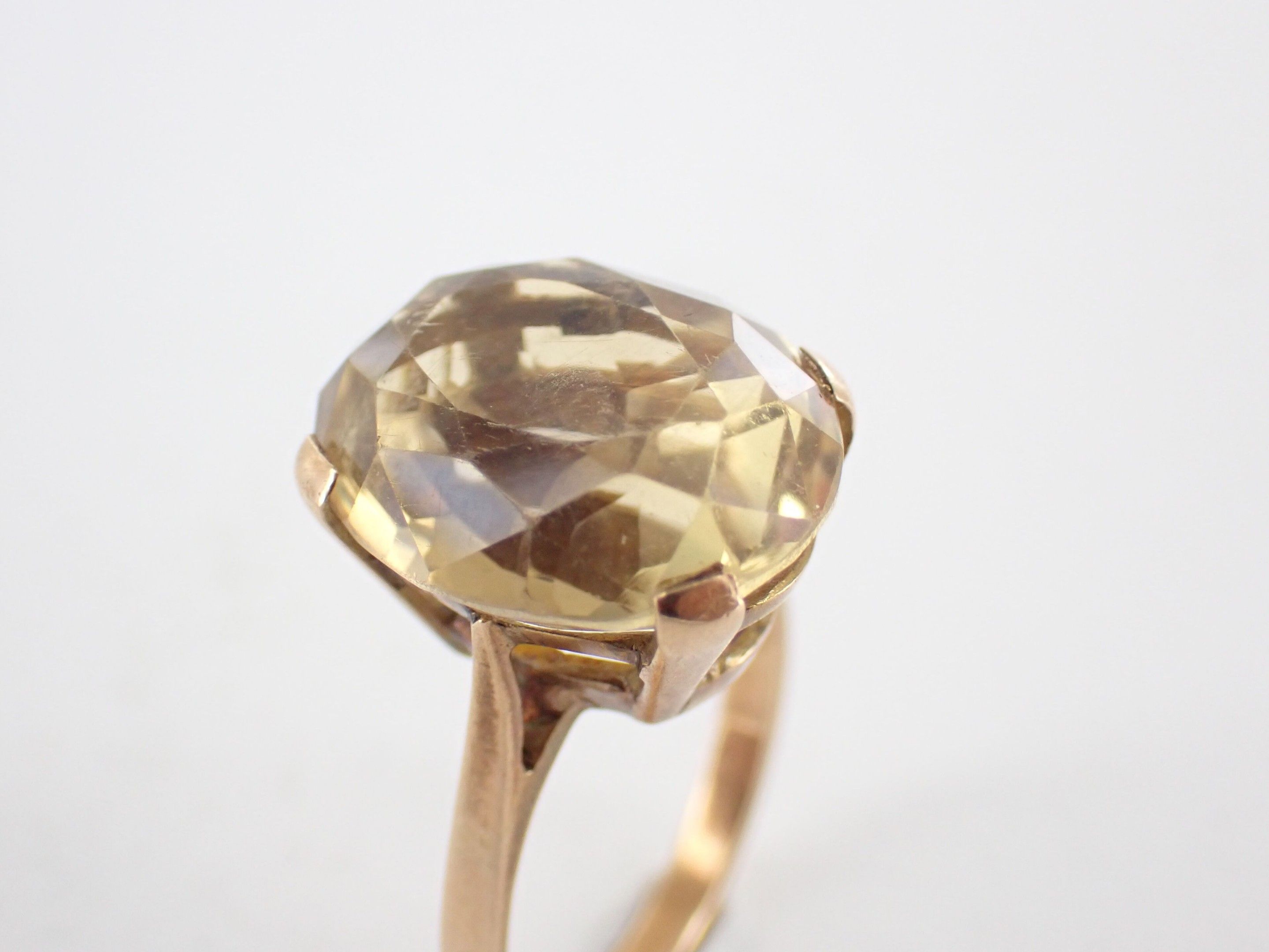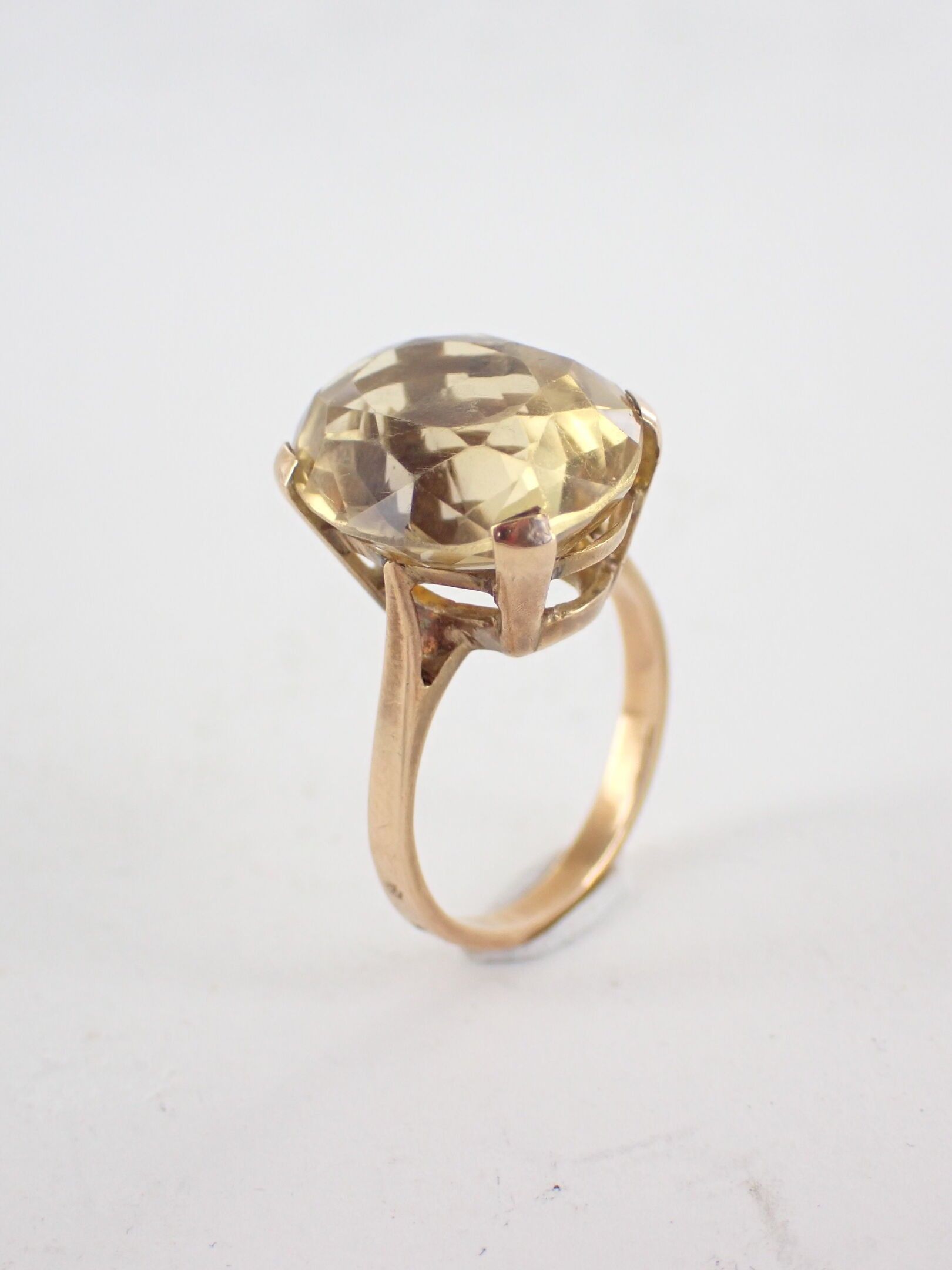 Ring in 18 carat yellow gold, set with a large facetted citr…