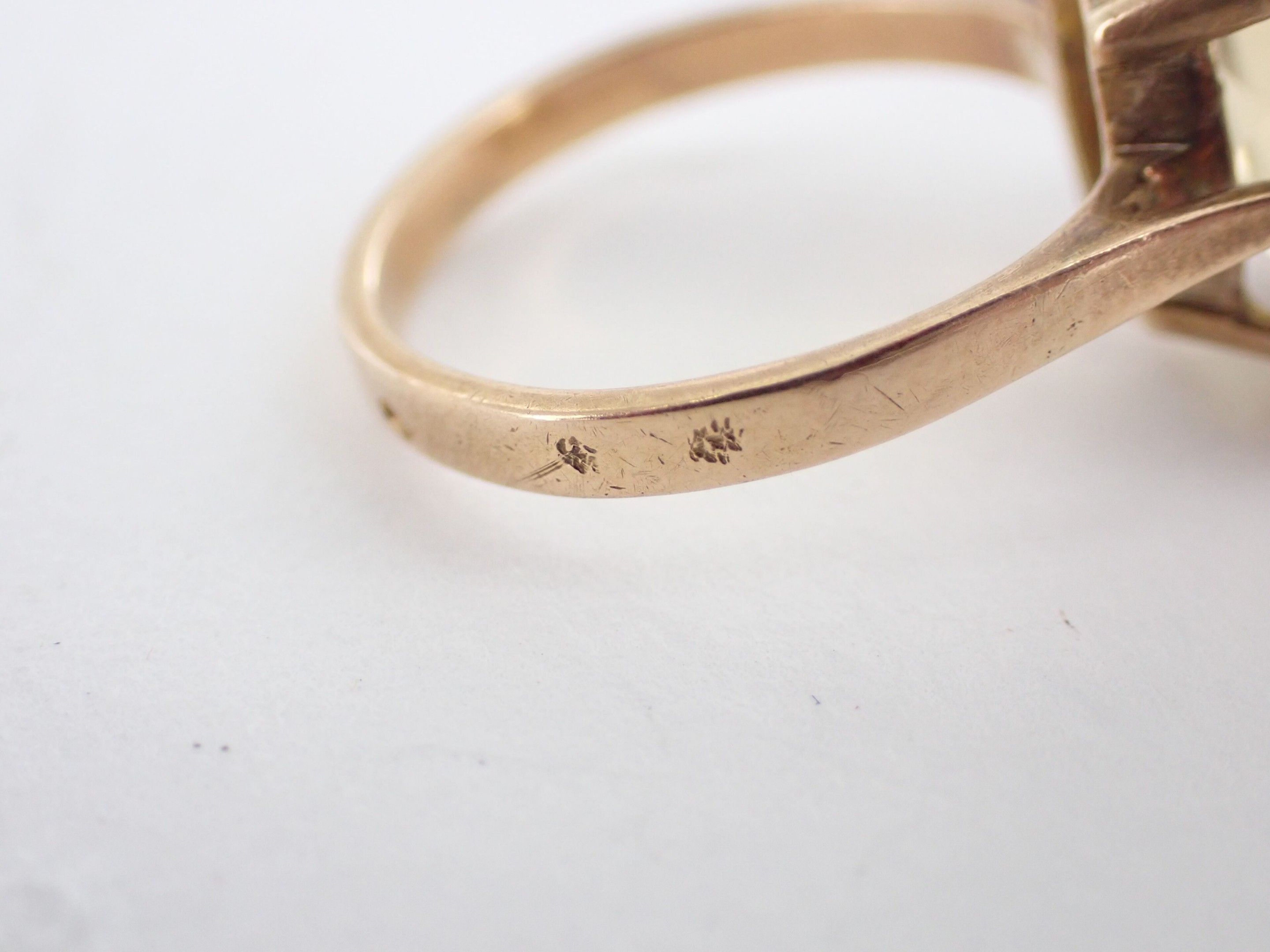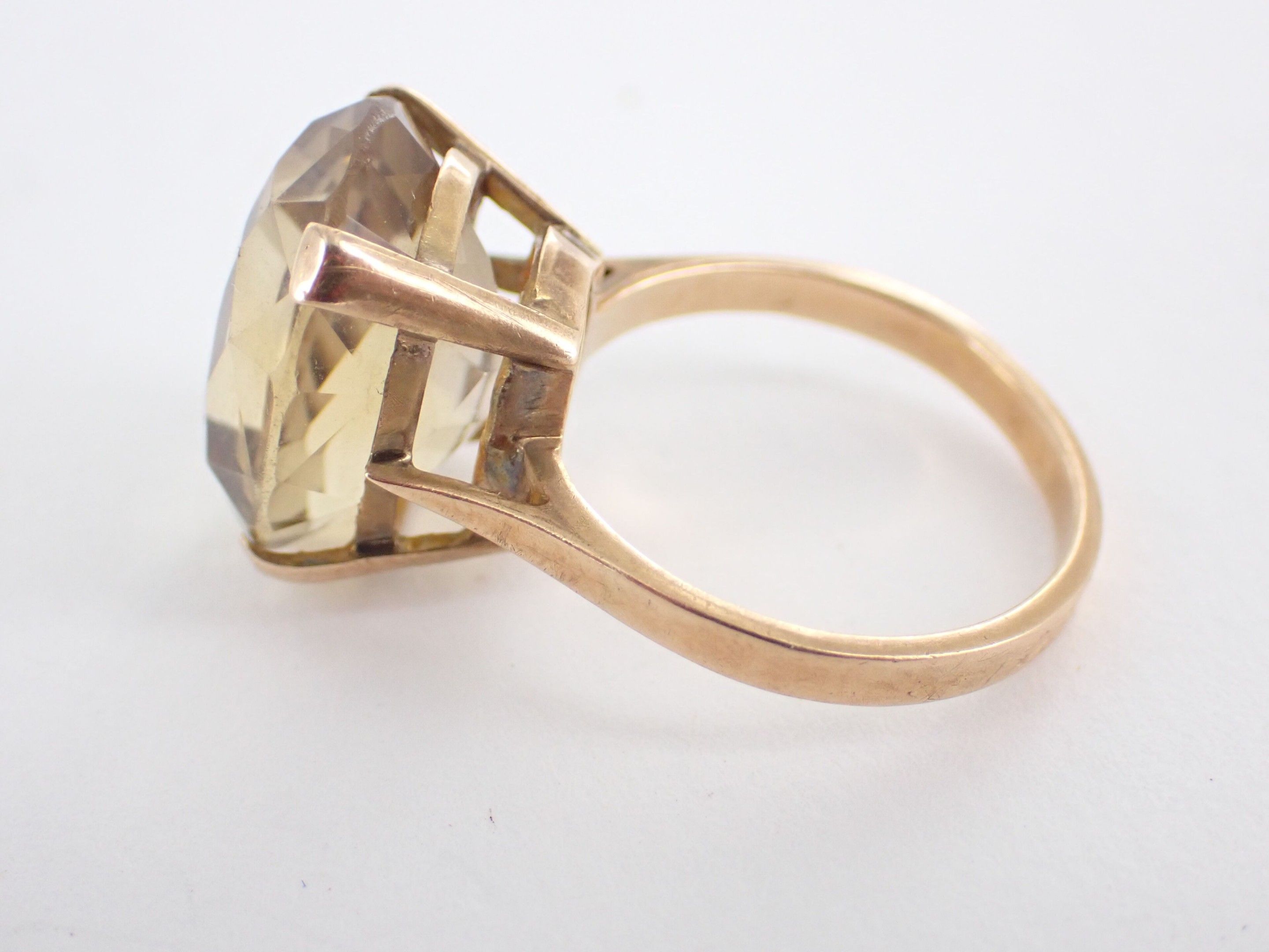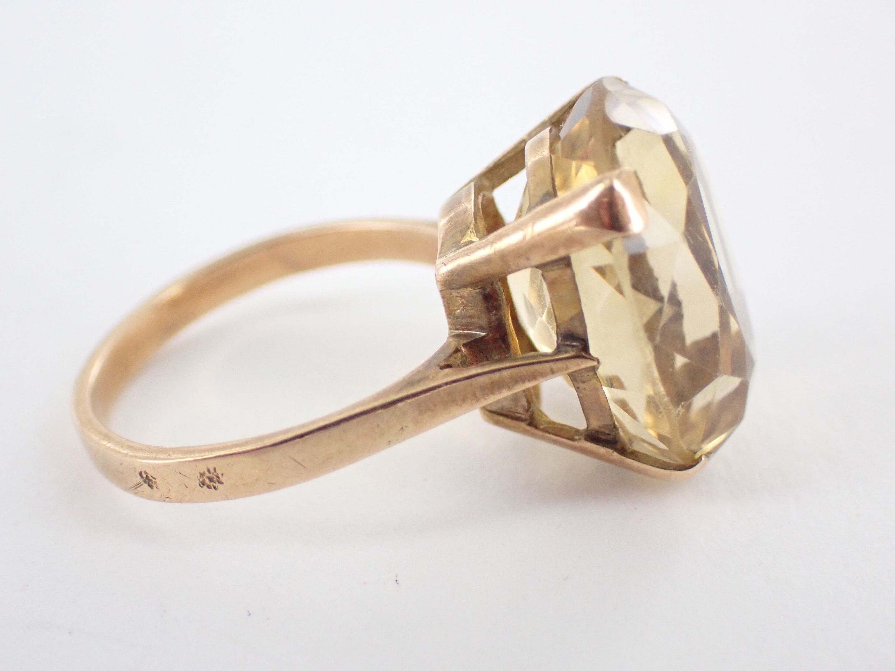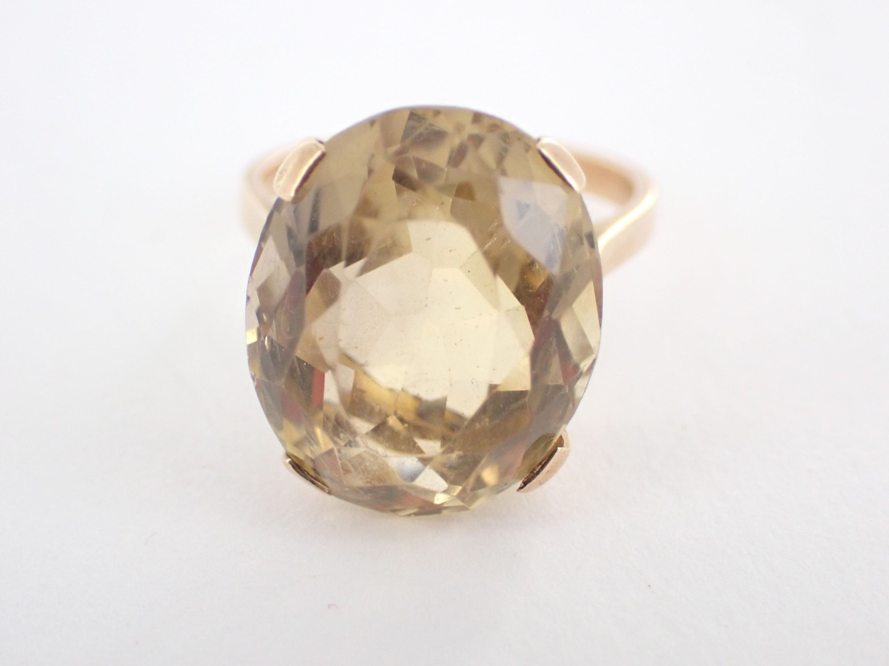 Ring in 18 carat yellow gold, set with a large facetted citr…