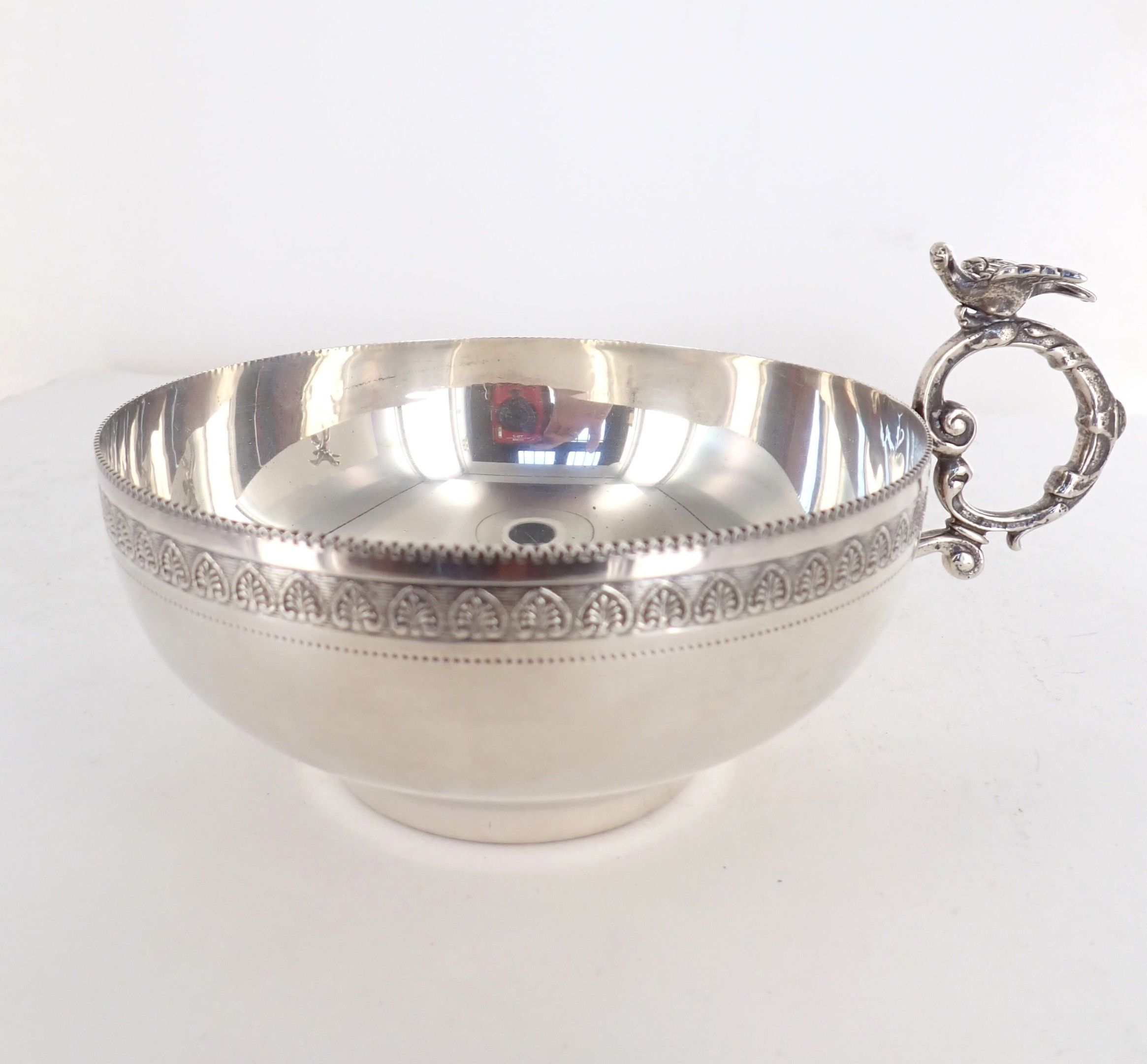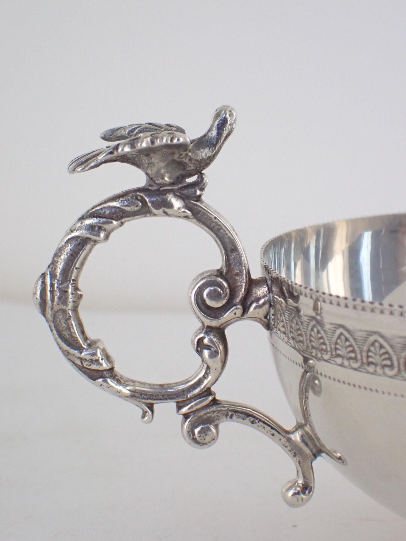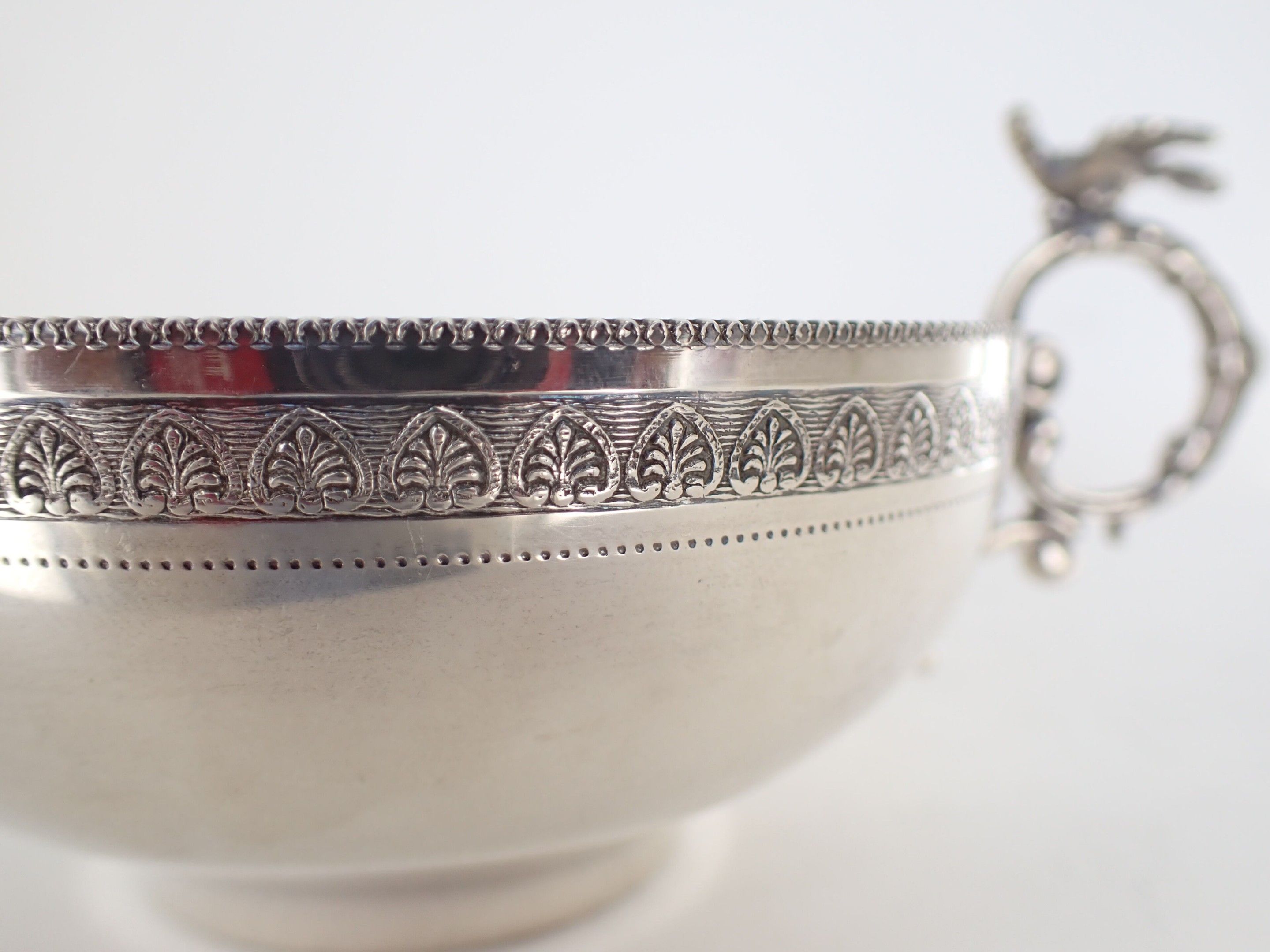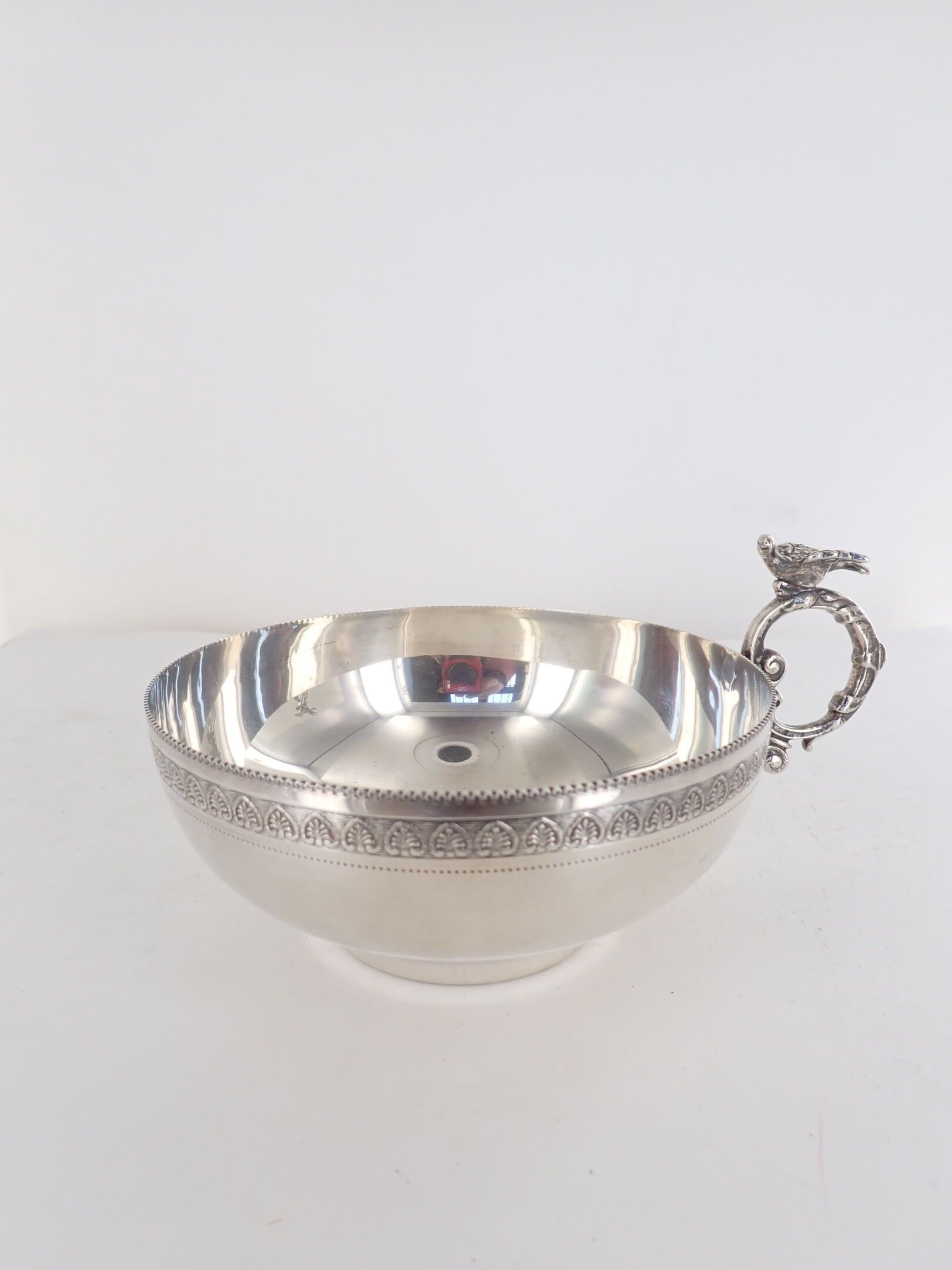 Tea cup in silver 900 thousandth decorated with a frieze of palmette, the handle in clasp with bird