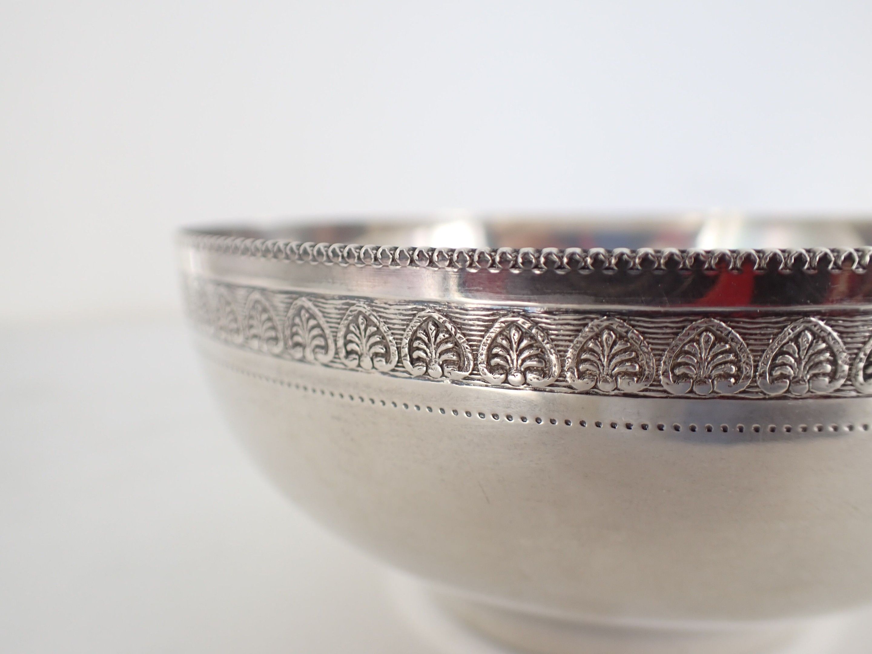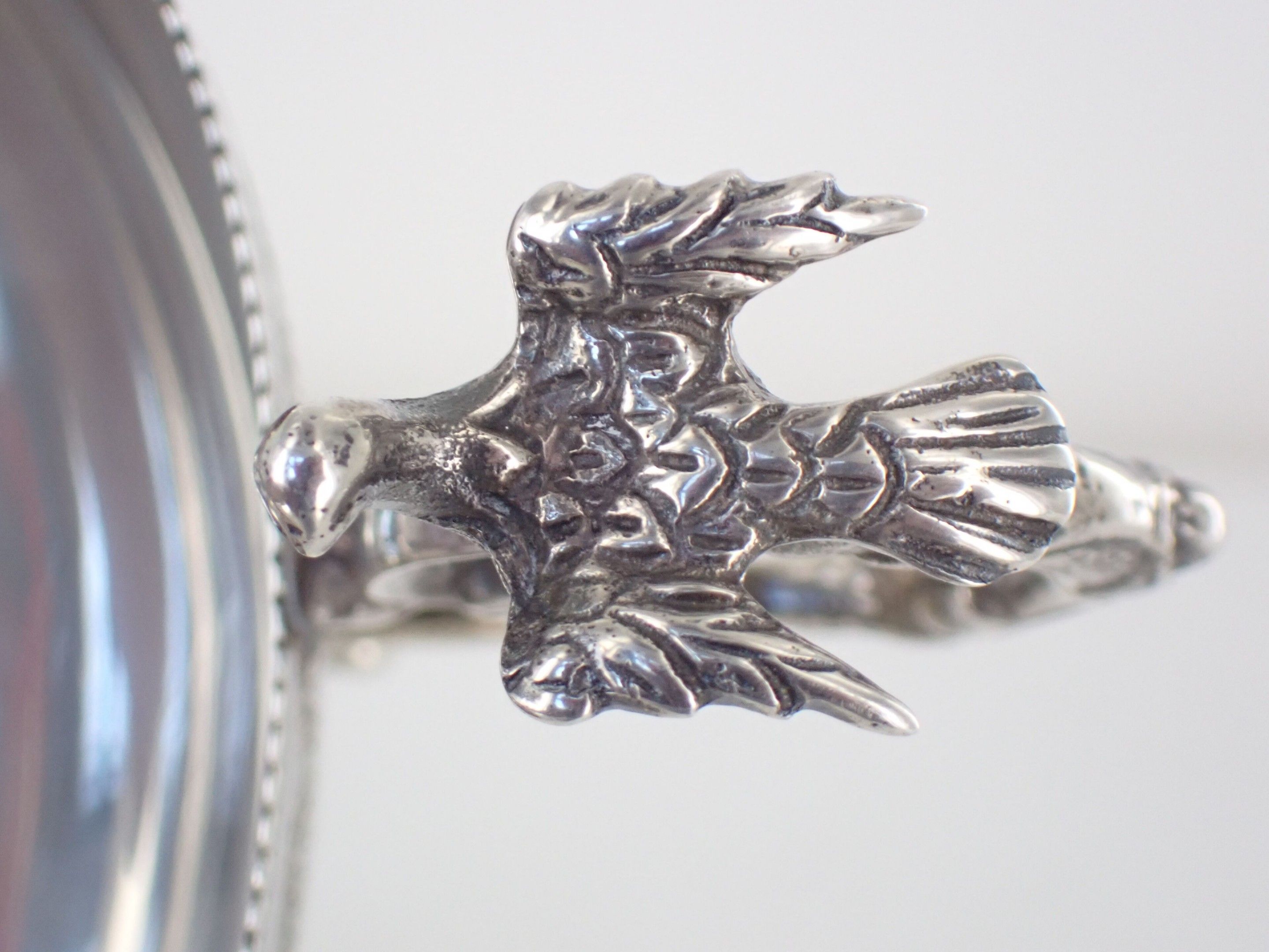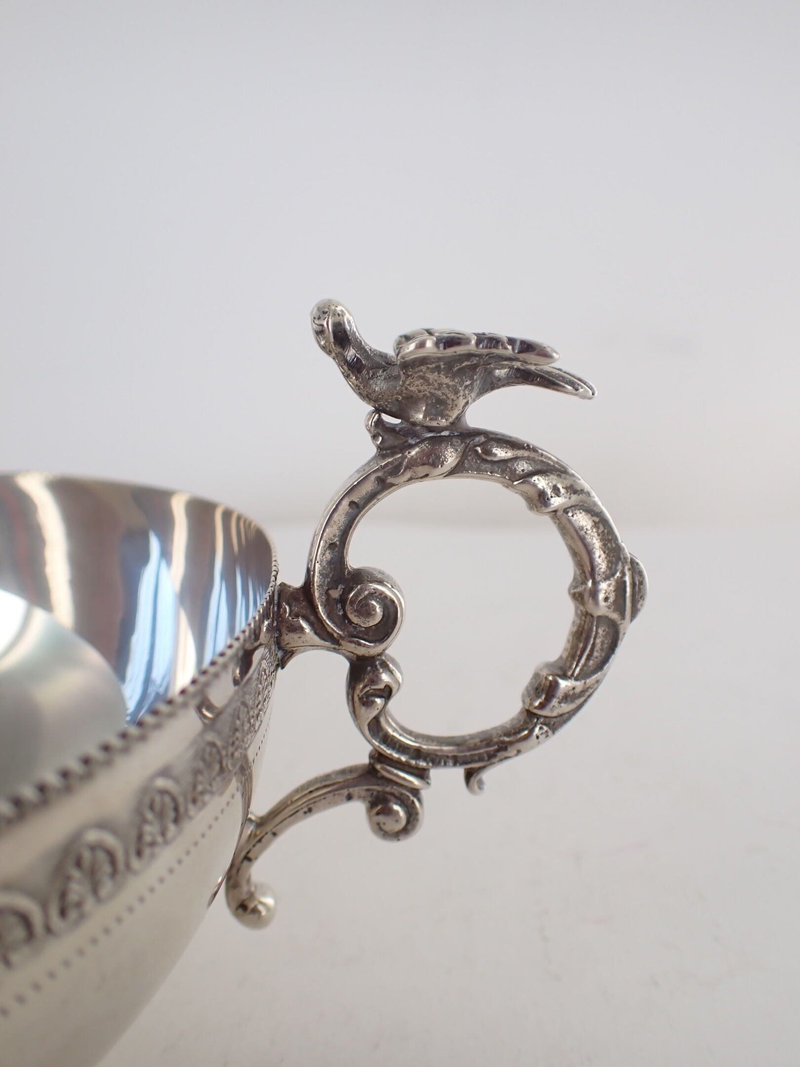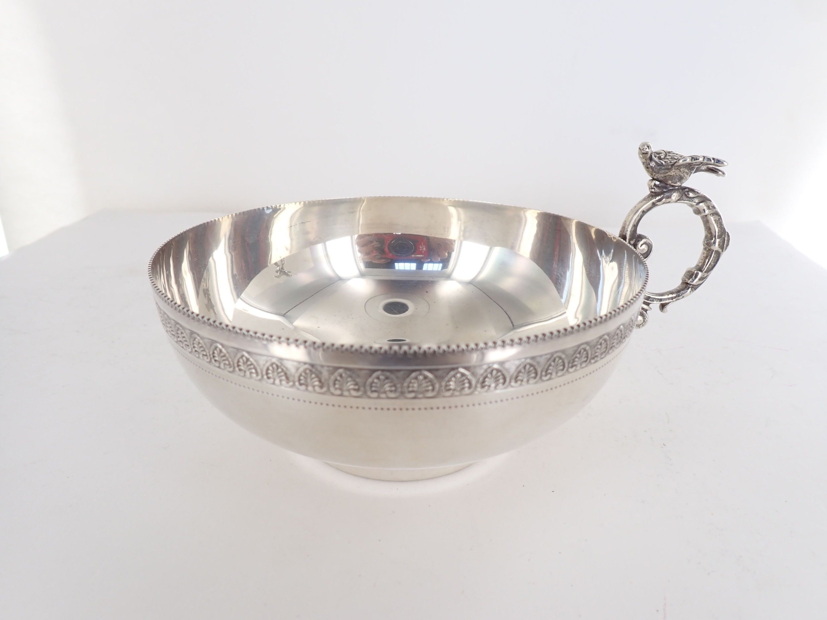 Tea cup in silver 900 thousandth decorated with a frieze of palmette, the handle in clasp with bird
