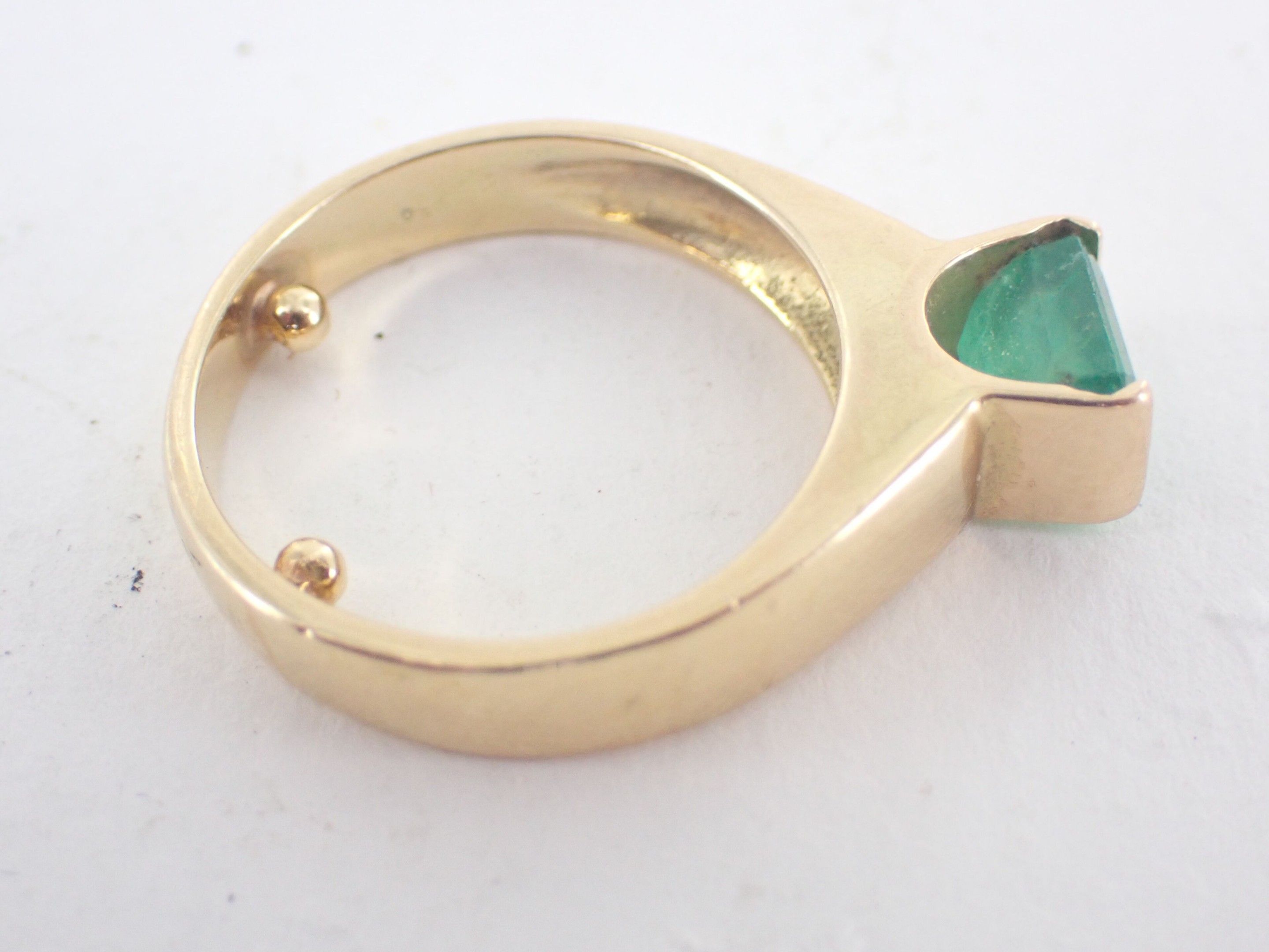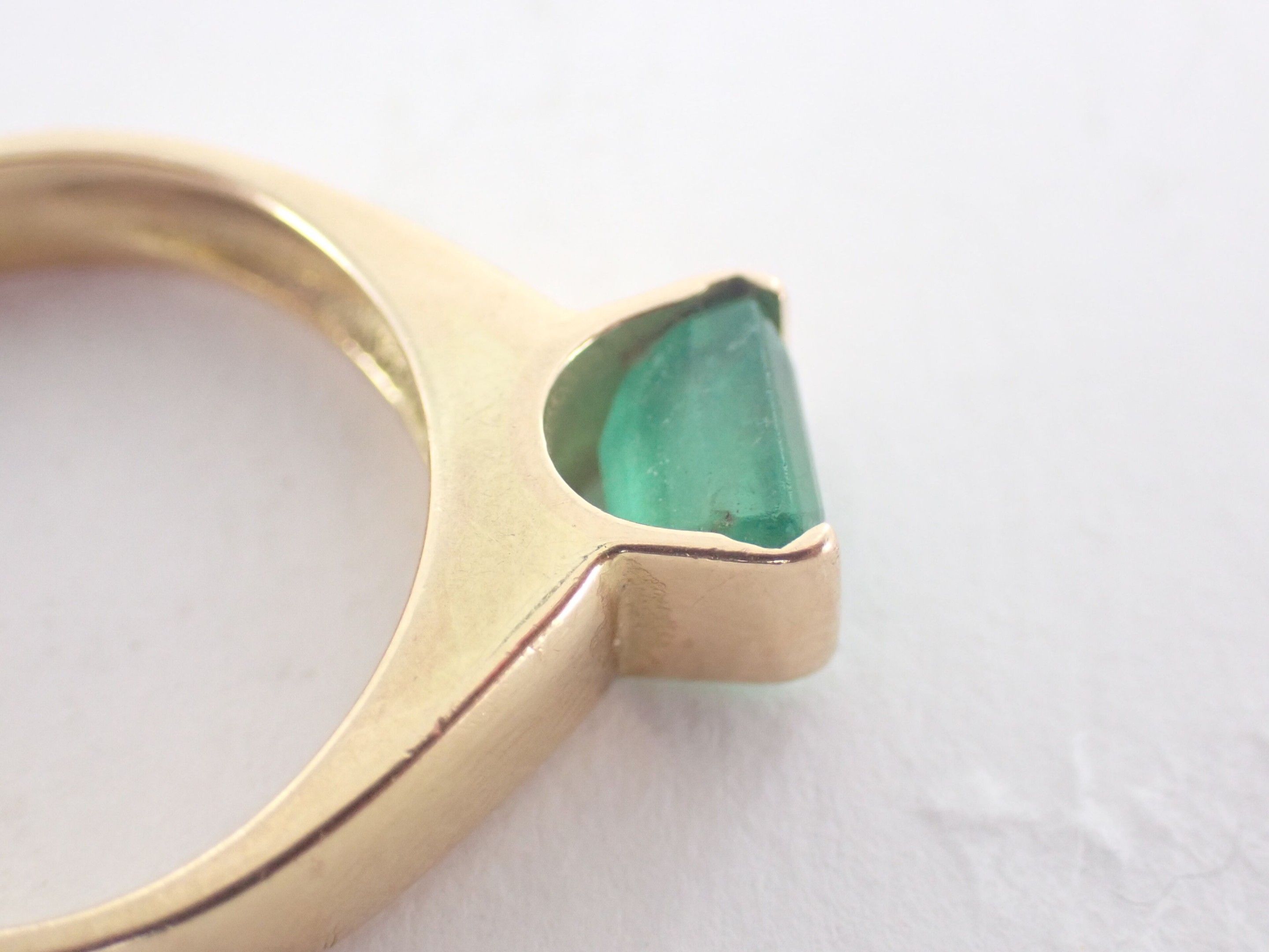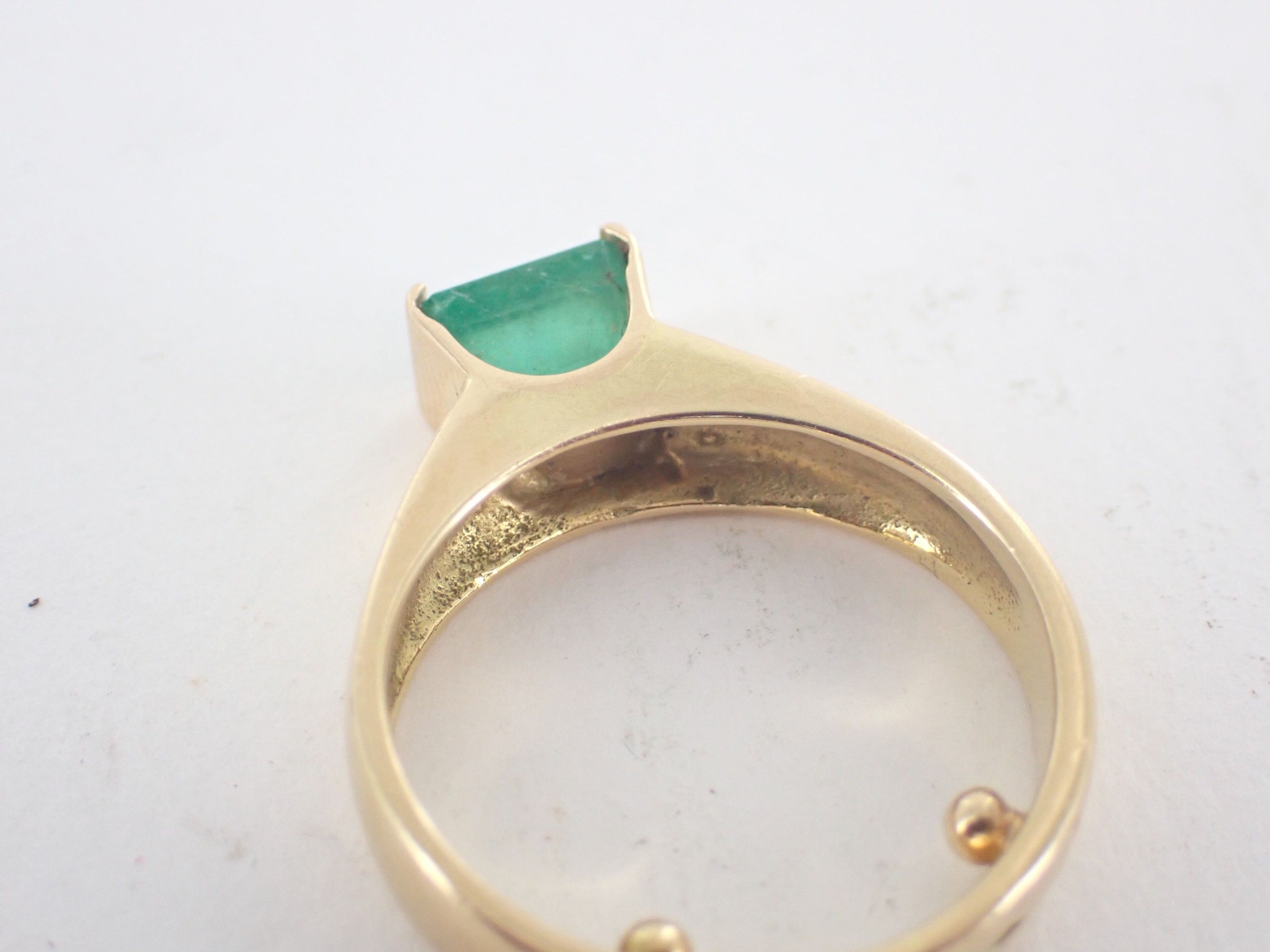 Ring in 750 thousandths yellow gold holding a rectangular-cut emerald