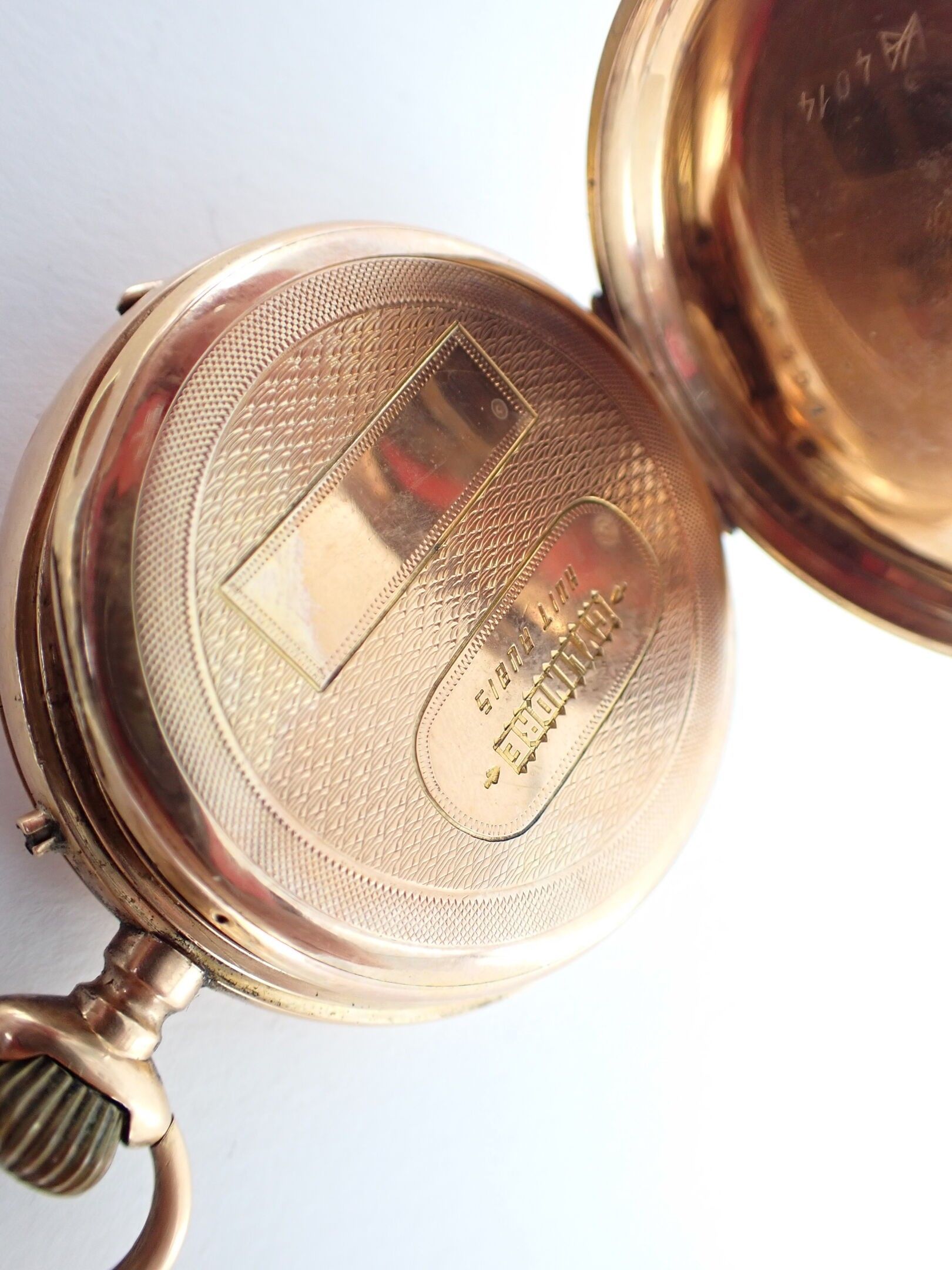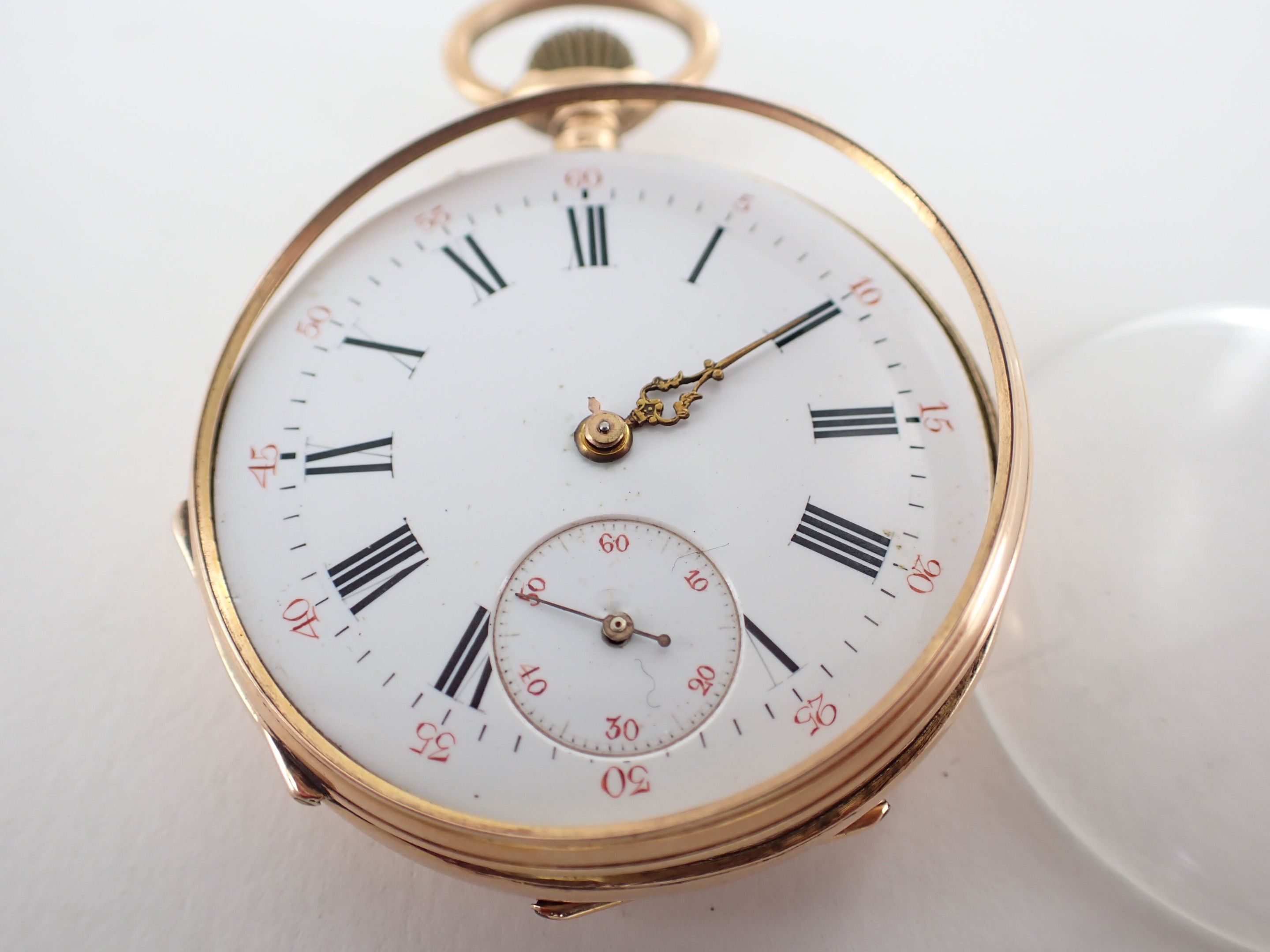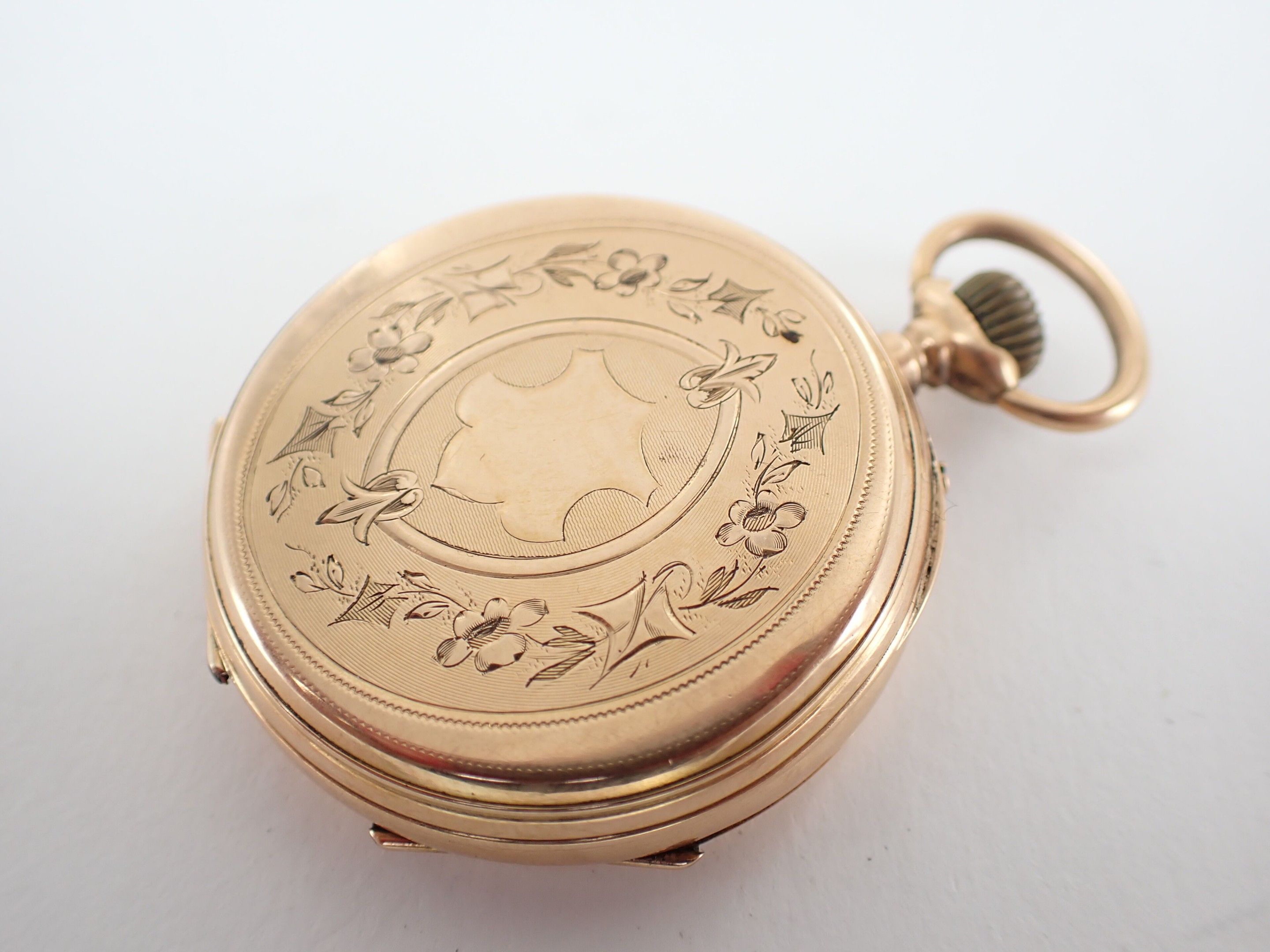 750 gold gousset watch circa 1900, white enamelled dial with…