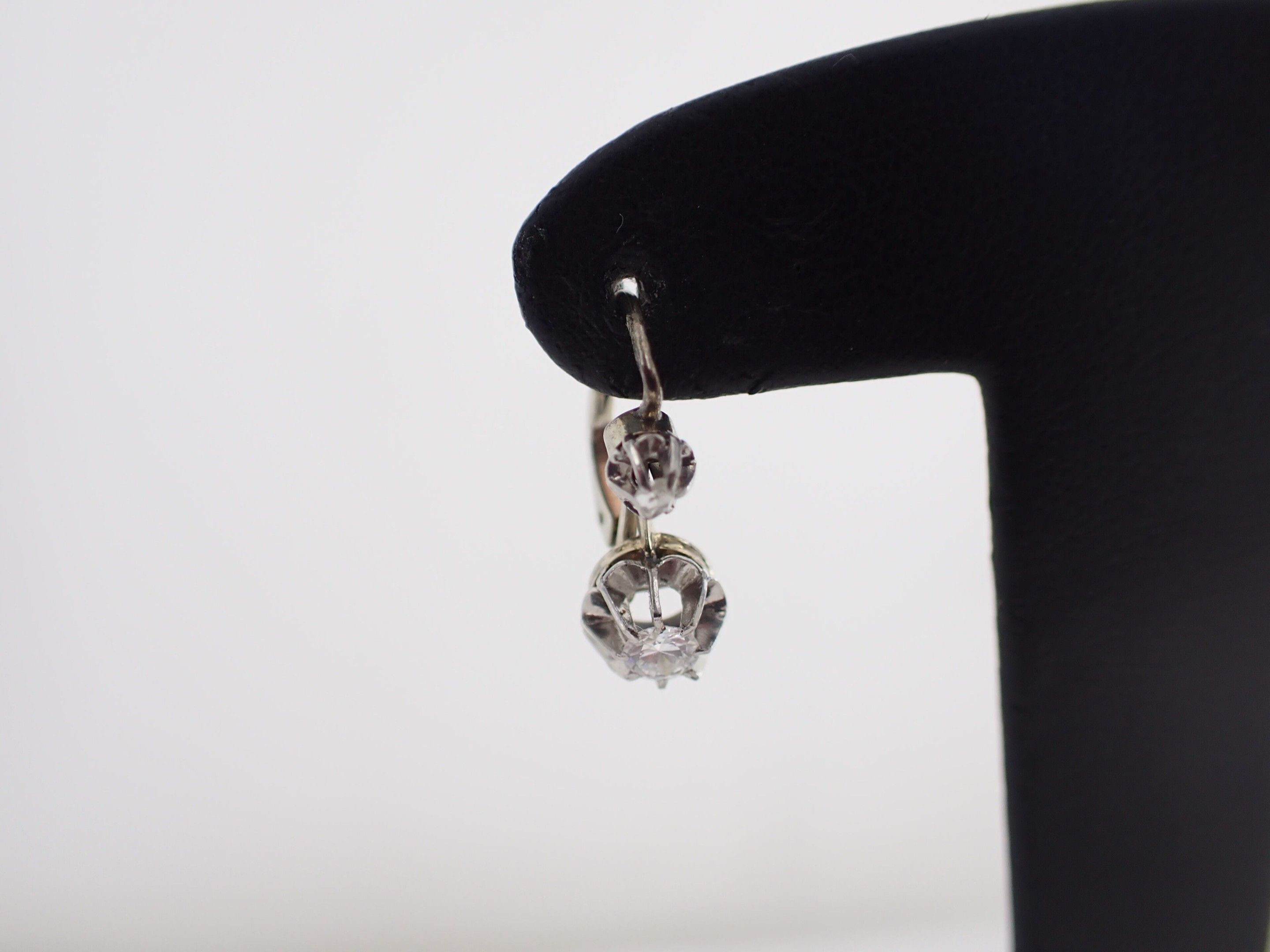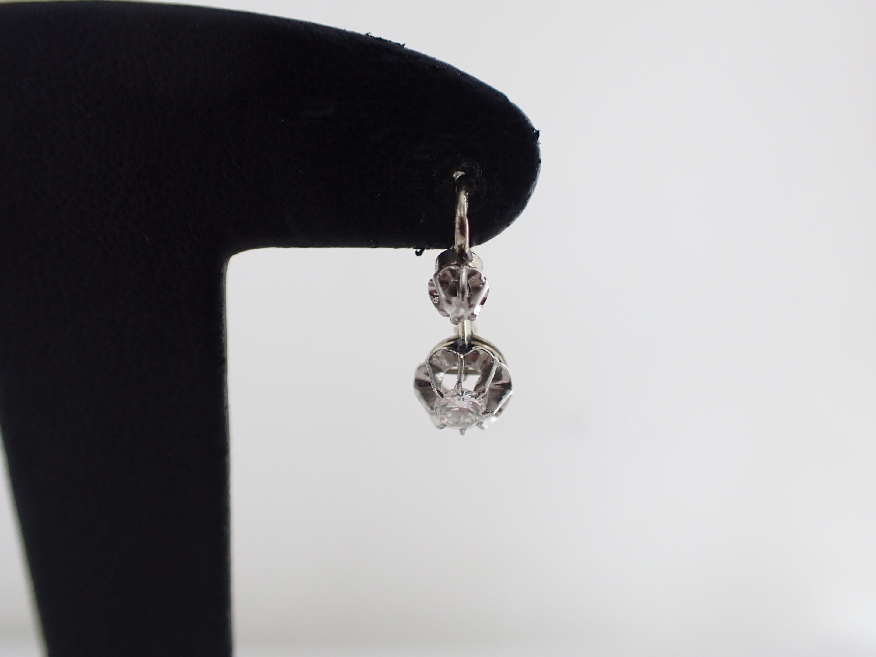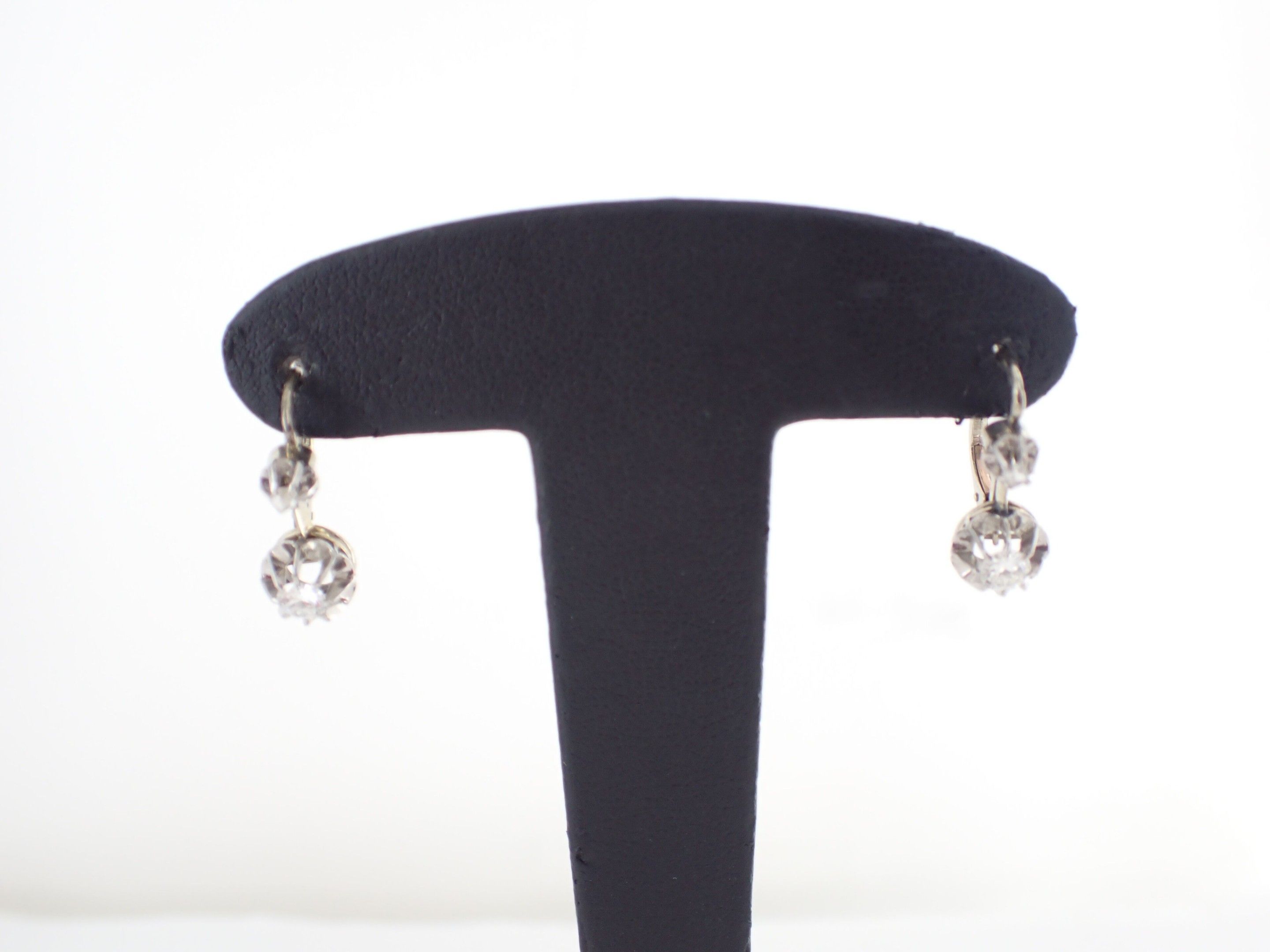 Pair of 750 thousandths white gold and 950 thousandths platinum sleeper earrings set with diamonds, the largest approx. 0.15 carats, the smallest approx. 0.03 carats.