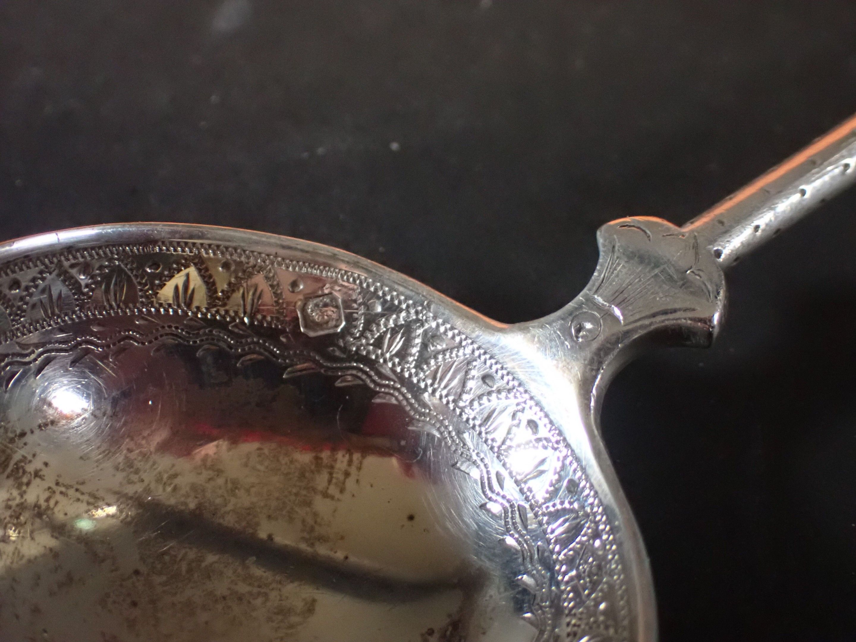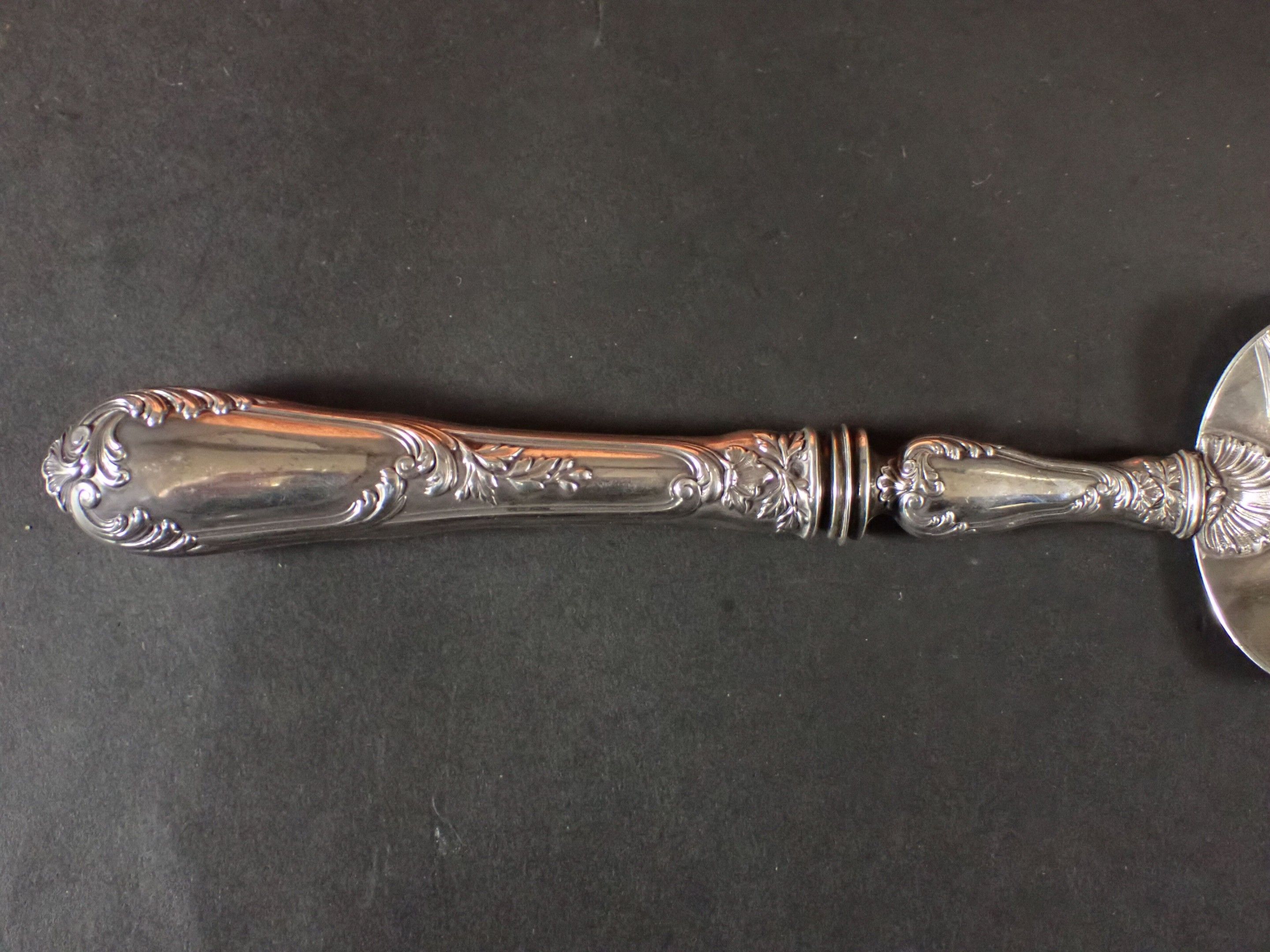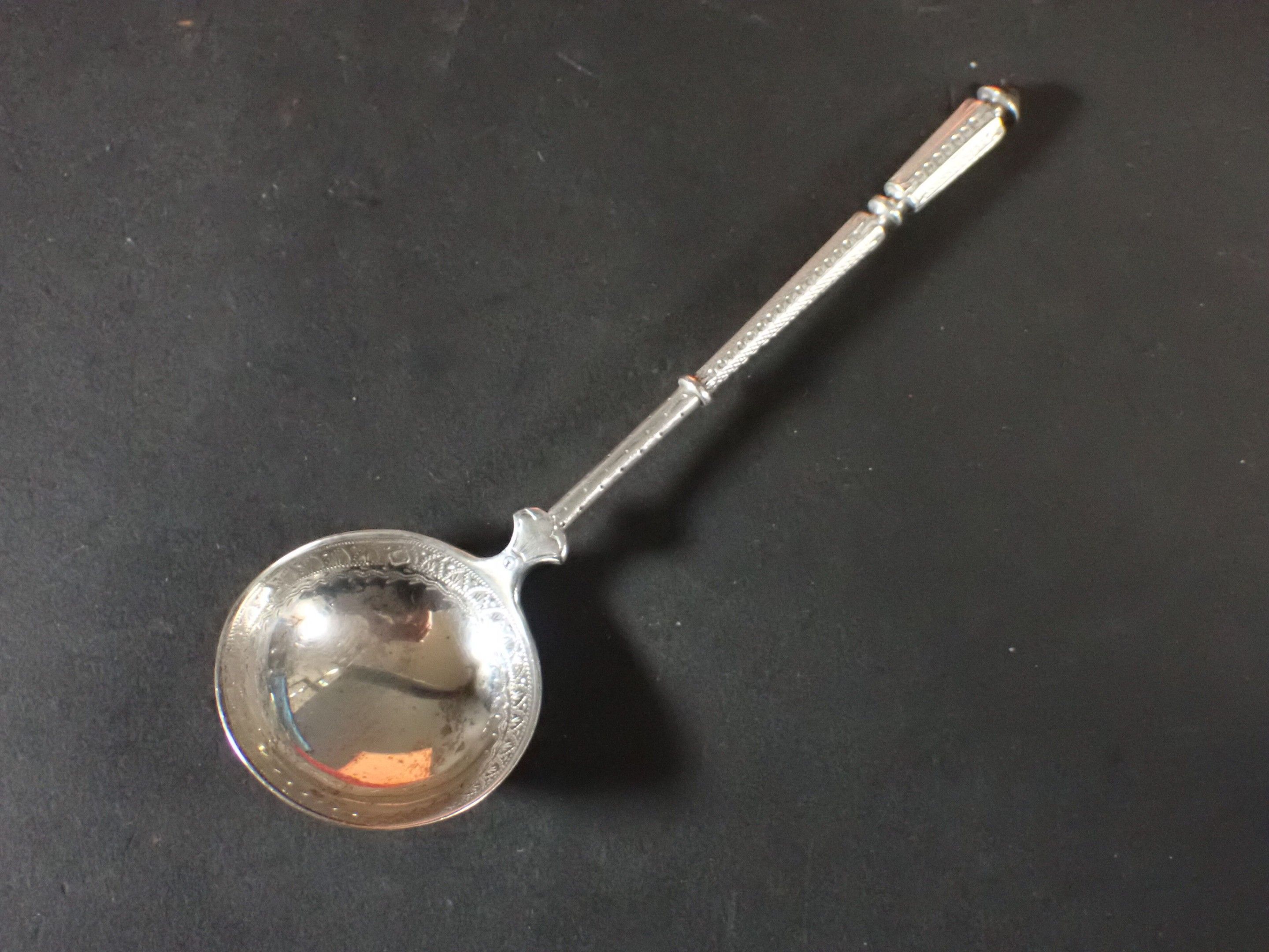 Set of miscellaneous cutlery comprising: 2 pieces of solid silver cutlery 800/1000e comprising: an Art Nouveau serving scoop and a small spoon with engraved decoration - net weight: 150 g - OCCUPIED in metal: a metal letter set - a silver-plated metal box - a metal walnut tong - 12 large silver-plated metal punch spoons - 24 knives with horn handles.
