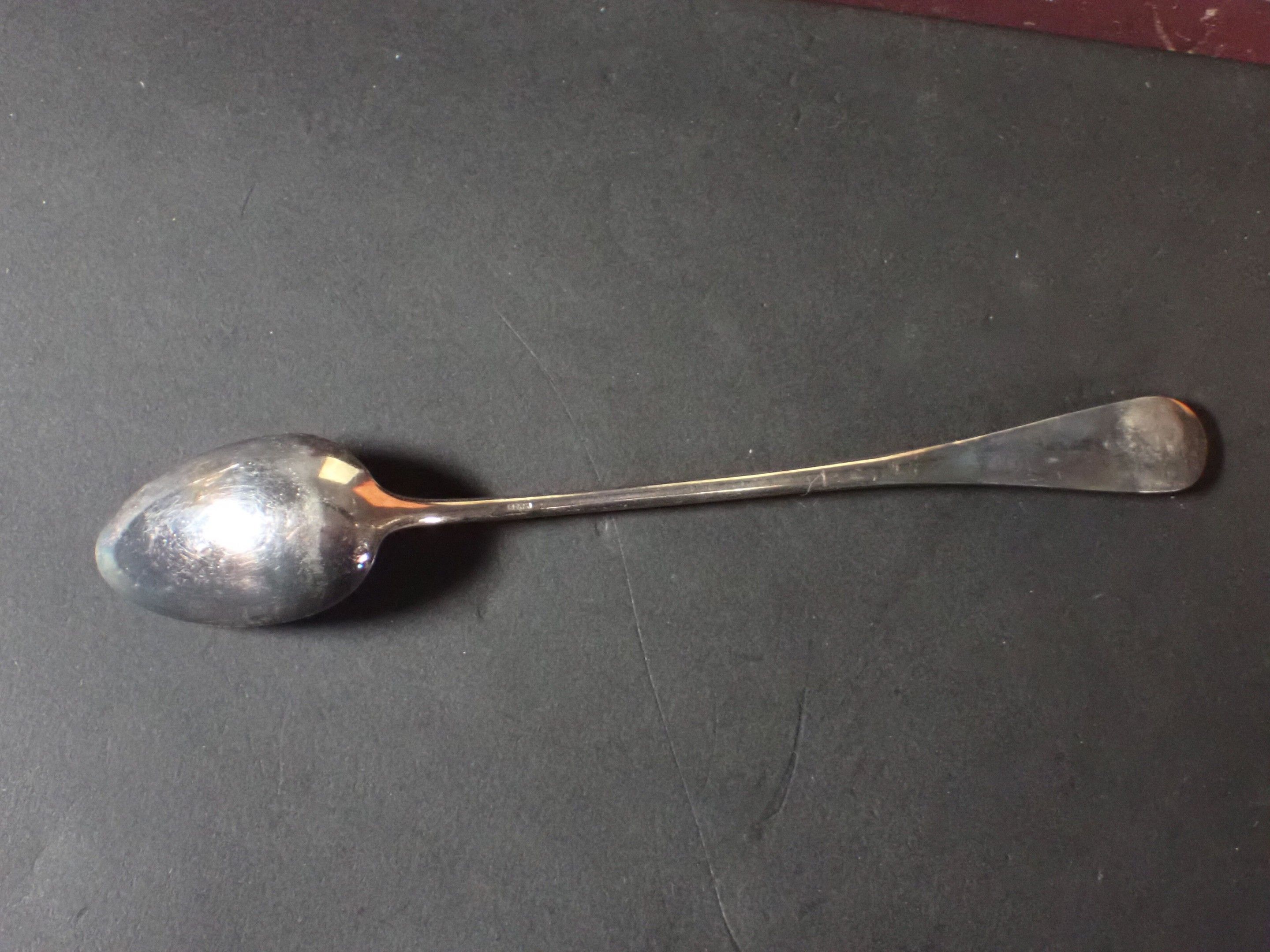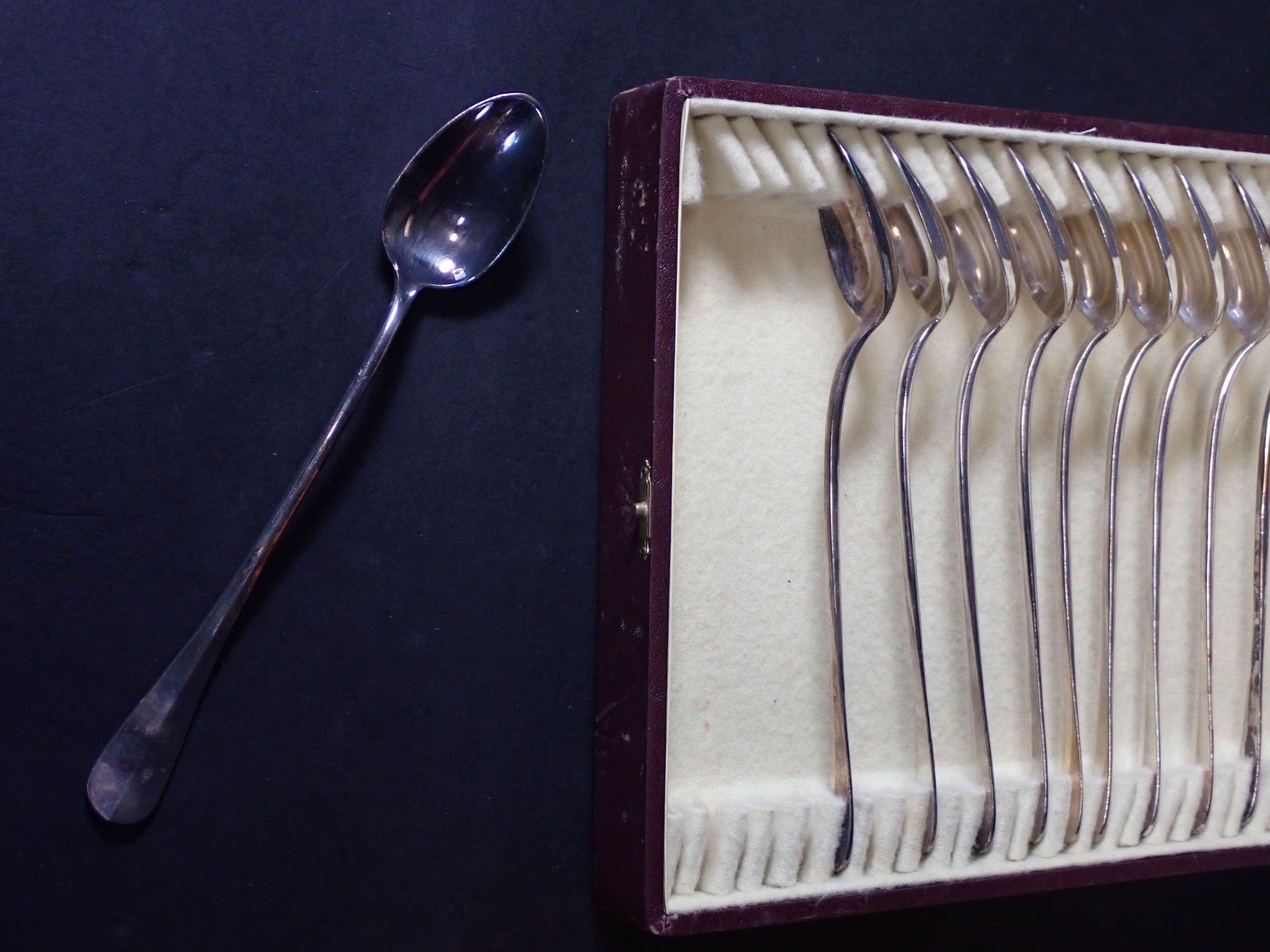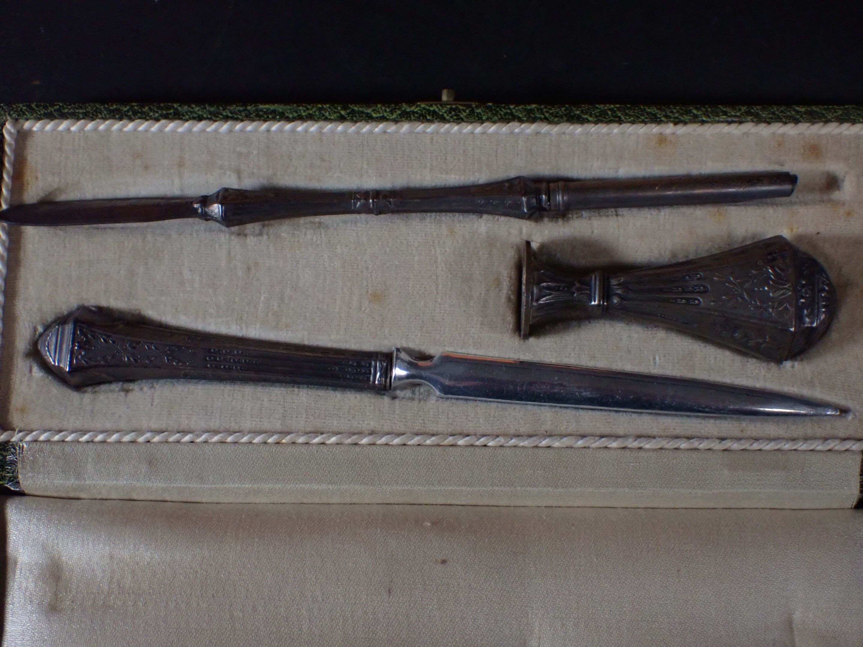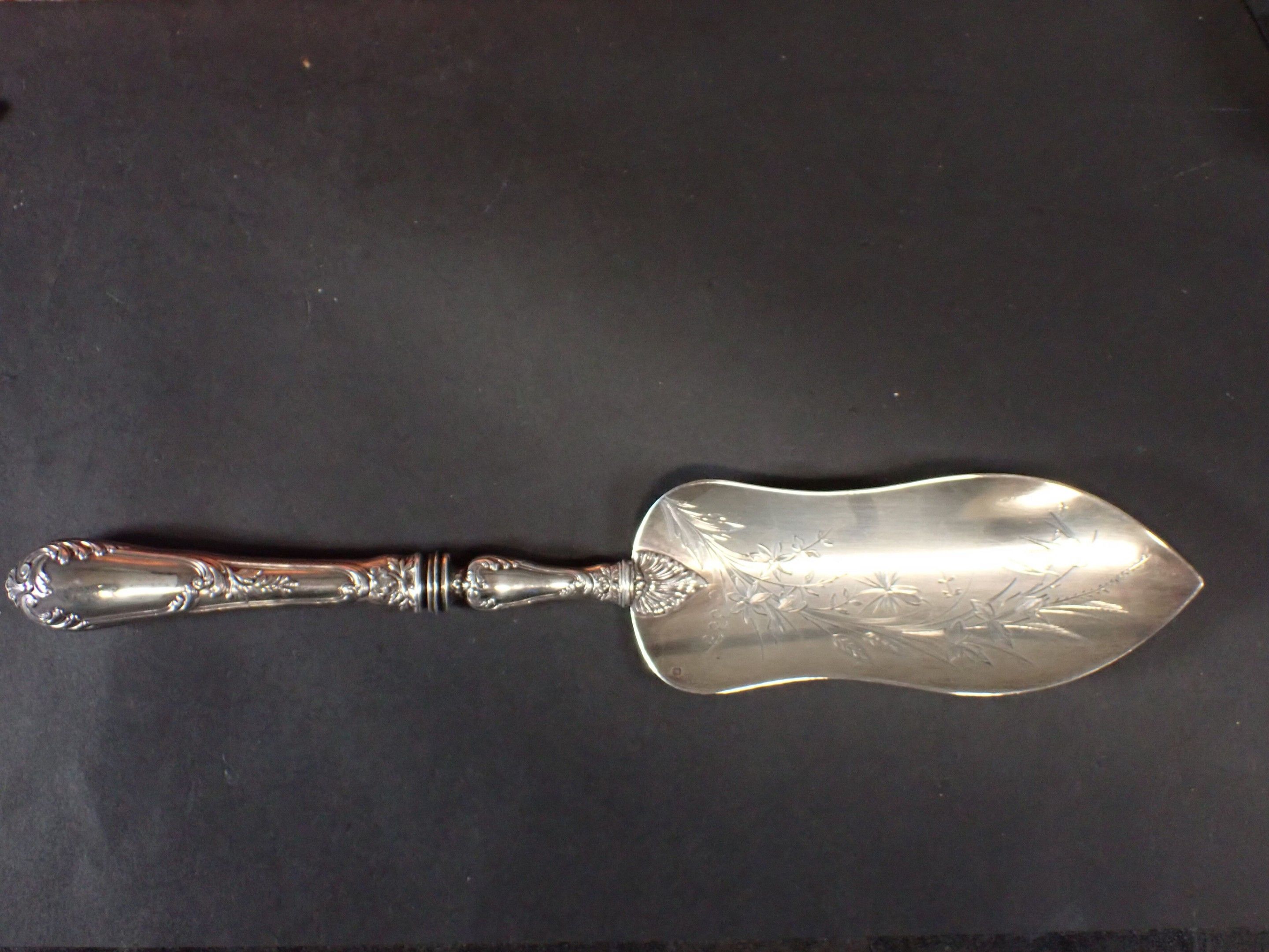 Set of miscellaneous cutlery comprising: 2 pieces of solid silver cutlery 800/1000e comprising: an Art Nouveau serving scoop and a small spoon with engraved decoration - net weight: 150 g - OCCUPIED in metal: a metal letter set - a silver-plated metal box - a metal walnut tong - 12 large silver-plated metal punch spoons - 24 knives with horn handles.