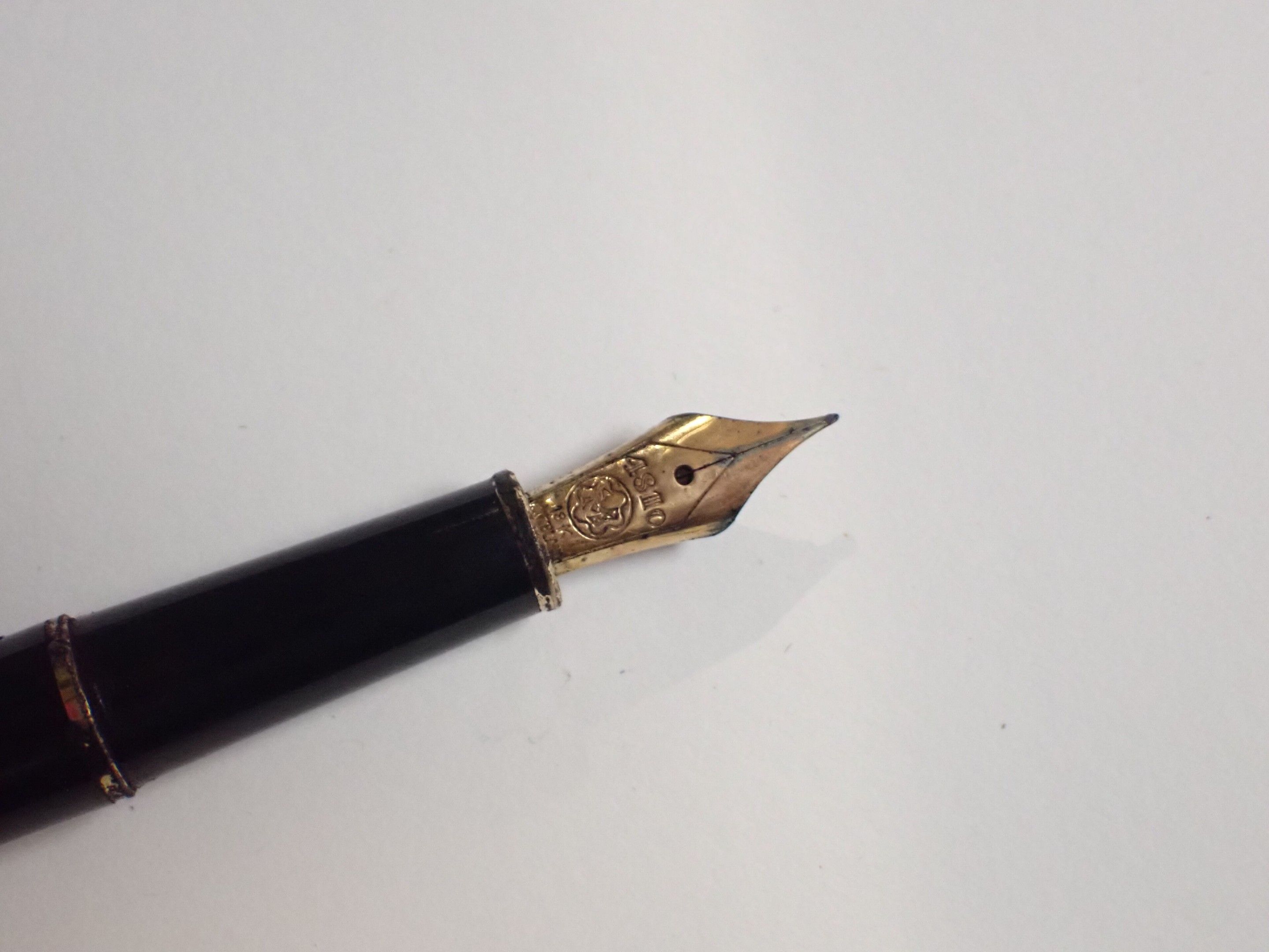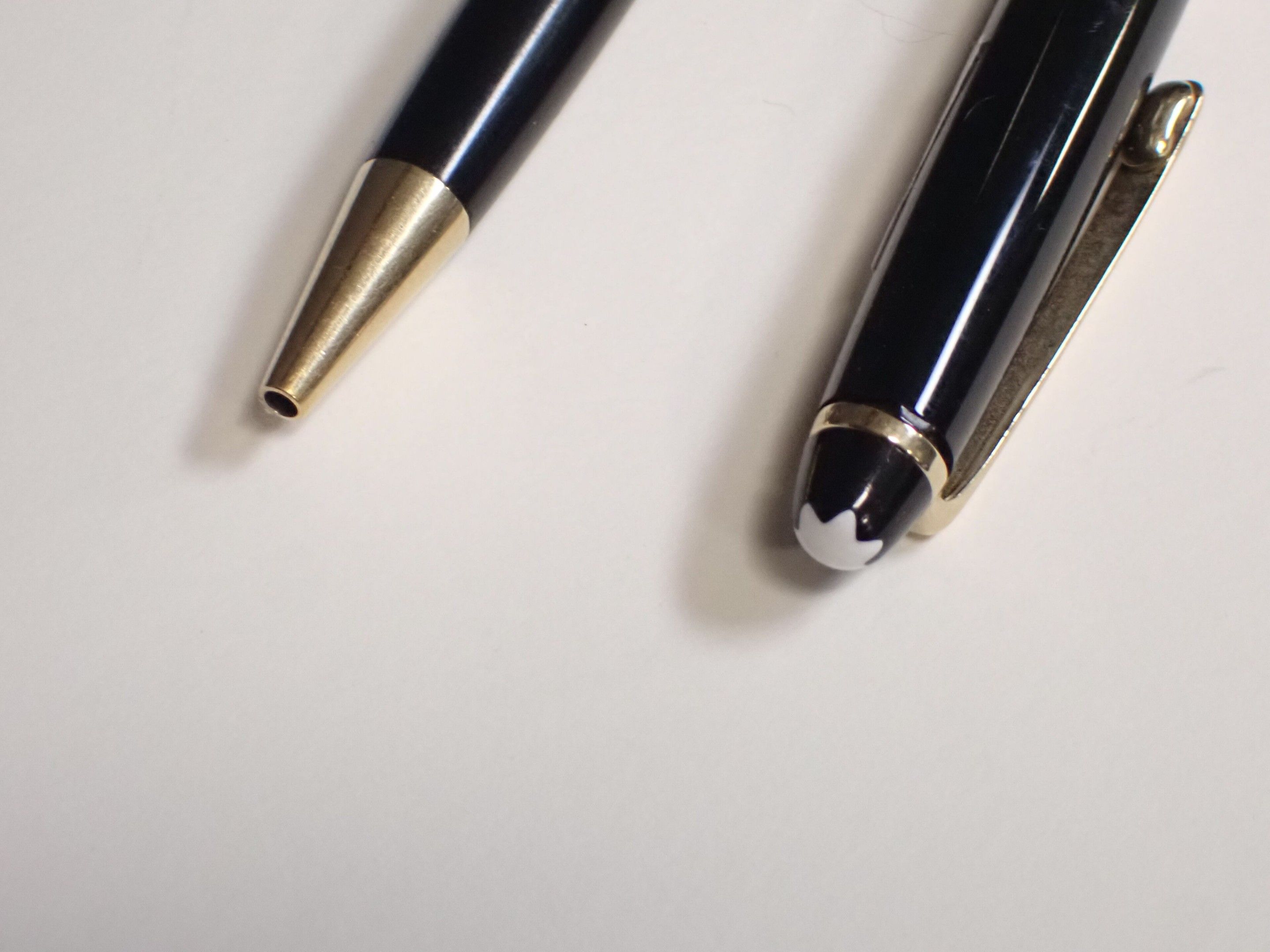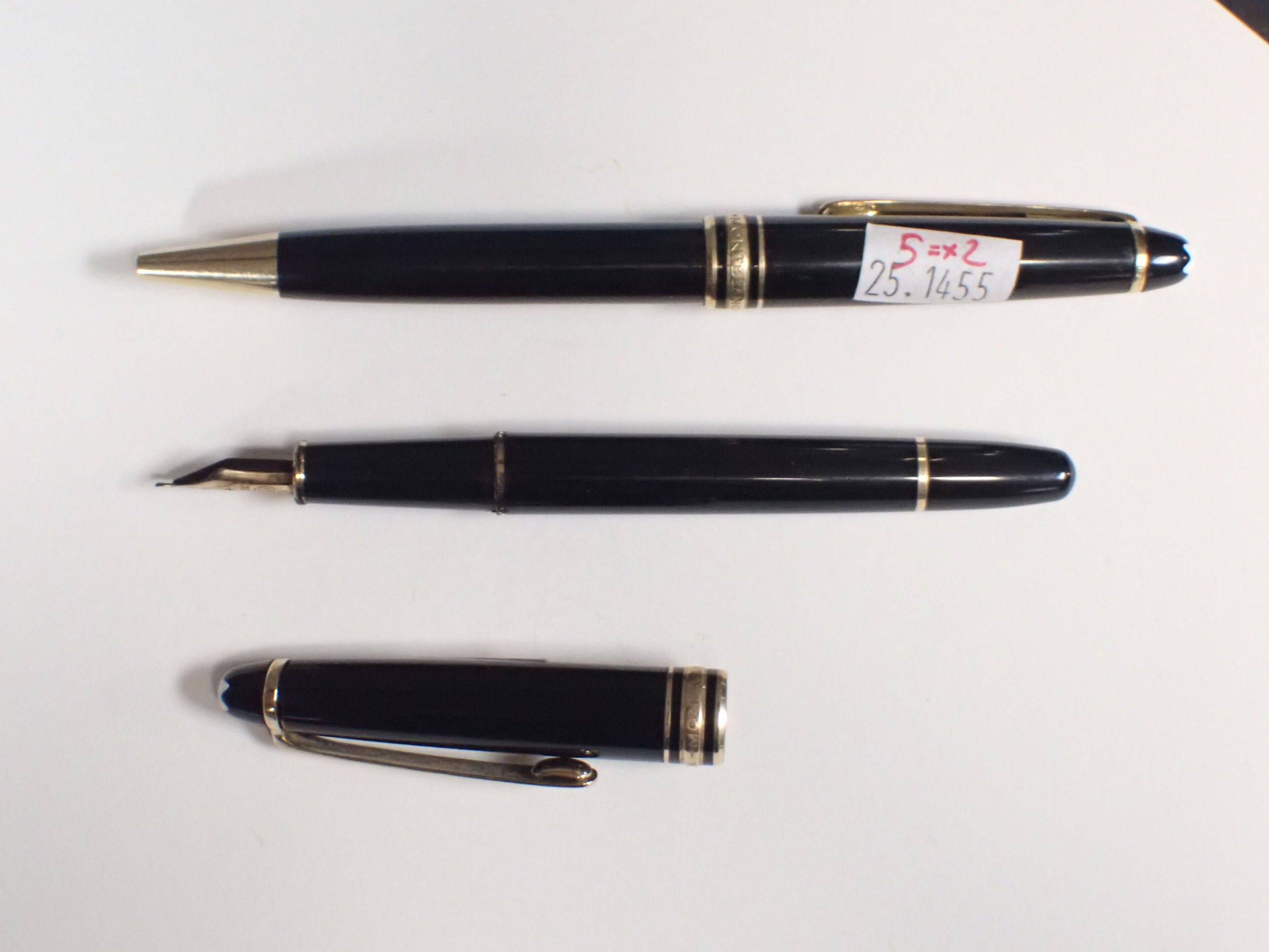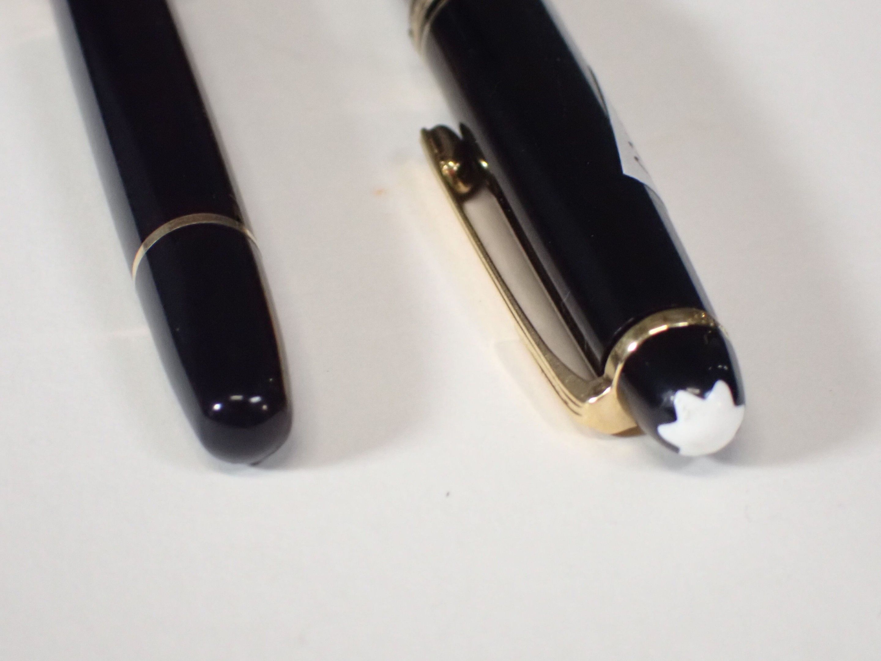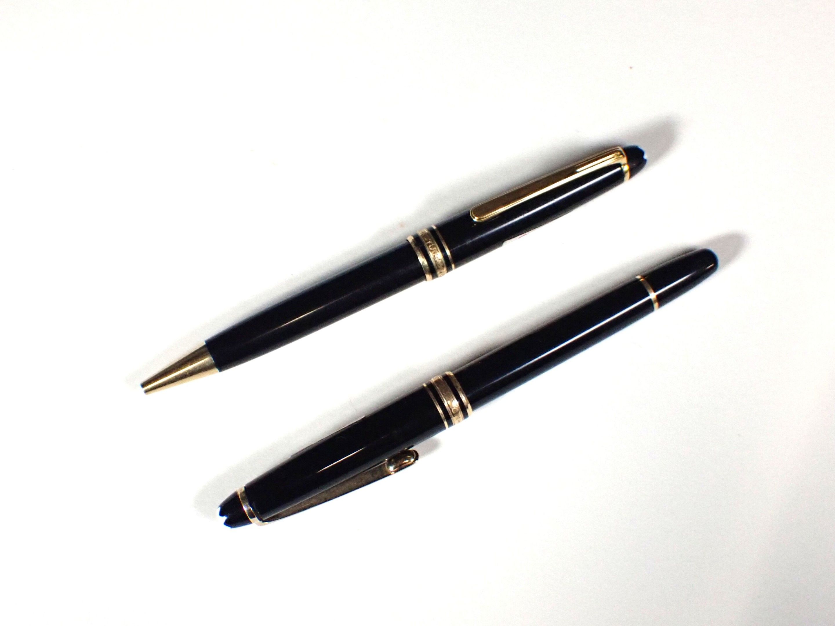 MONTBLANC. Pen set comprising an 18 k gold fountain pen and a biro, both in poor condition, to be restored.