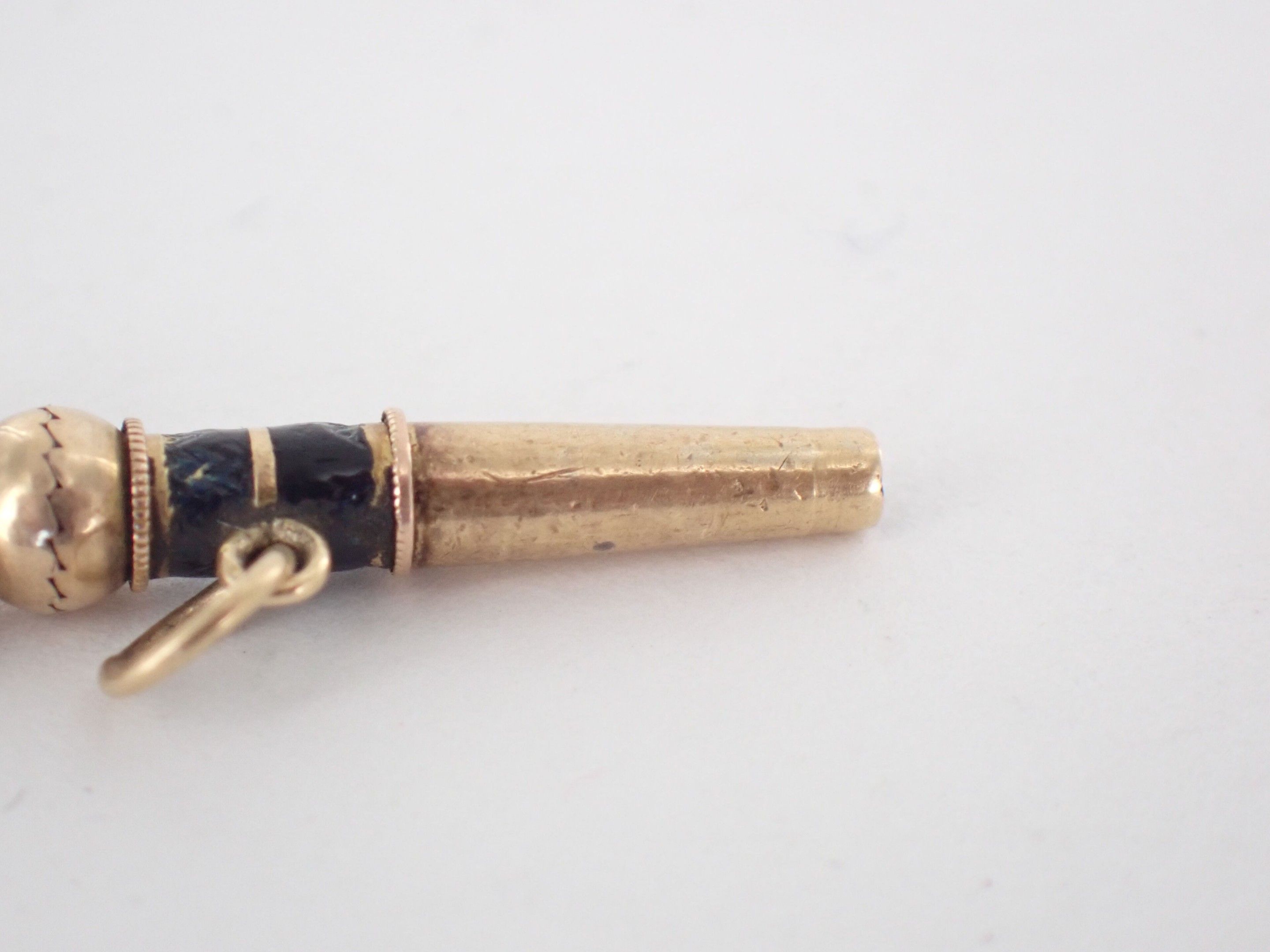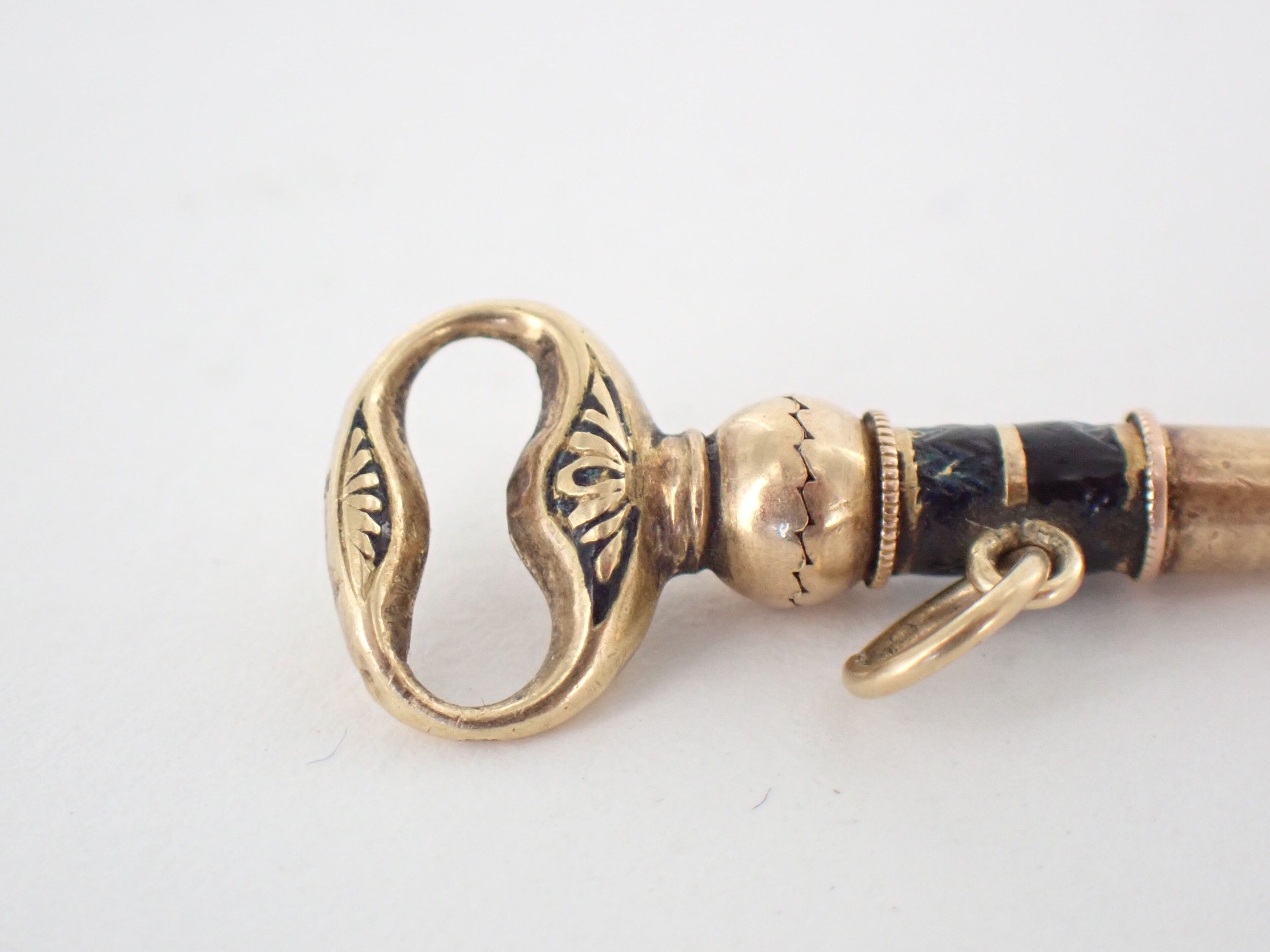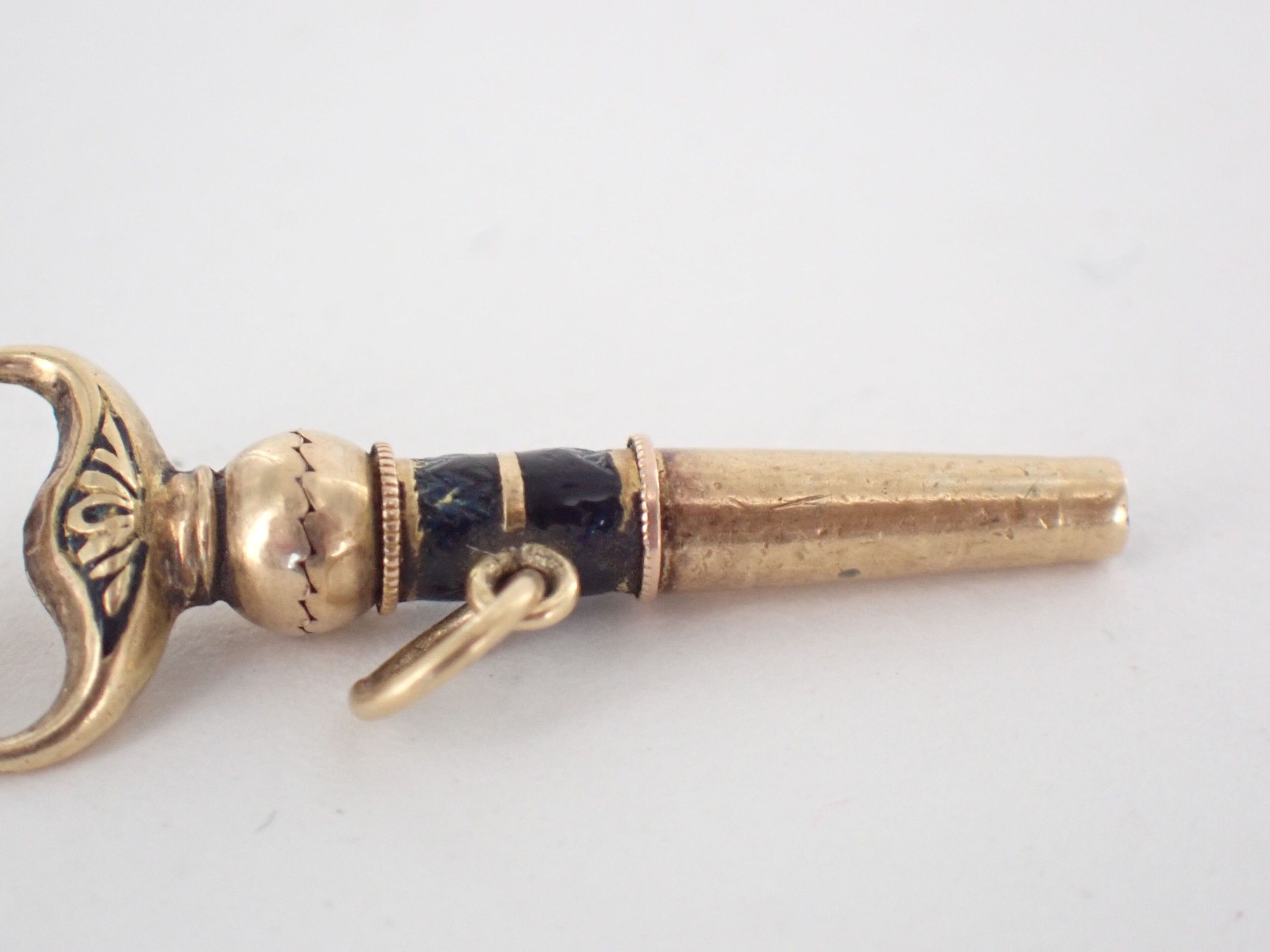 Gold (?) watch key with black enamel.