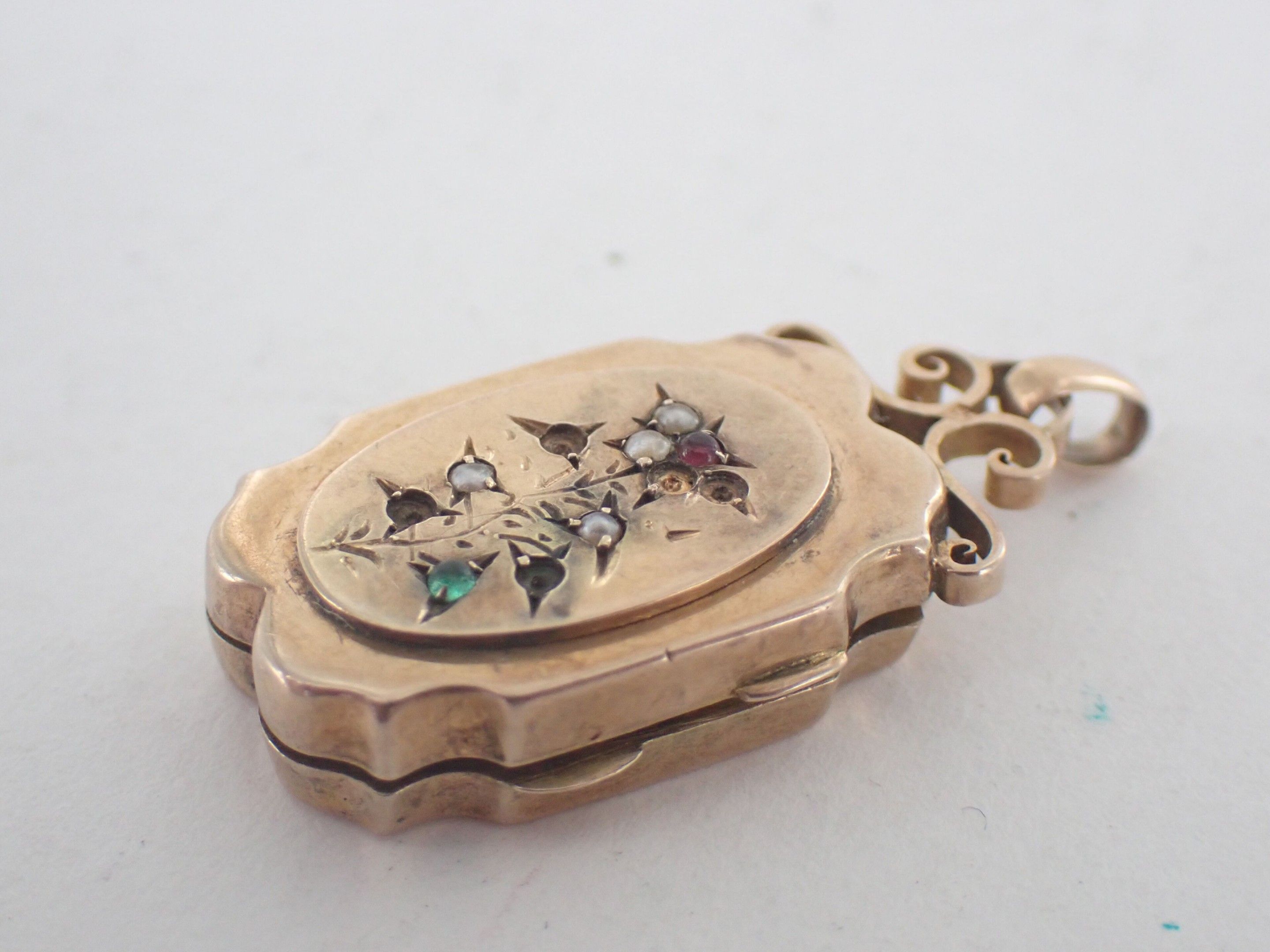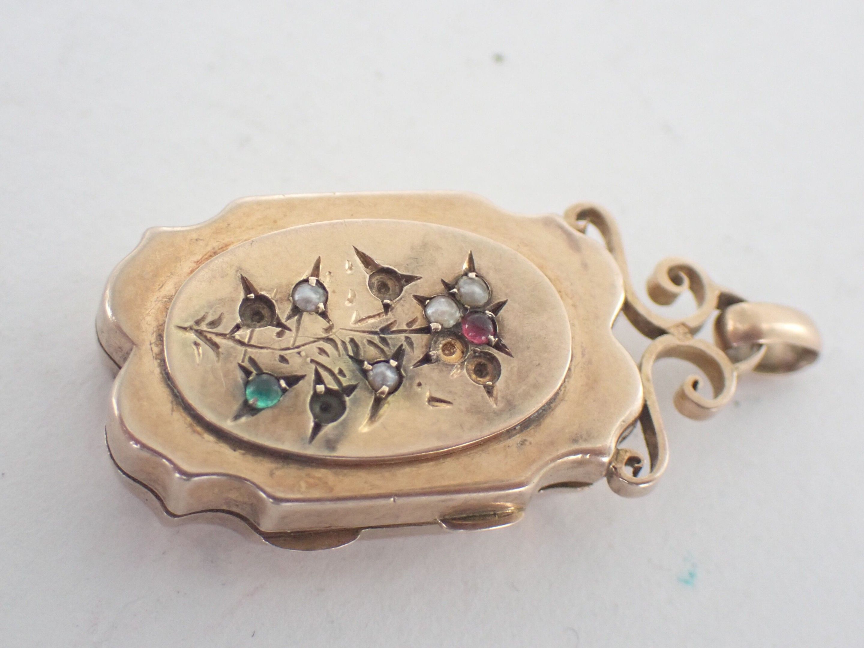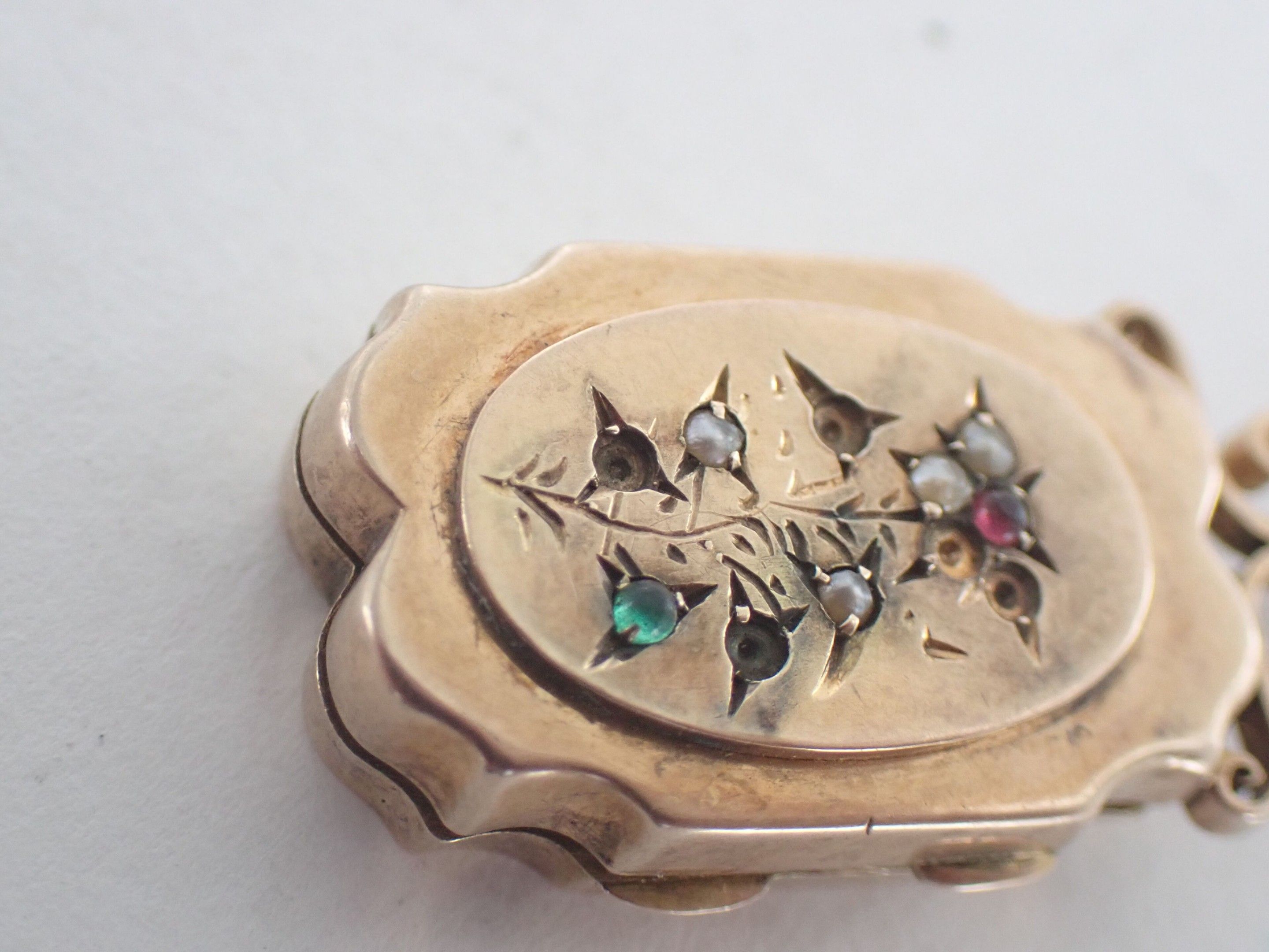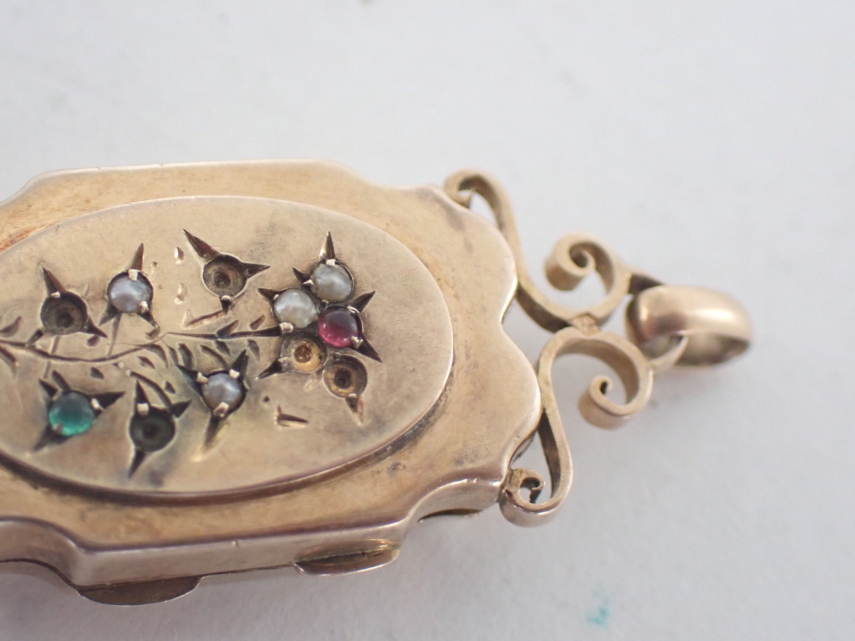 Napoleon III period photograph pendant in 18 carat yellow gold, set with cultured half pearls and small coloured stones (missing). Opening, without inner glass.