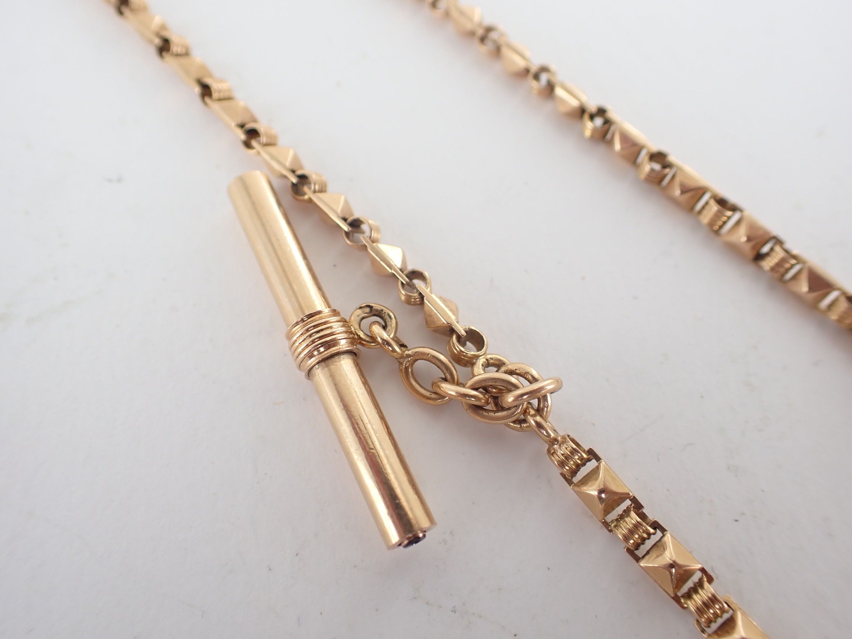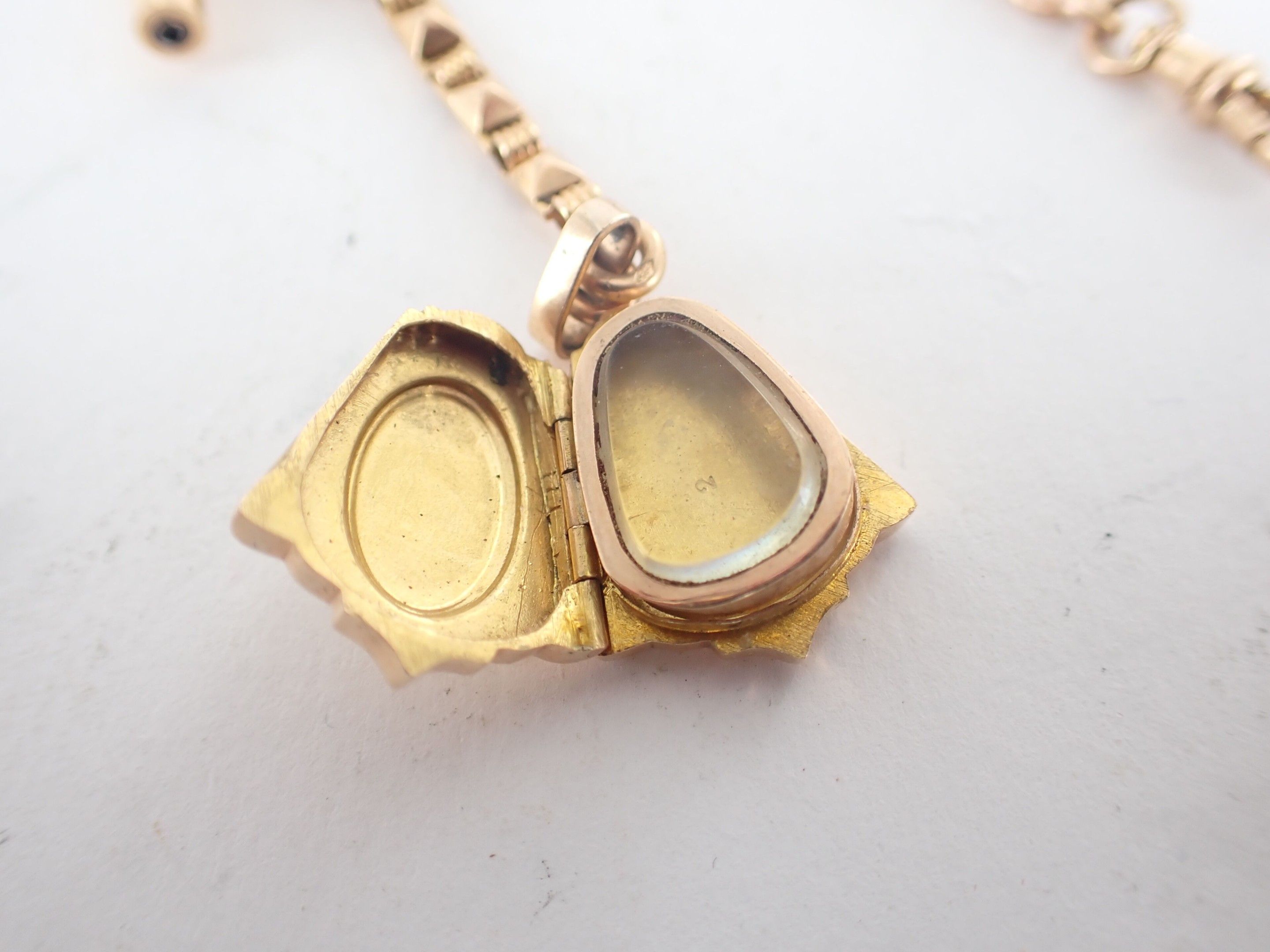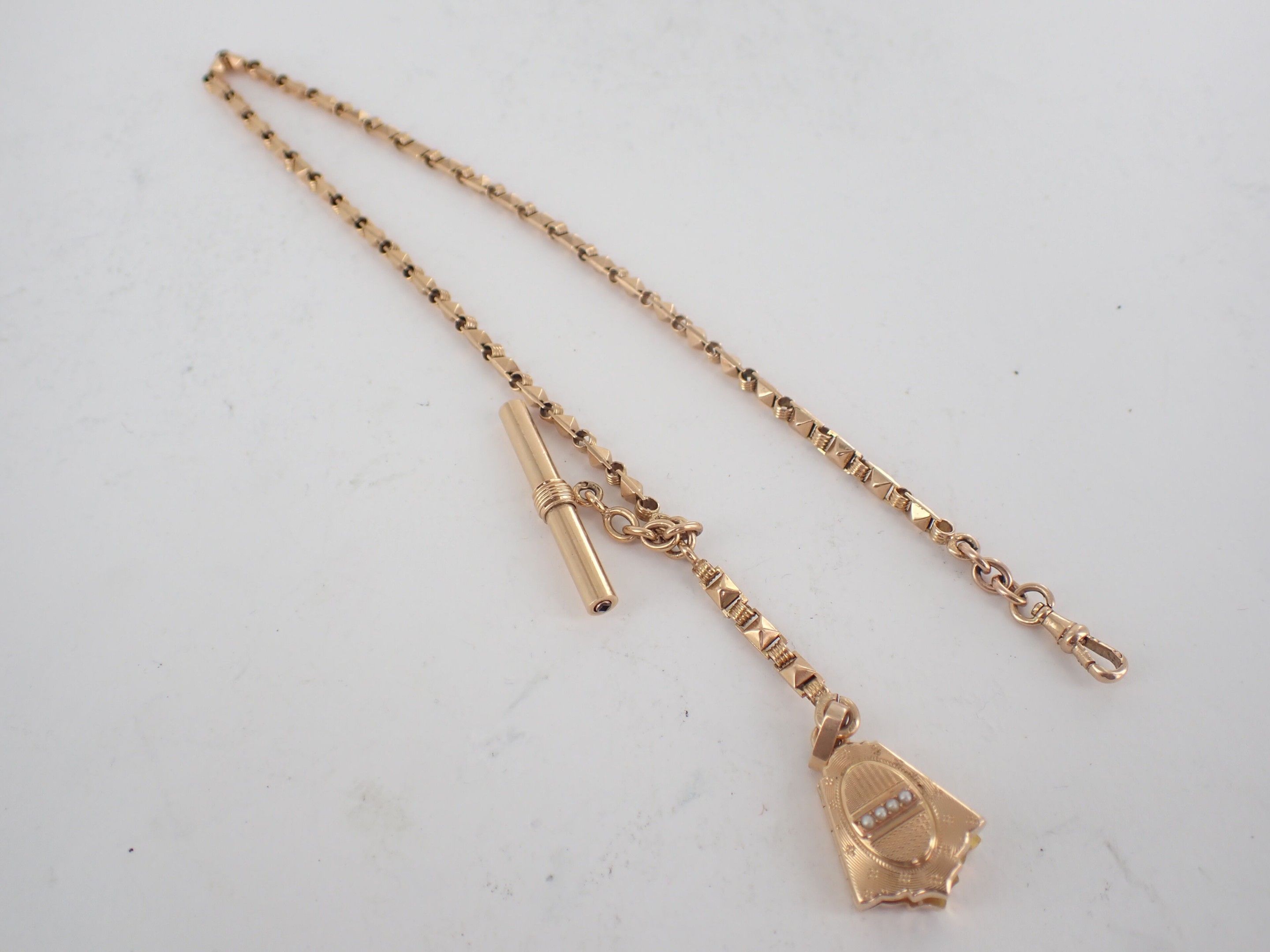 18 carat gold watch chain adorned with a photo pendant with inner glass and winding key. Gross weight: 25.6 g - Net weight of gold: approx. 20 g