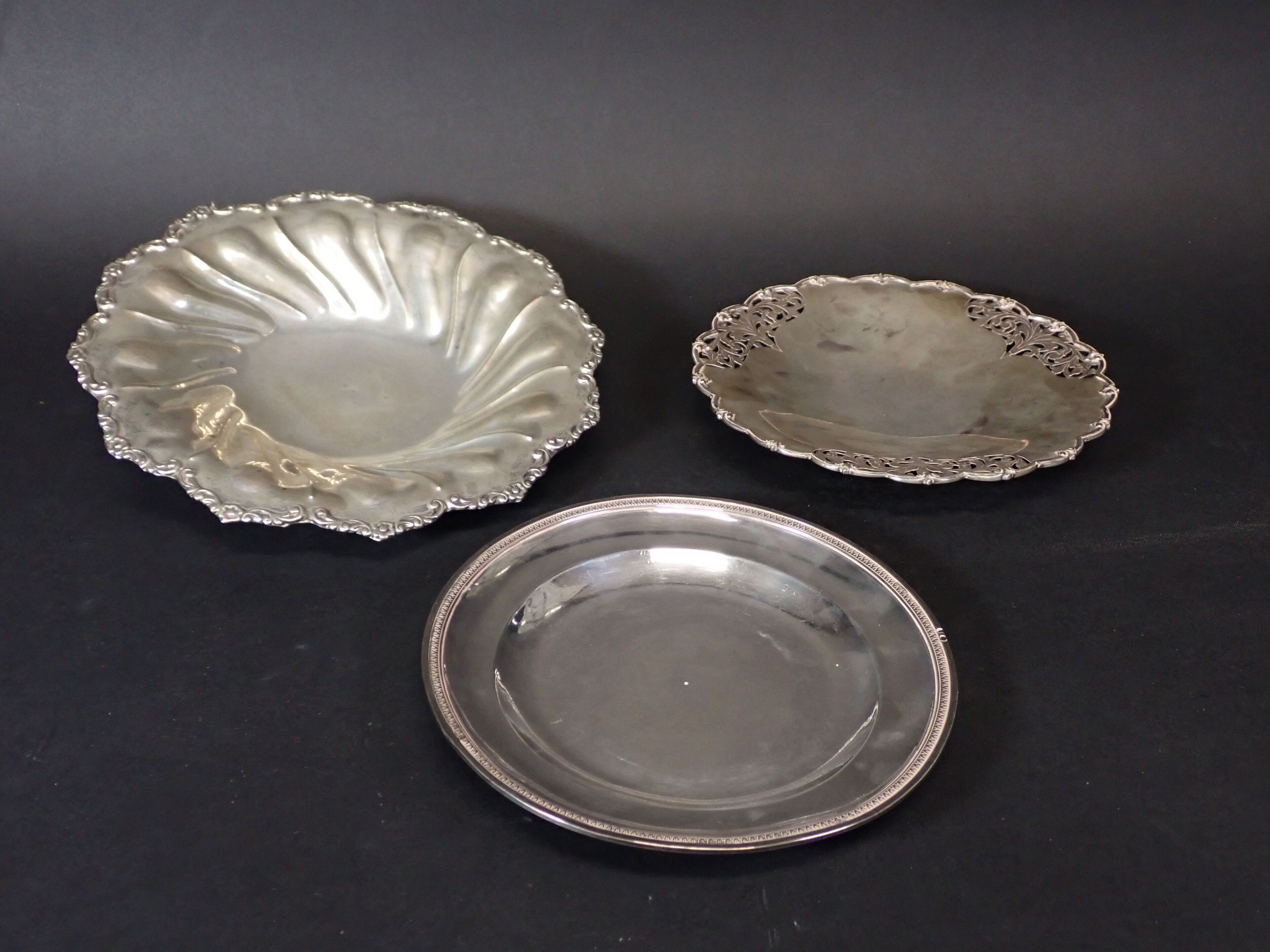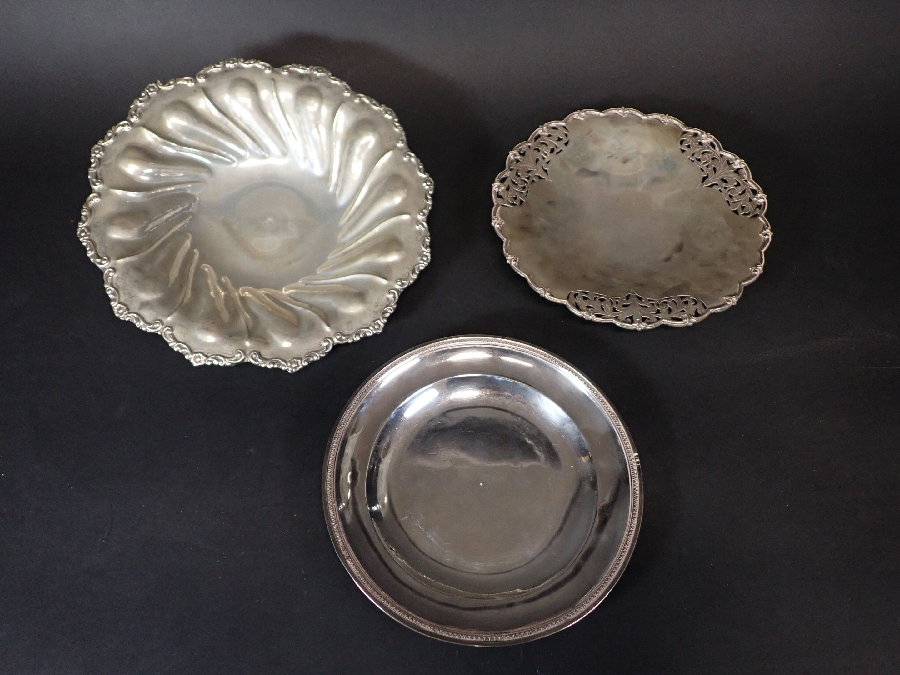 Set of three 800/1000 sterling silver dishes, two rococo in …