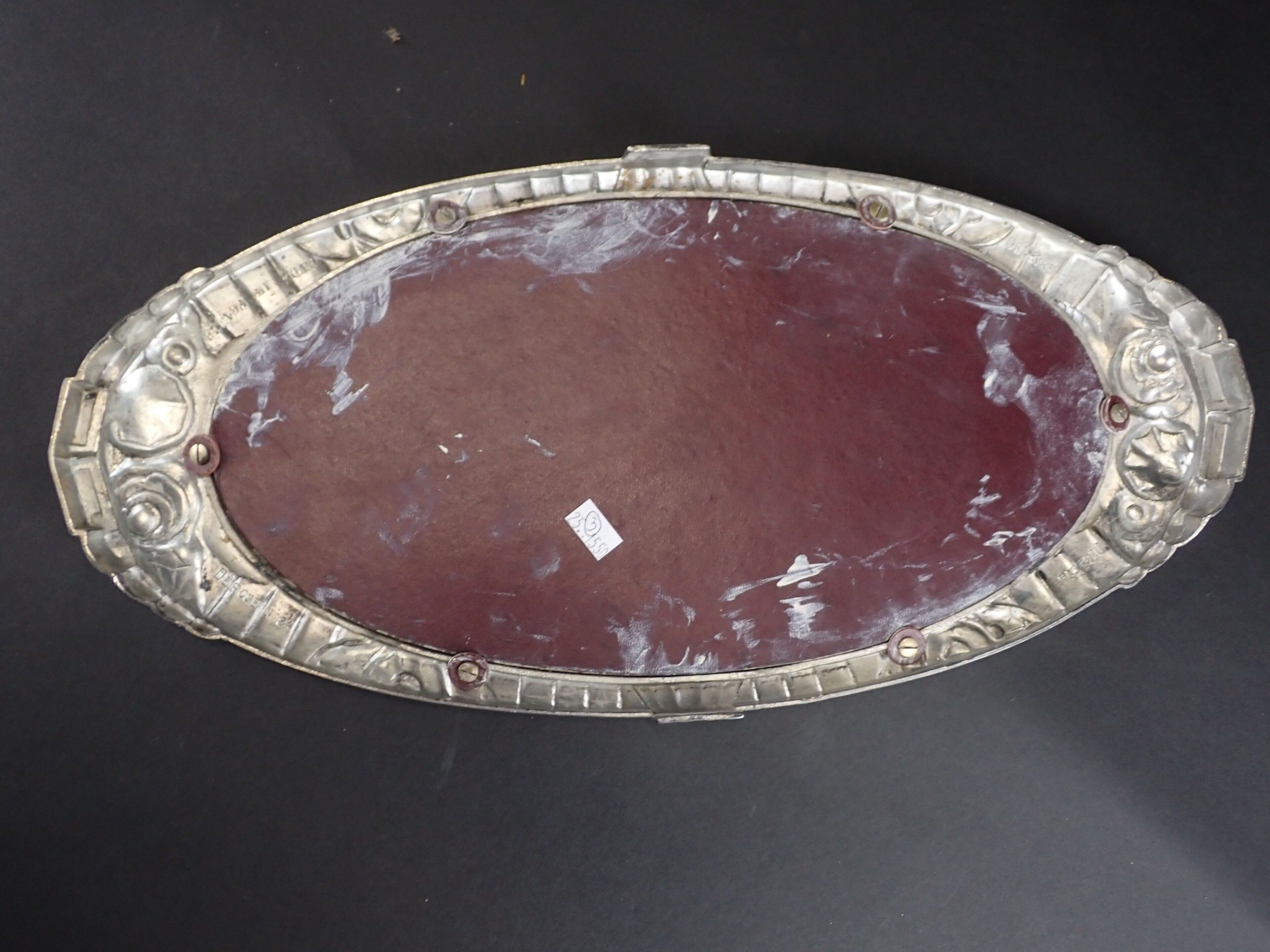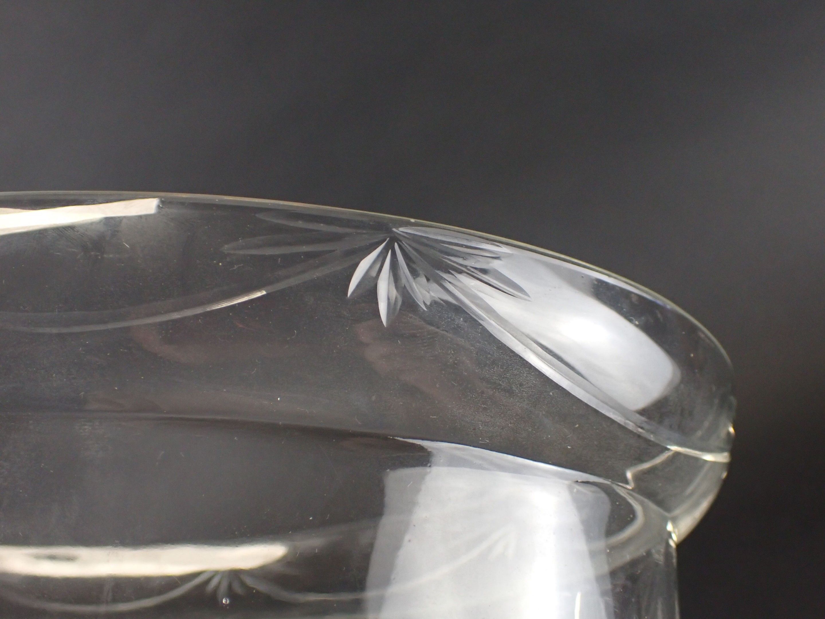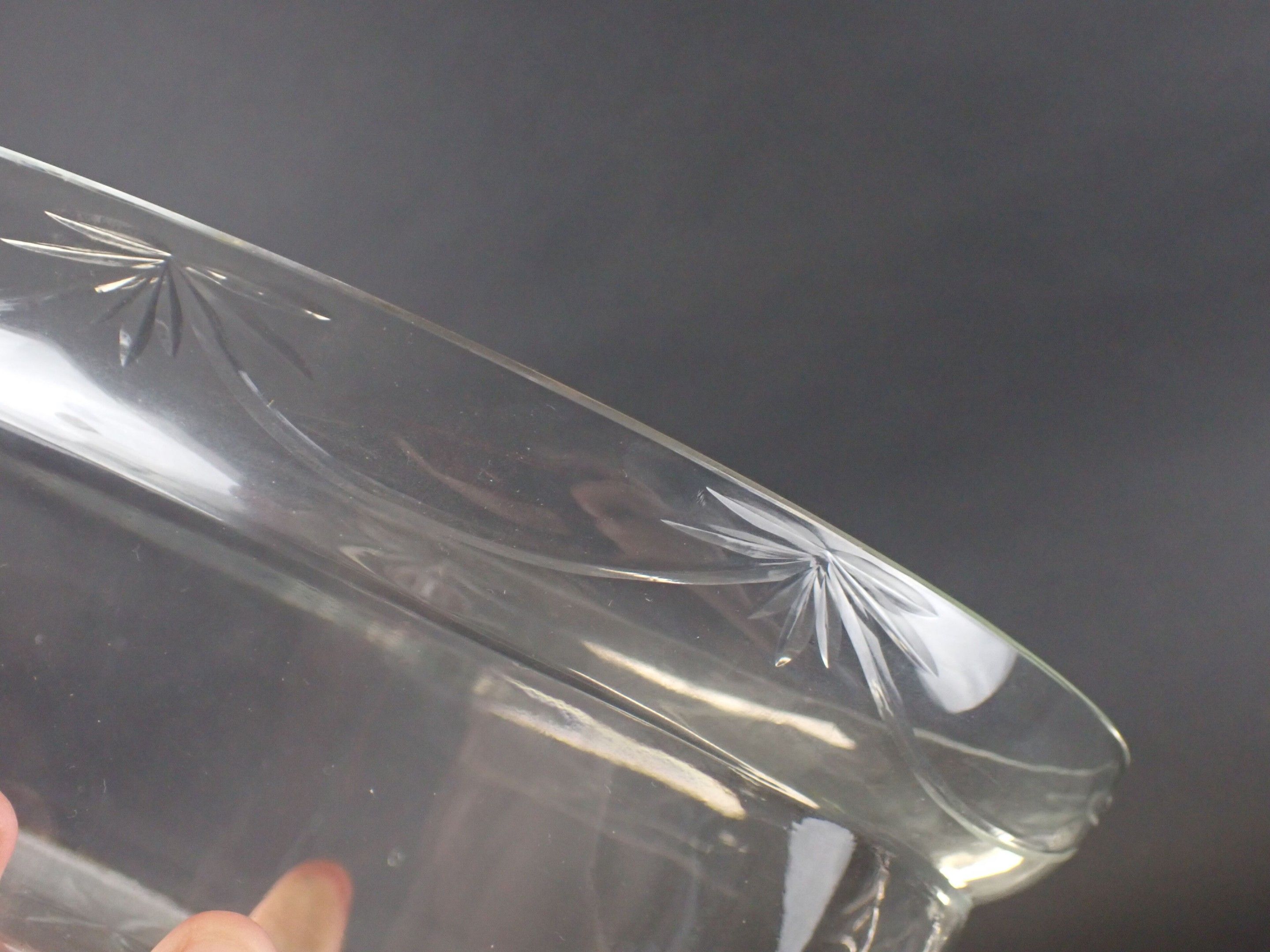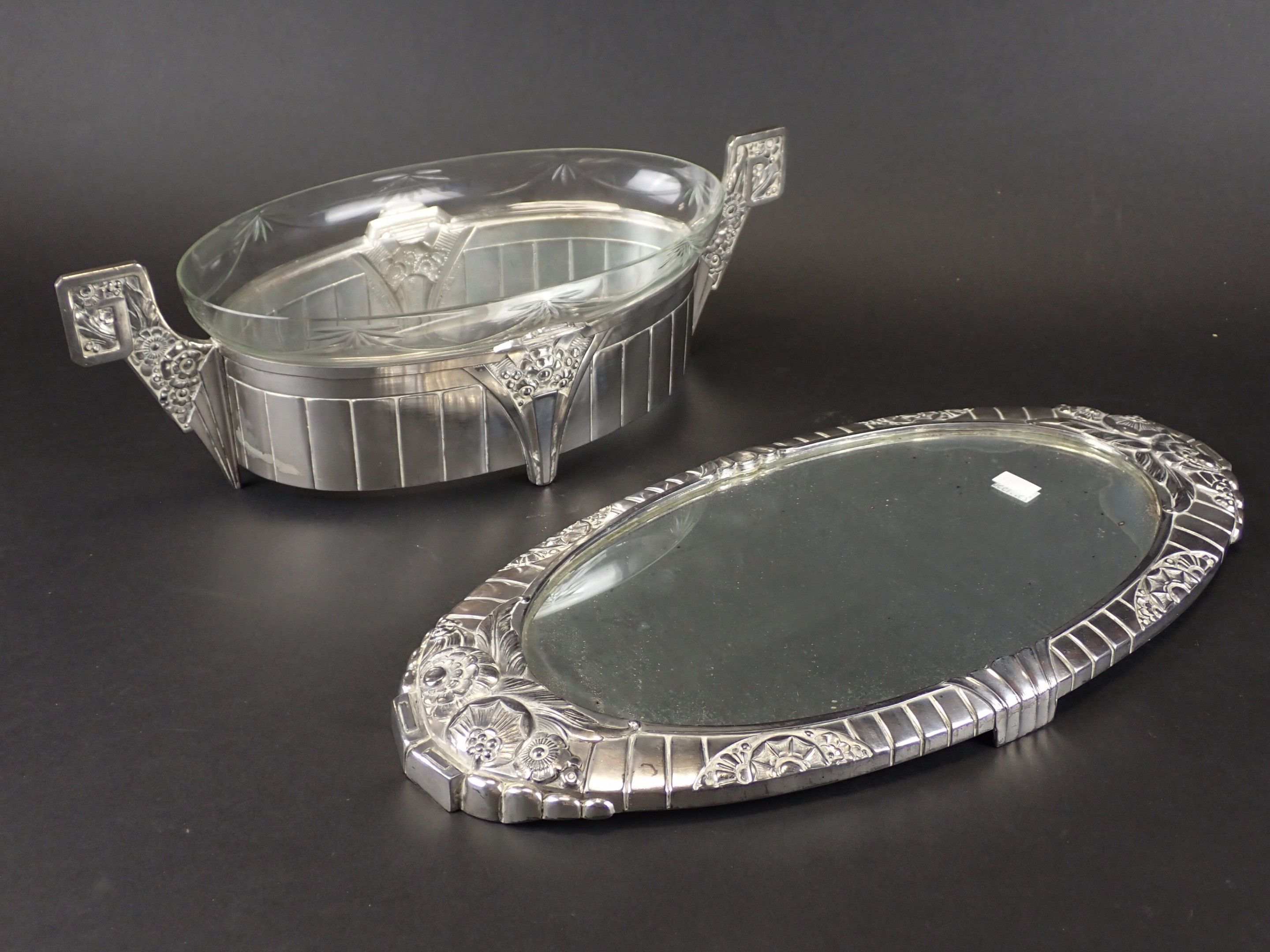 The bowl holds an oval glass container (L. 38 cm - W. 16 cm) and rests on an oval tray with a mirror base (L. 43 cm - W. 20 cm), signed under the base.