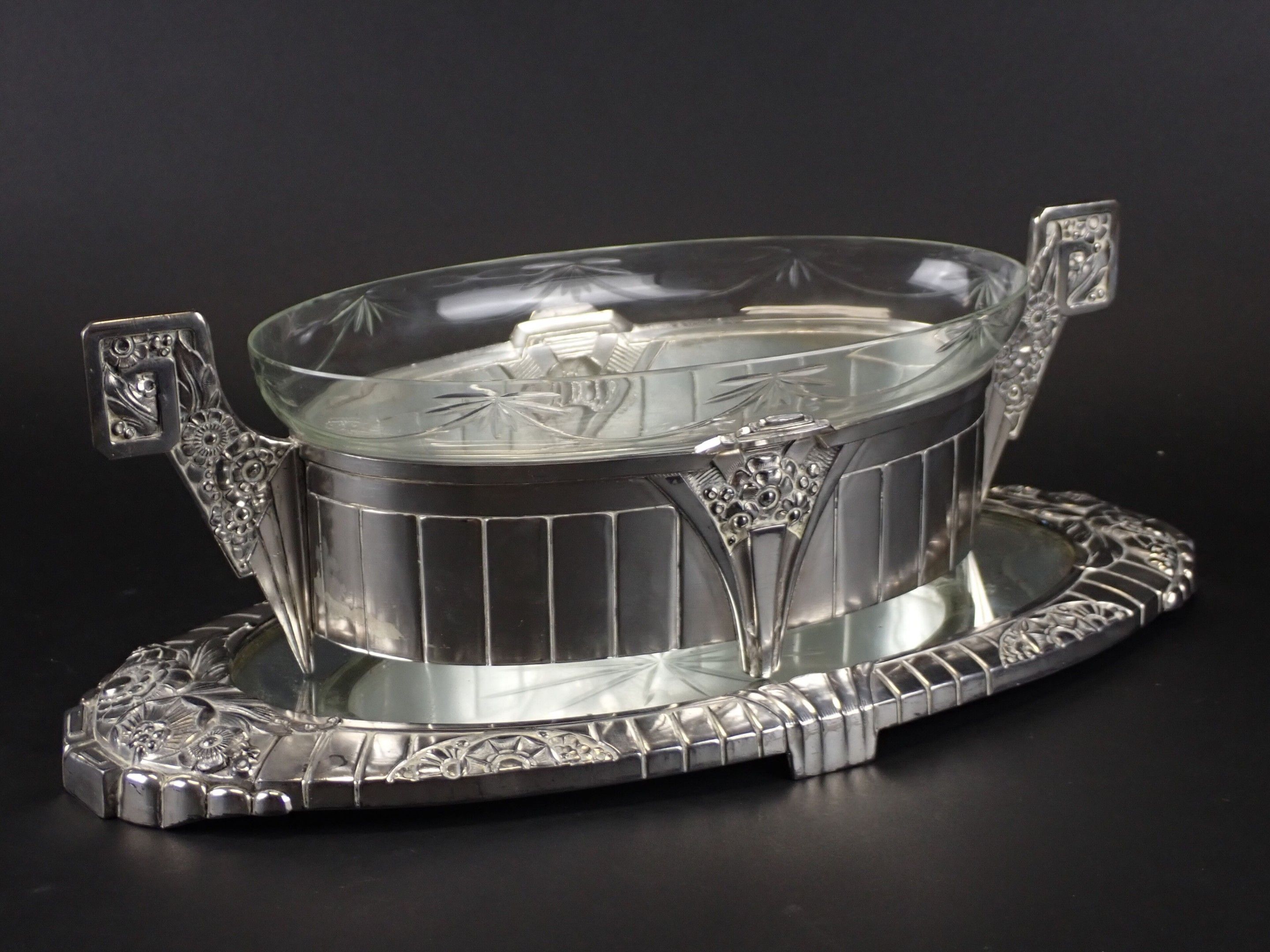 DILECTA Silverware. Art Deco style silver-plated metal planter / centrepiece