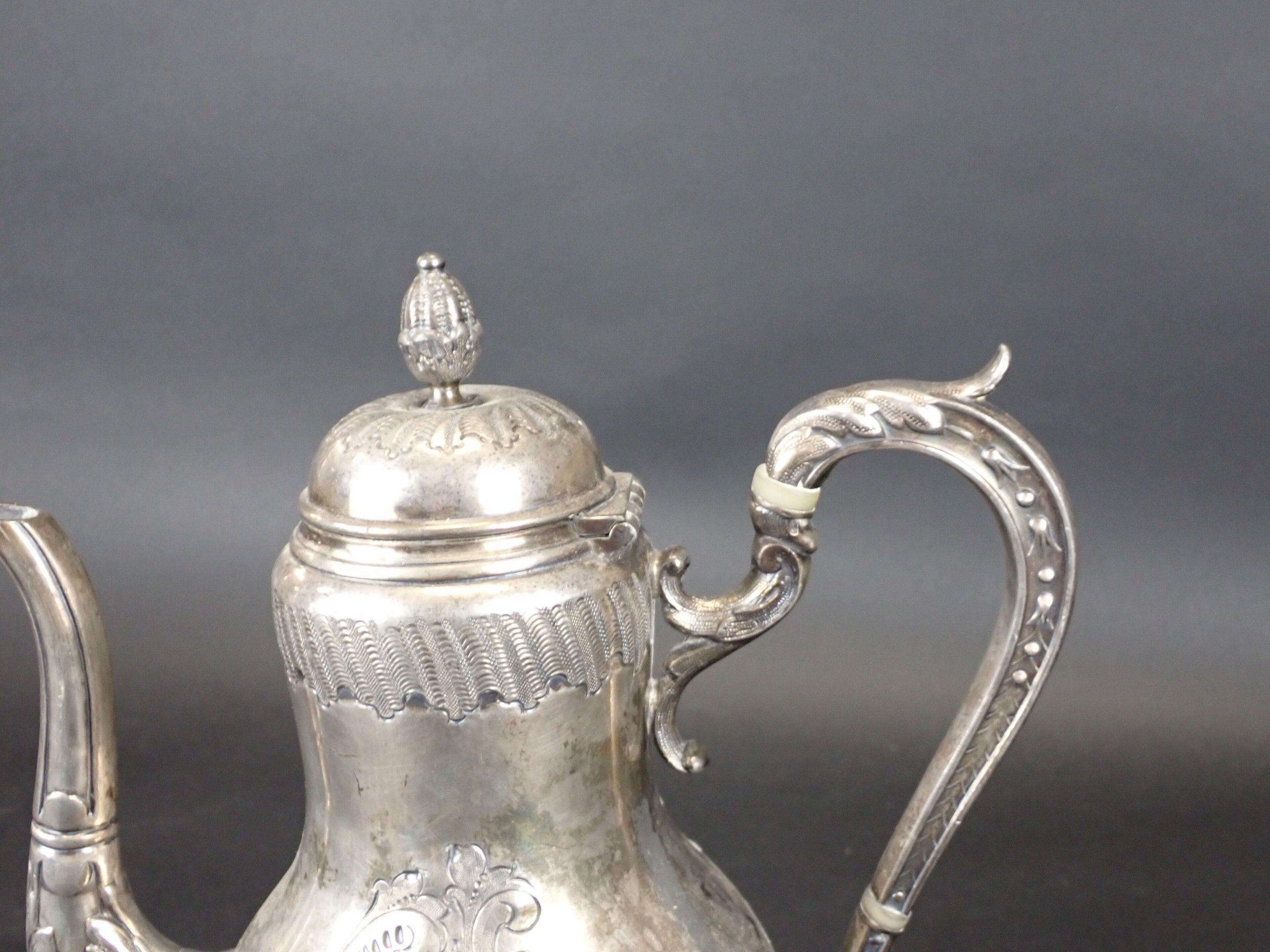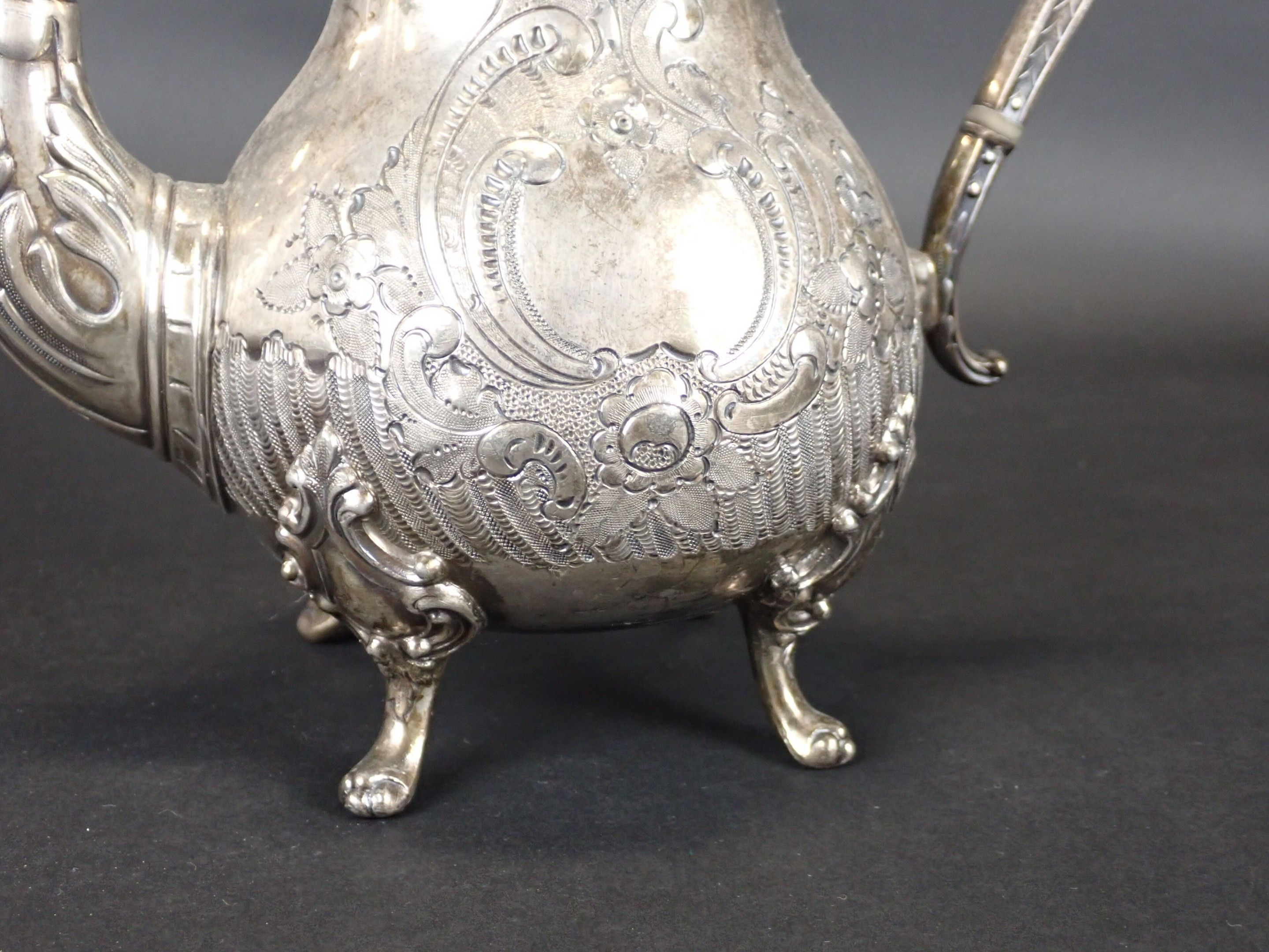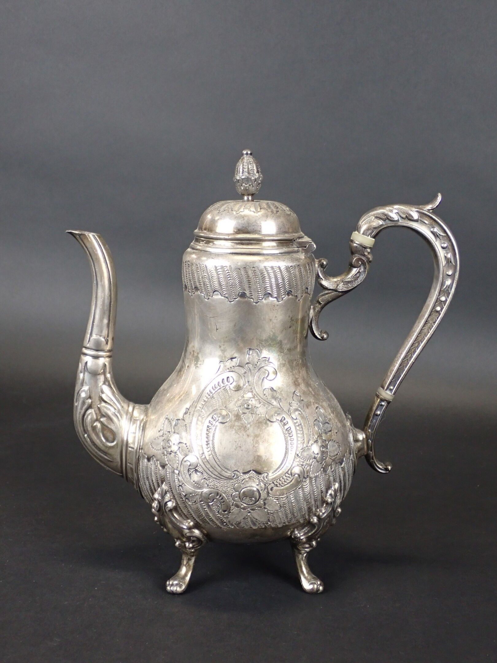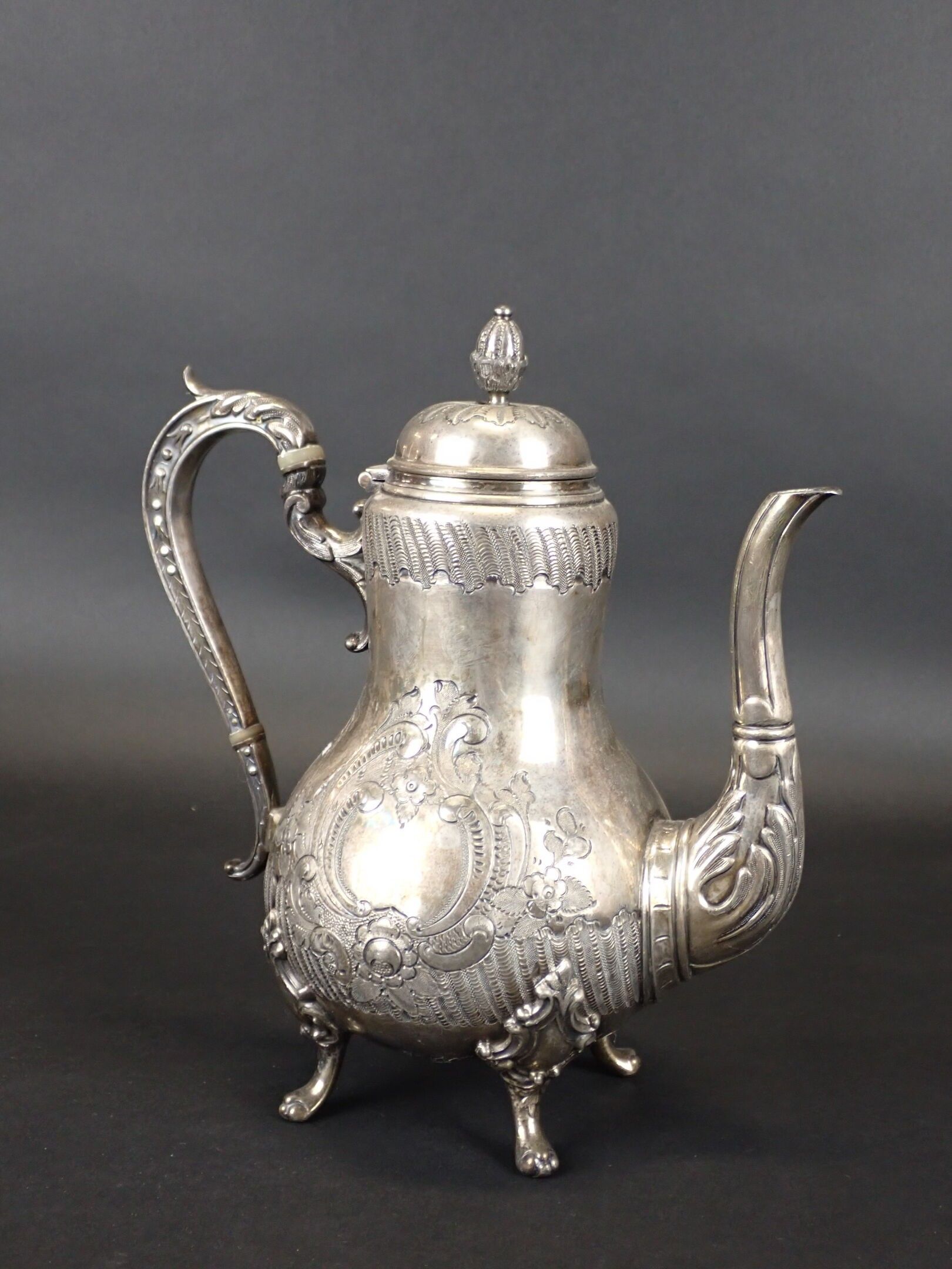 Napoleon III period silver plated teapot with rich rocaille decoration. Height: 25 cm. Used condition