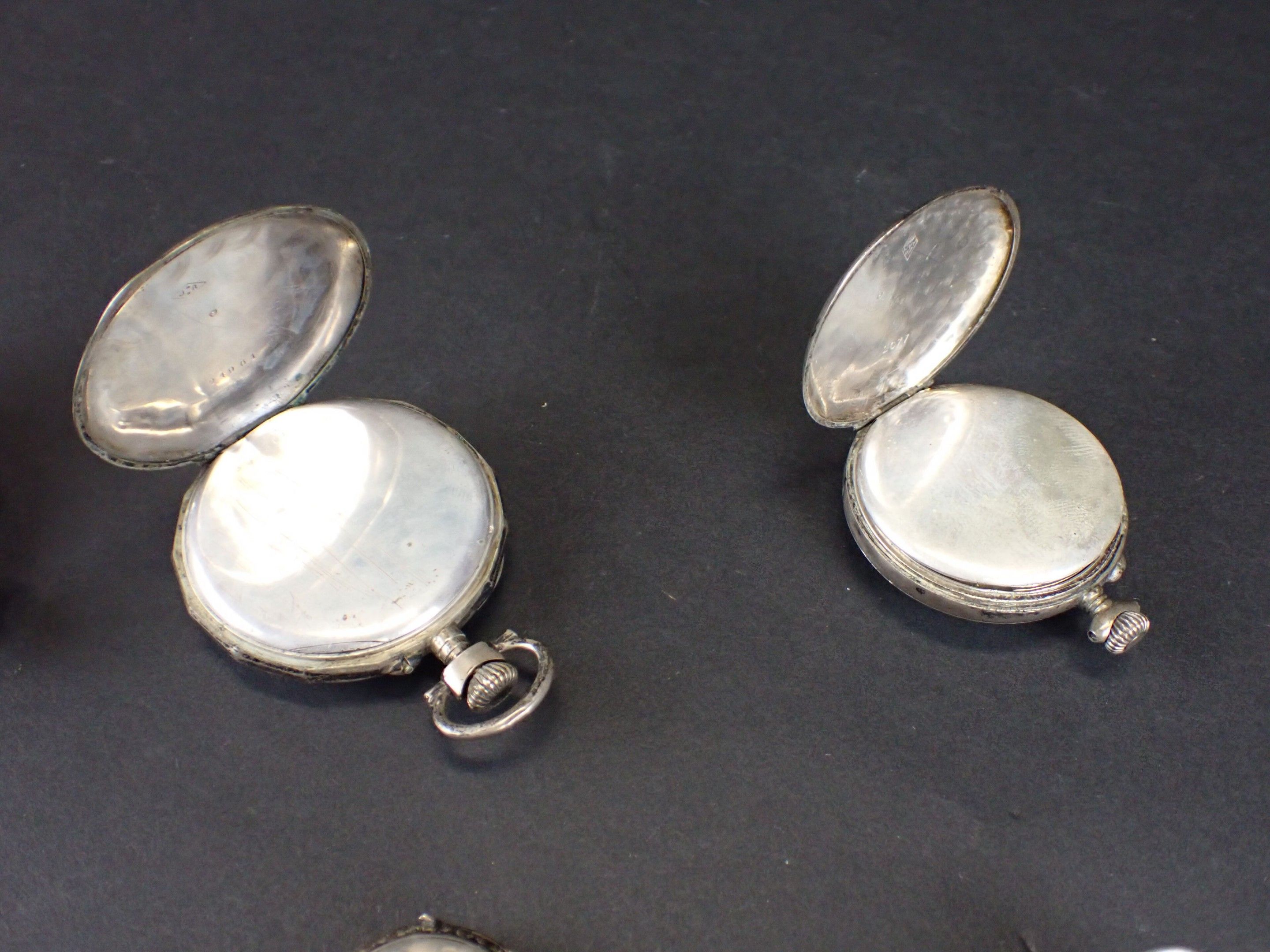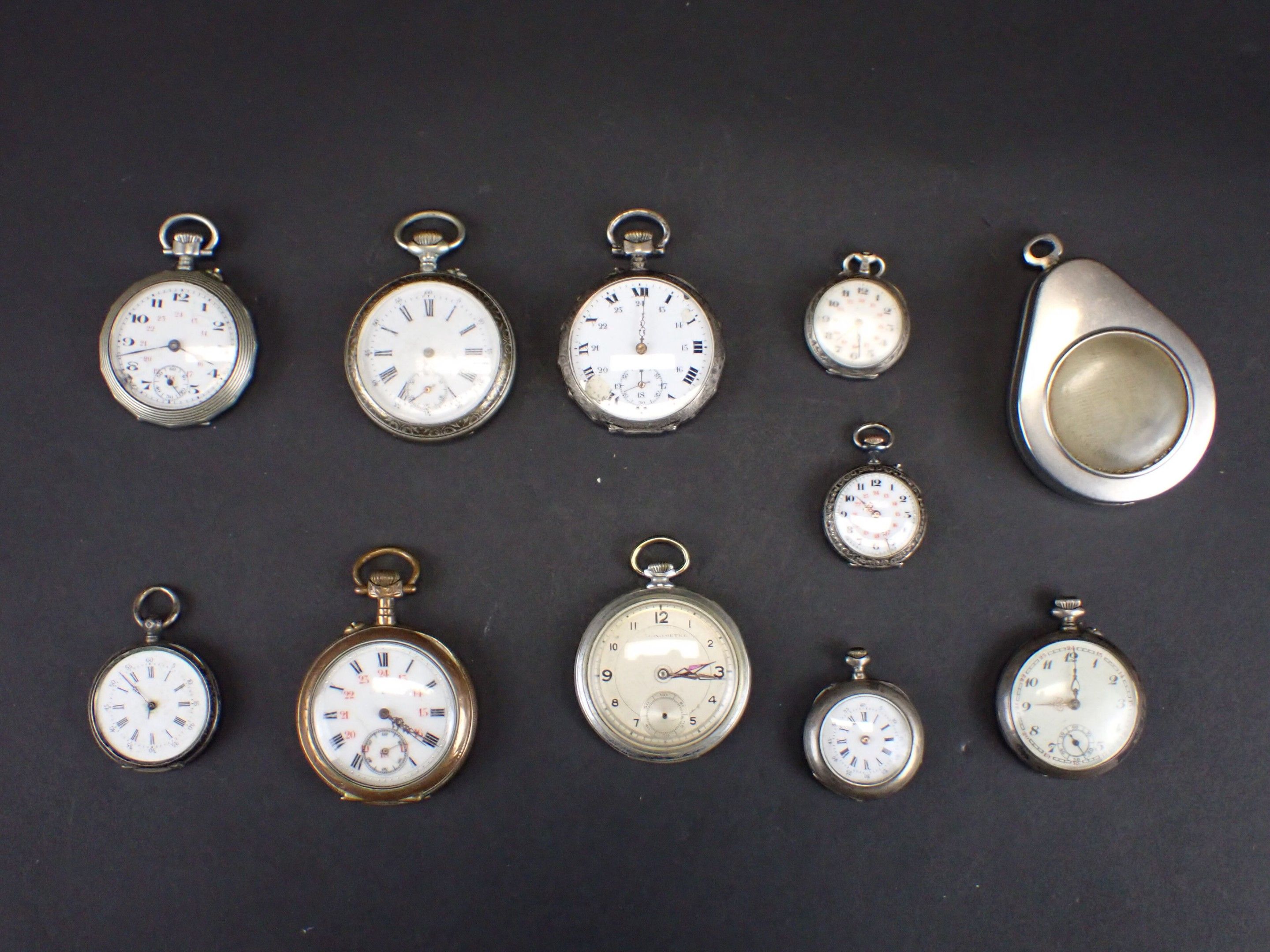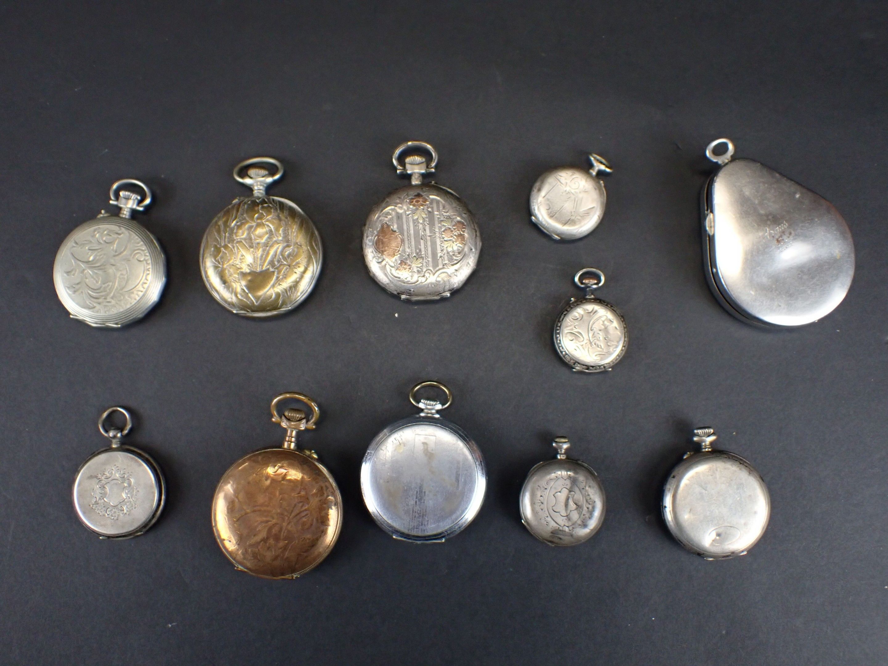 Lot of 10 silver 800/1000th (x7) and steel (x3) collar or gusset watches. Gross weight of the silver watches: 280.9 g (wear, missing parts, accidents, to be revised)