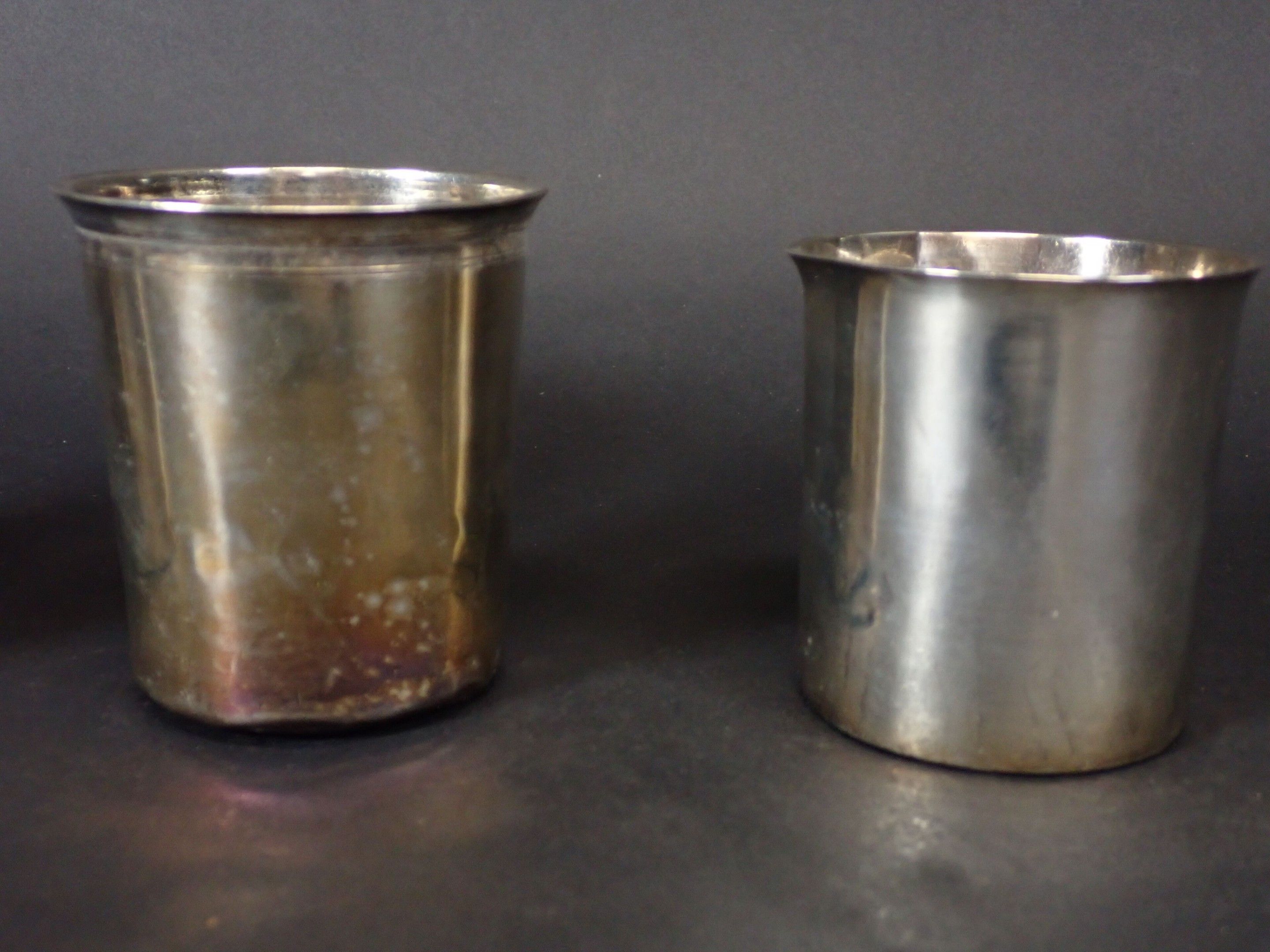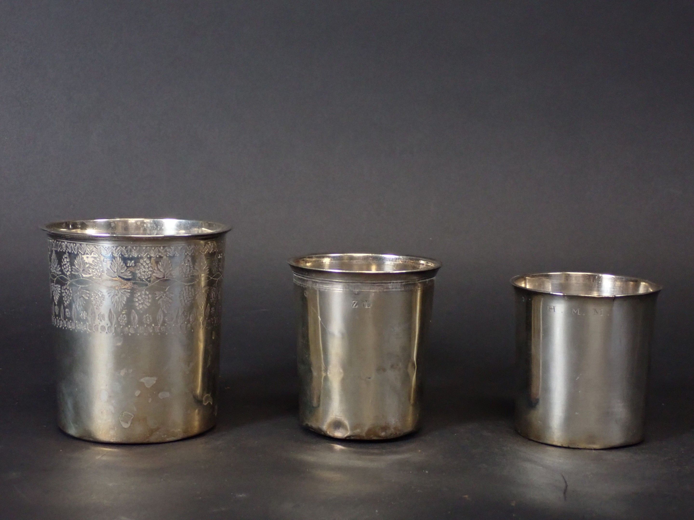 Set of three solid silver kettledrums 800/1000th, different shapes and decorations, total net weight: 346 g, height from 7 to 9 cm, wear.