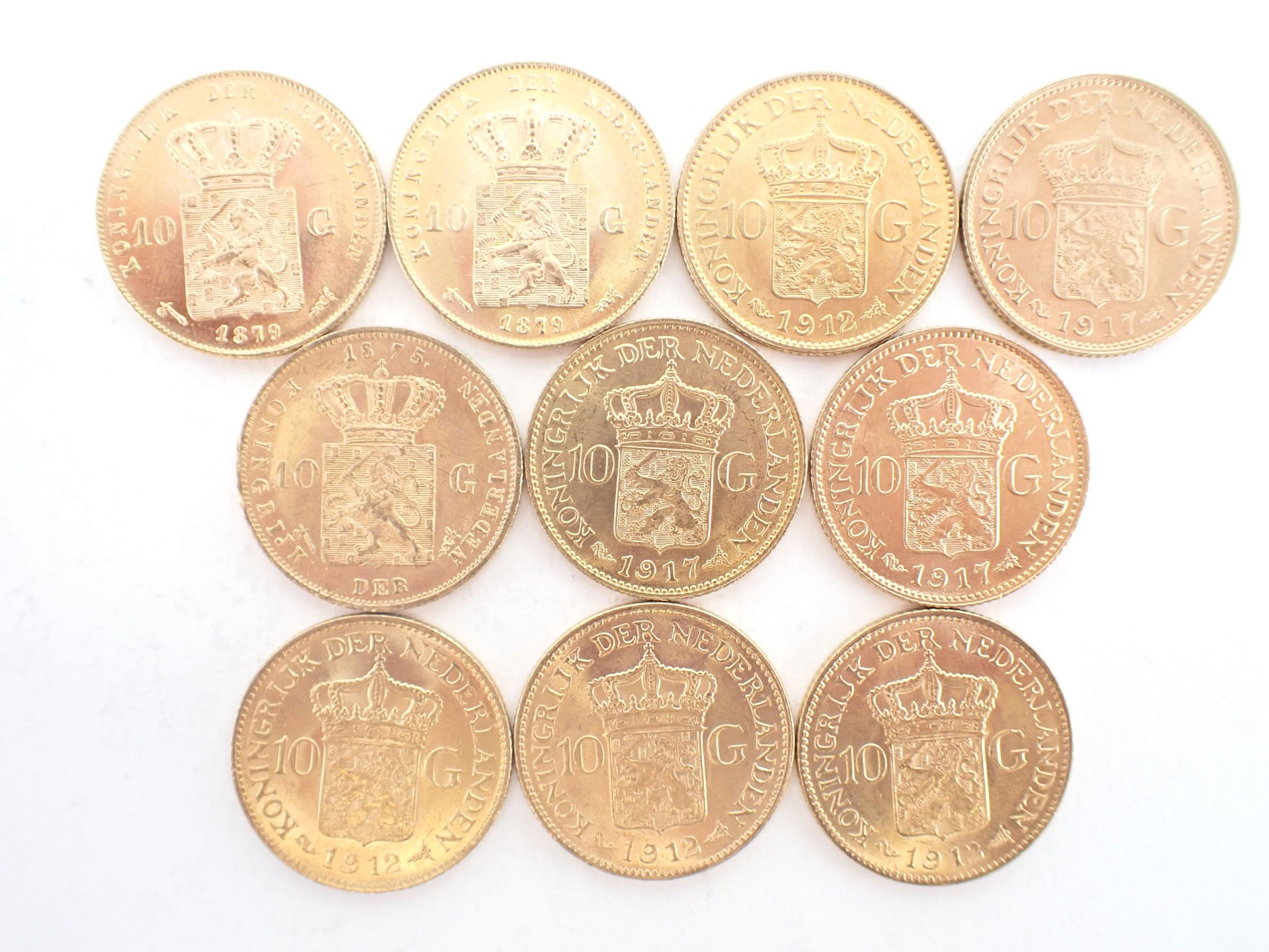 10 pieces of 10 Dutch guilders or gold Gulden - 67.2 g