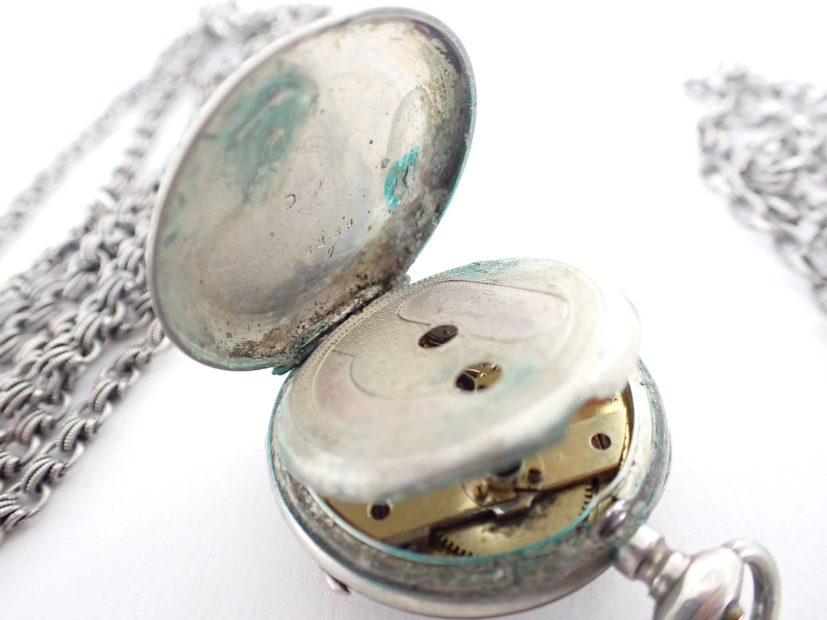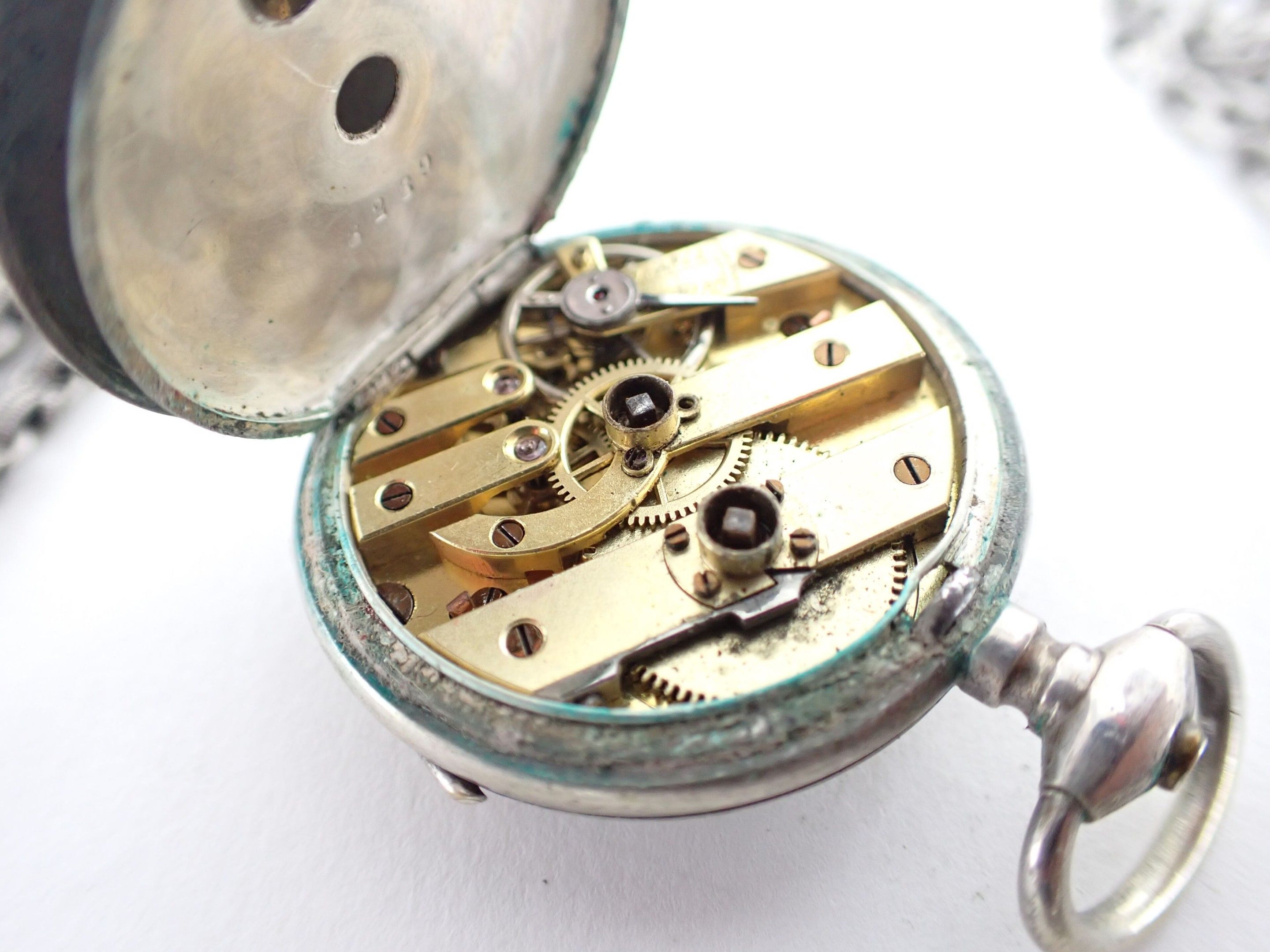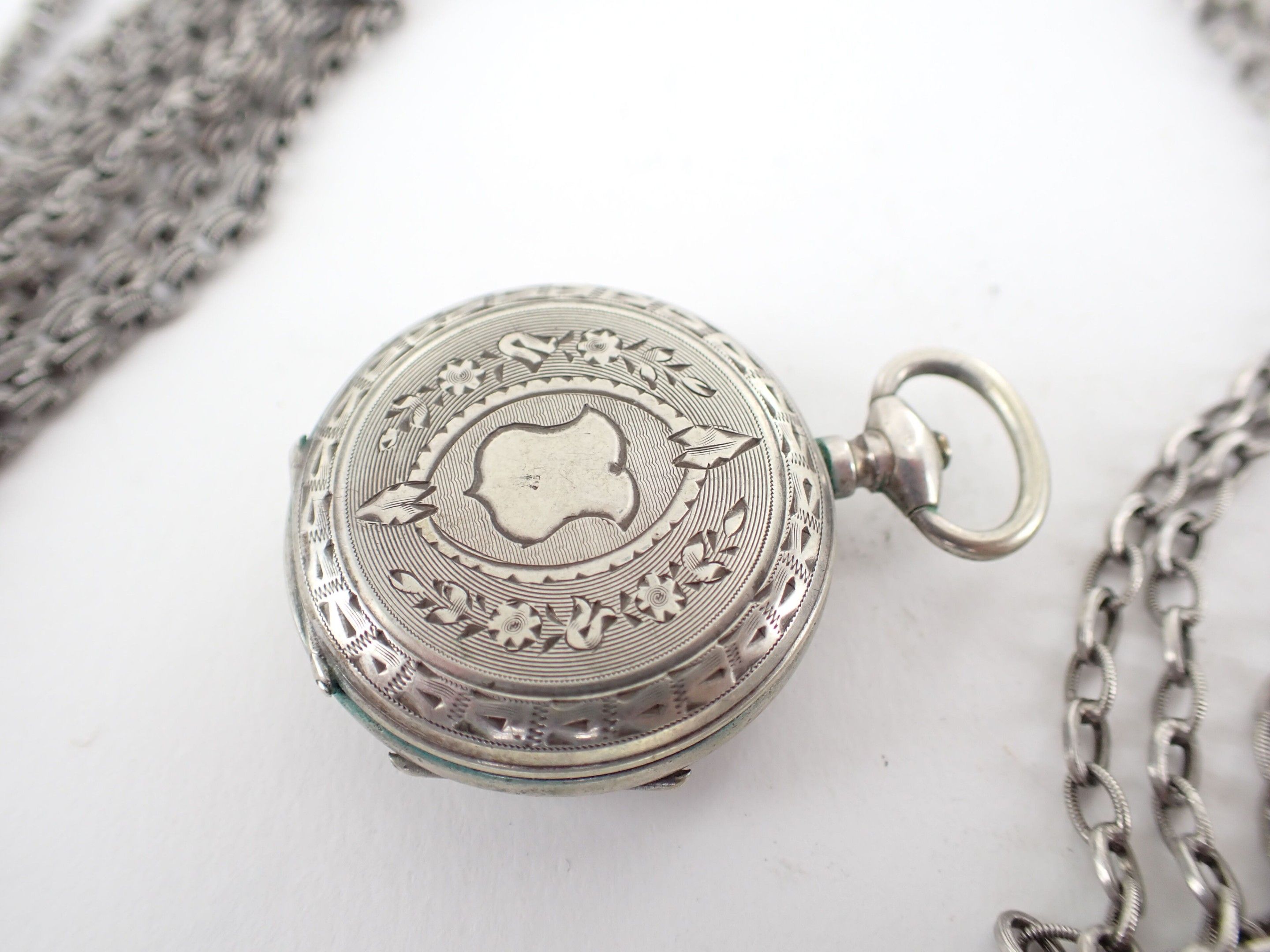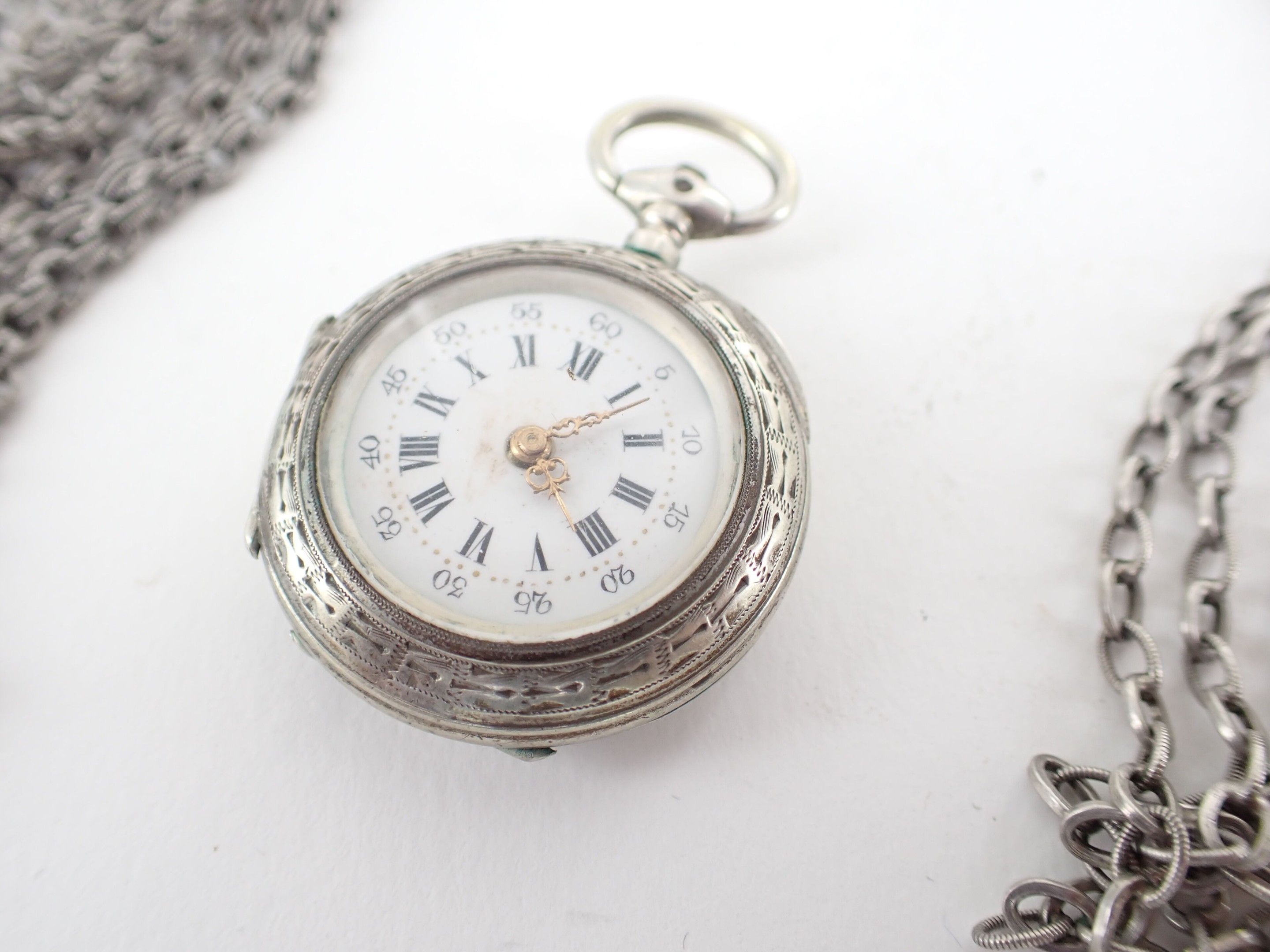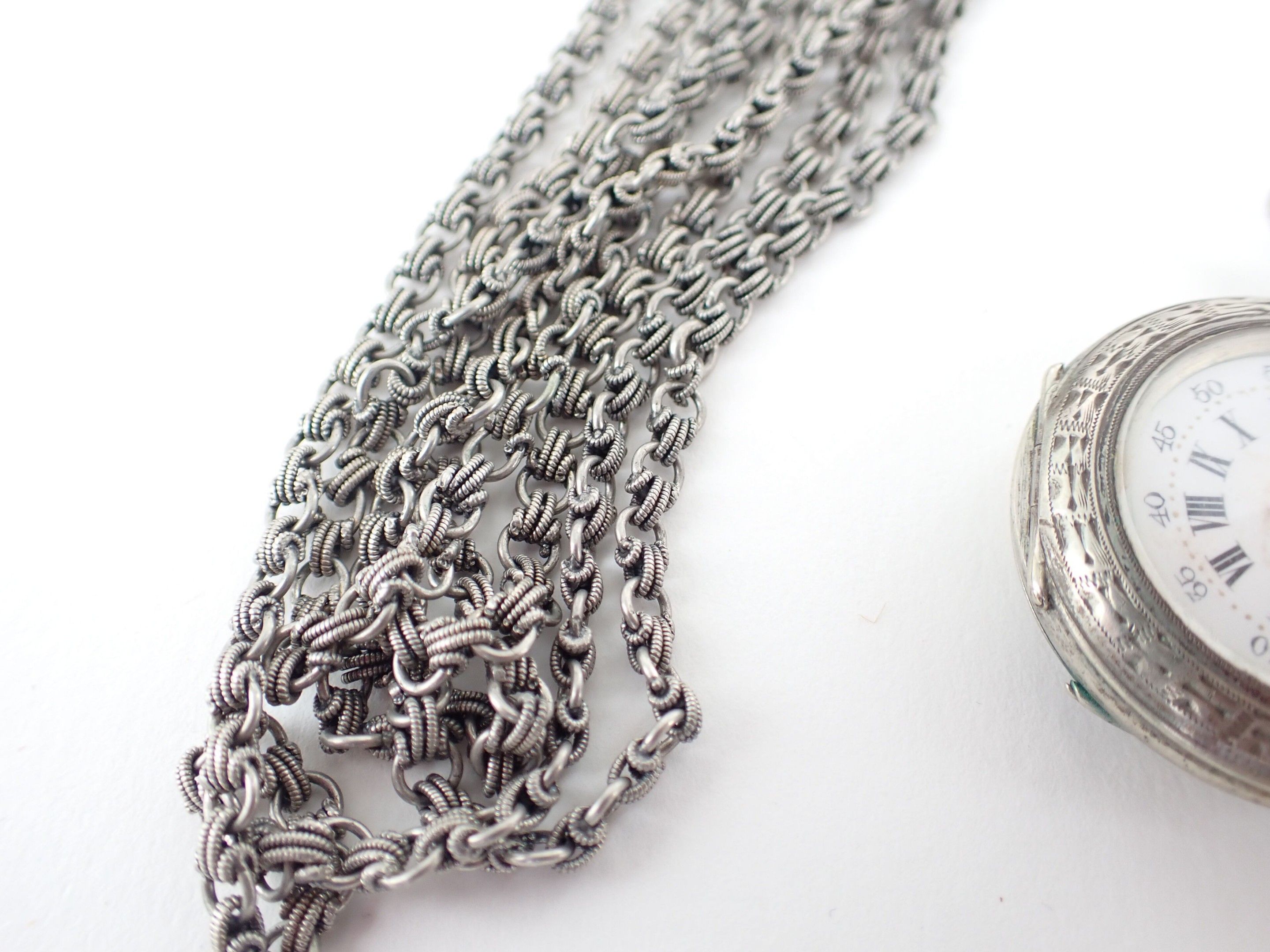 Silver collar watch (gross weight: 25.3g) and two silver watch chains (net weight: 59.6g)