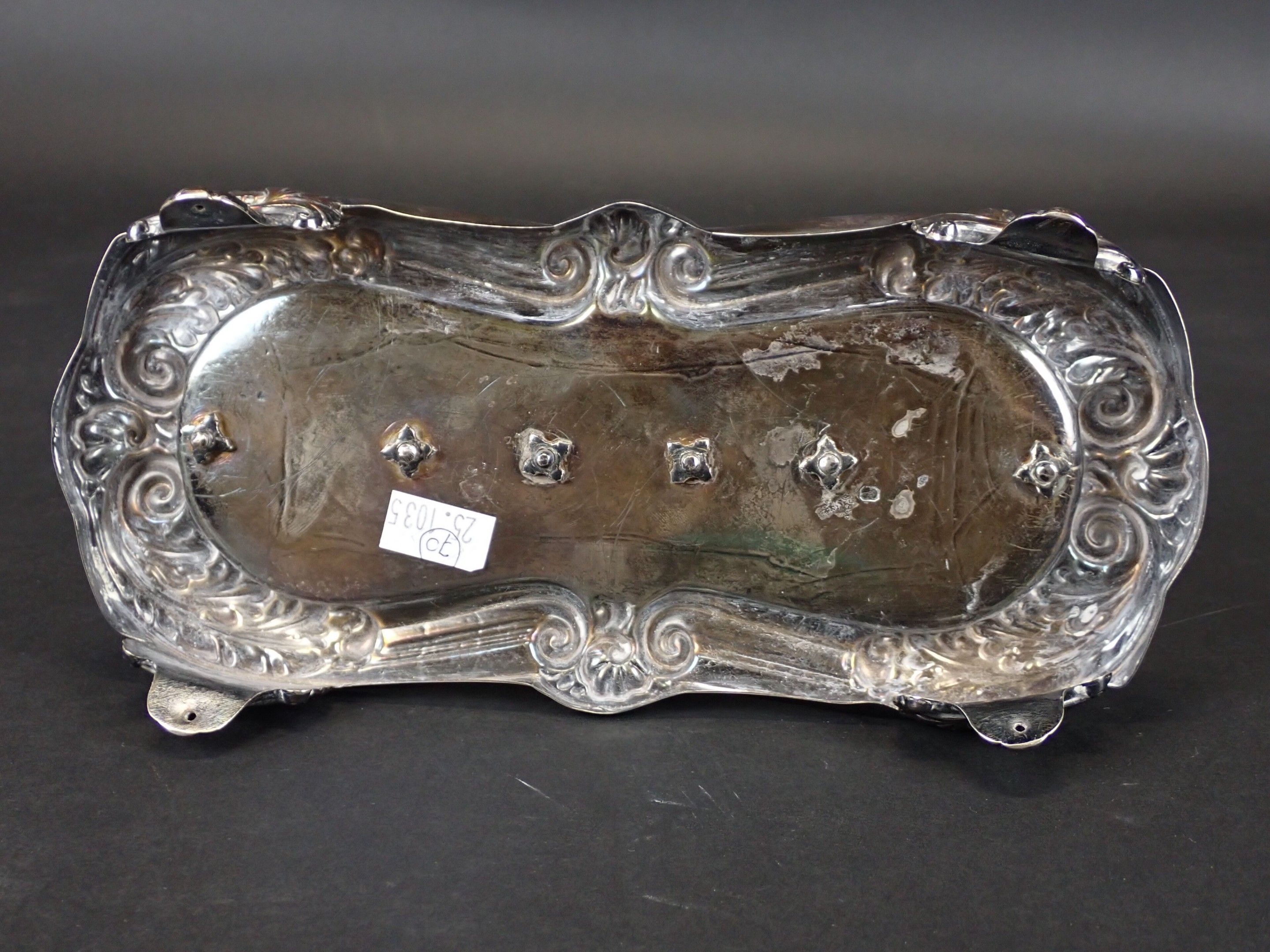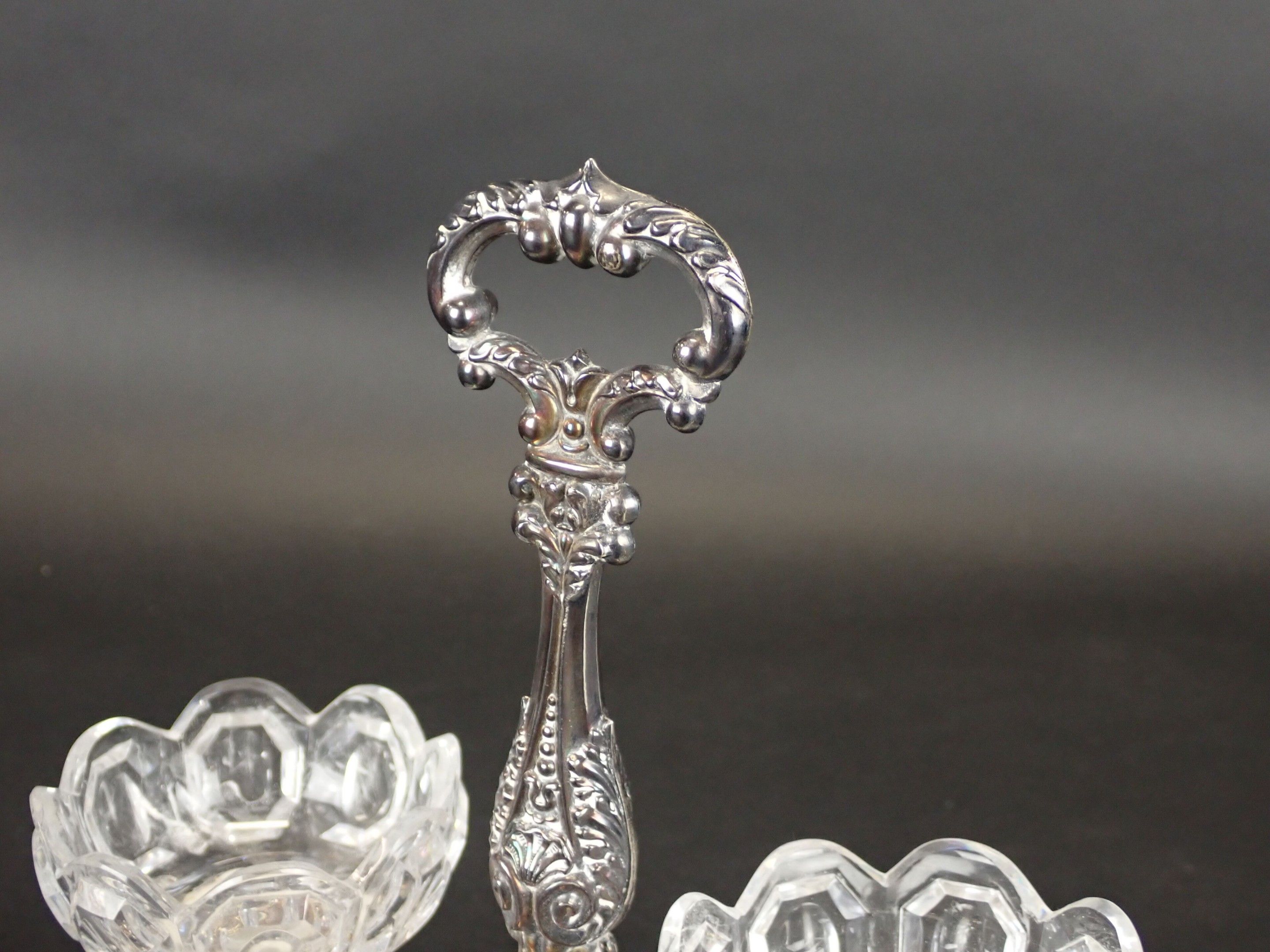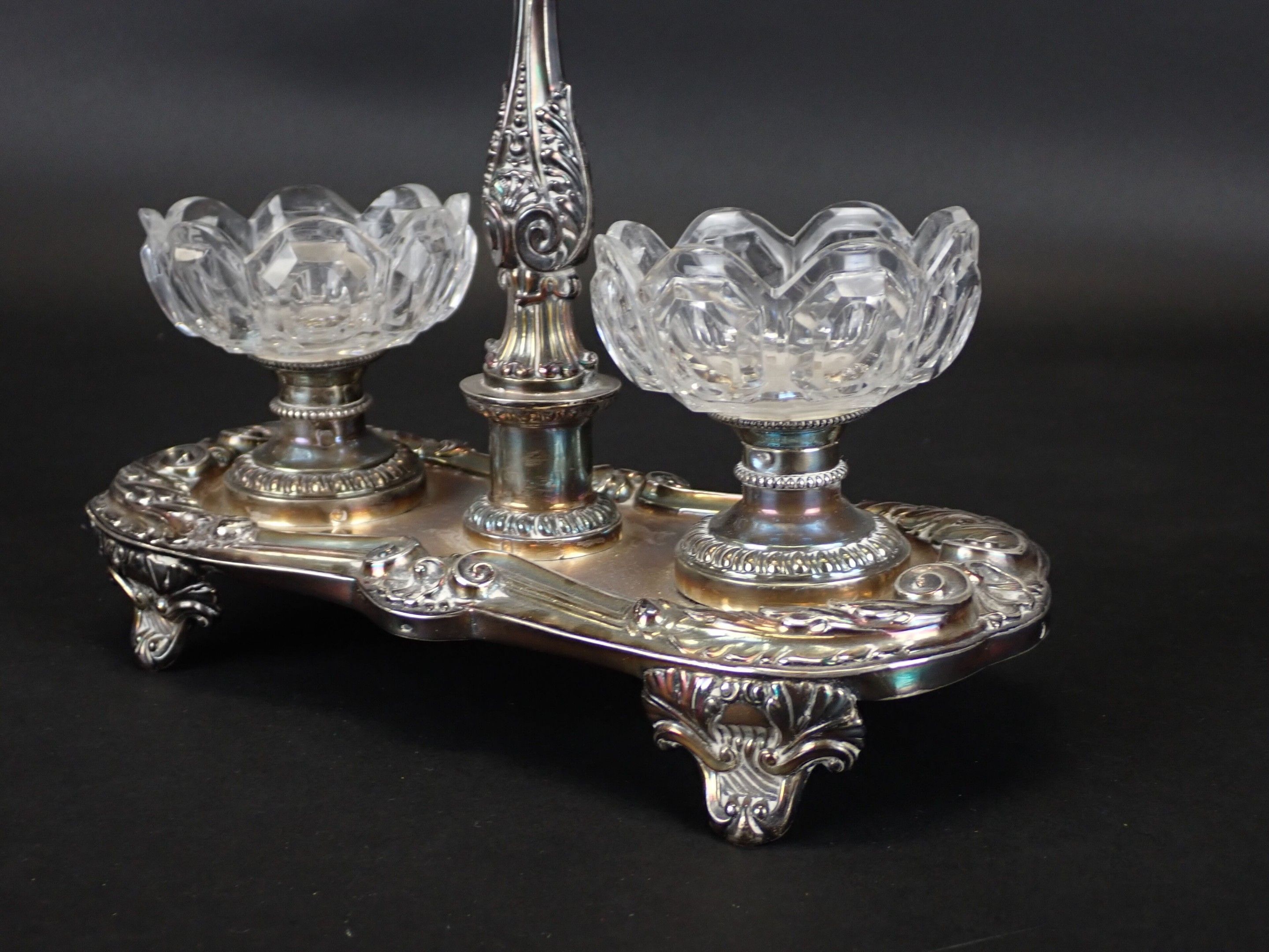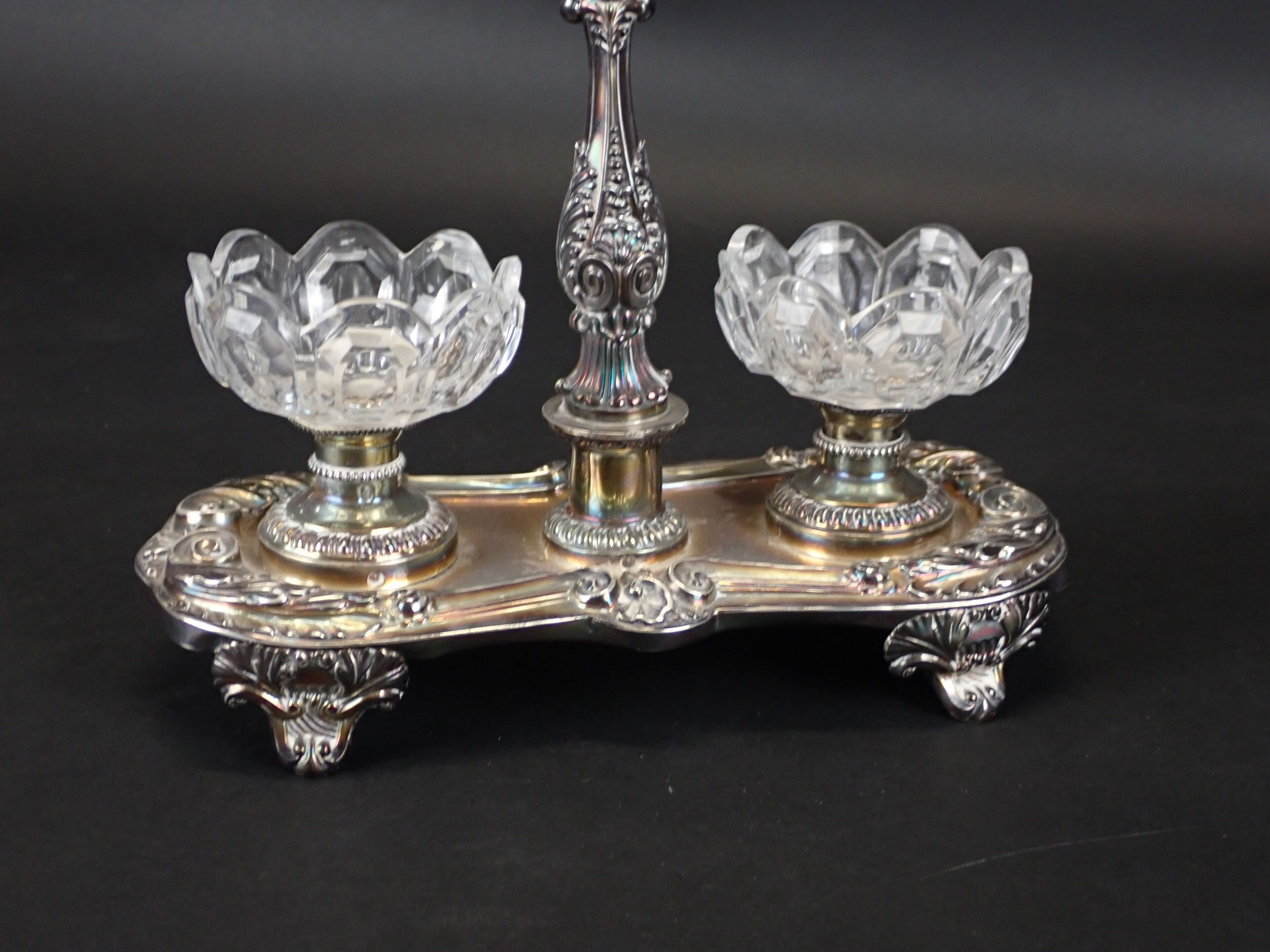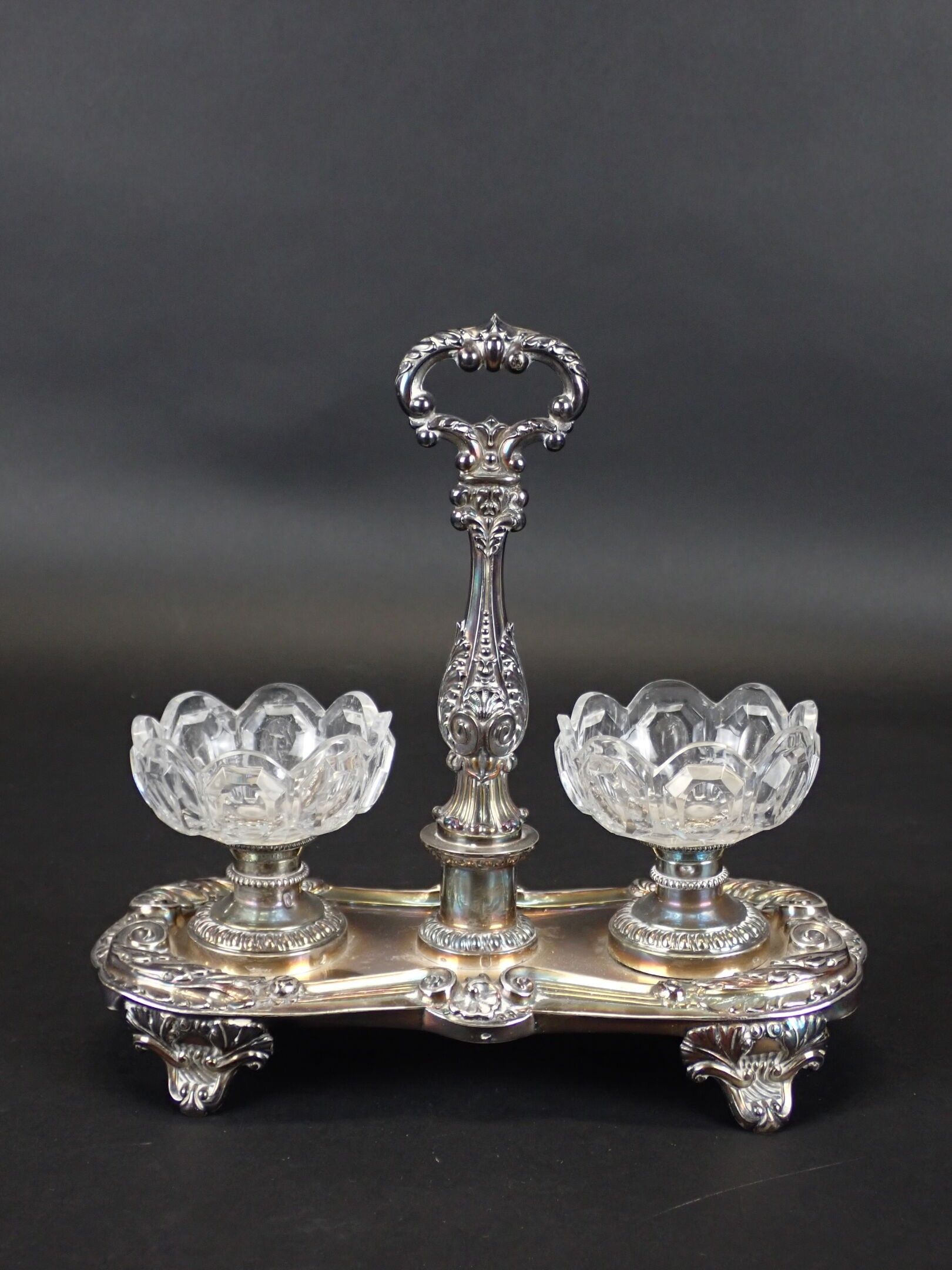 Paris, 1798-1809 - An Empire-period solid silver 800 condiment holder or double salt cellar, with repoussé relief decoration of acanthus leaves and gadroons, the two faceted crystal compartments.