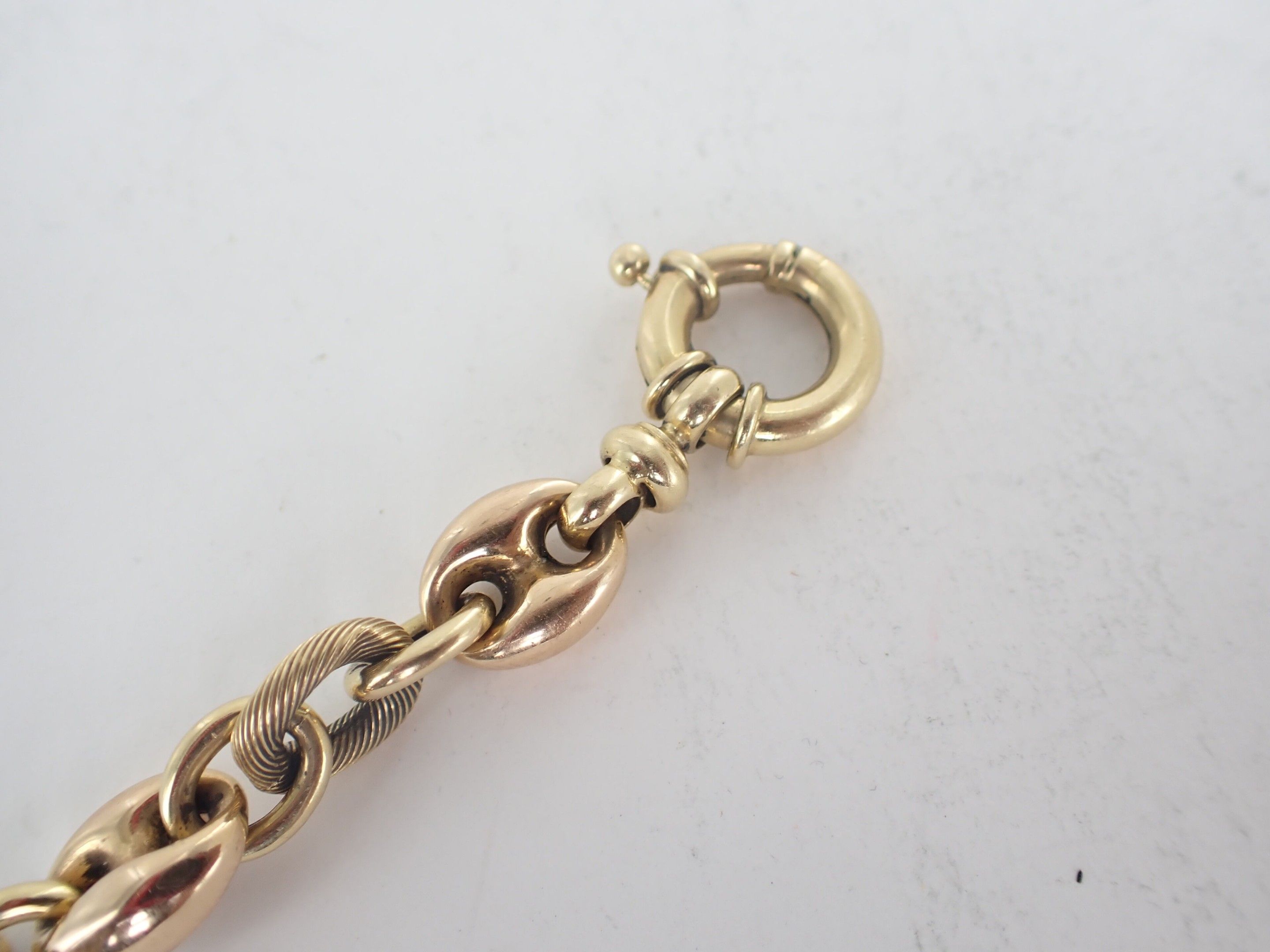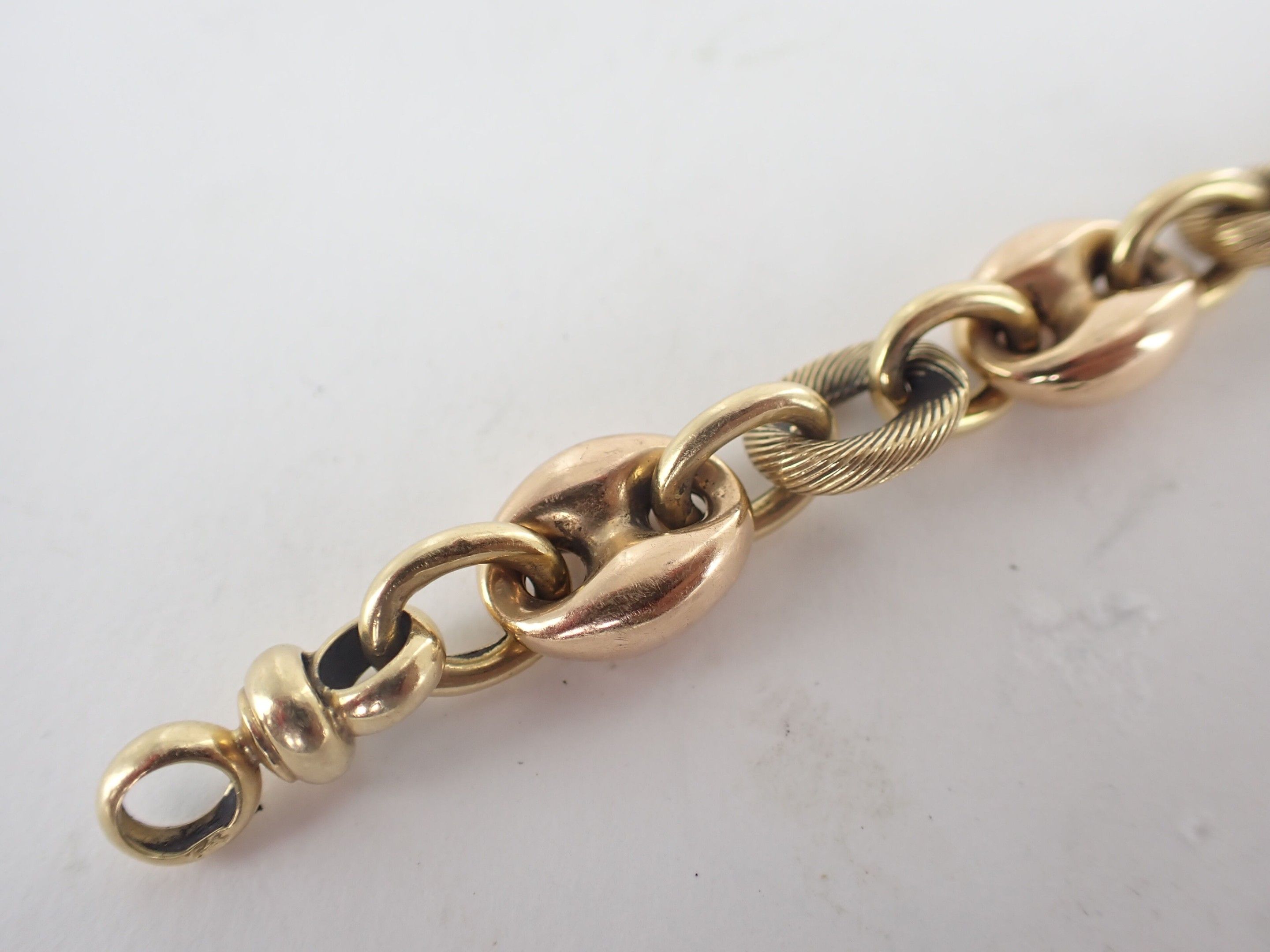 Bracelet in 750 thousandths yellow gold with hollow coffee bean links and twisted força.