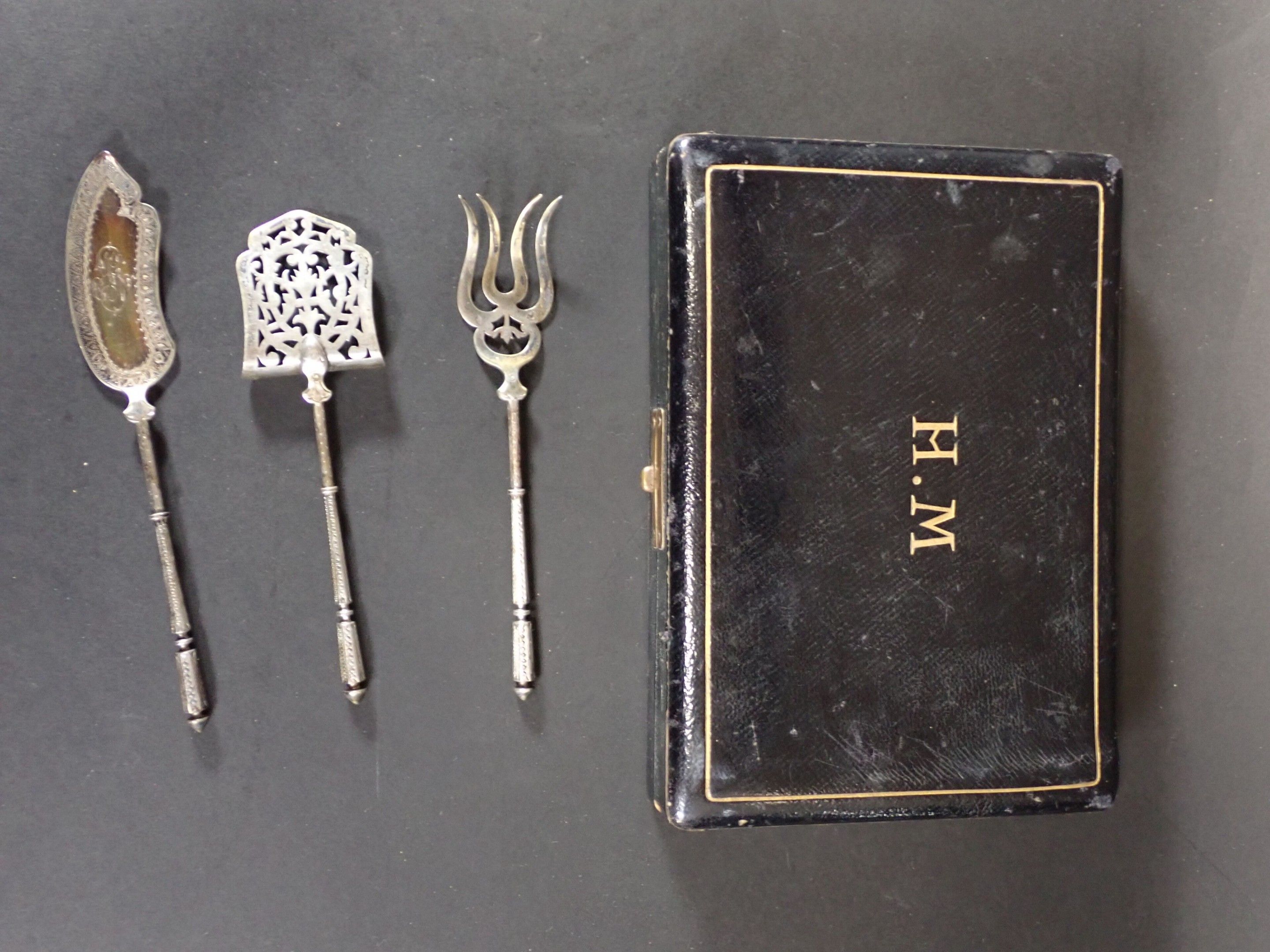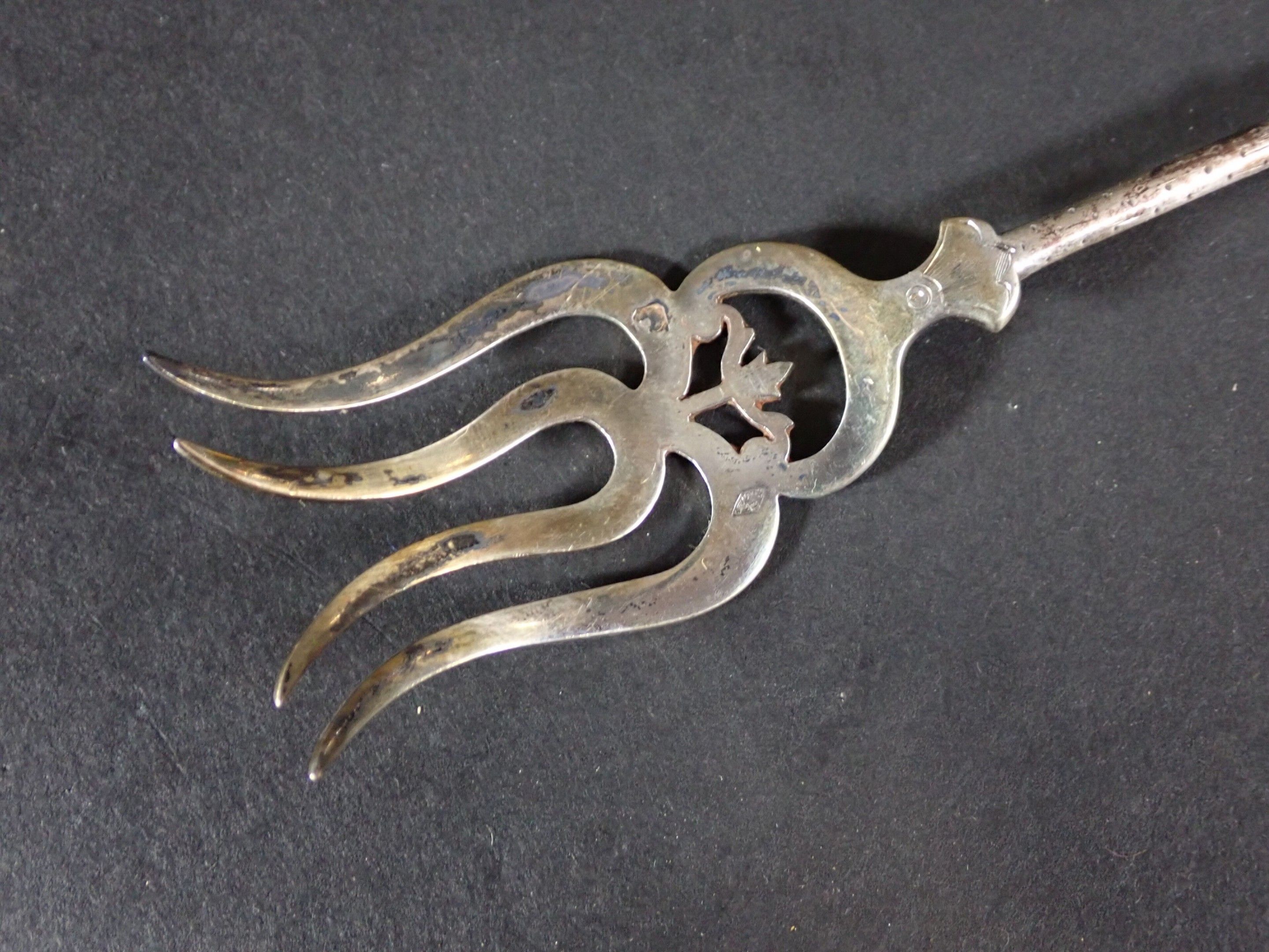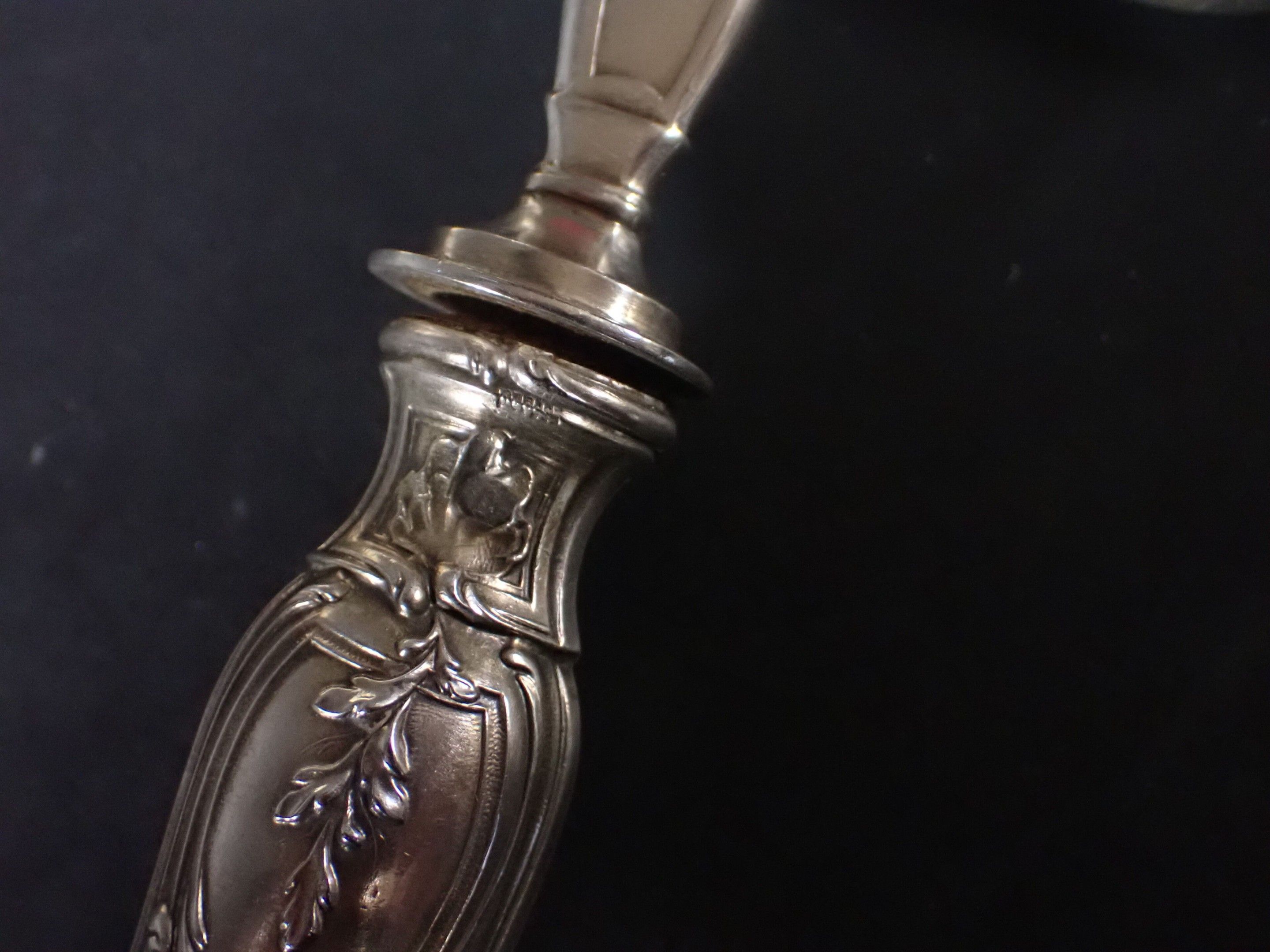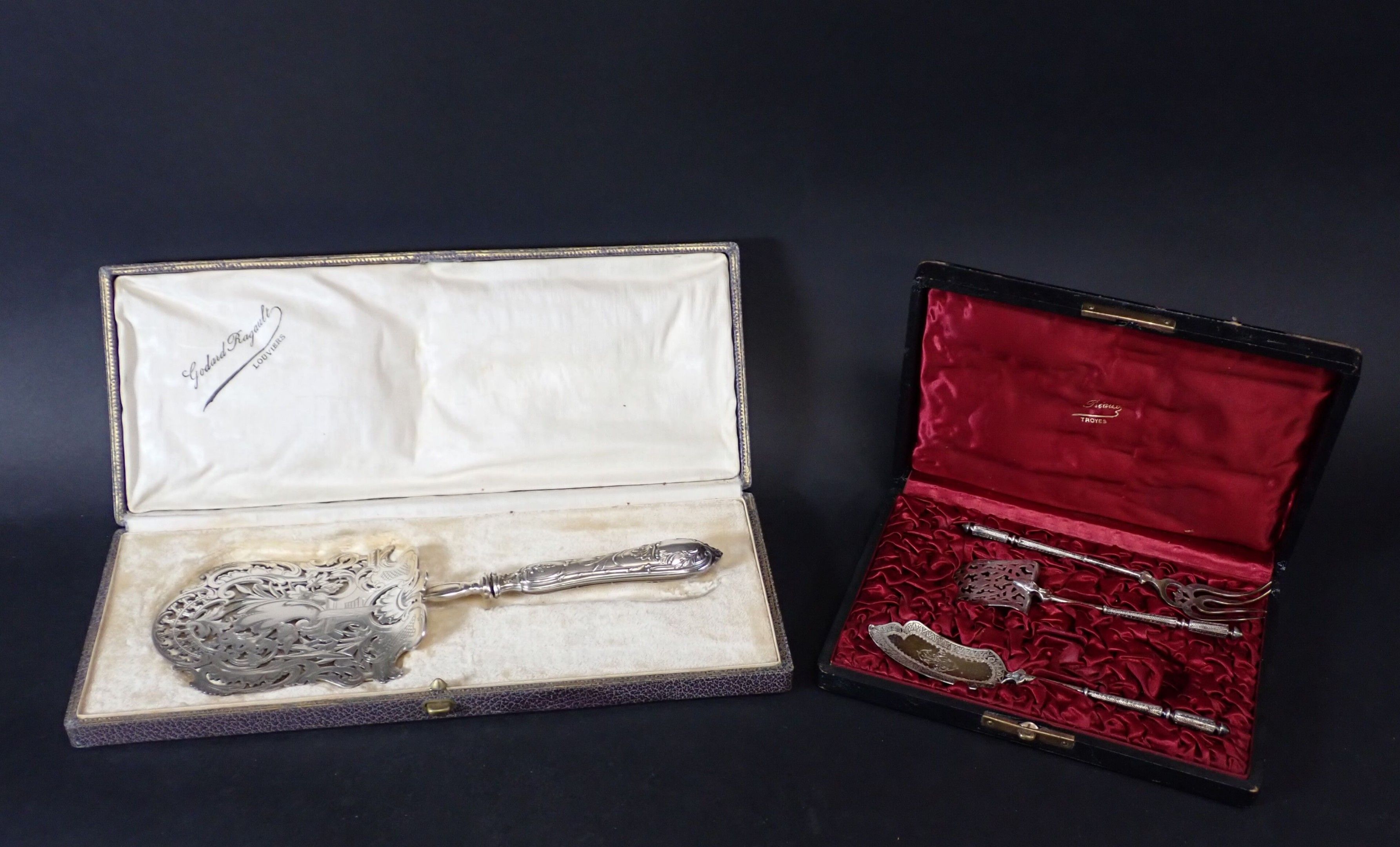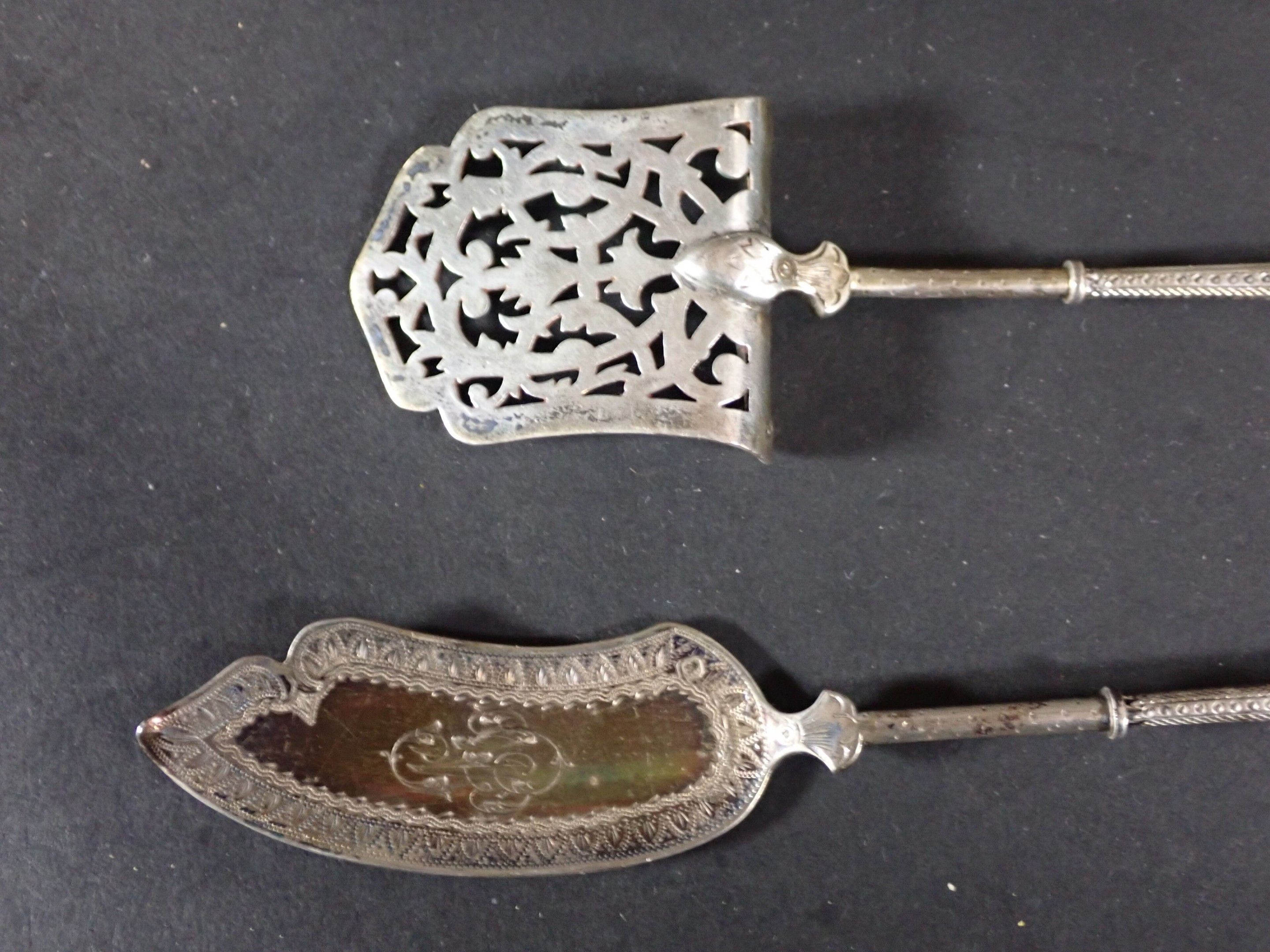 Net weight: 98 g. One cake serving scoop, the handle in solid silver 800/1000 and the spatula in openwork silver plated metal. In cases.