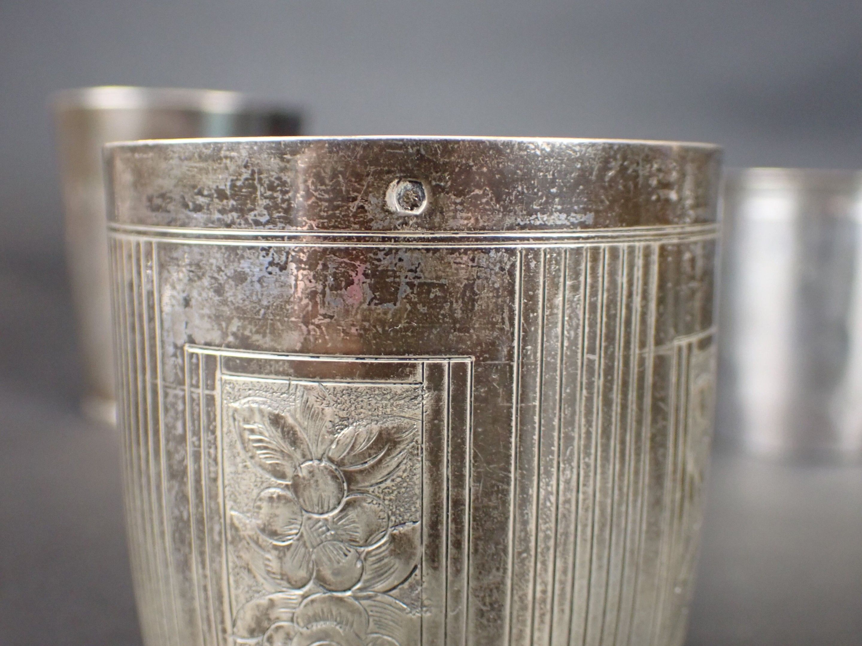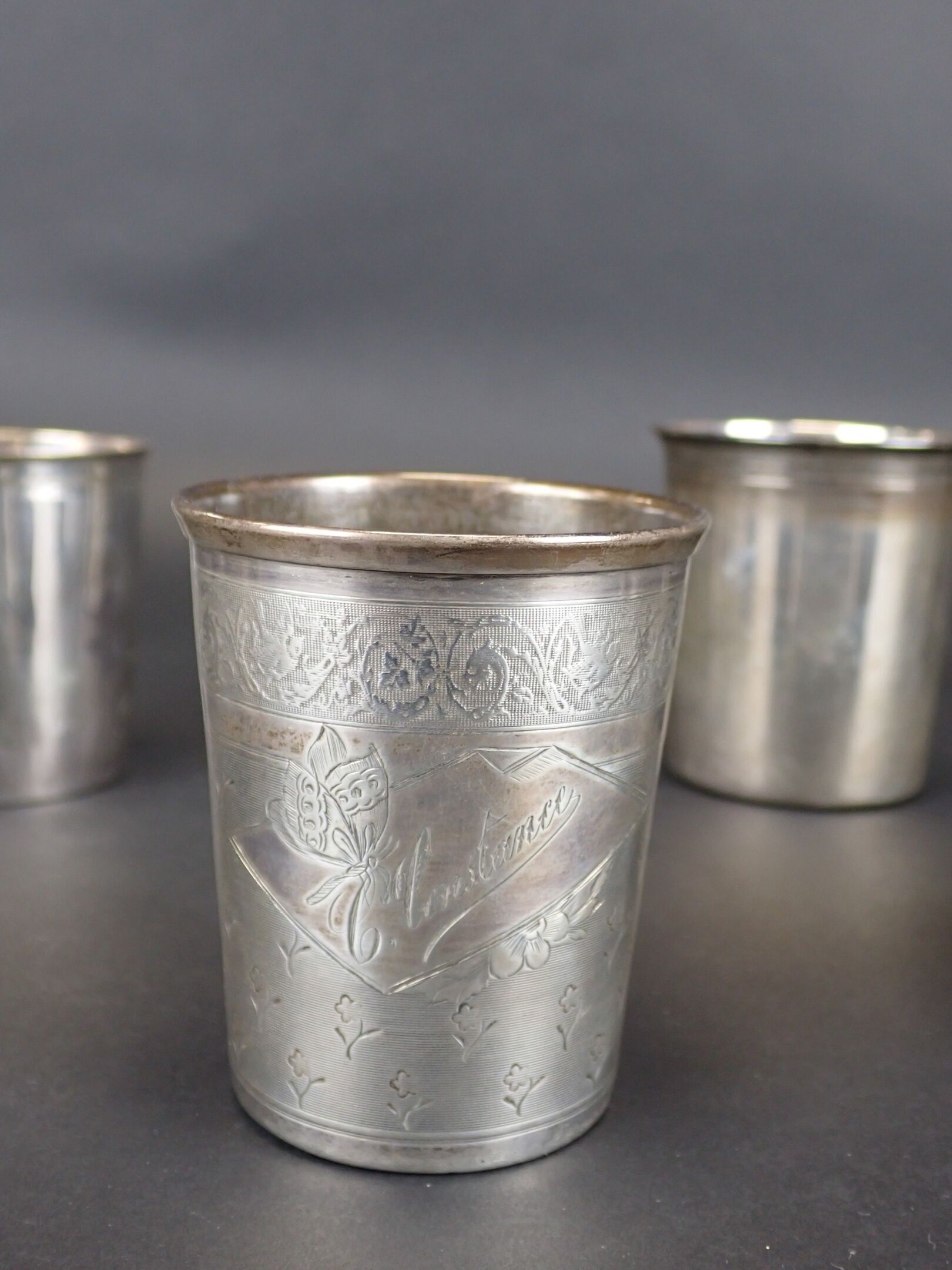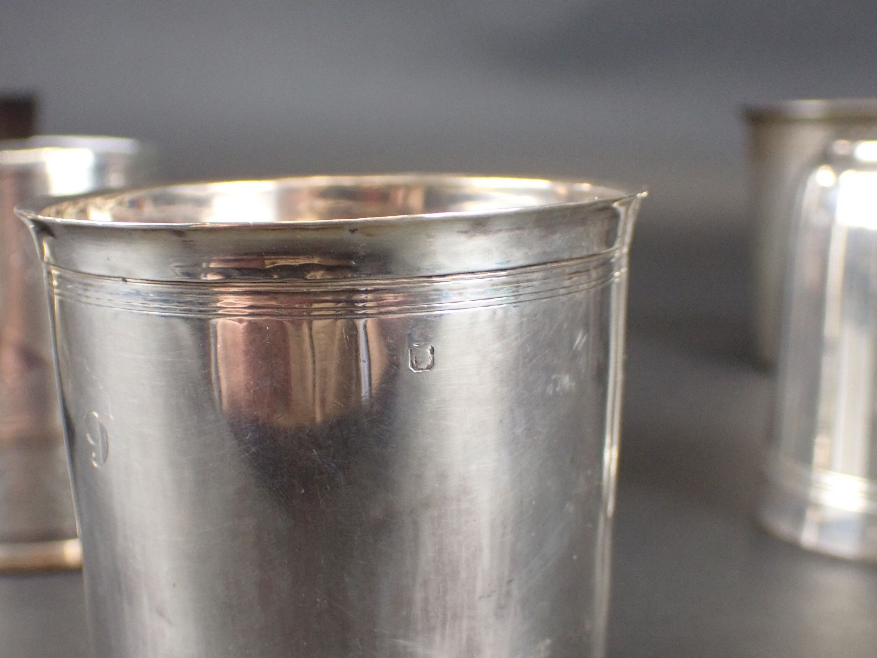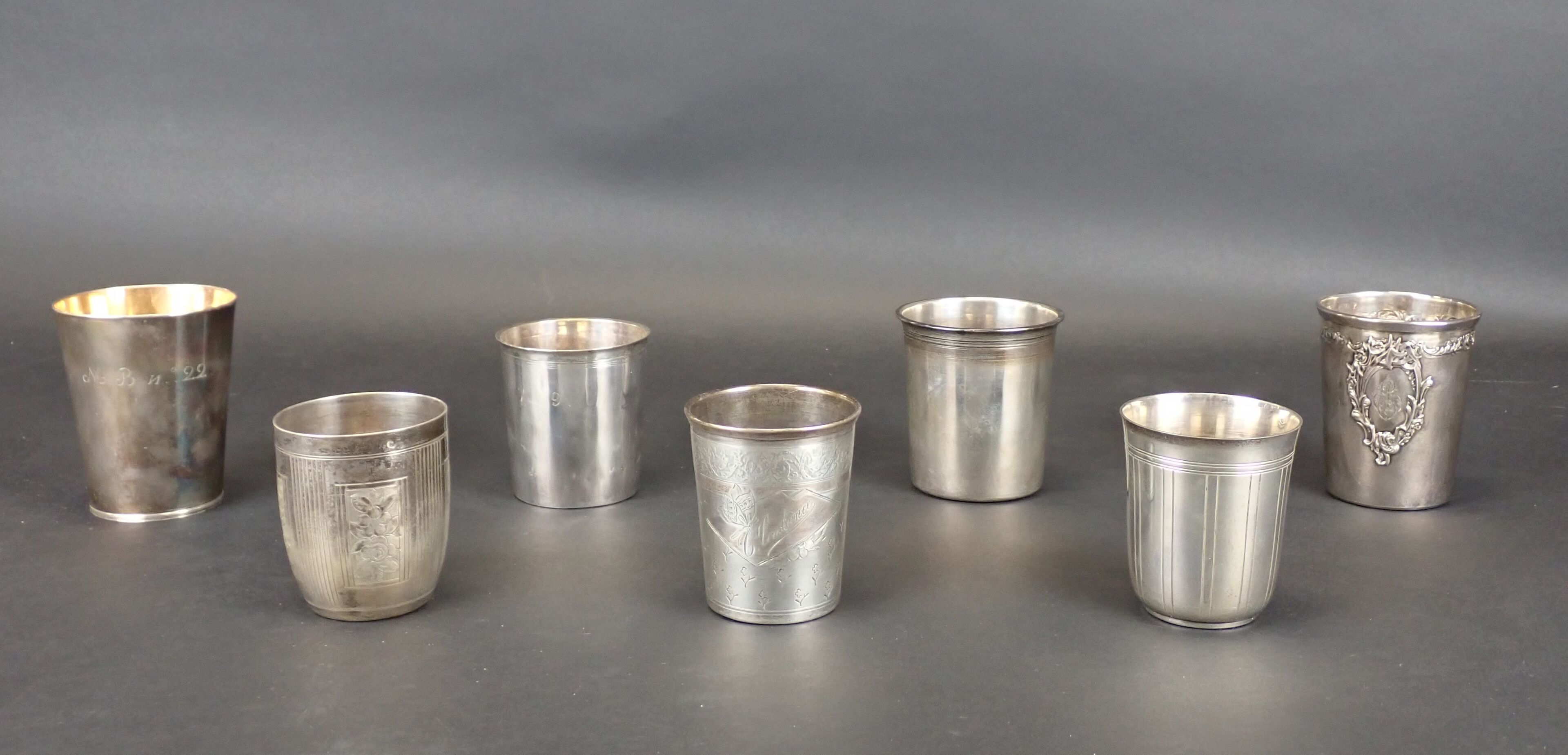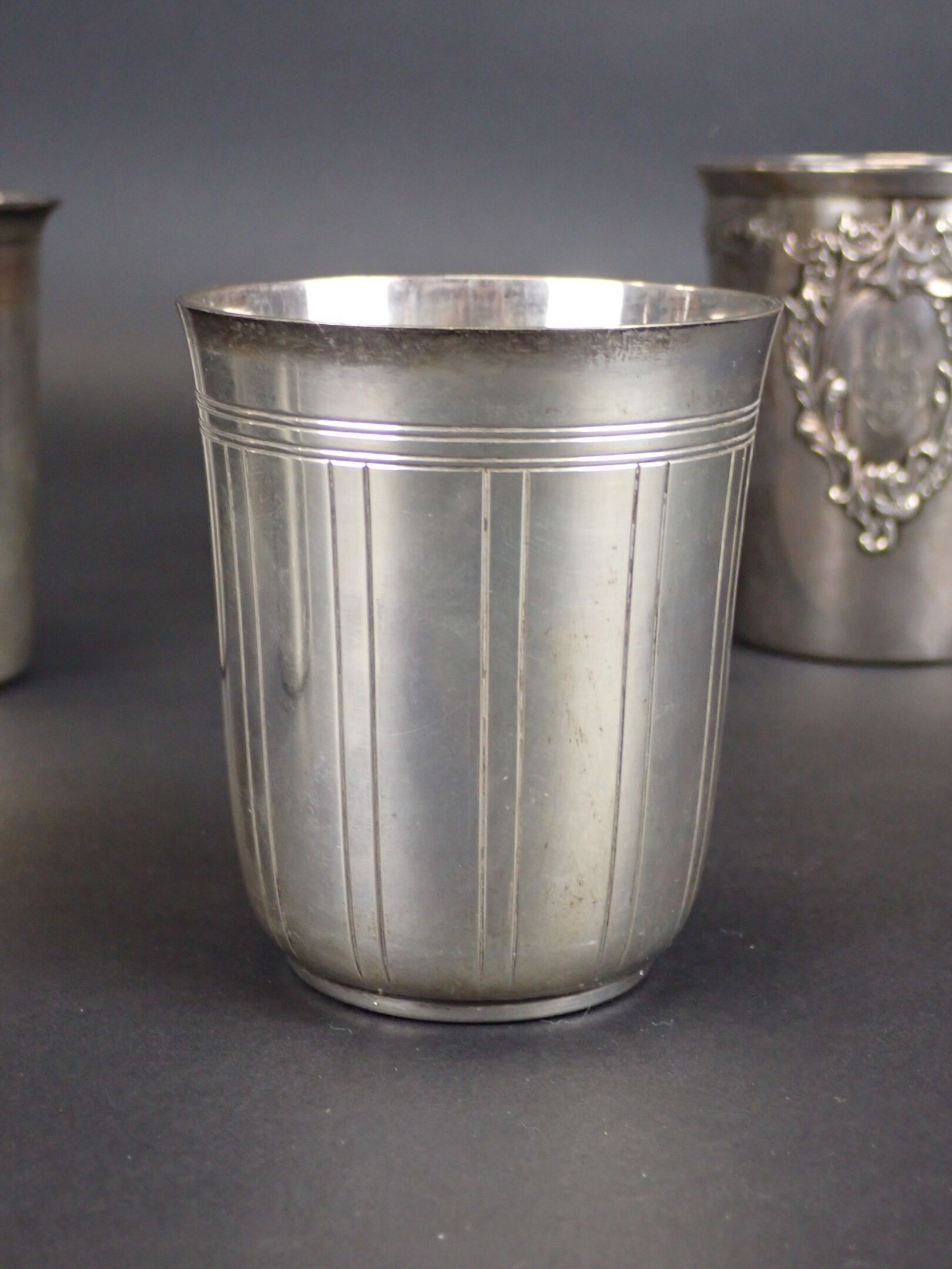 Set of 7 solid silver timbales 800 Minerve hallmarks with various decorations in the Louis XVI, Art Deco and neutral styles.