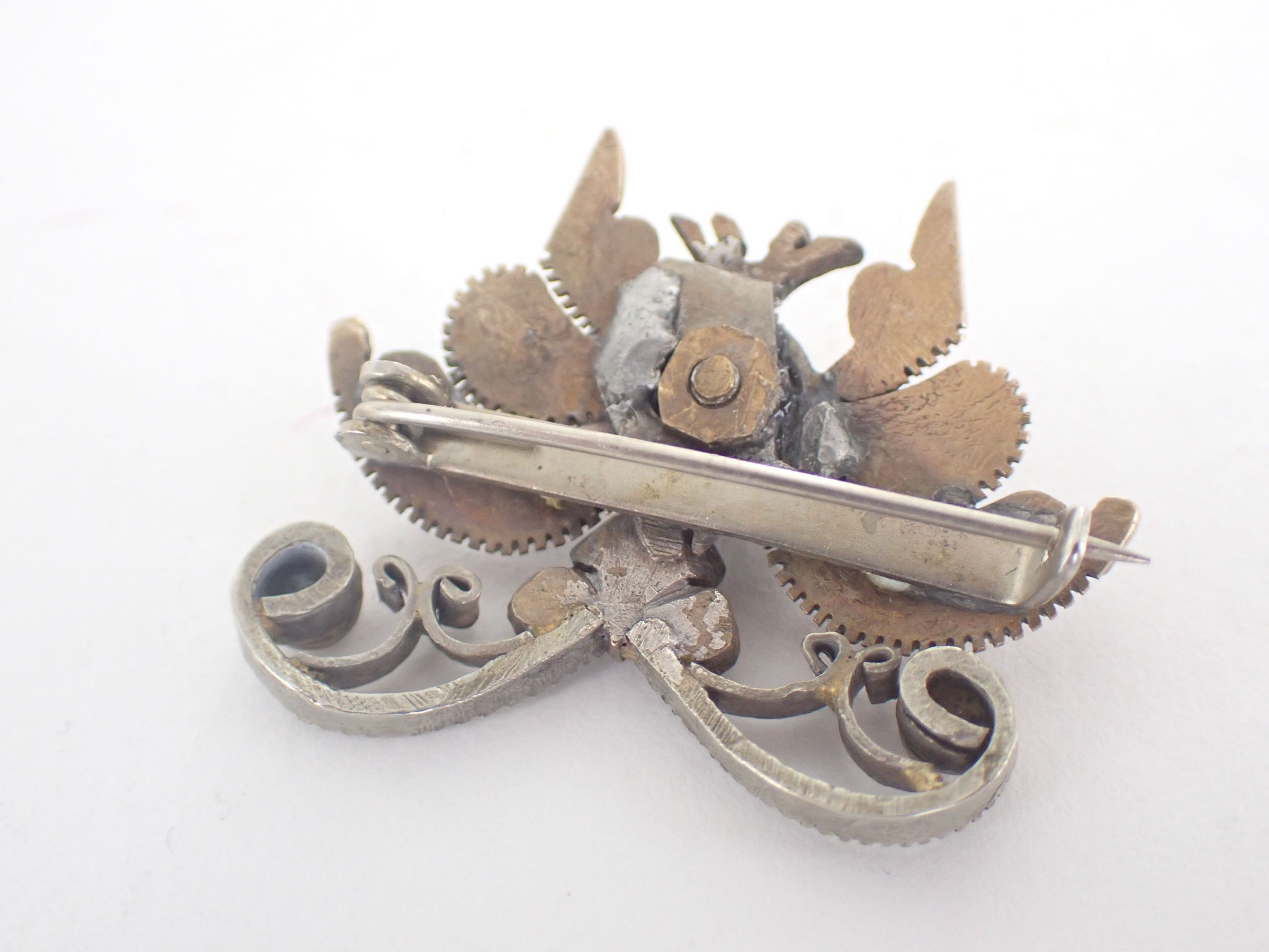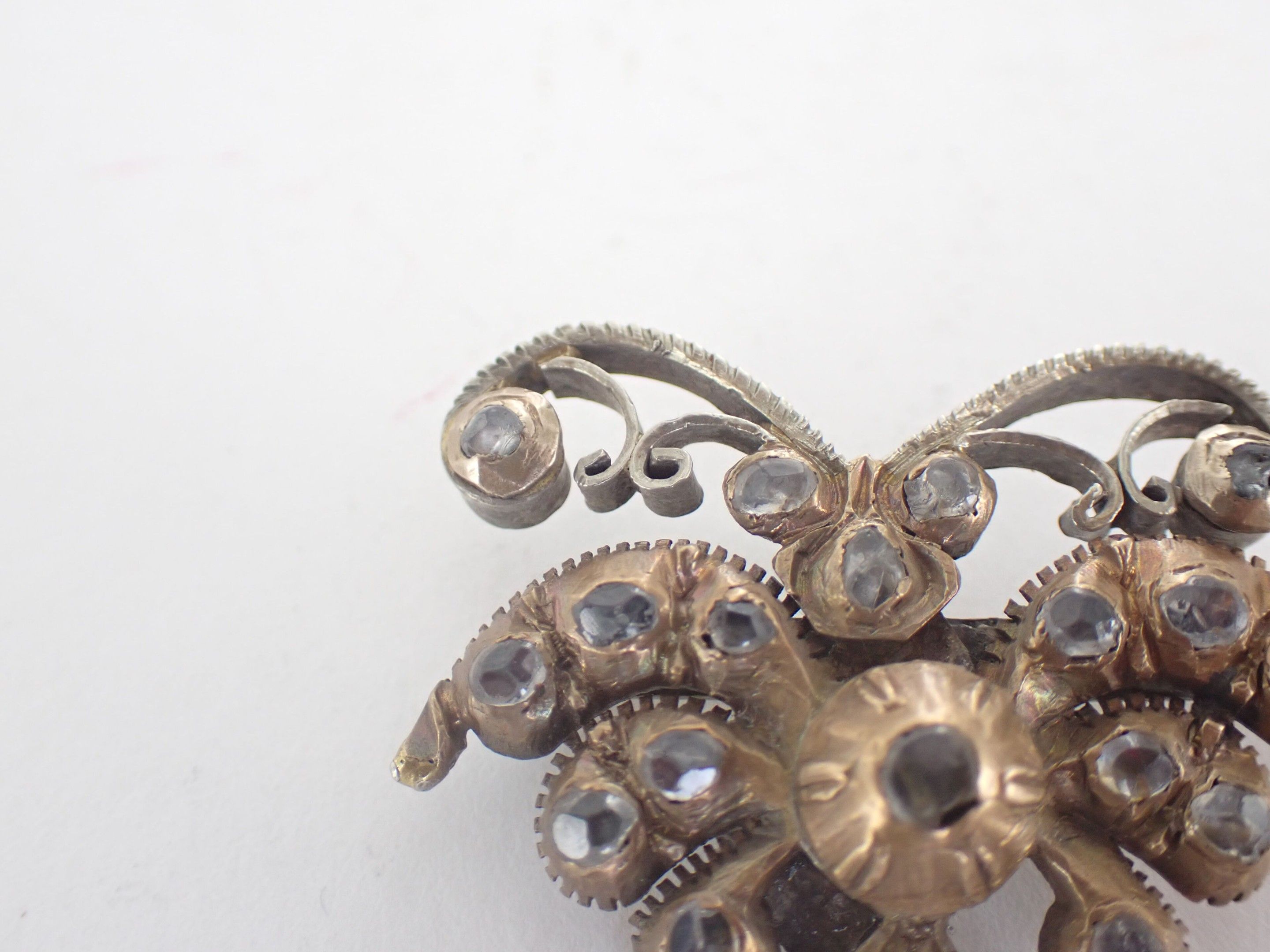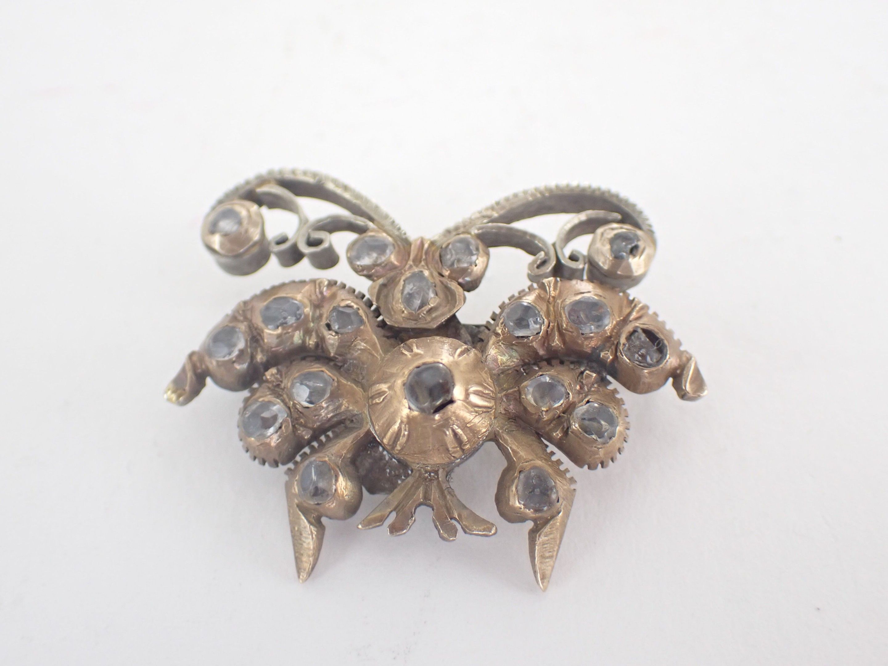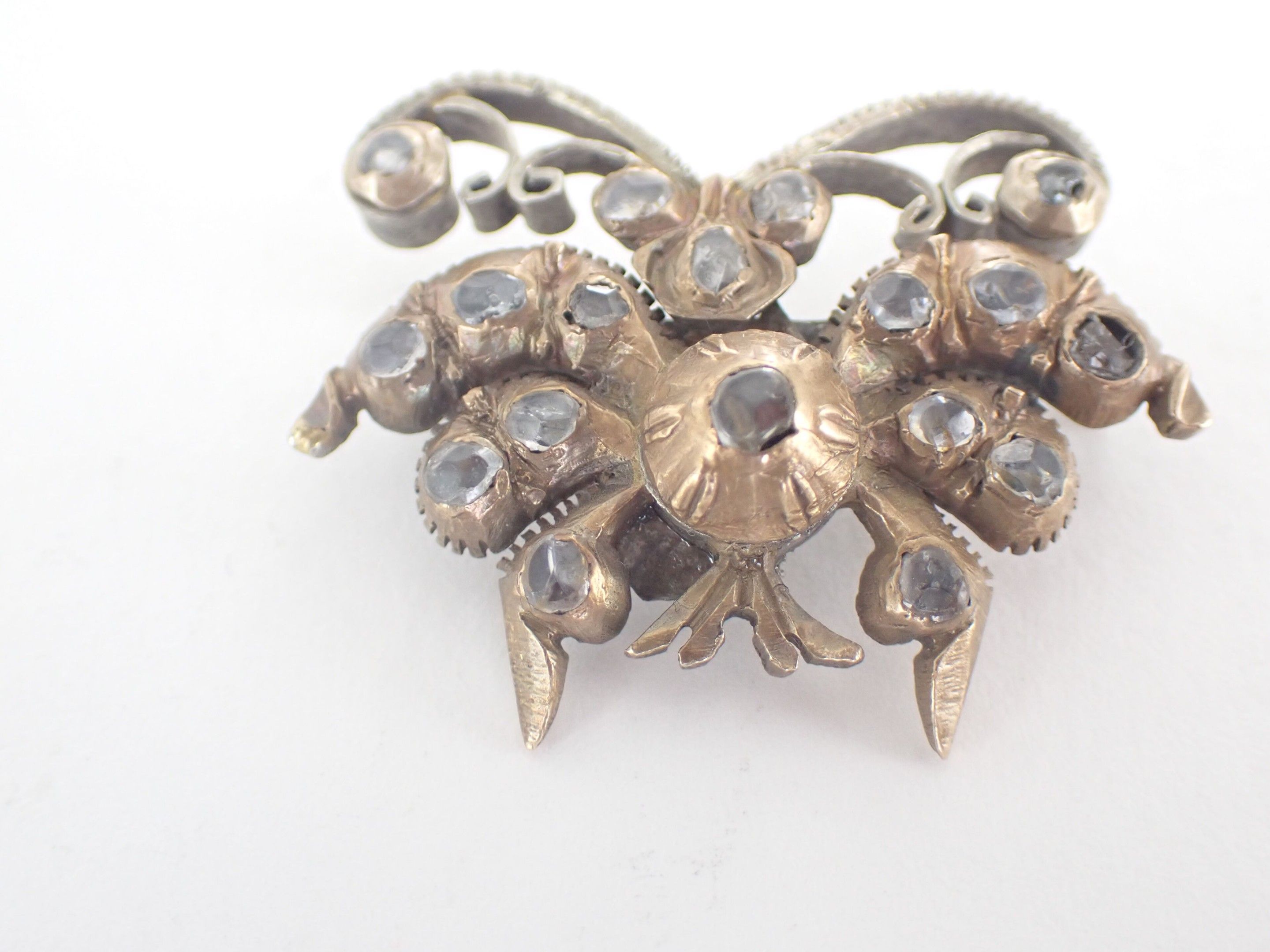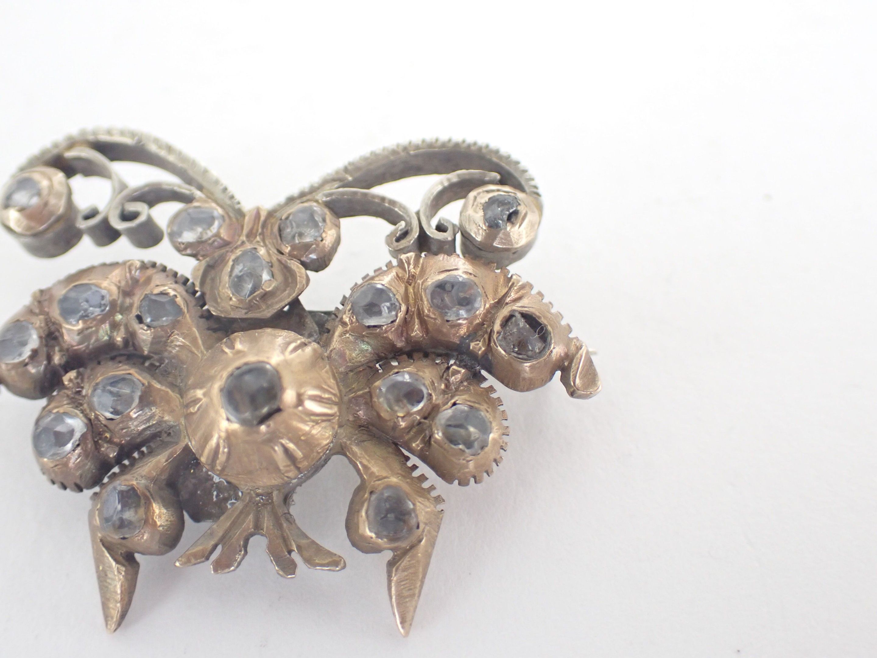 Metal brooch in the shape of a butterfly set with Rhinestones. Work from the 19th century.
