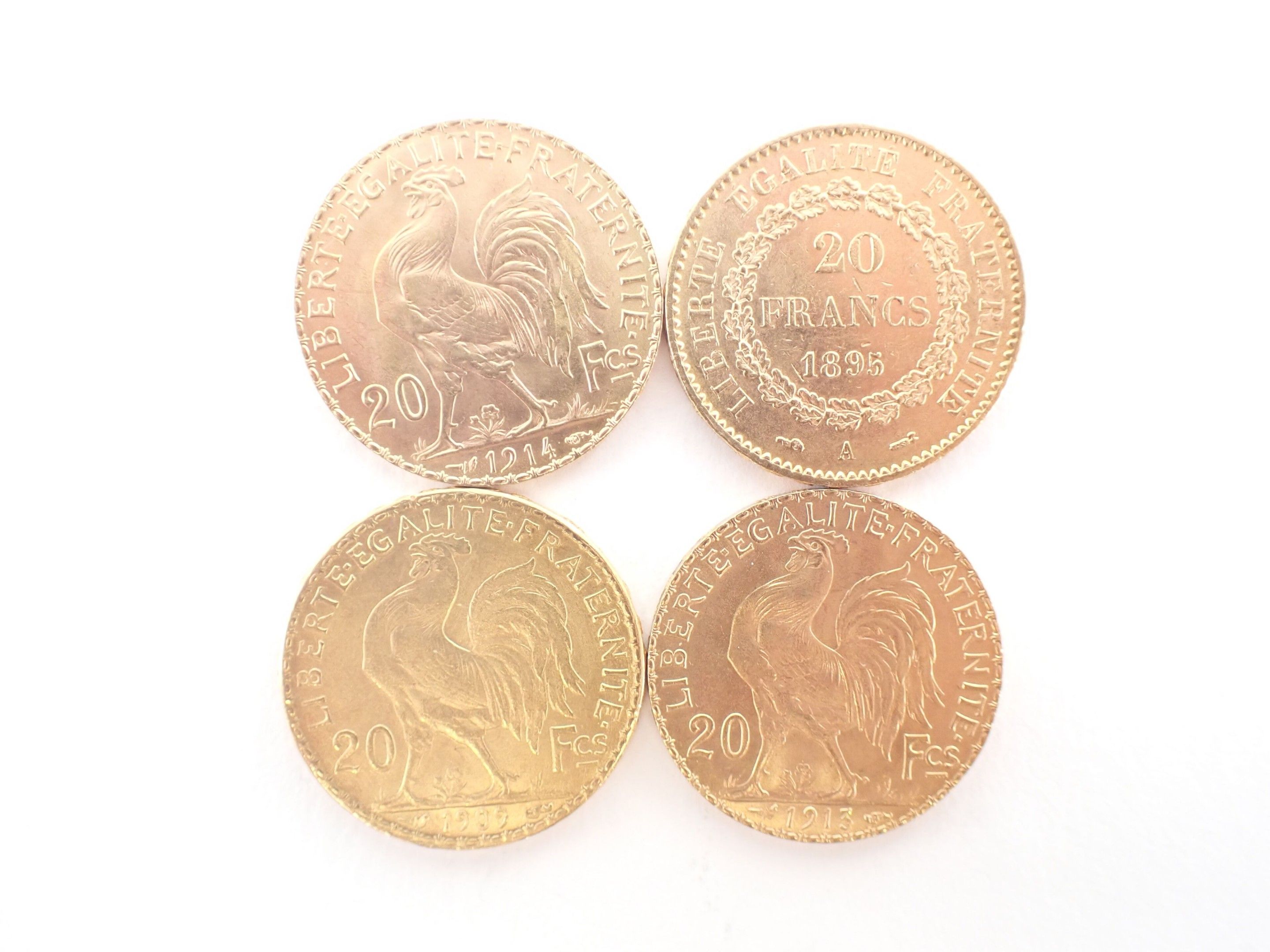 FRANCE: 4 coins of 20 Francs gold, including 3 Marianne type with rooster and 1 Génie type. Net weight: 25.7 g