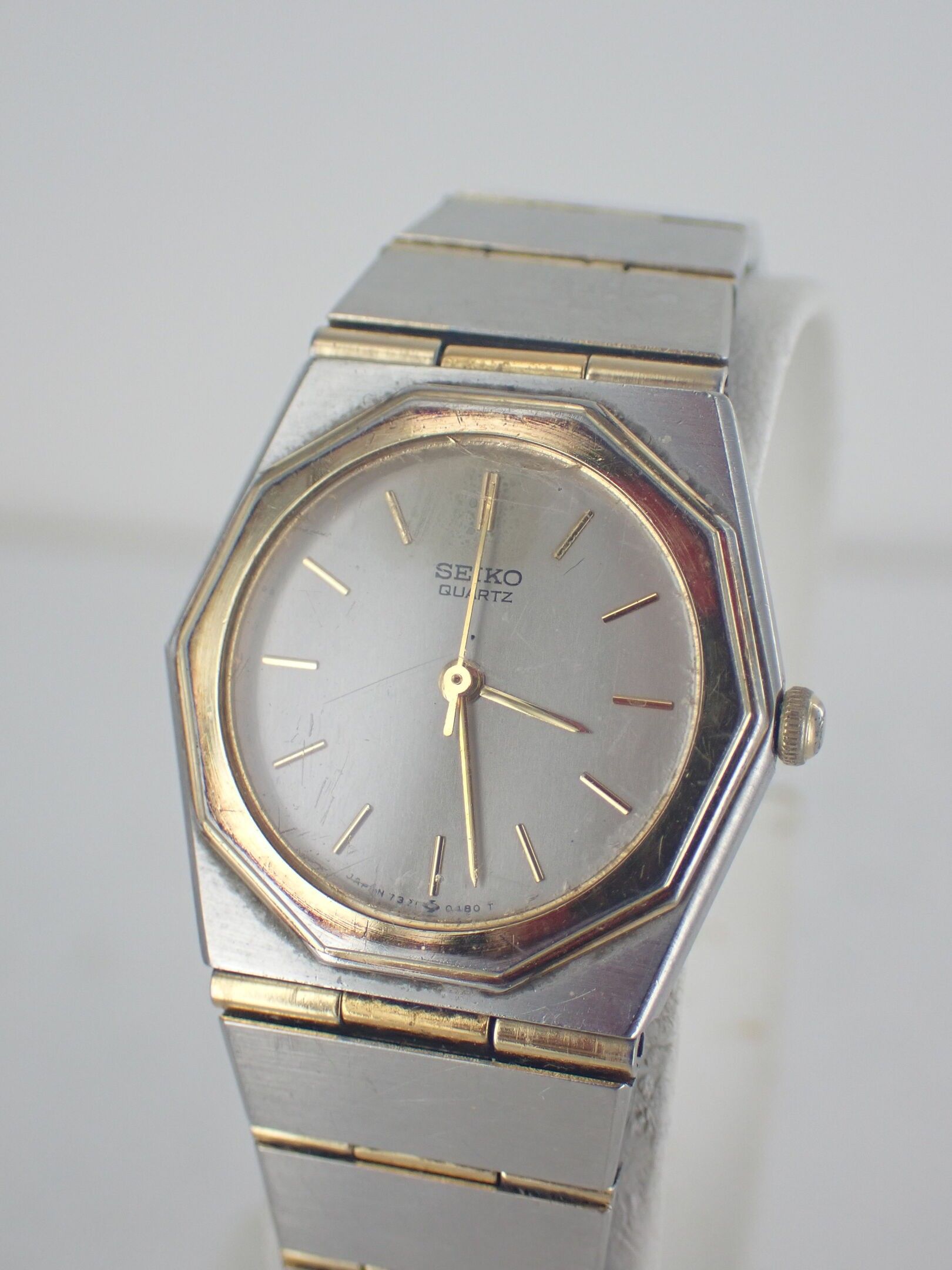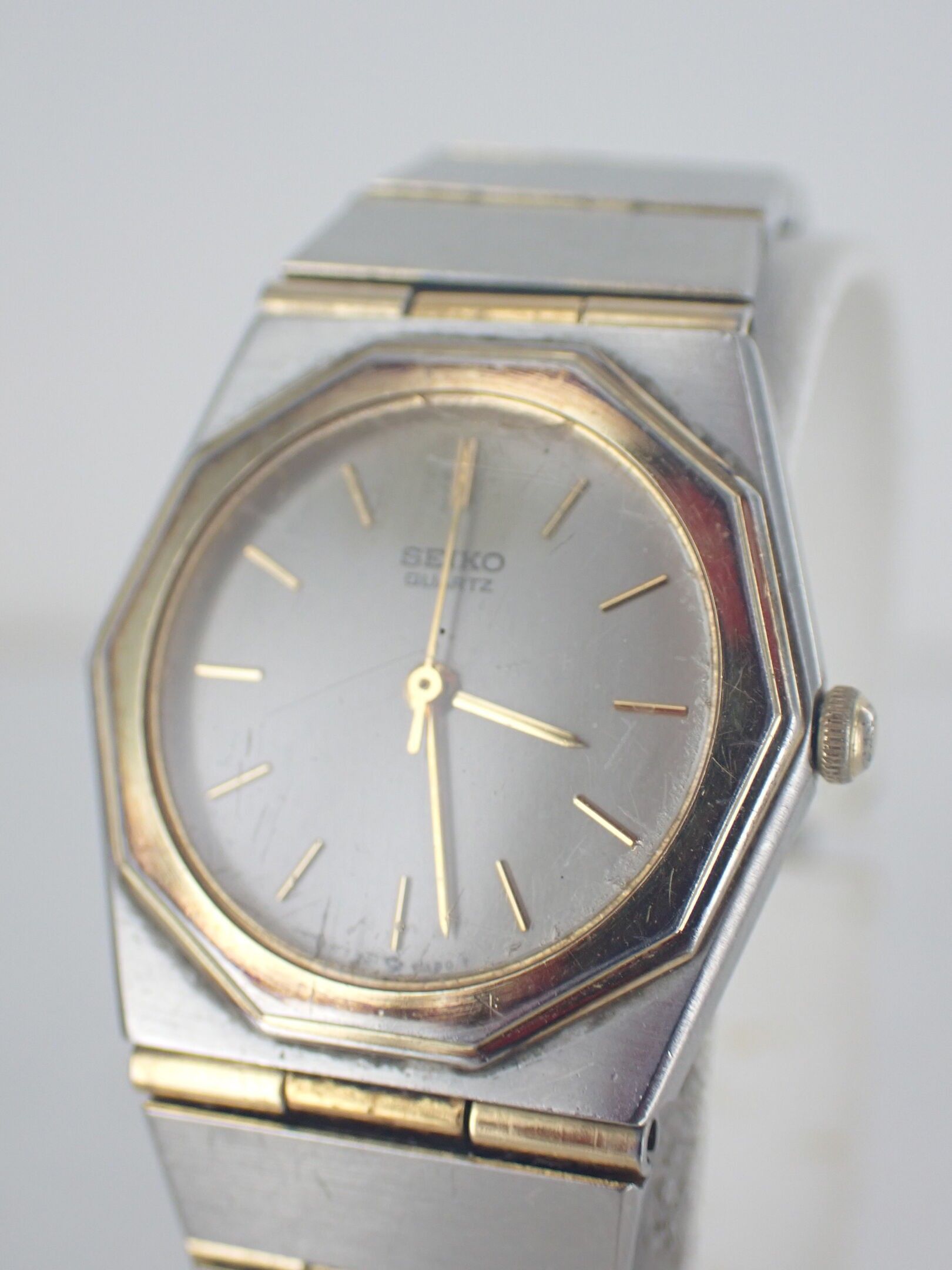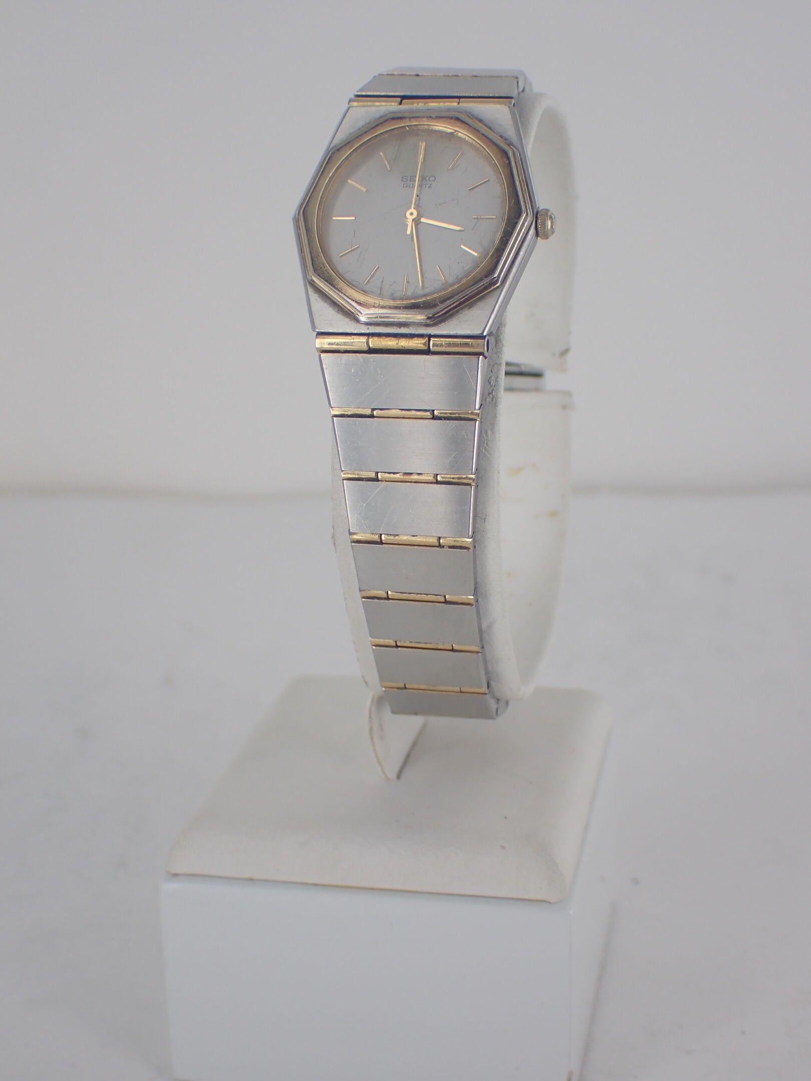 SEIKO. Ladies' wristwatch in brushed steel and gold-plated, quartz movement. Diameter: 26 mm - Untested, battery to be changed